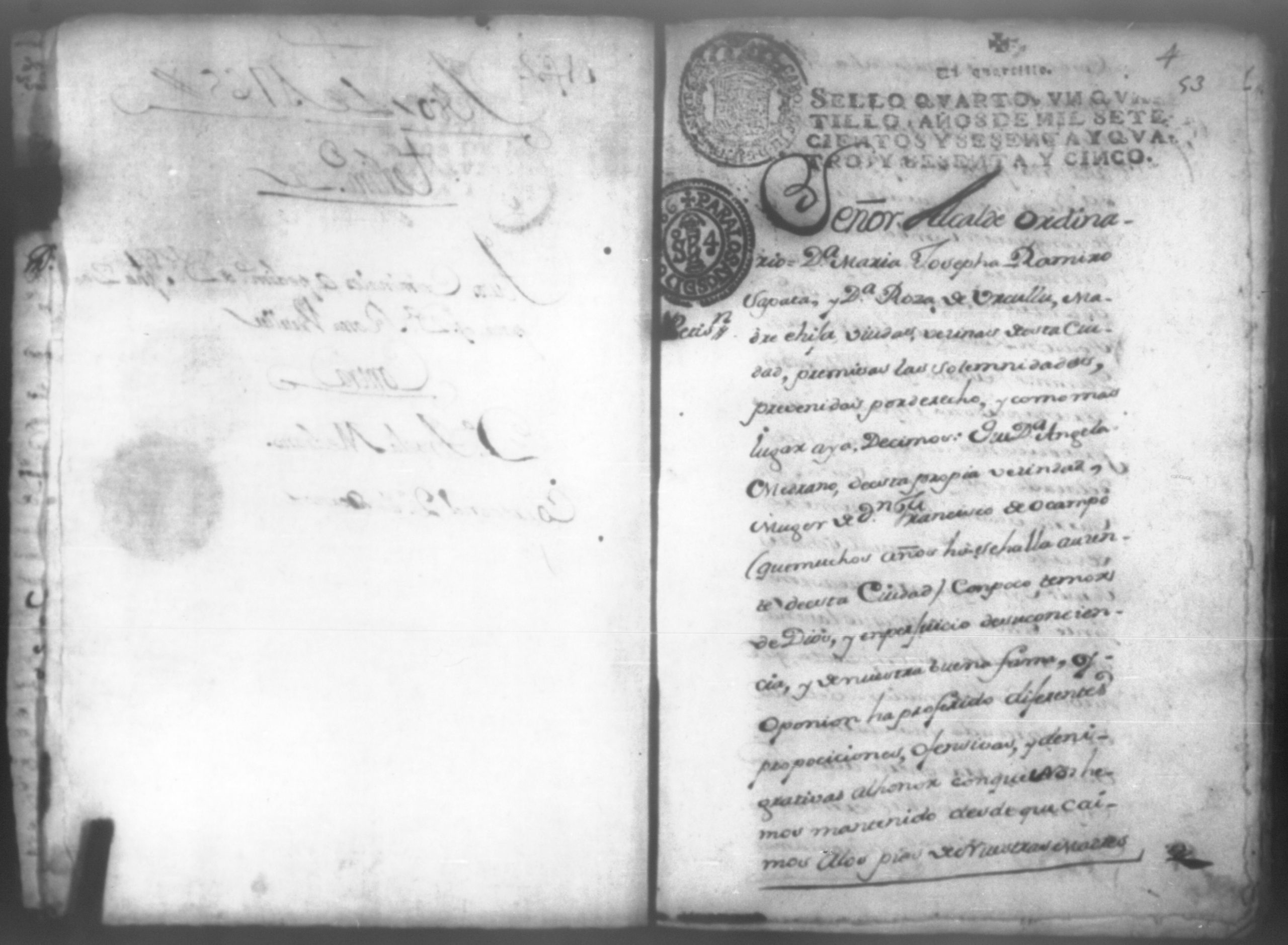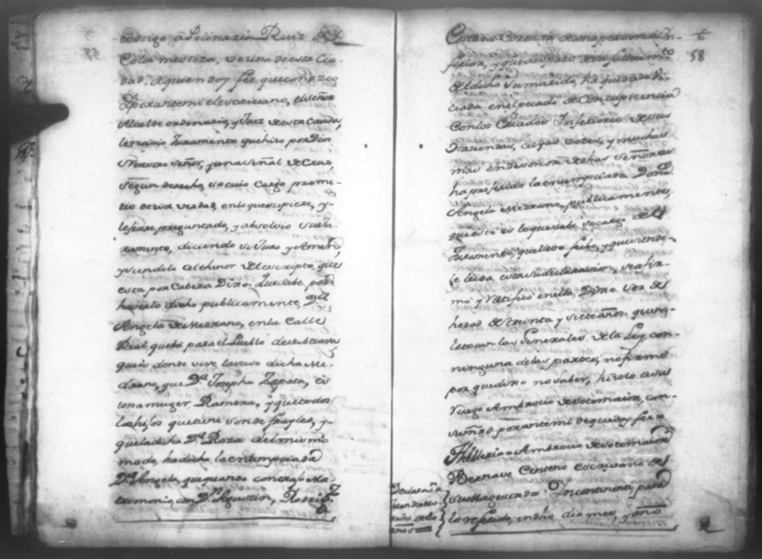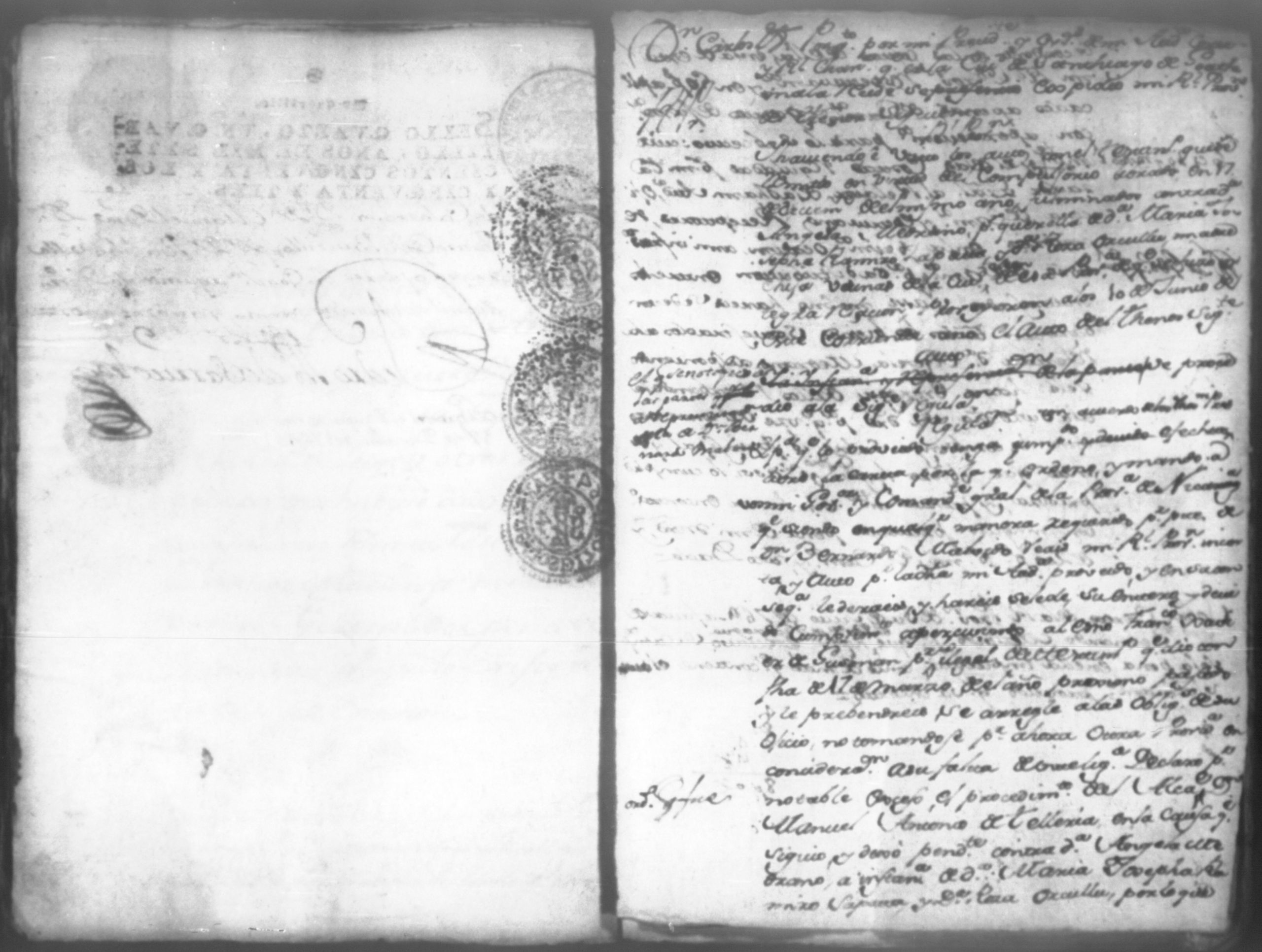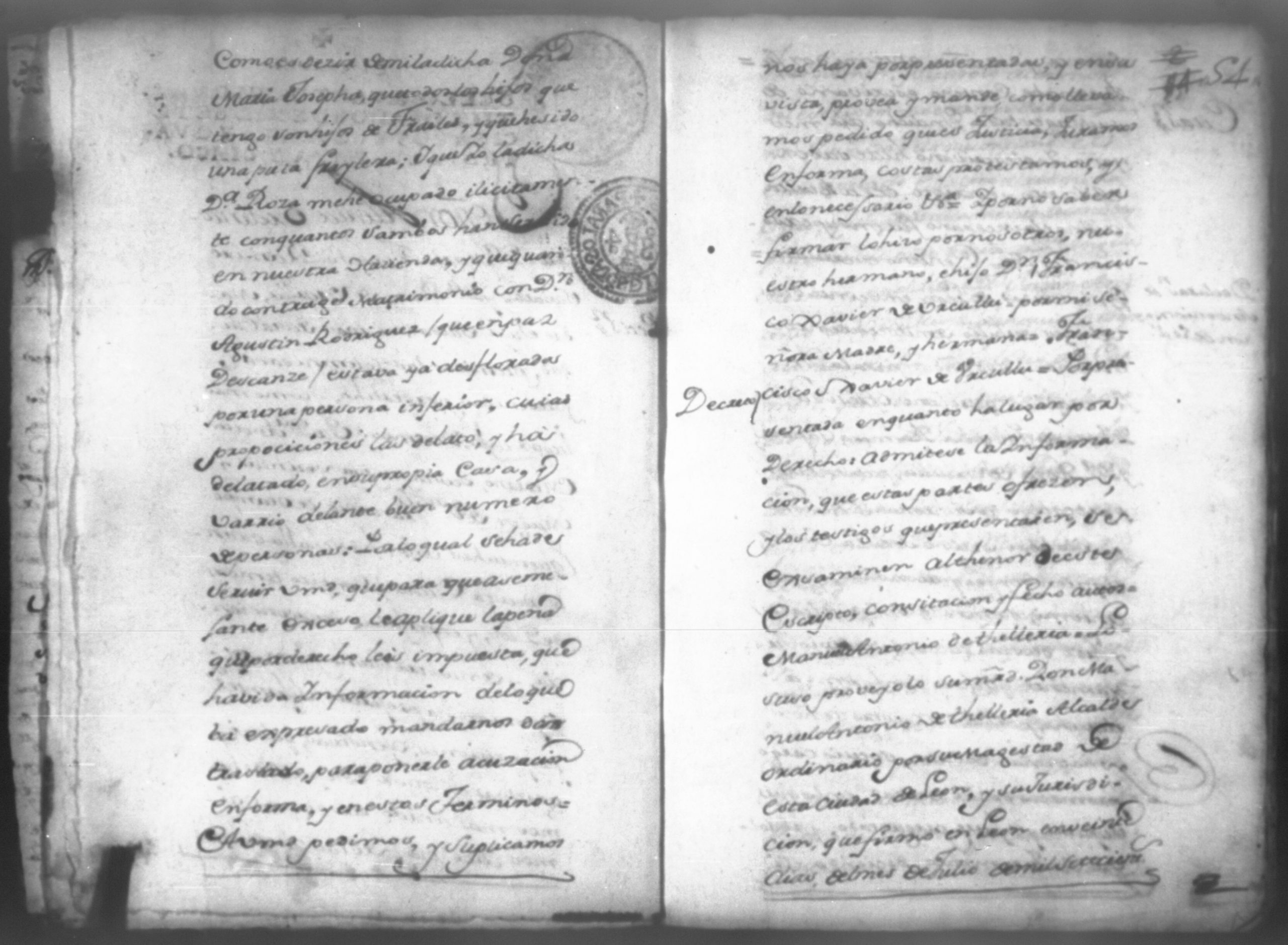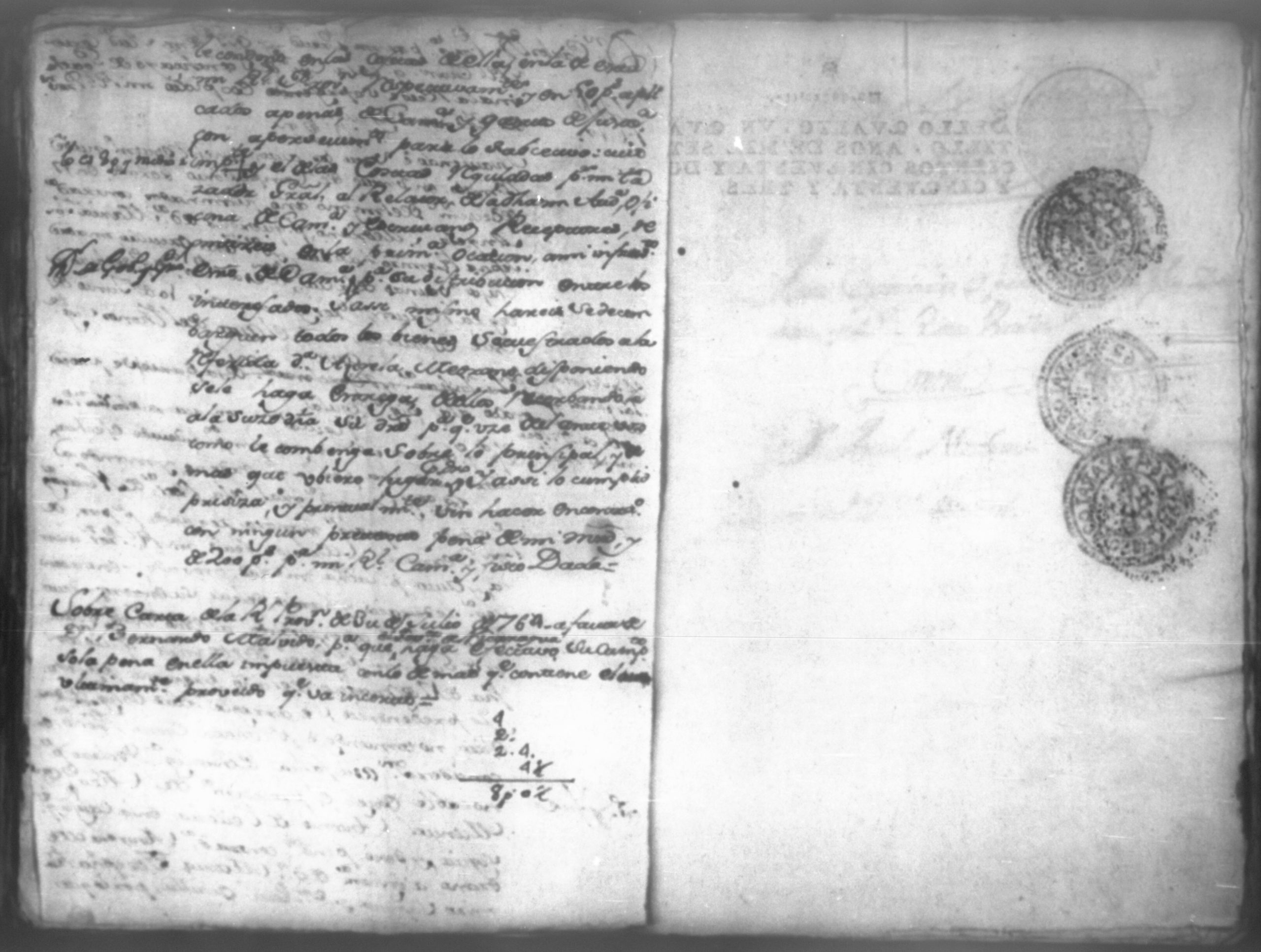 Temática: Don Manuel Antonio de Thelleria Alferes Mayor […] de Cano desta ciudad Ante Vuestra Majestad paresco y digo: que ami derecho combiene se sirva Vuestra Majestad hacer comparecer ante si al Capitan Don Francisco Altamirano y Velasco y a Don Francisco de Oses y debajo de la [relicencia] del juramento. Criminal. 1763. Contra Bernardo de Malvido.