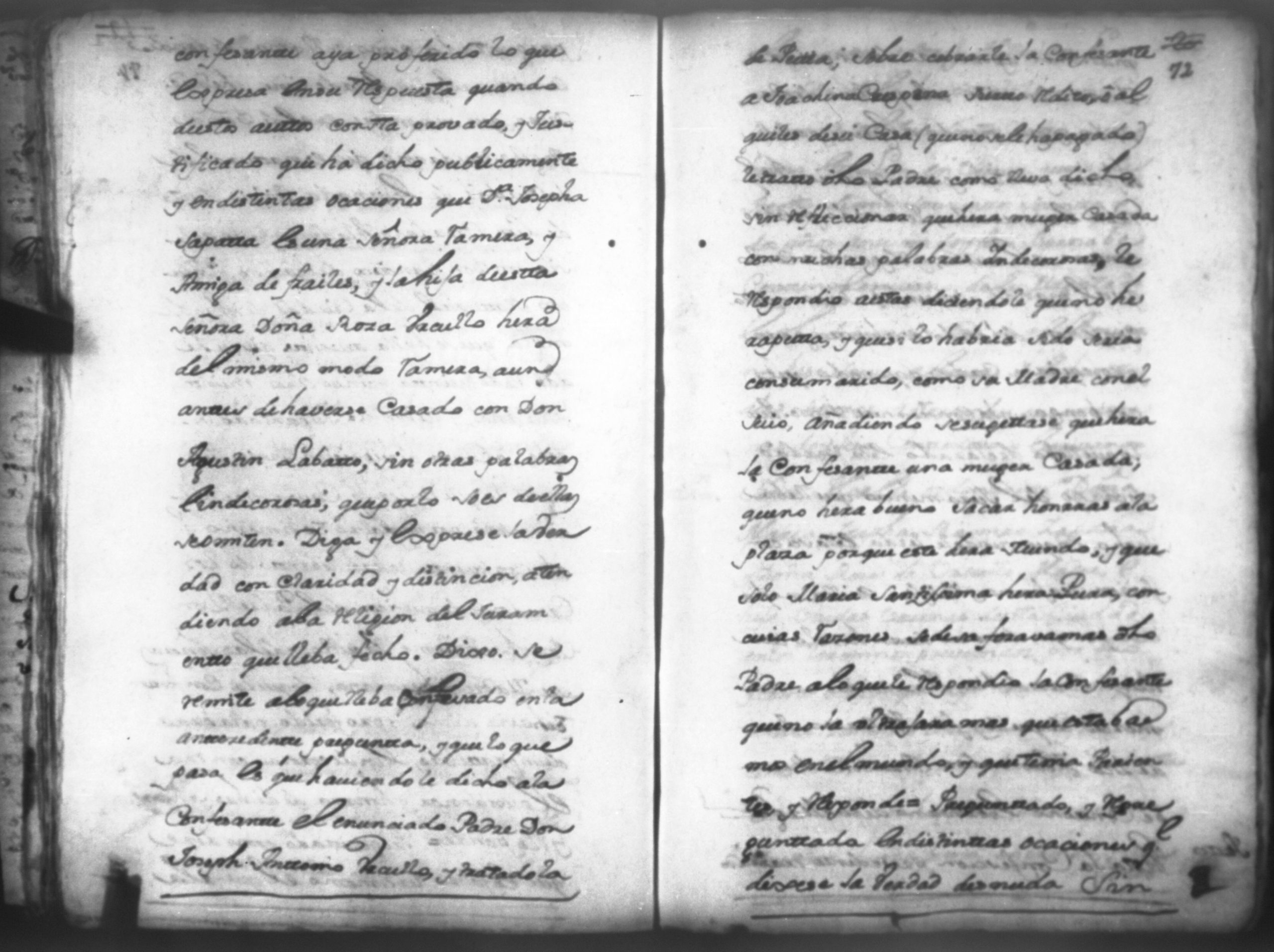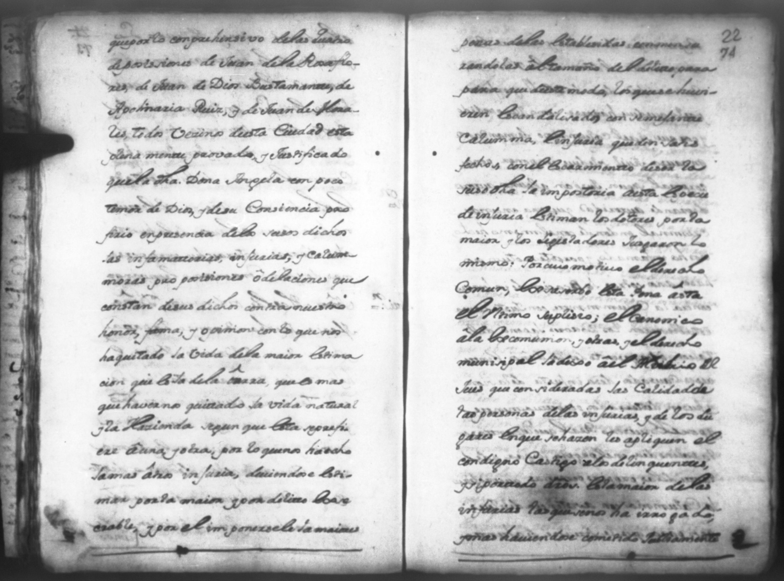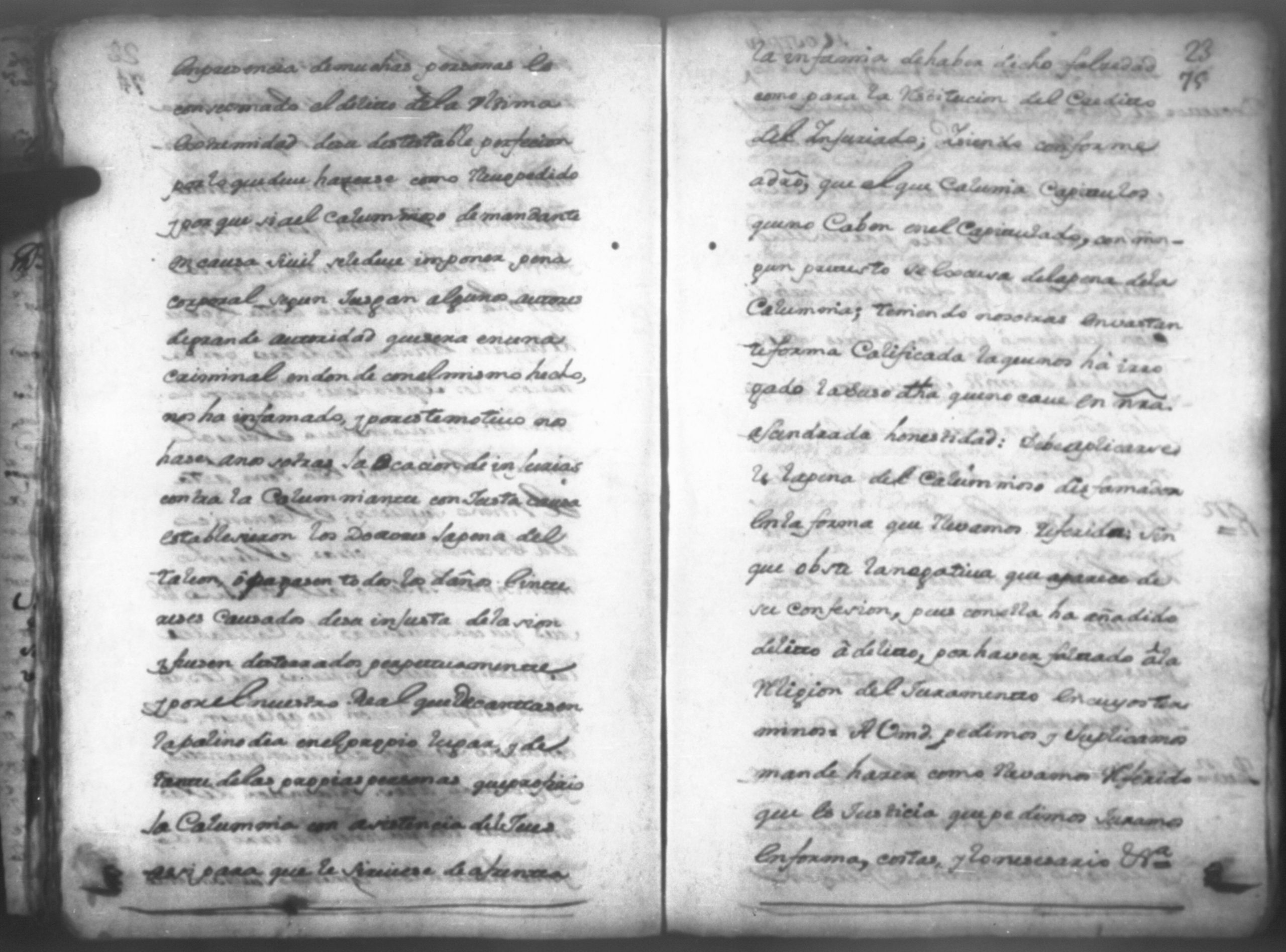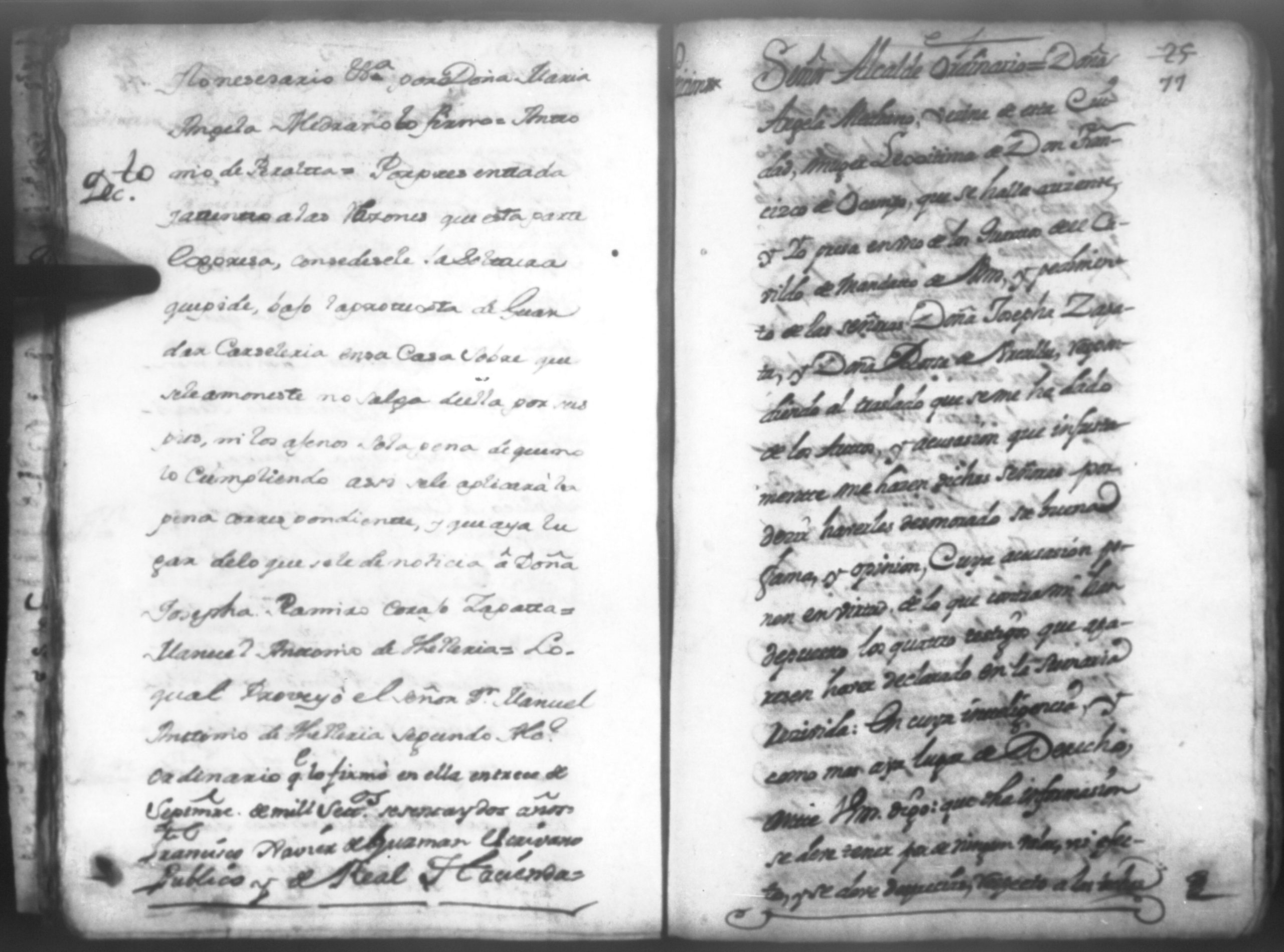 Temática: Don Manuel Antonio de Thelleria Alferes Mayor […] de Cano desta ciudad Ante Vuestra Majestad paresco y digo: que ami derecho combiene se sirva Vuestra Majestad hacer comparecer ante si al Capitan Don Francisco Altamirano y Velasco y a Don Francisco de Oses y debajo de la [relicencia] del juramento. Criminal. 1763. Contra Bernardo de Malvido.