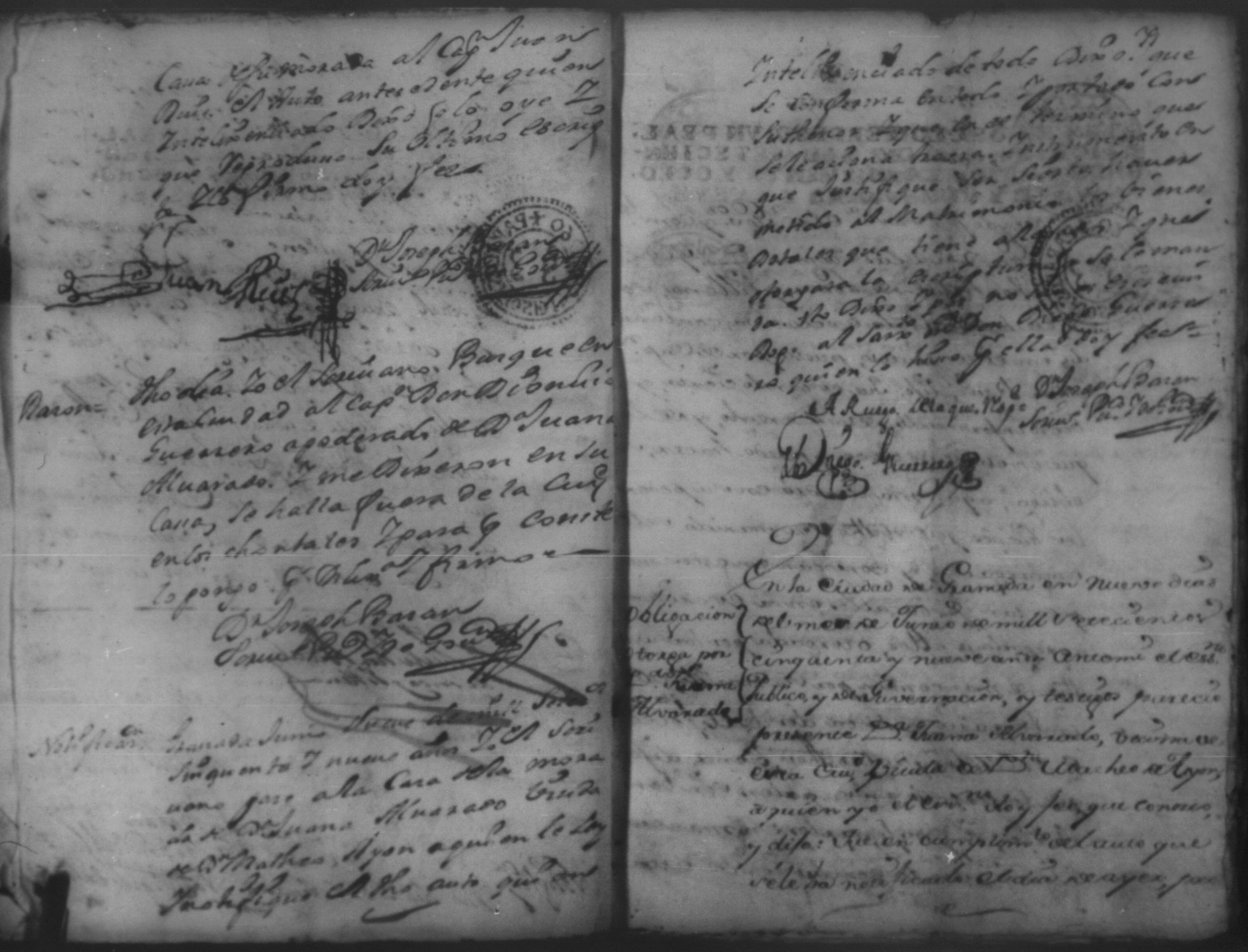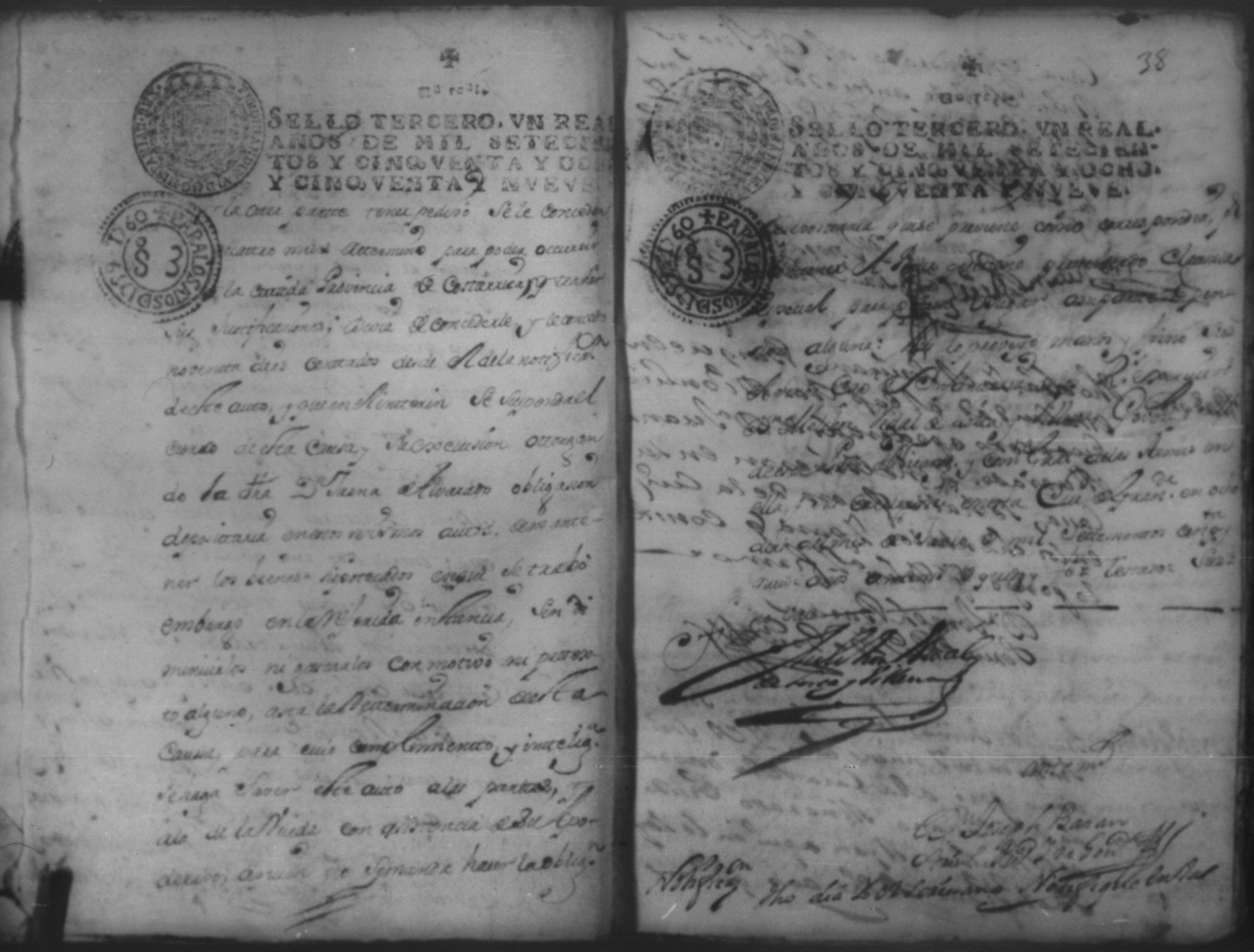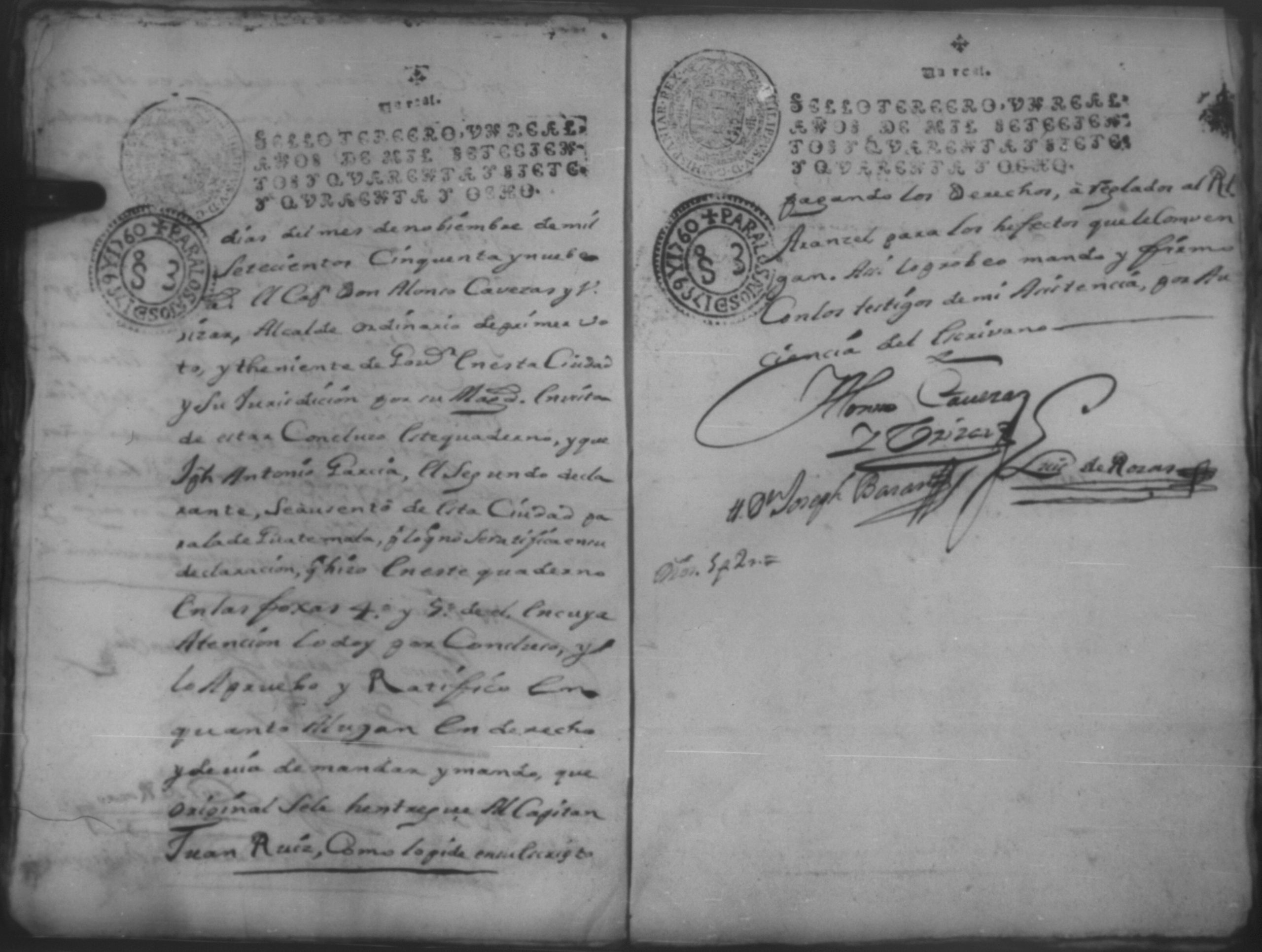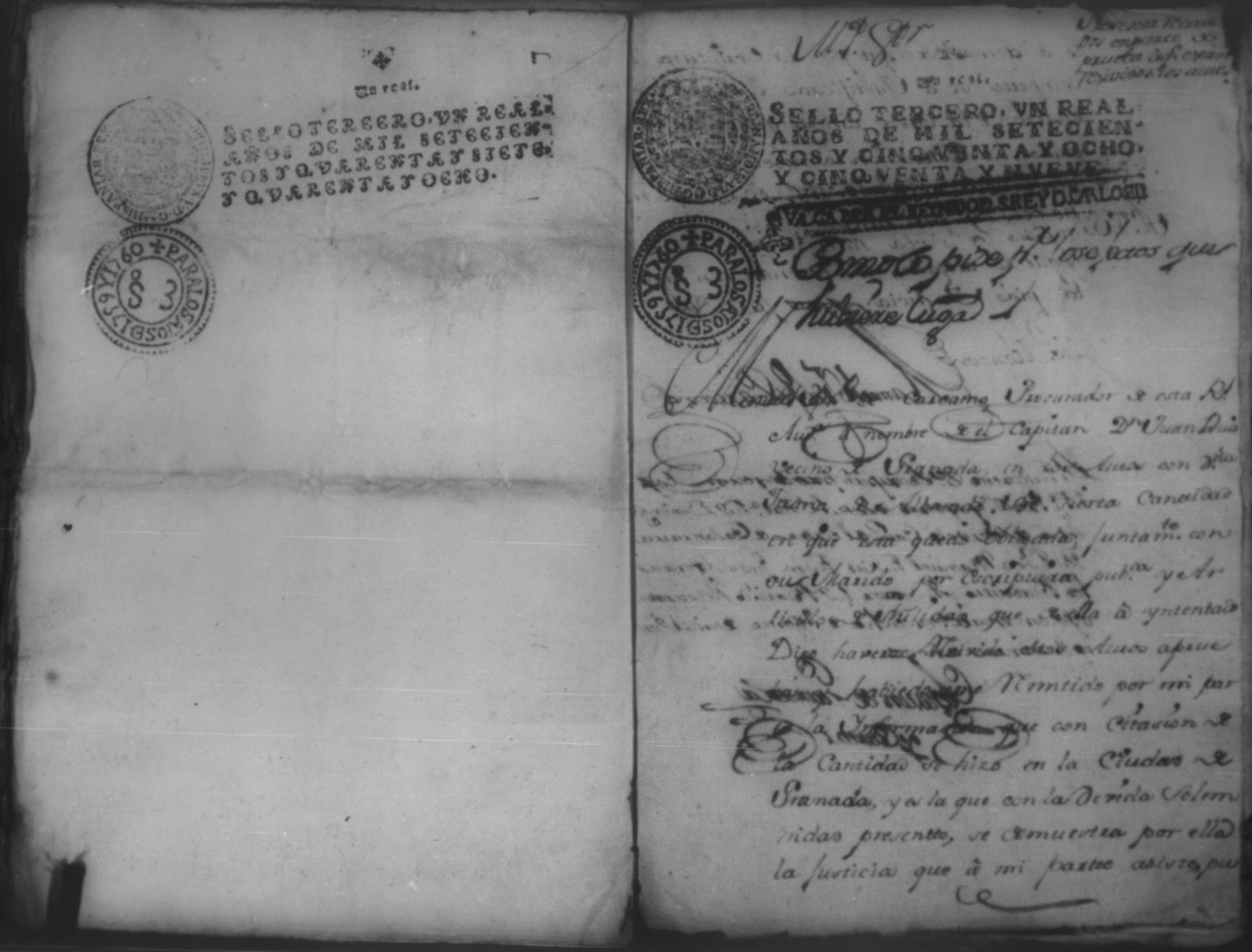 Temática: Año de 1757. Digo yo Don Matheo de Allon vecino de esta ciudad de Granada que devo al Capitan Juan [Ruiz] en cantidad de nobesientos y sincuenta pesos.