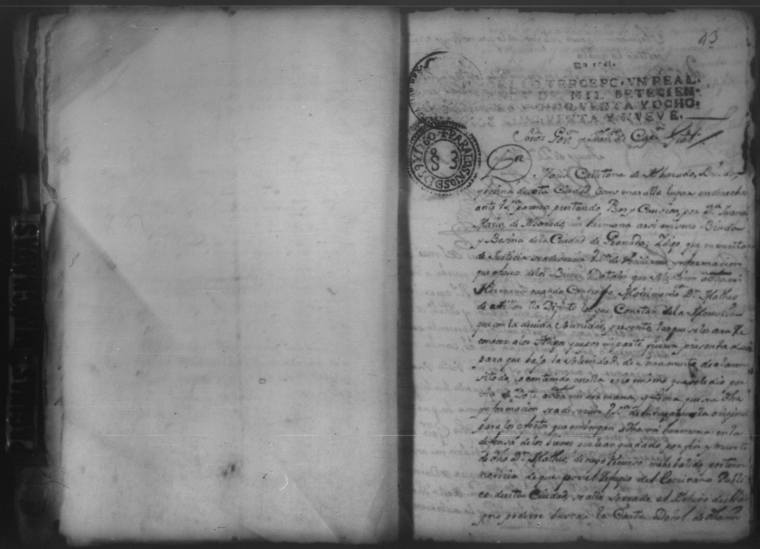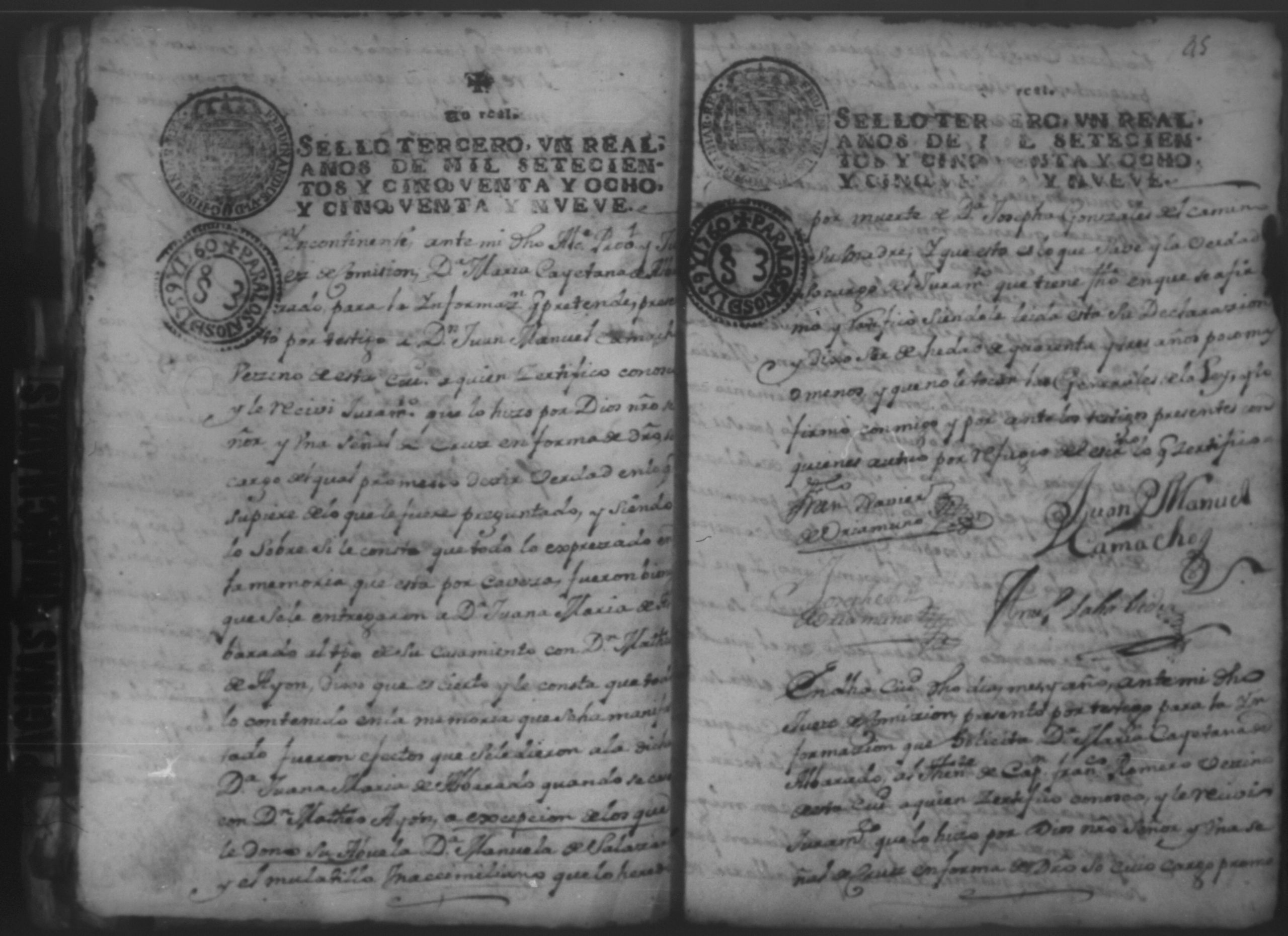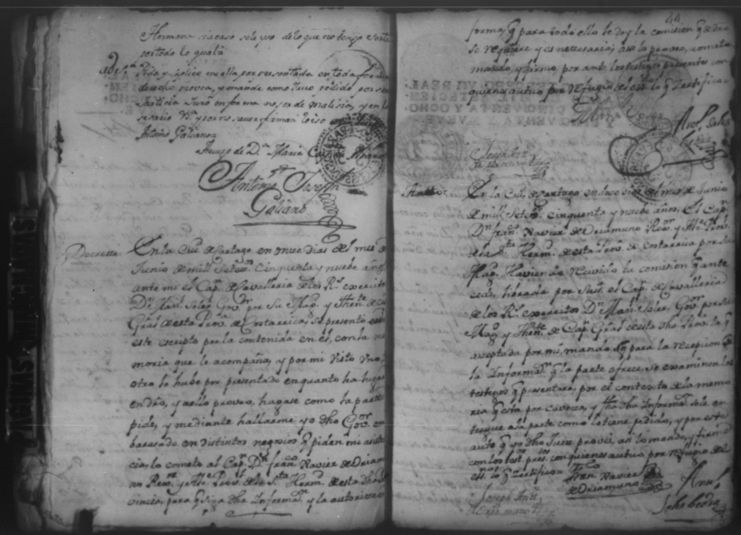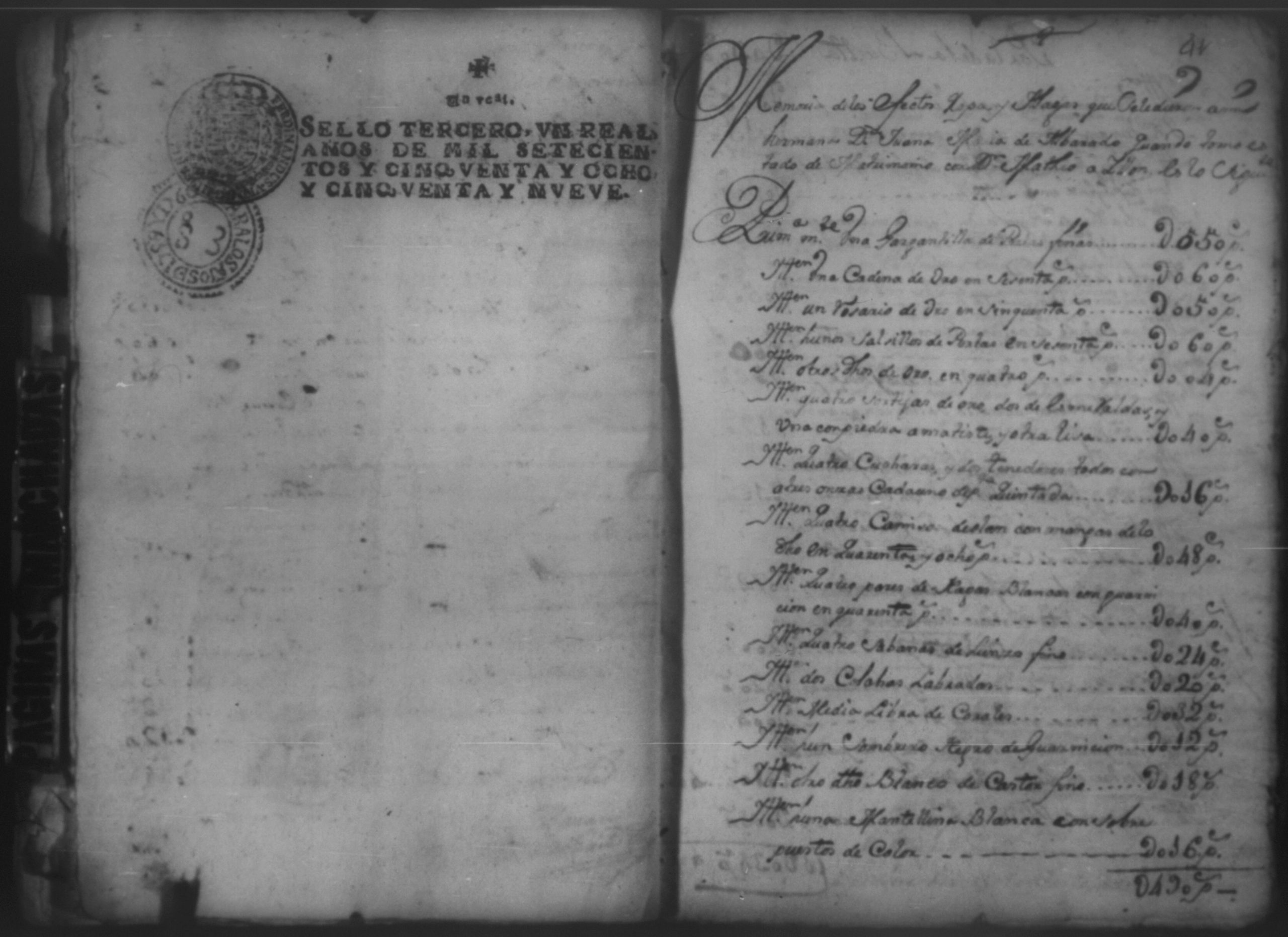 Temática: Año de 1757. Digo yo Don Matheo de Allon vecino de esta ciudad de Granada que devo al Capitan Juan [Ruiz] en cantidad de nobesientos y sincuenta pesos.