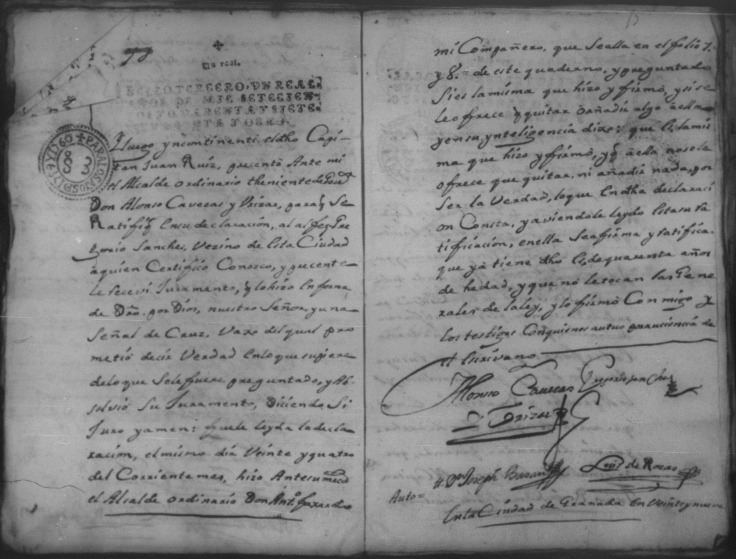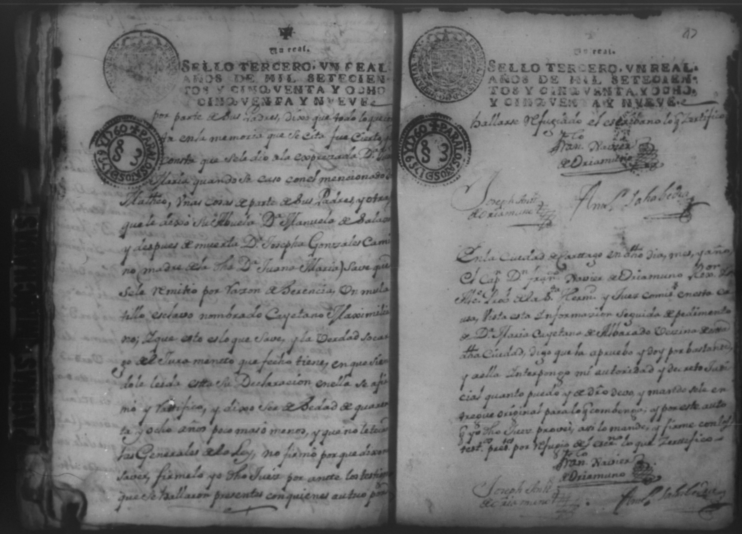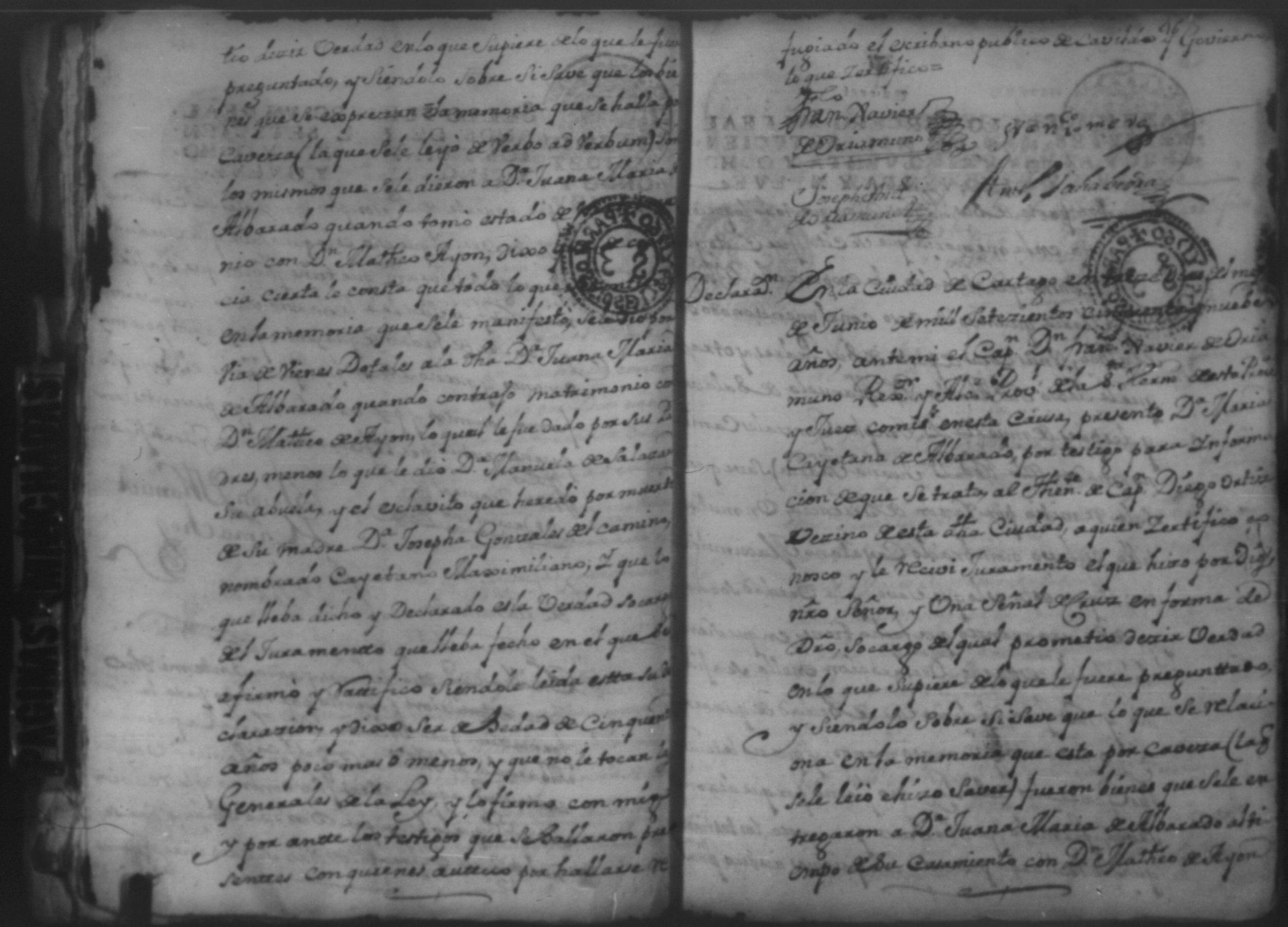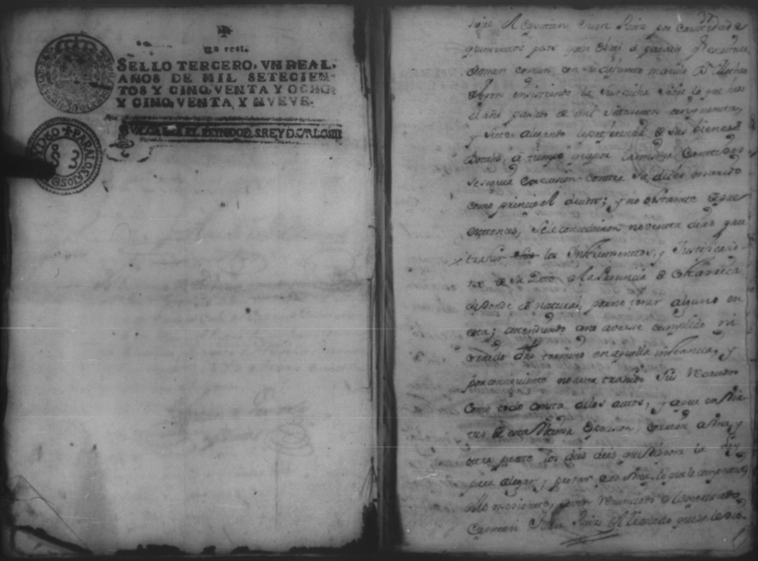 Temática: Año de 1757. Digo yo Don Matheo de Allon vecino de esta ciudad de Granada que devo al Capitan Juan [Ruiz] en cantidad de nobesientos y sincuenta pesos.