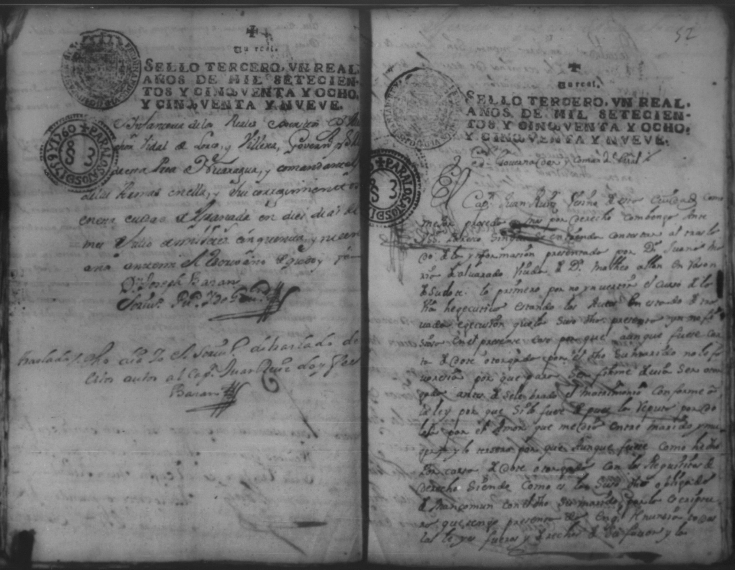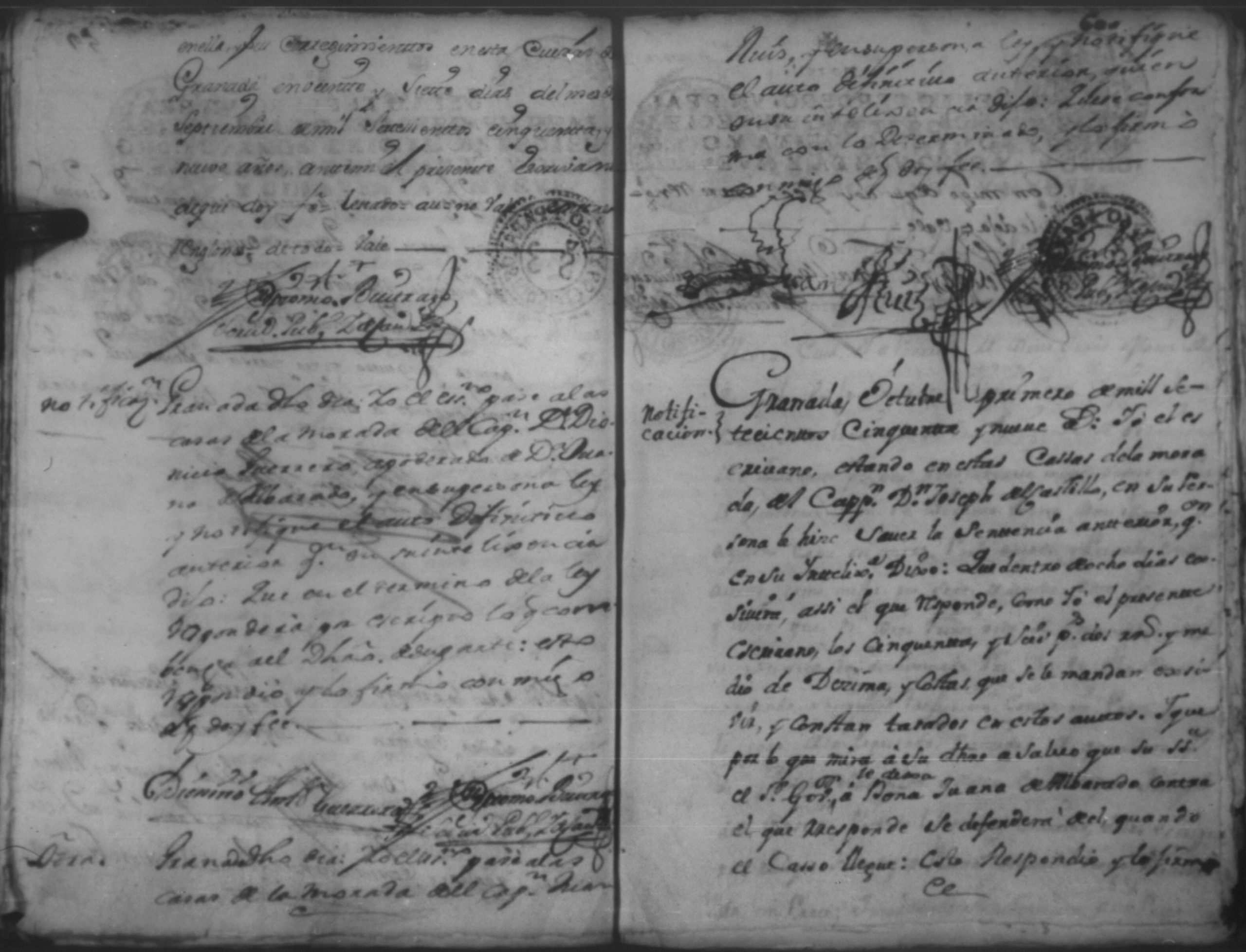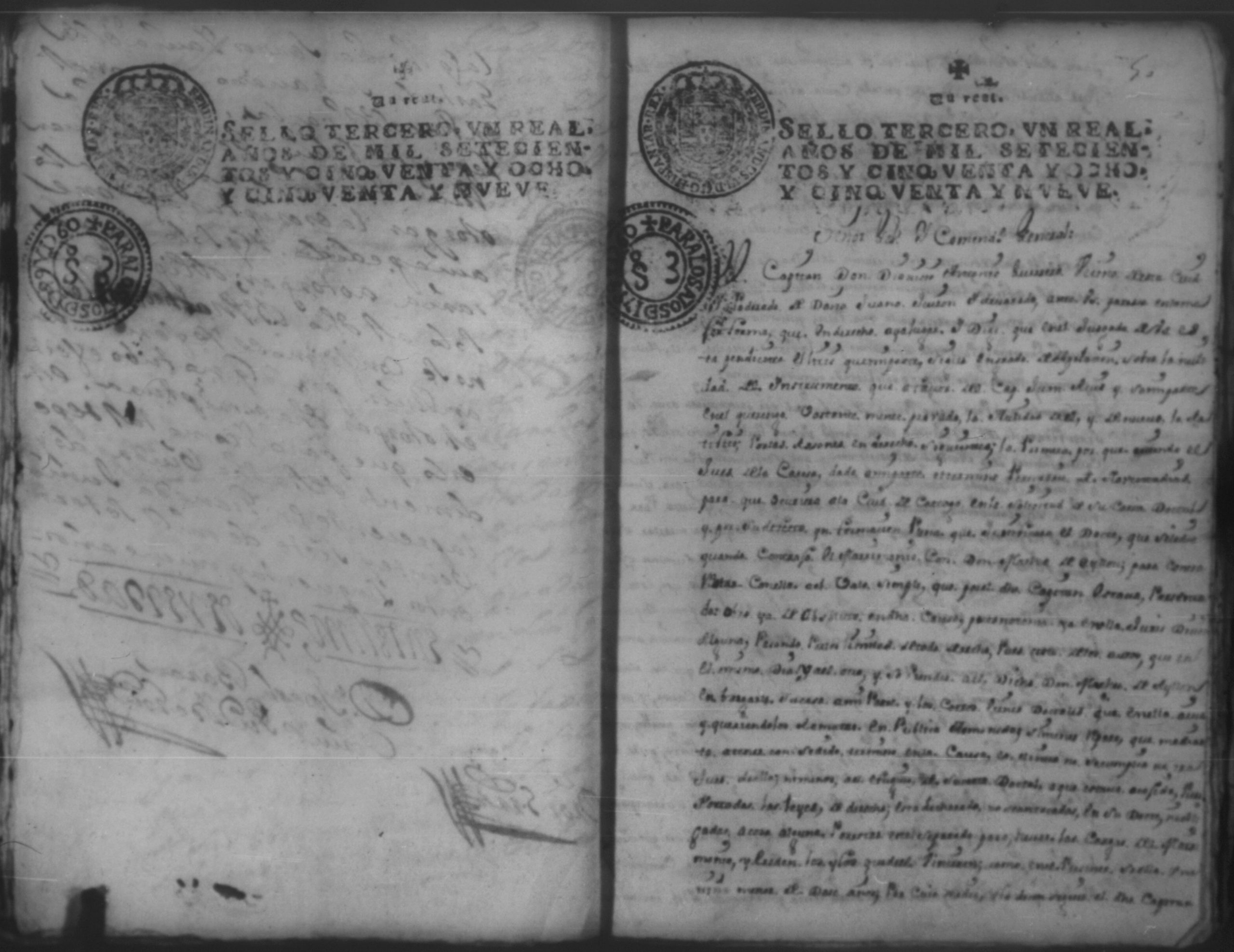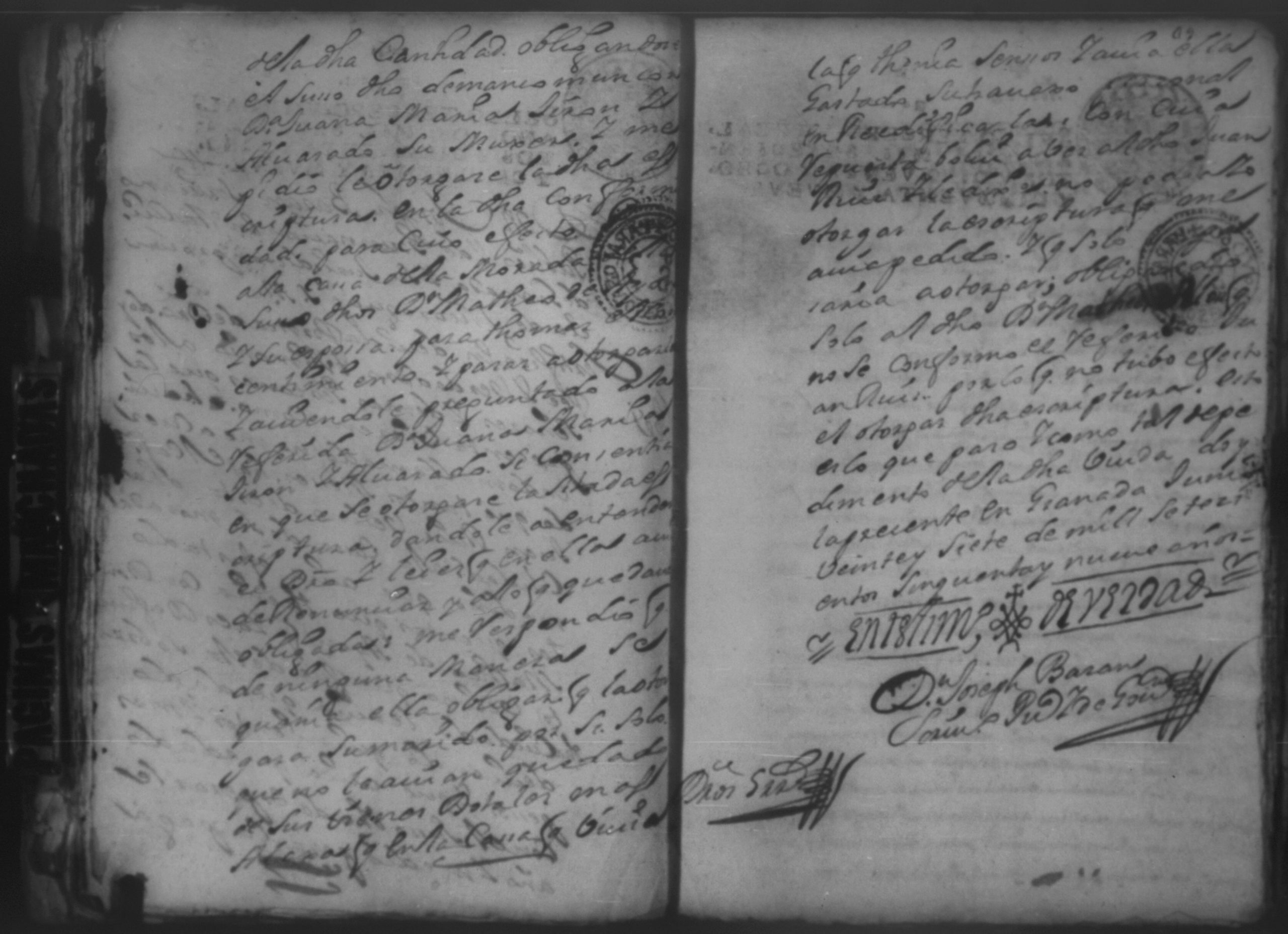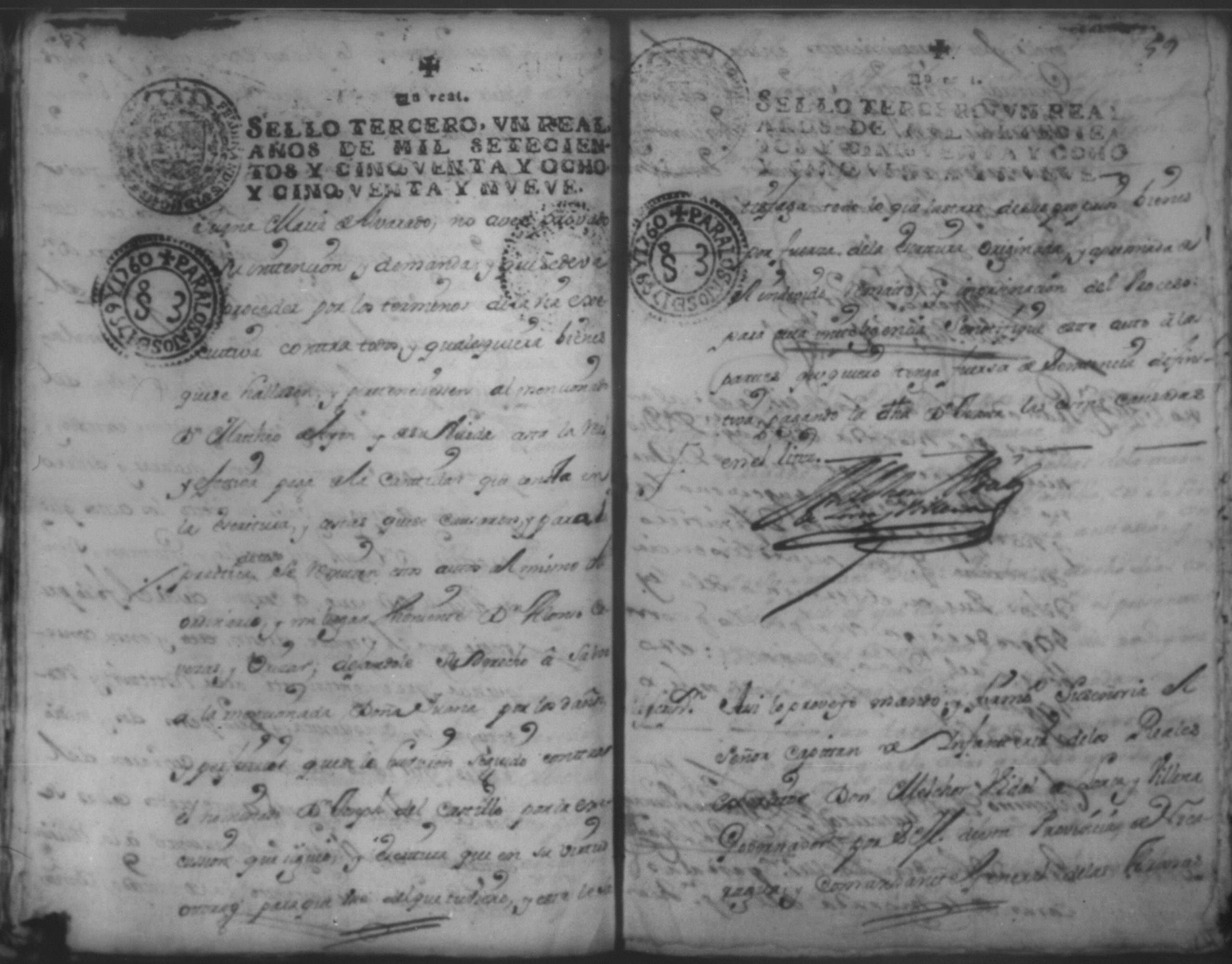 Temática: Año de 1757. Digo yo Don Matheo de Allon vecino de esta ciudad de Granada que devo al Capitan Juan [Ruiz] en cantidad de nobesientos y sincuenta pesos.
