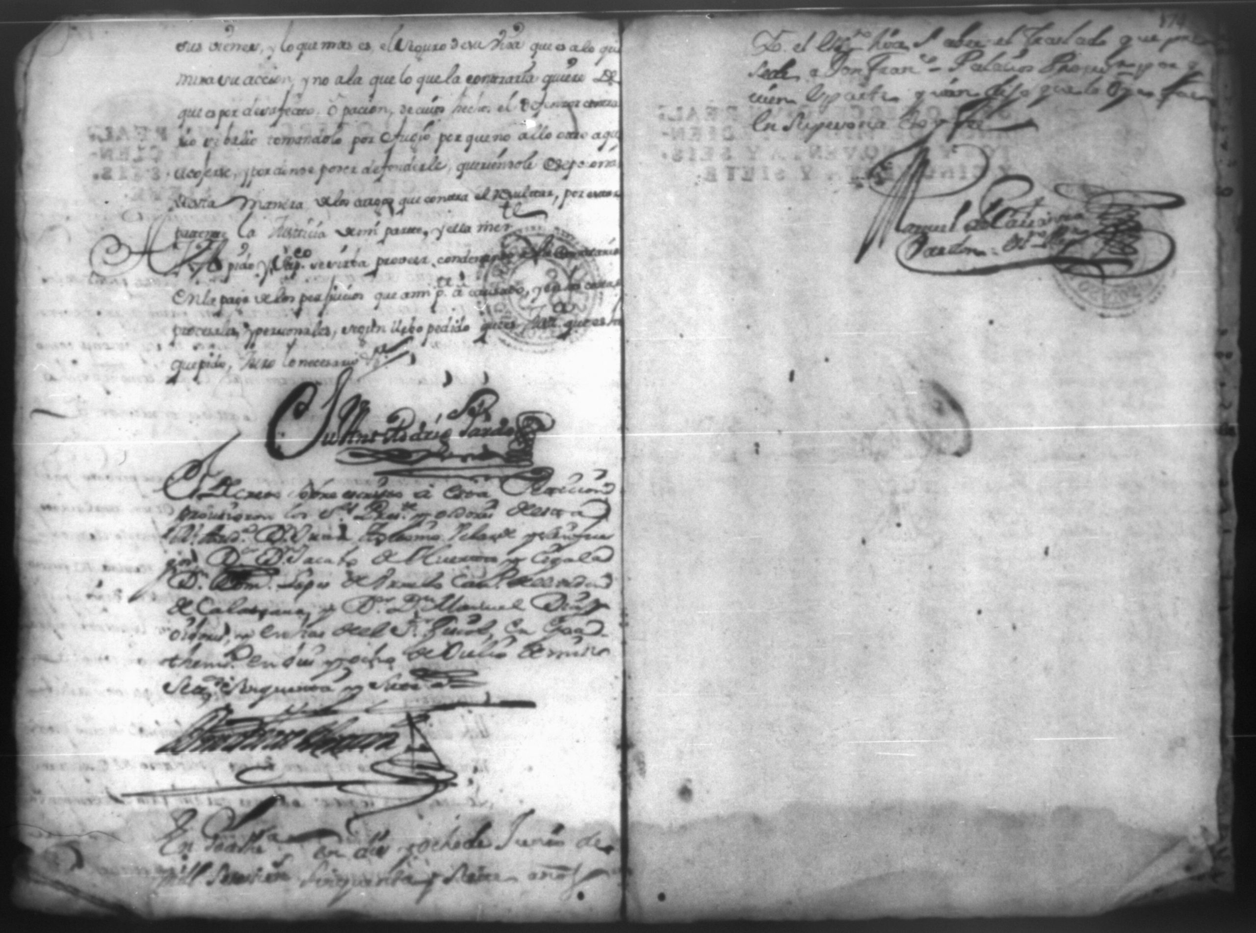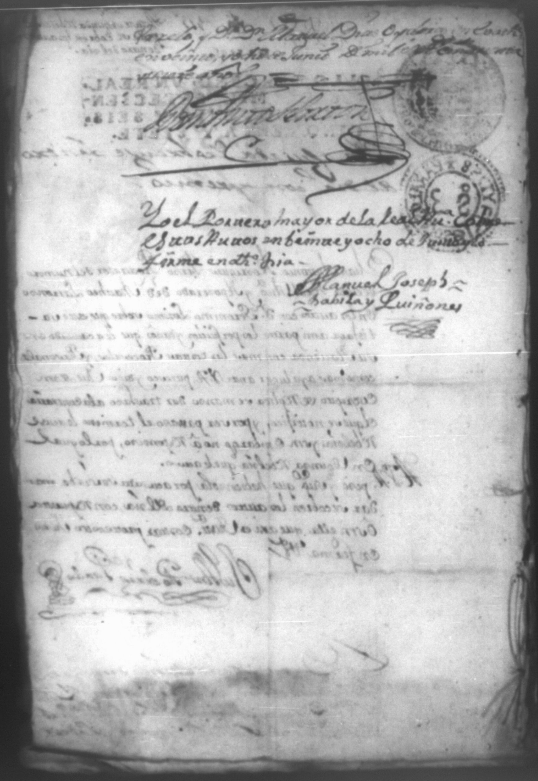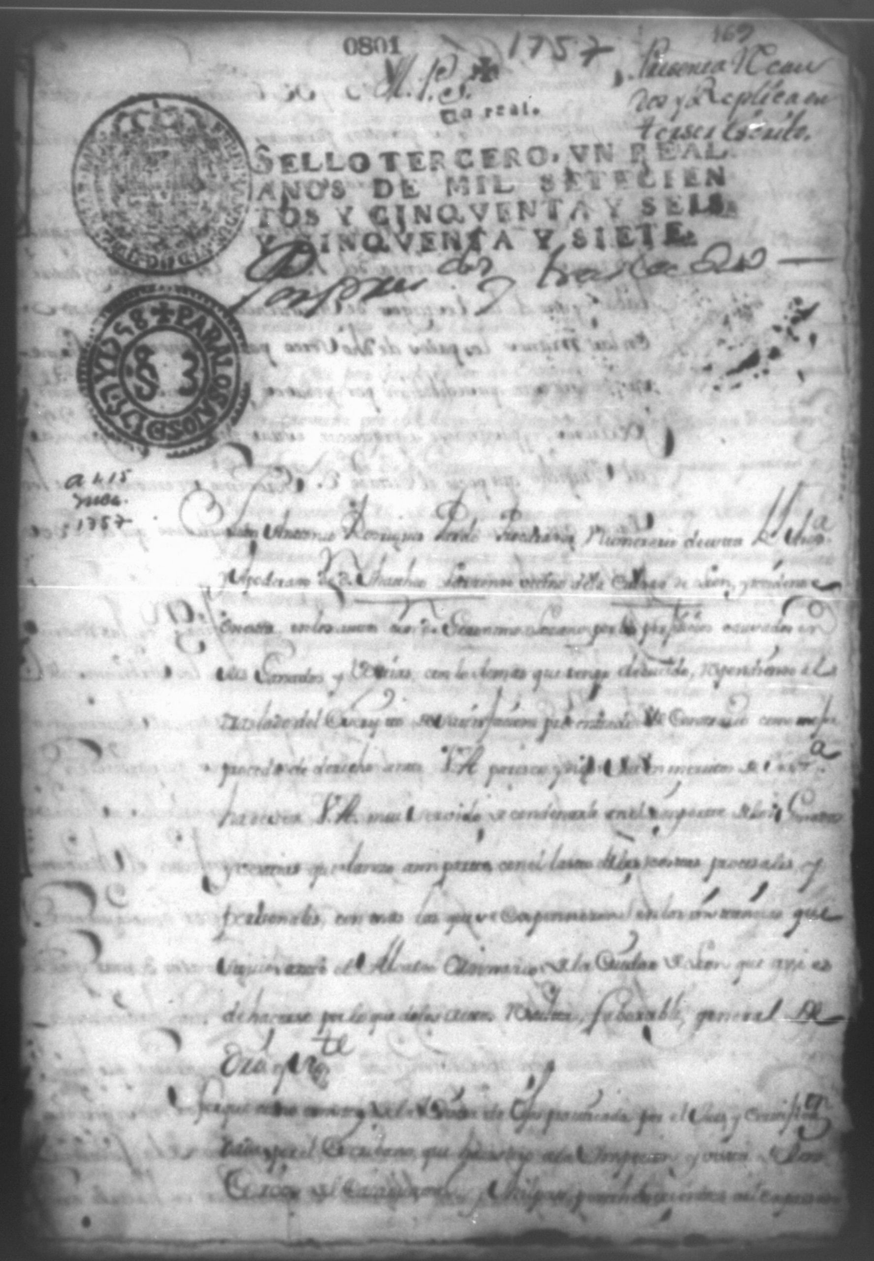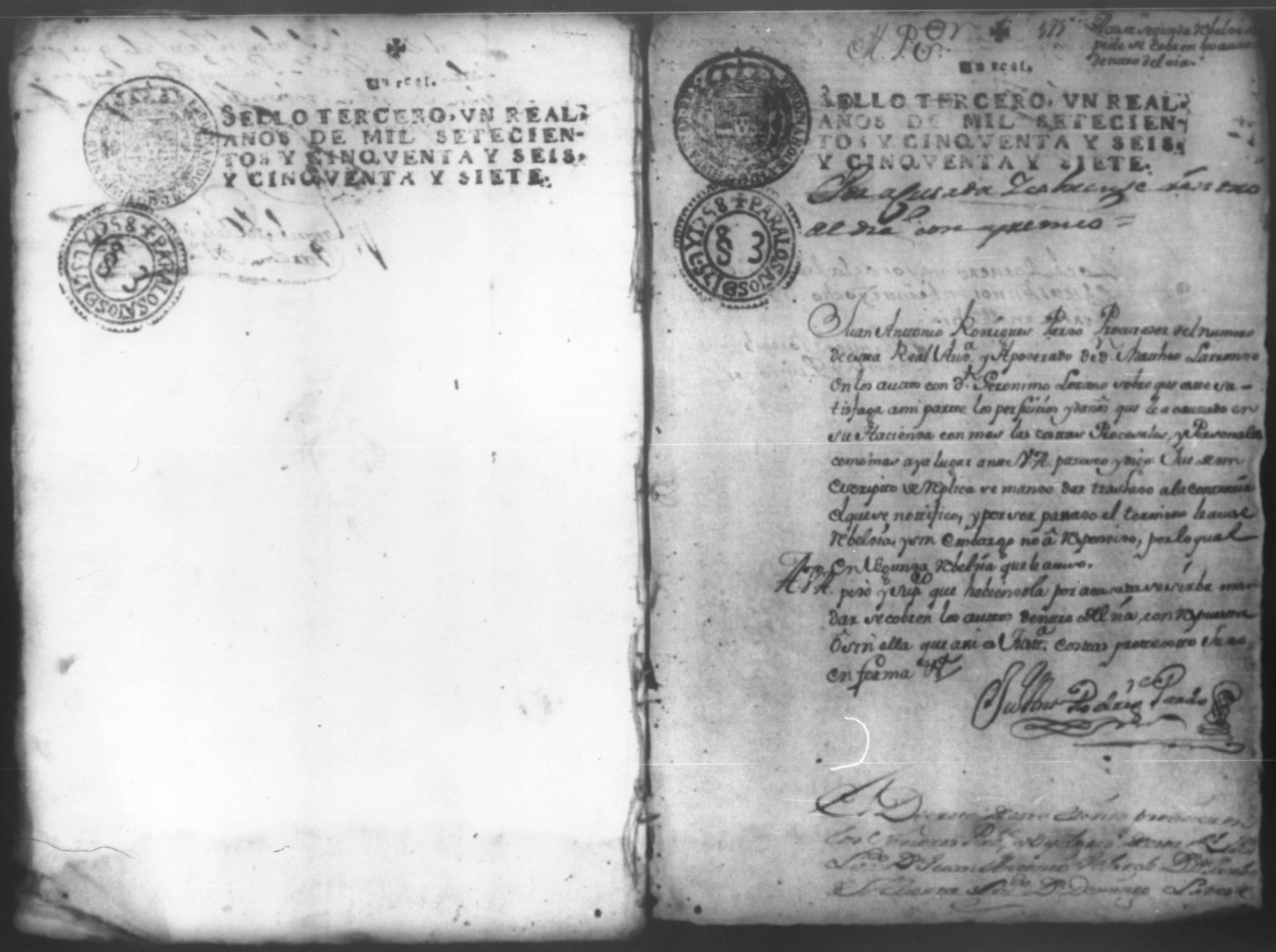 Temática: 1757.Juan Antonio Rodriguez Pardo procurador del numero de causa Real Auidencia y Apoderado de Don Matheo Larrando en los autos con Don Jeronimo Lozano sobre que este satisfaga a mi parte los perjuicios y daños que le a causado en su Haciencia.