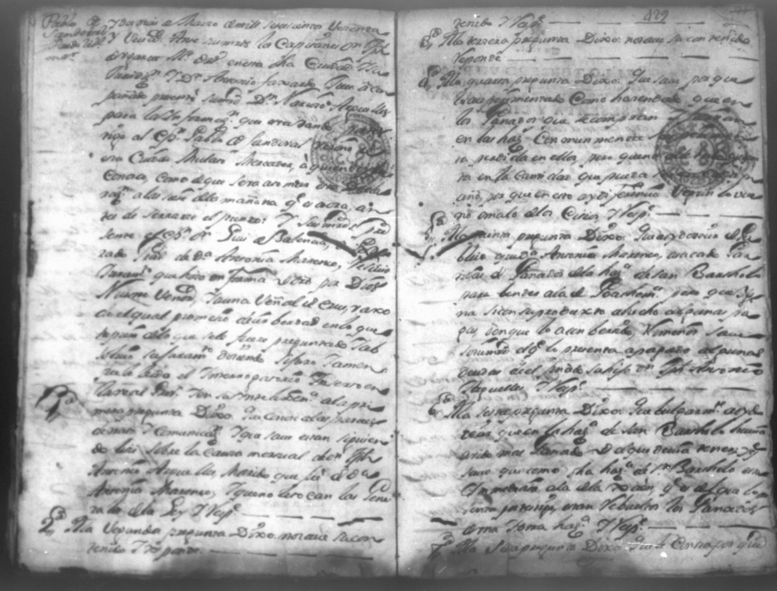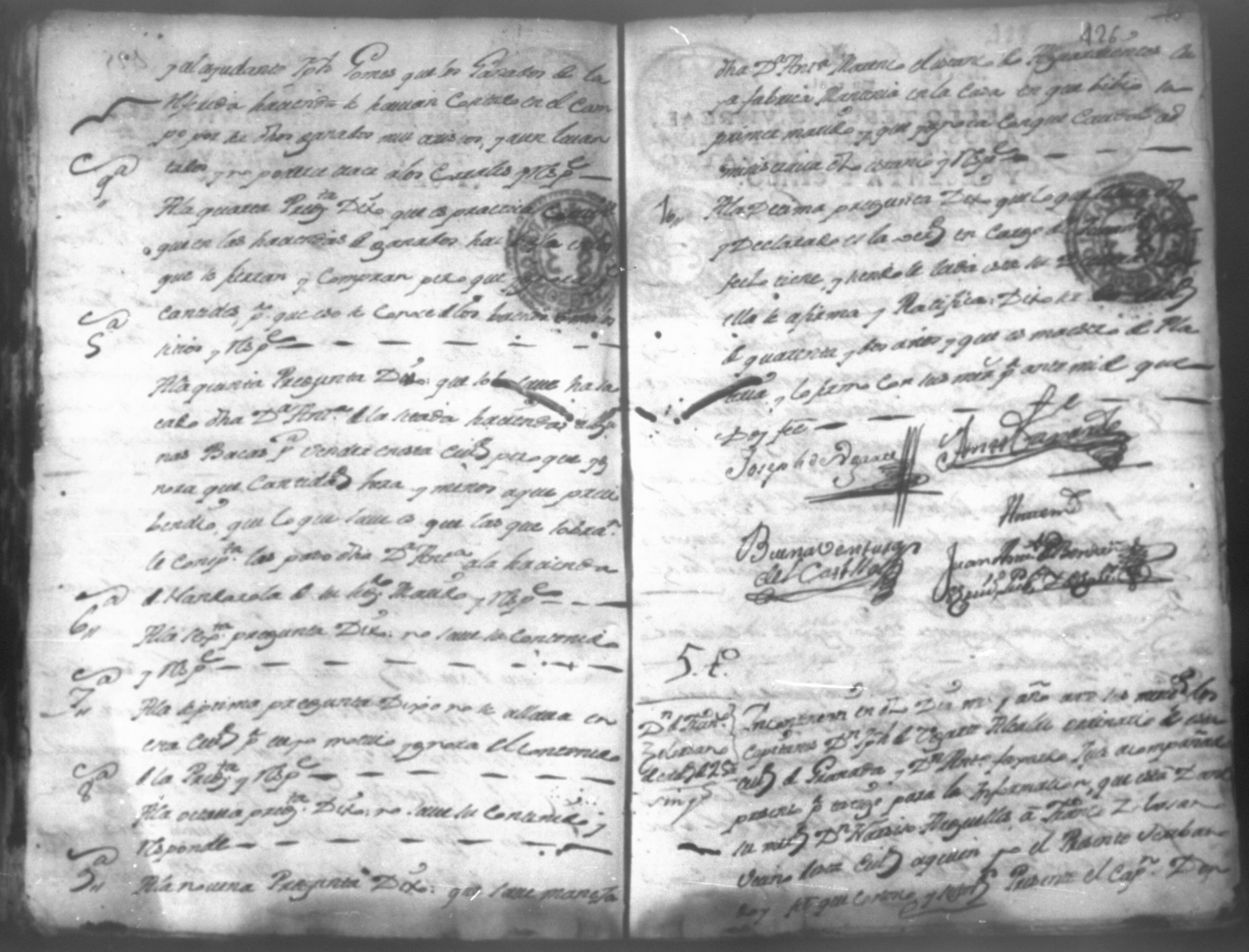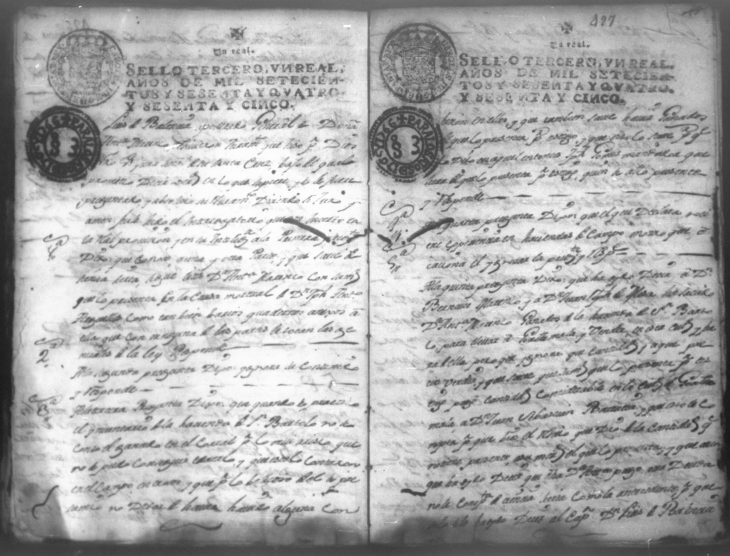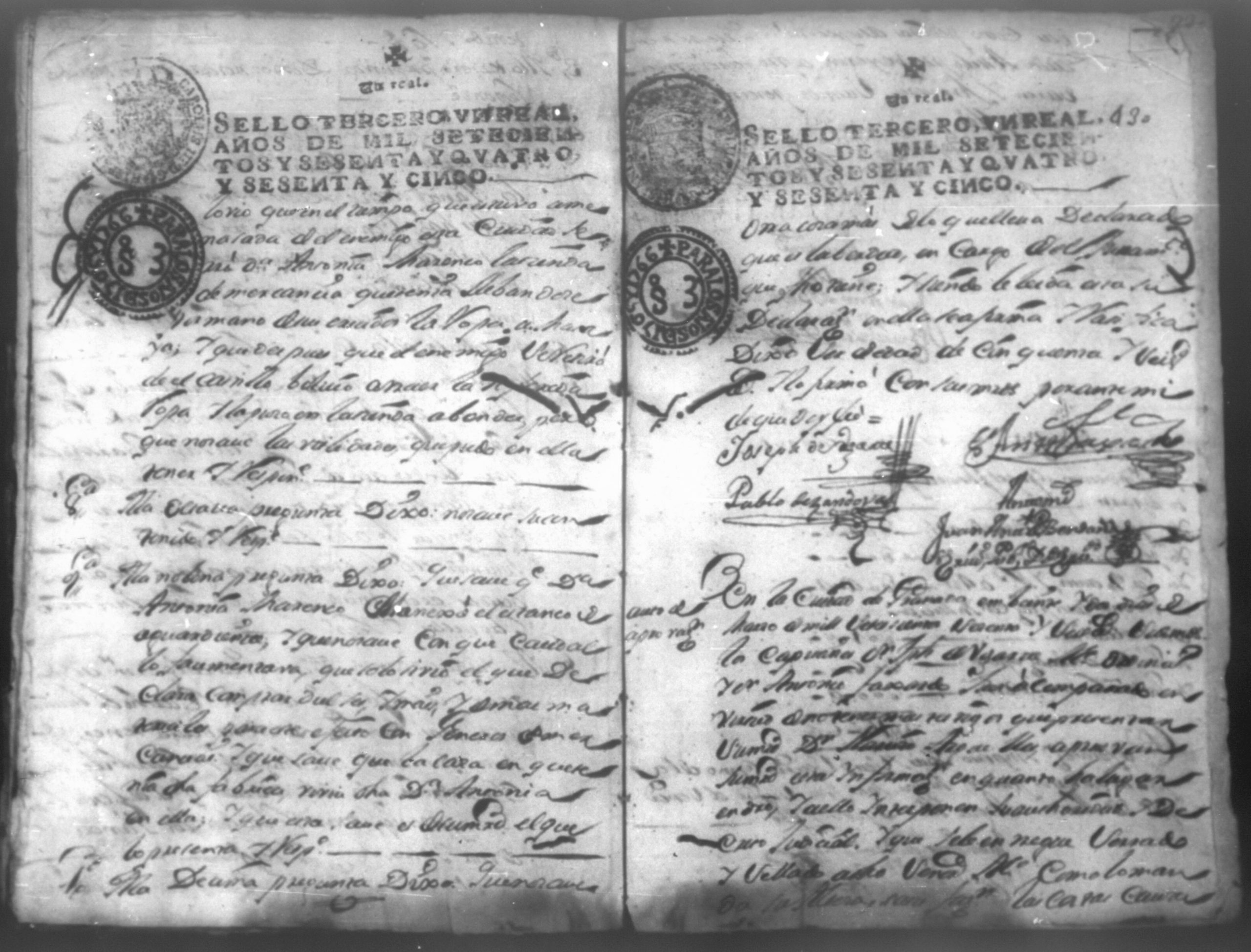 Temática: Año de 1766. [Receptoria] en la forma ordinaria a pedimiento de la parte de Don Narciso Joseph de Arguello en la causa de que se hace mencion al Alcalde Ordinario de la ciudad de Granada provincia de Nicaragua con lo demas que se expresa, sobre los autos con Doña Antonia Marenco viuda de Don Joseph Antonio sobre la nulidad de los inventarios de ganado que se inventariaron en la Hacienda San Bartolome en el Partido de Chontales.