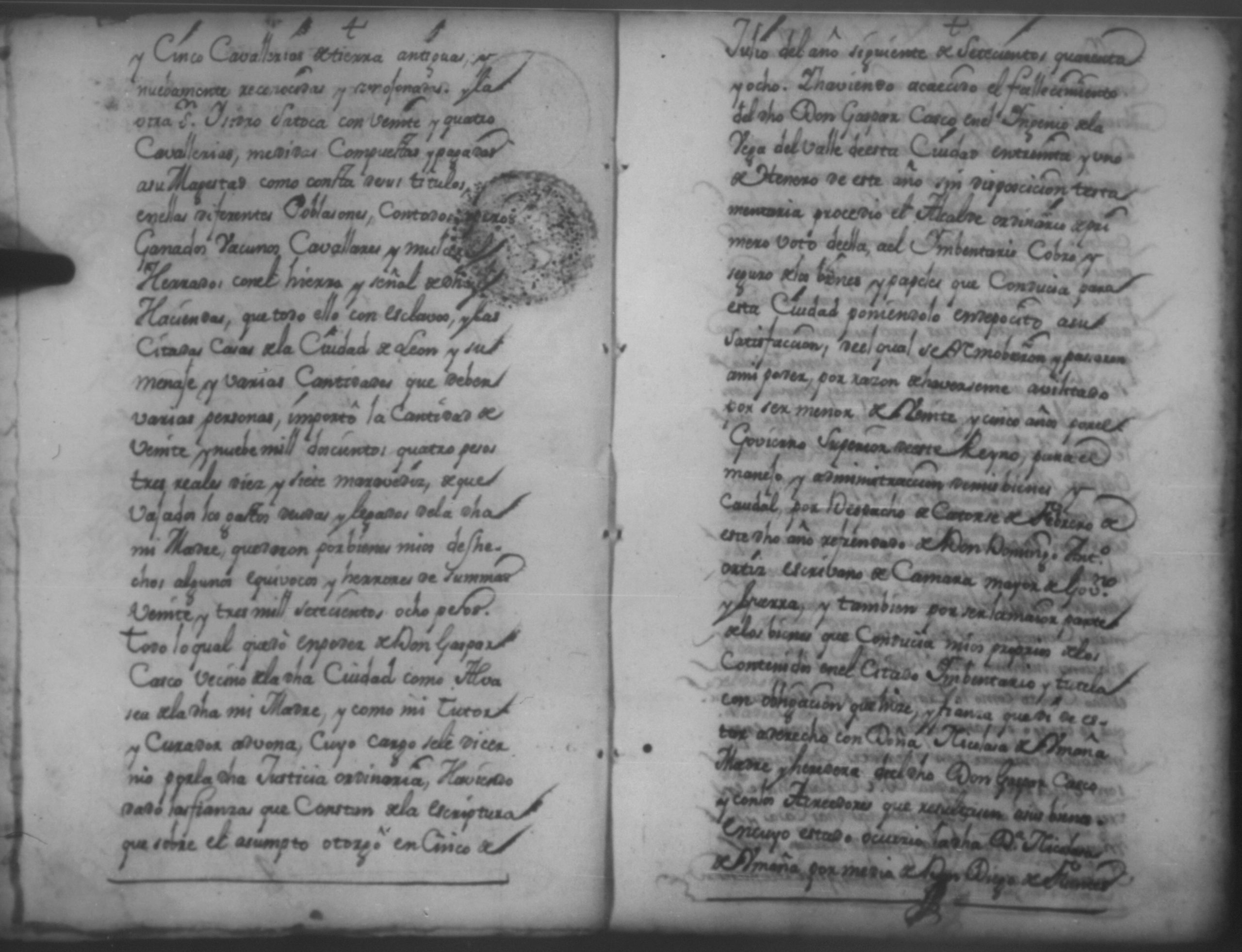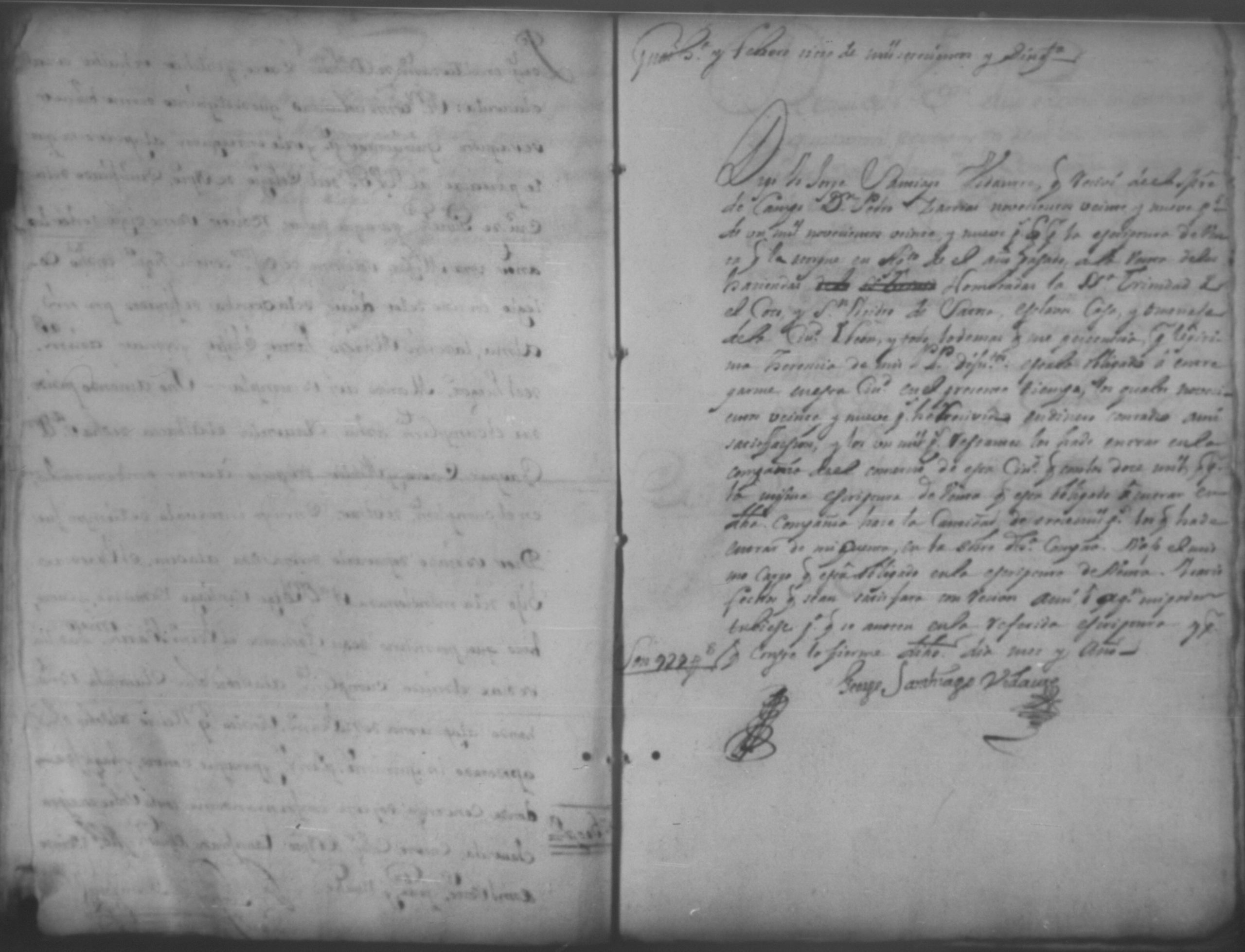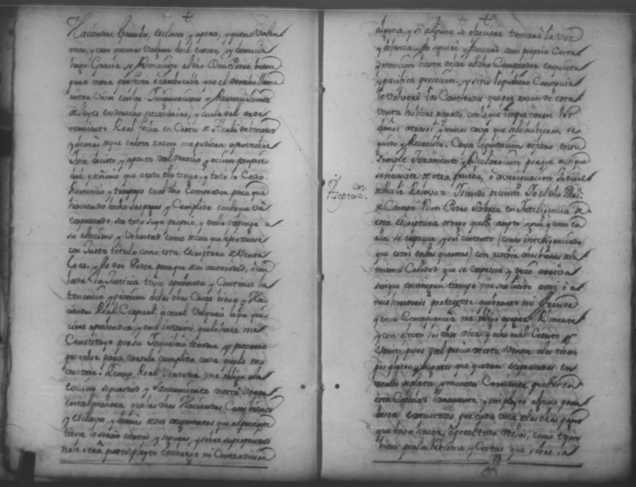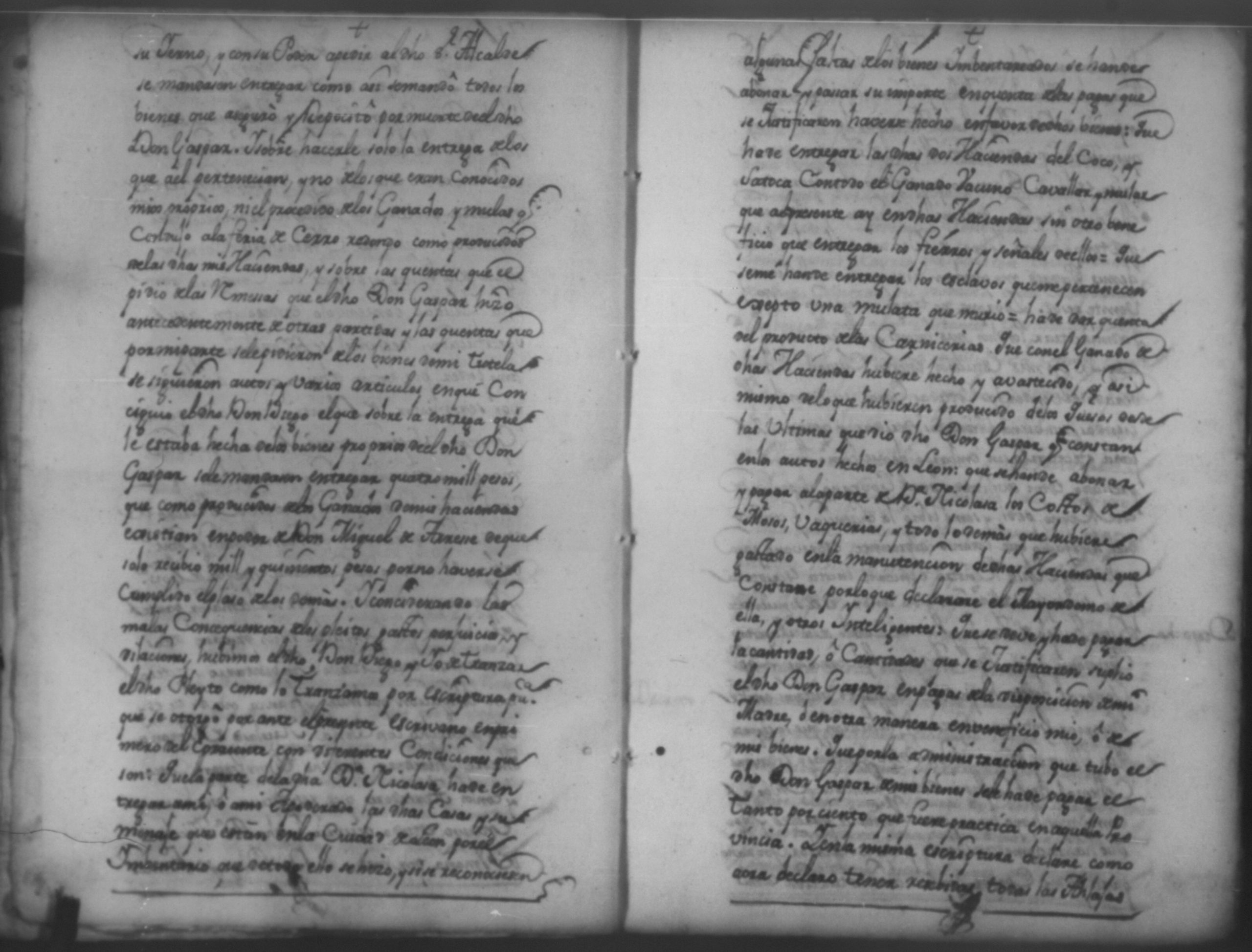 Temática: Año de 1750. Leon. Don Pedro Zarria [Regidor] y Alguacil Mayor de la ciudad de León Provincia de Nicaragua por Vía de Apelación nulidad, agravio por aquella vía y forma que mejor en dicho lugar haya ante usted comparezco y digo como consta de los testimonio de autos y escrituras que con el juramento necesario presento mi parte [...] de Don George Santiago de Vidaurre las haciendas, casas, esclavos y demas bienes que le dieron por herencia.