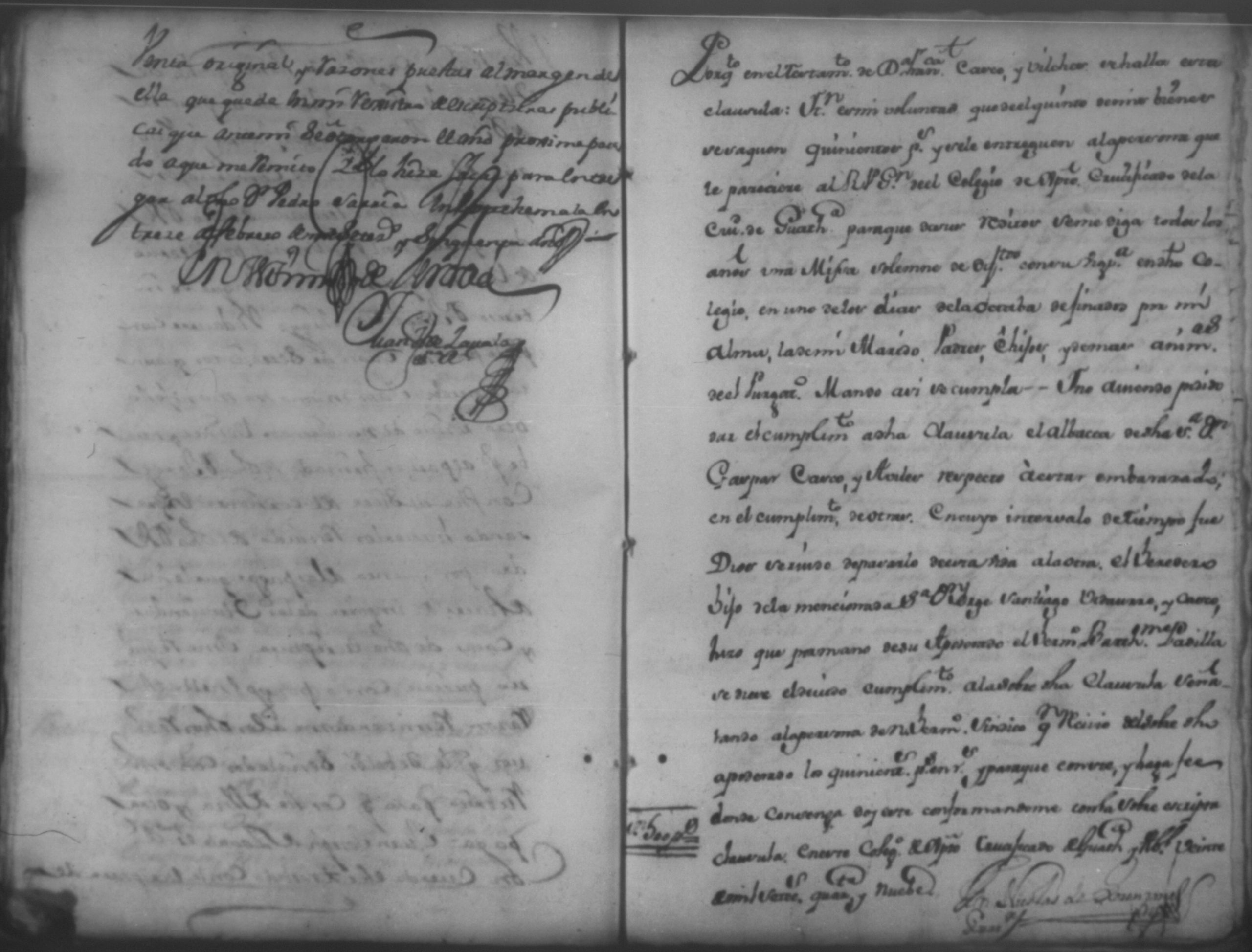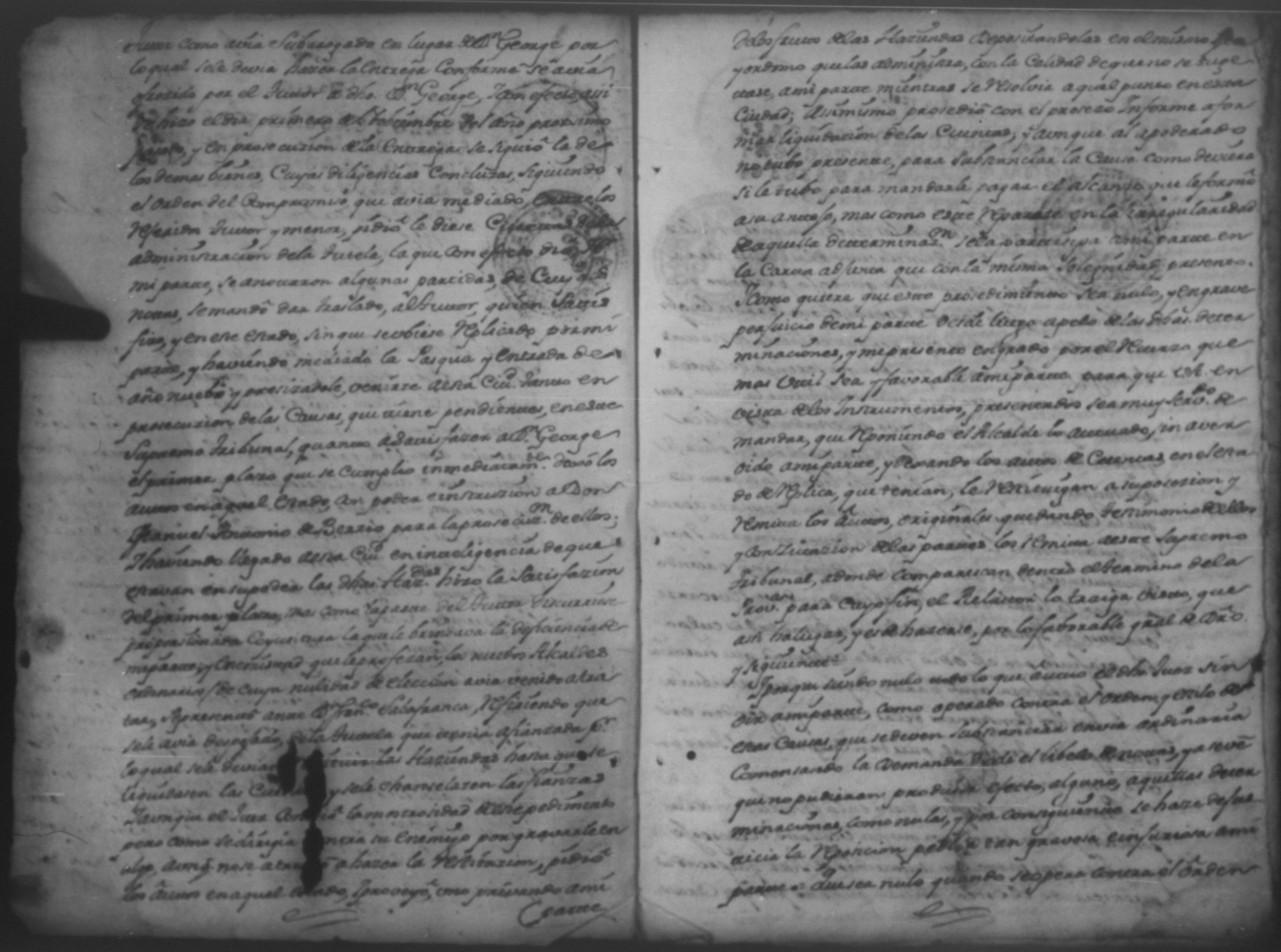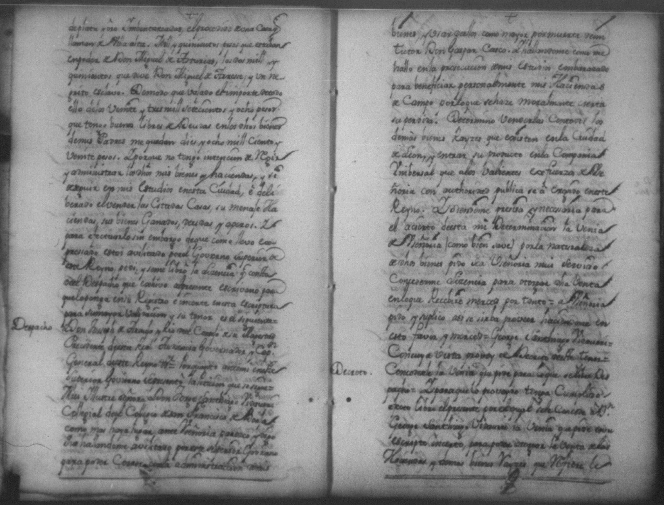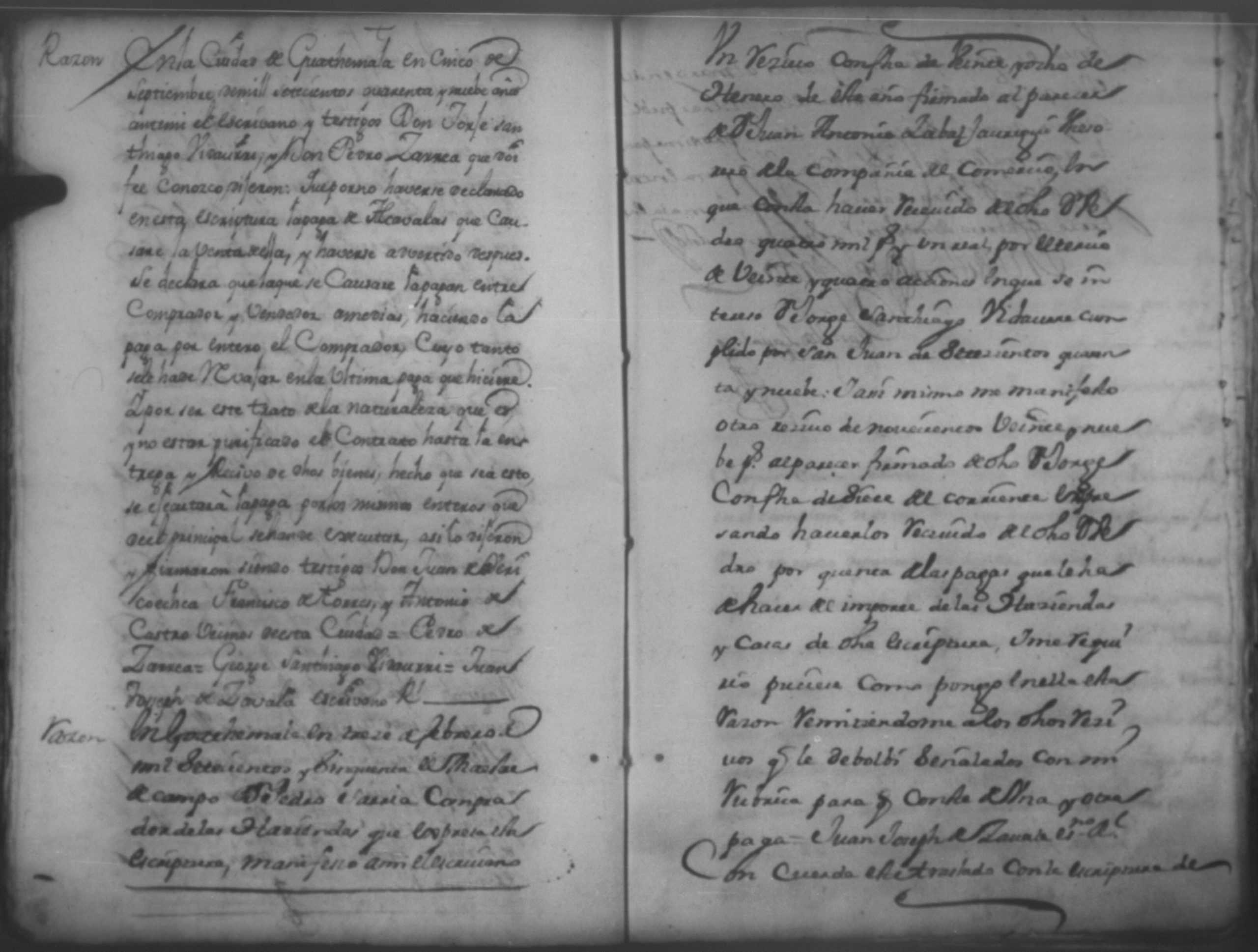 Temática: Año de 1750. Leon. Don Pedro Zarria [Regidor] y Alguacil Mayor de la ciudad de León Provincia de Nicaragua por Vía de Apelación nulidad, agravio por aquella vía y forma que mejor en dicho lugar haya ante usted comparezco y digo como consta de los testimonio de autos y escrituras que con el juramento necesario presento mi parte [...] de Don George Santiago de Vidaurre las haciendas, casas, esclavos y demas bienes que le dieron por herencia.
