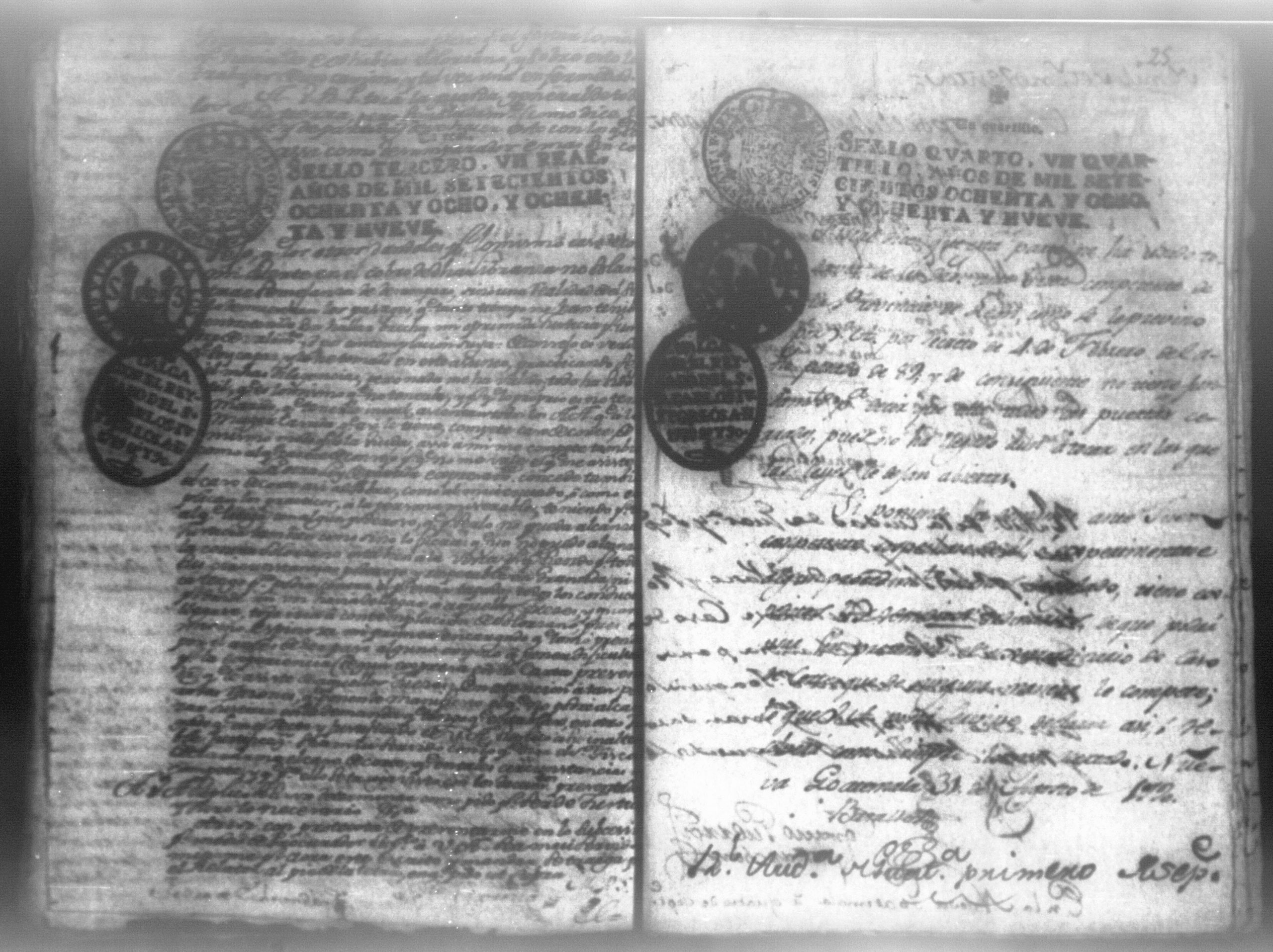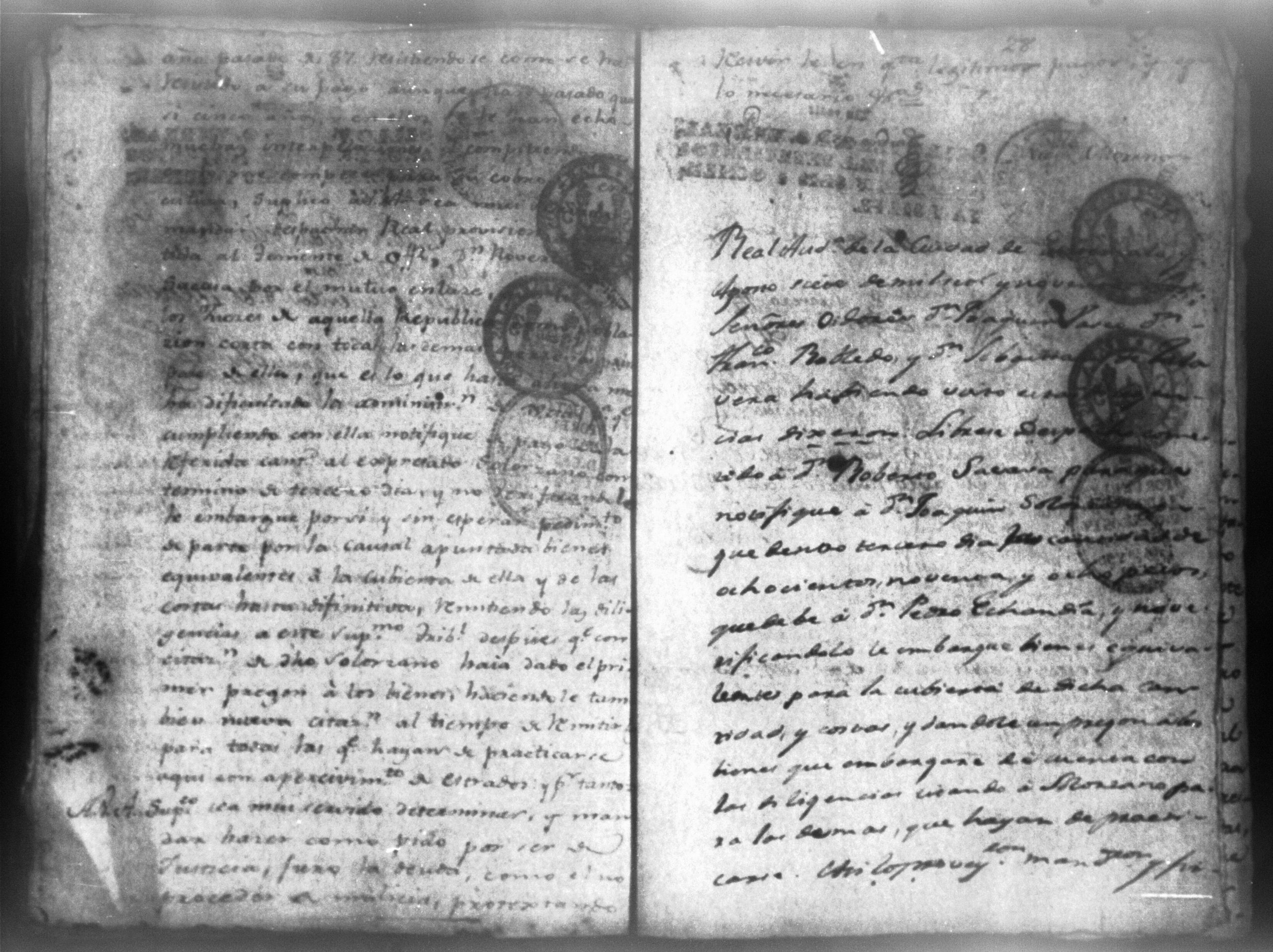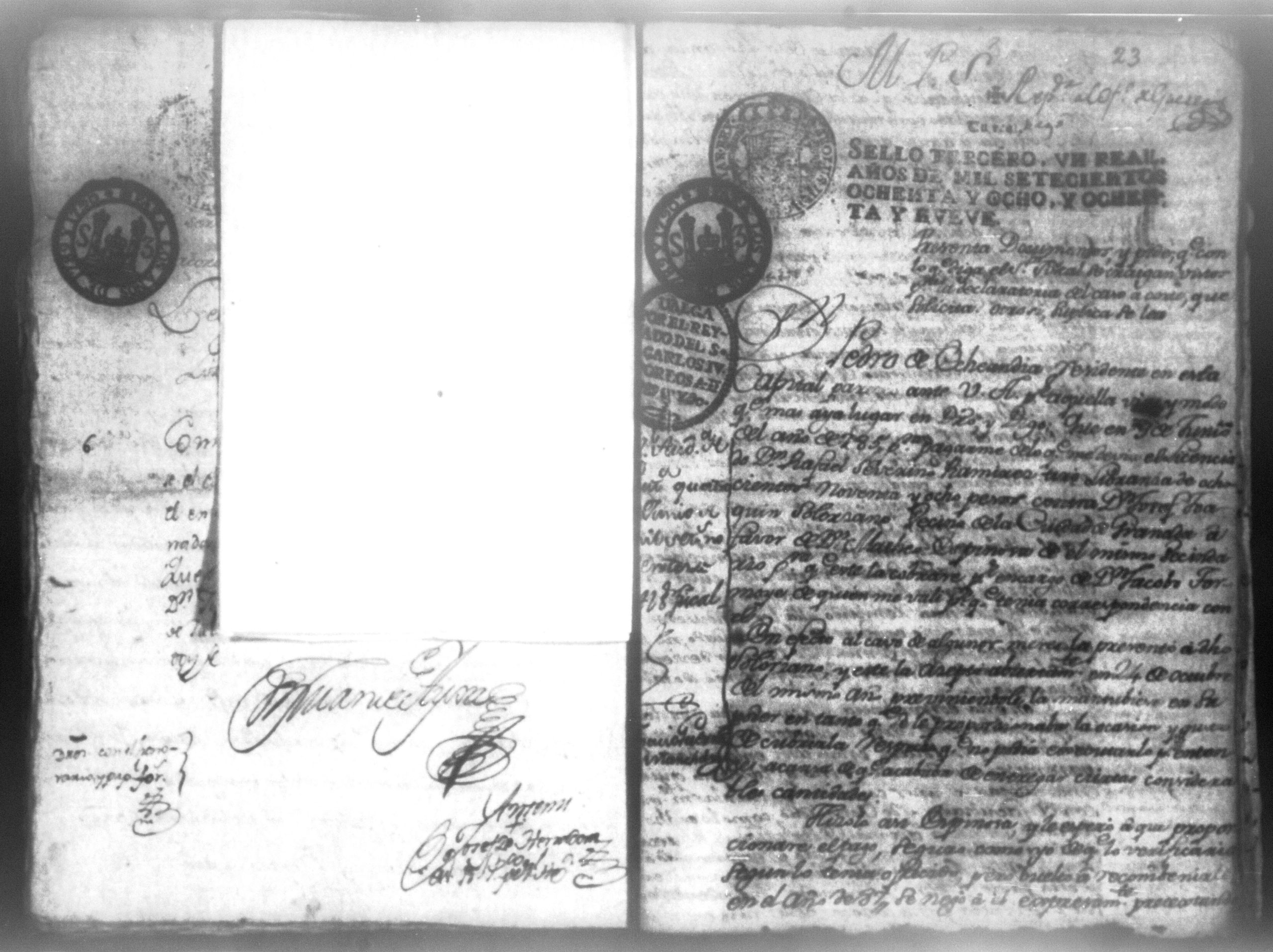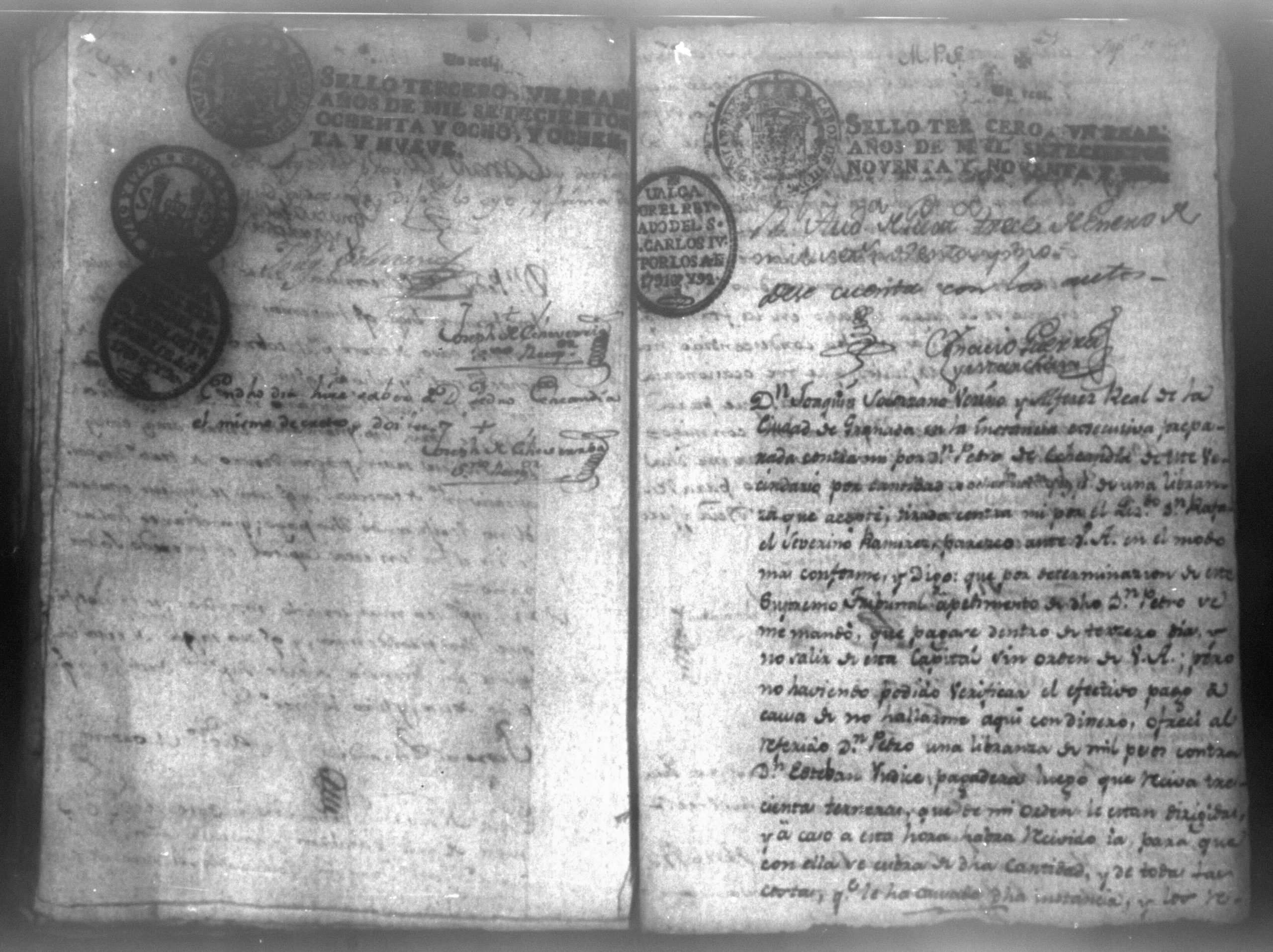 Temática: Audiencia León, 1790. Don Pedro Echandia sobre que se declare caso de corte para el cobro de una libranza que le adeuda don Josef Juaquin Solorzano, alferez real de Granada. "Es en mi poder el Despacho del Supremo Tribunal que Usted me acompaña con oficio de 7 del presnte, para que notifique a Don Juaquin Zolorzano exhiva dentro 3o dia 898 pesos que deve a Don Pedro Echandia crese Comercio y hallandose este sugeto caminando para esa Capital á su ingreso puede la parte repetir su derecho; no obstante en caso de que por algun contingente se debuelva á esta Ciudad procederé en la forma que se me previene, lo participo a Usted para su inteligencia". Firma Roverto Sacasa. (Extracto del folio 29, imagen 36)