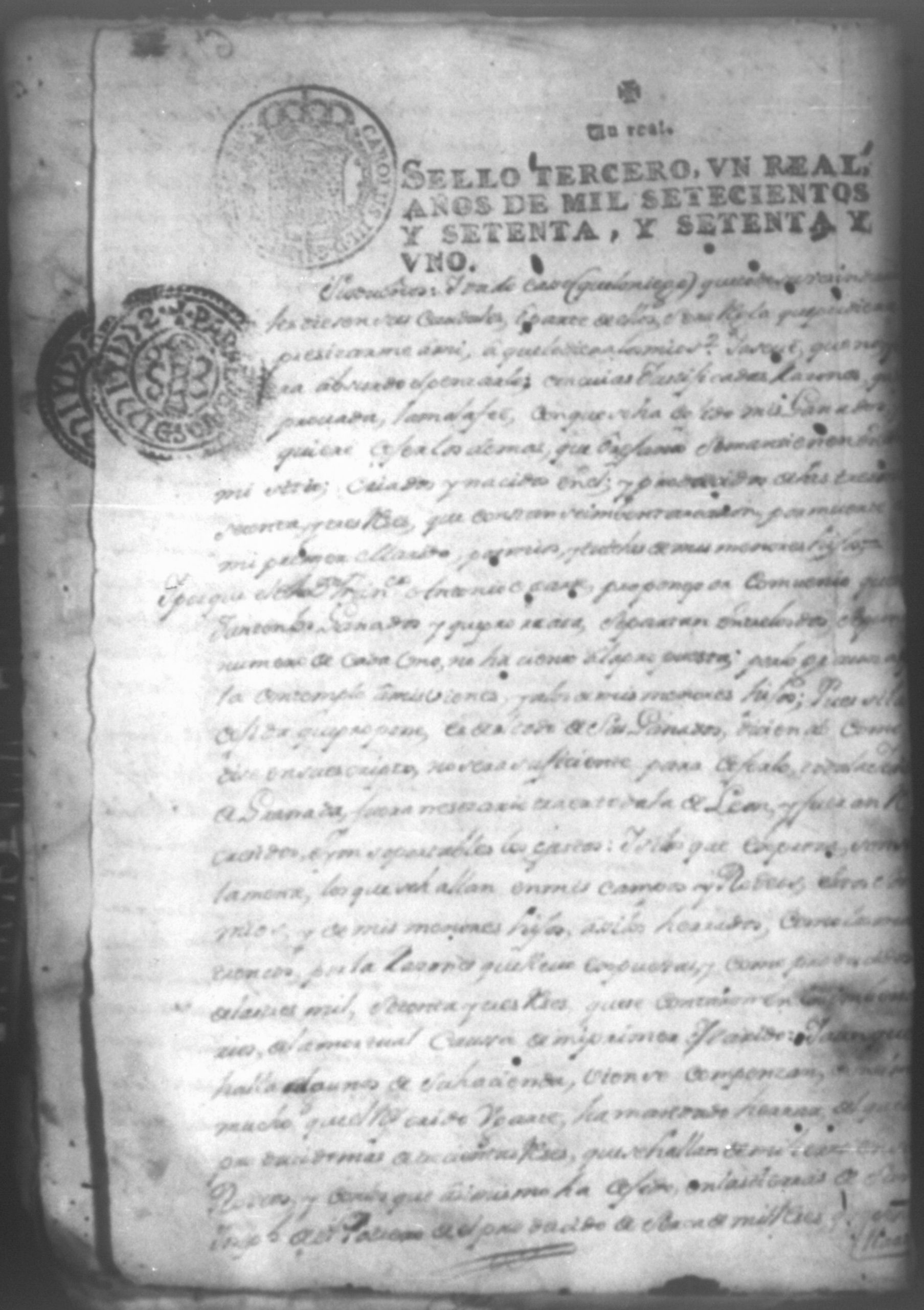 Don Raphael Diaz Caveza de Baca contra Francisco Antonio Ugarte, Granada 1772