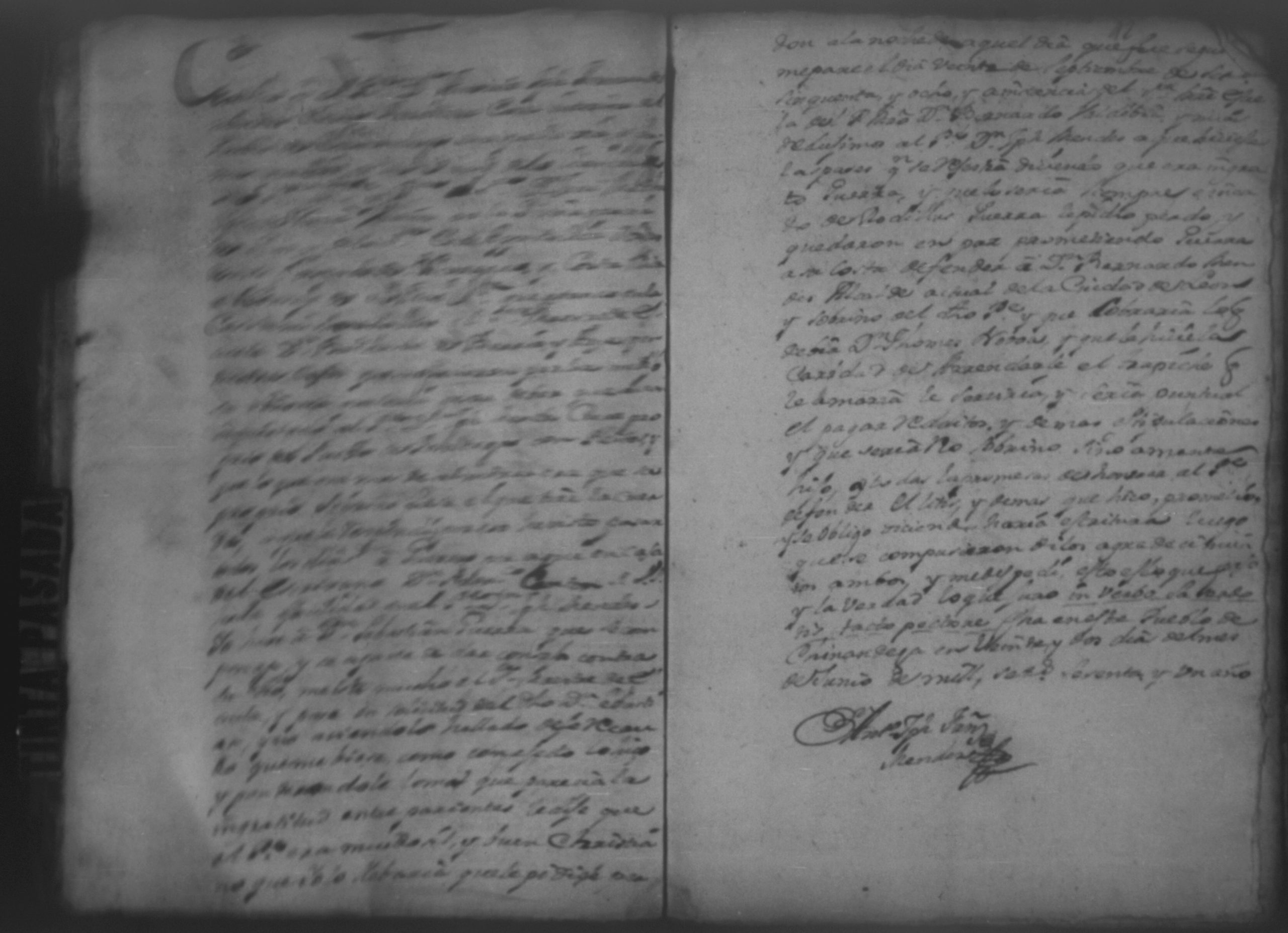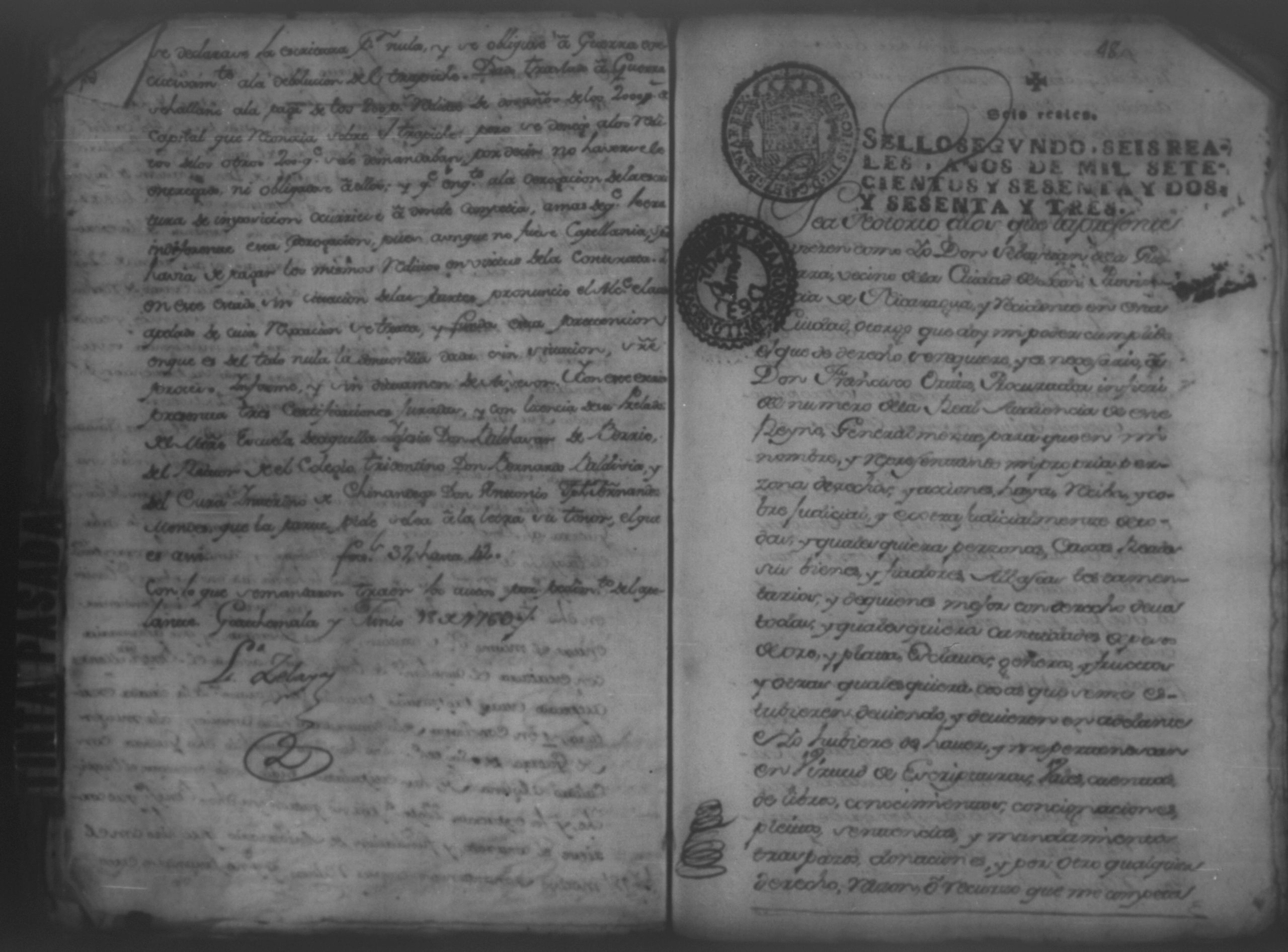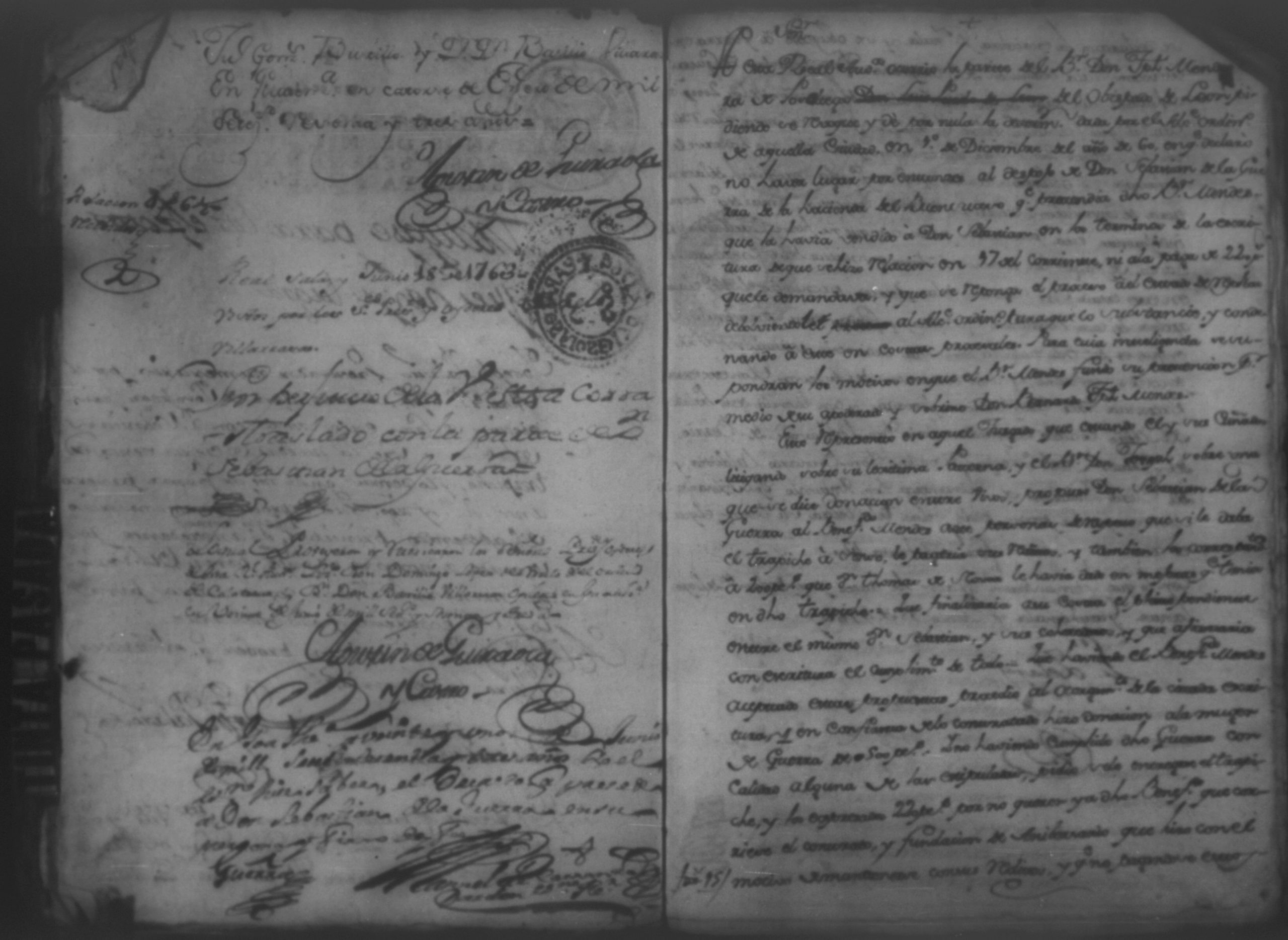 Don Sebastian de la Guerra con Don José Mendez sobre propiedad de una hacienda, Nicaragua 1763