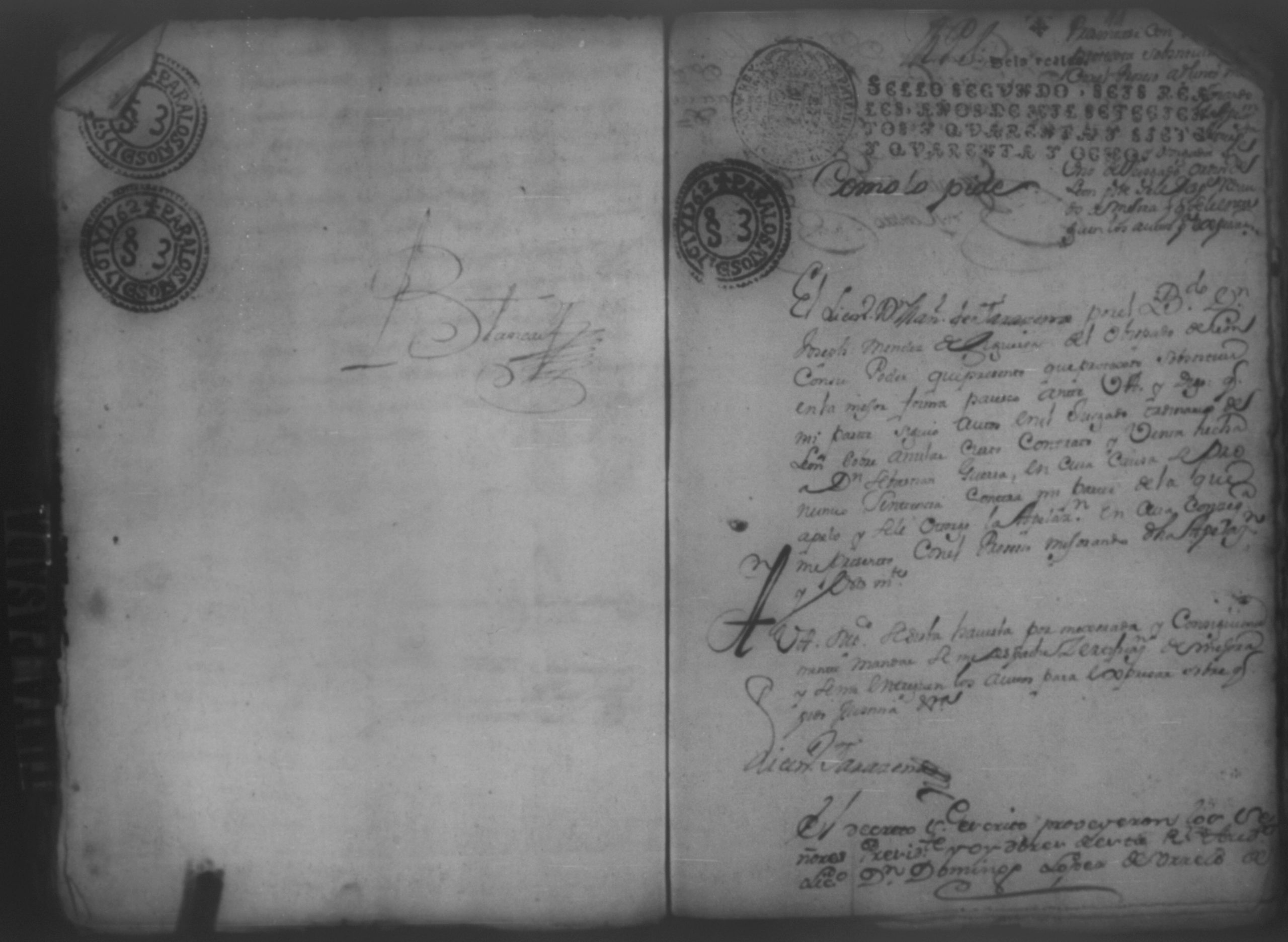 Temática: Nicaragua. Audiencia, Año de 1763. Don Sebastian de la Guerra con el [Beneficiado Rro.] Don José Mendez sobre propiedad de una hacienda.