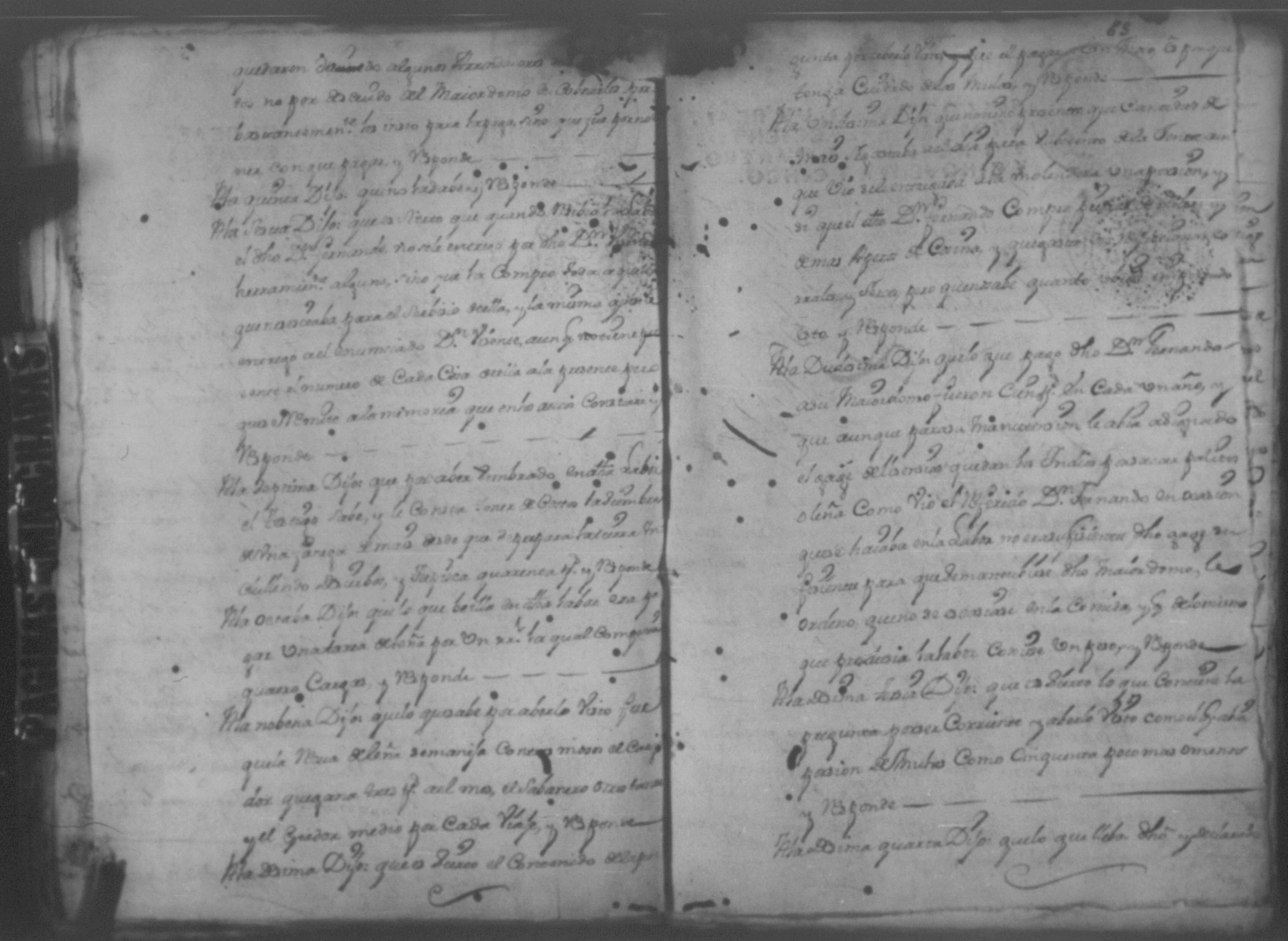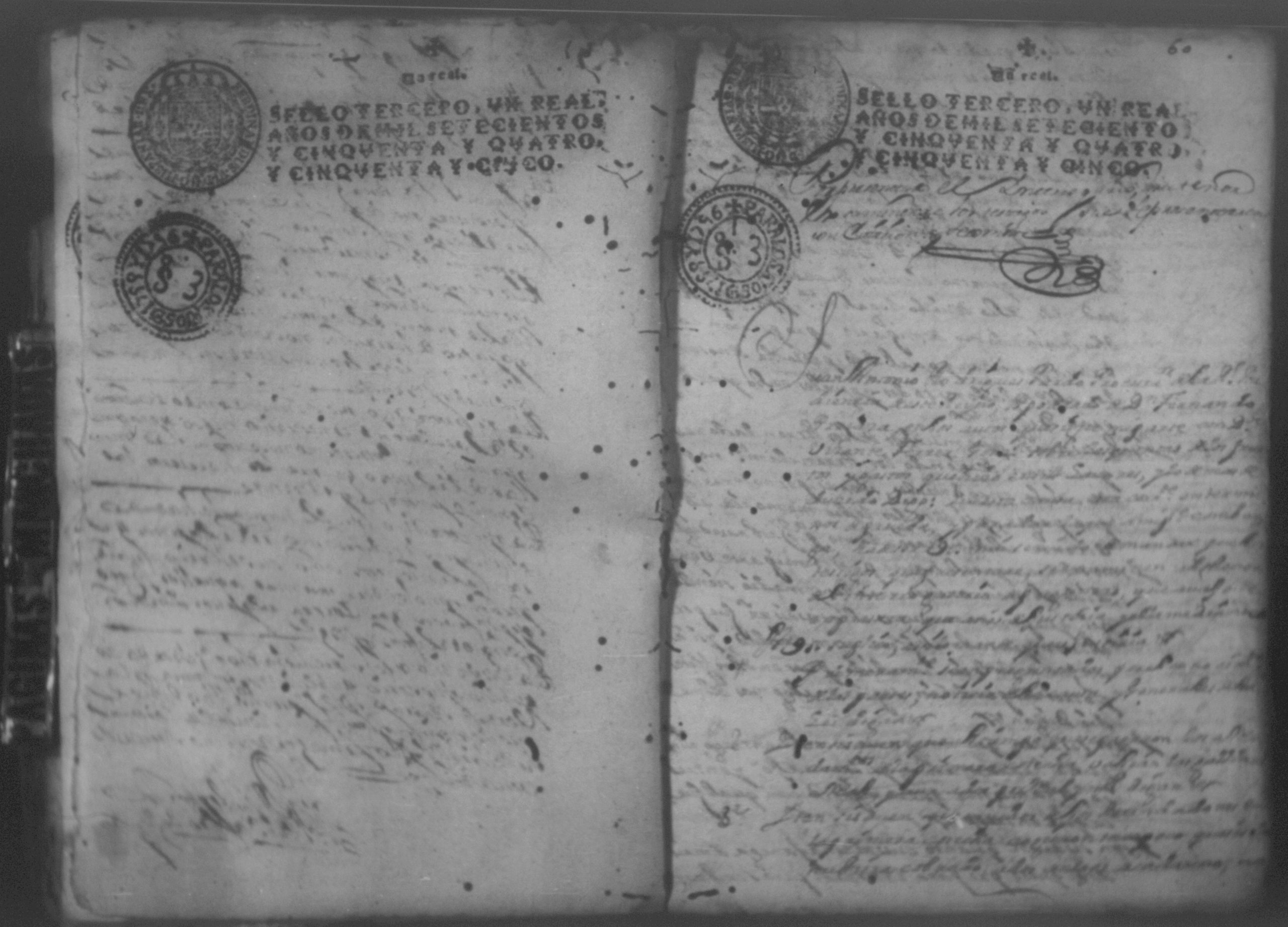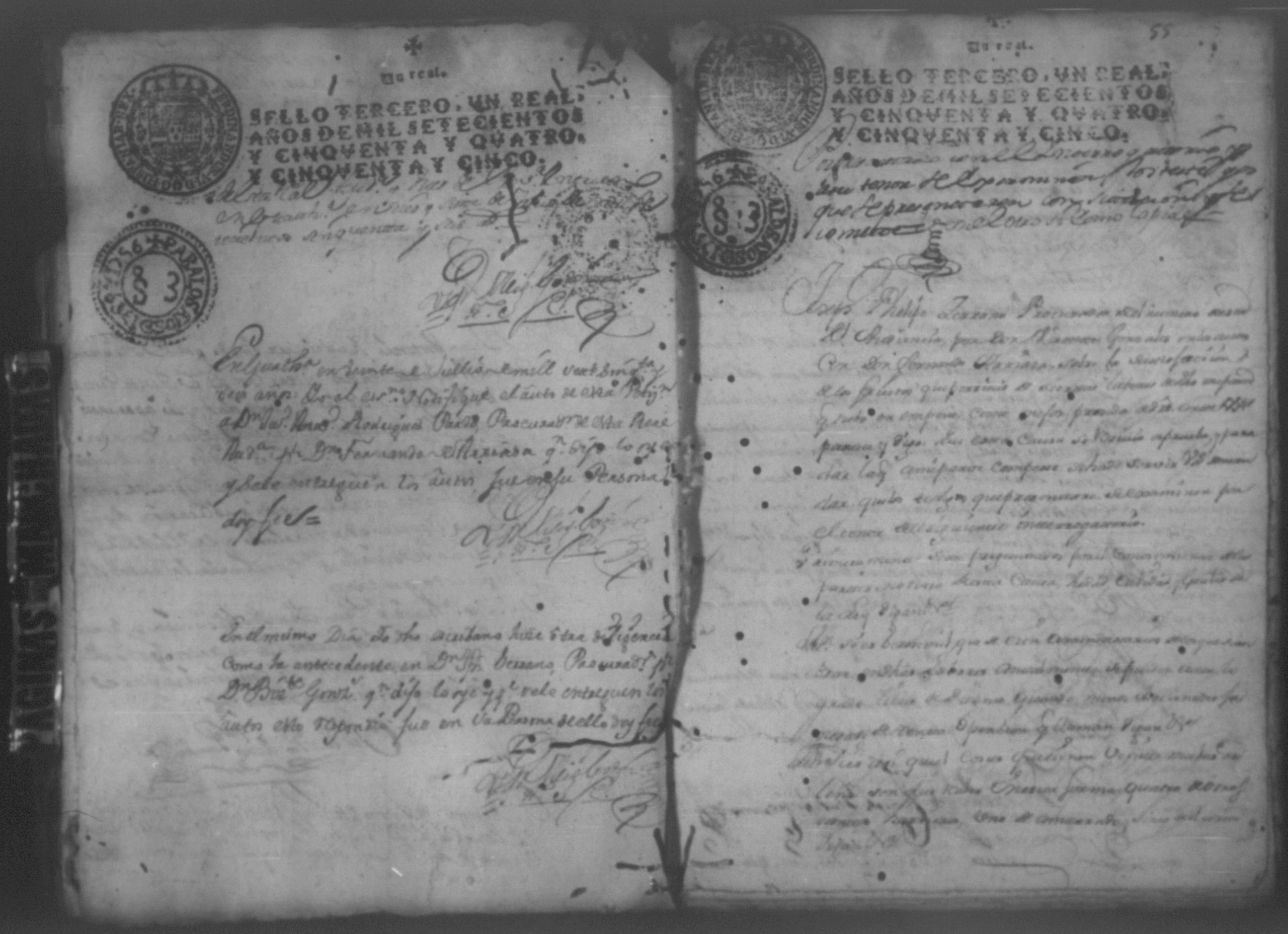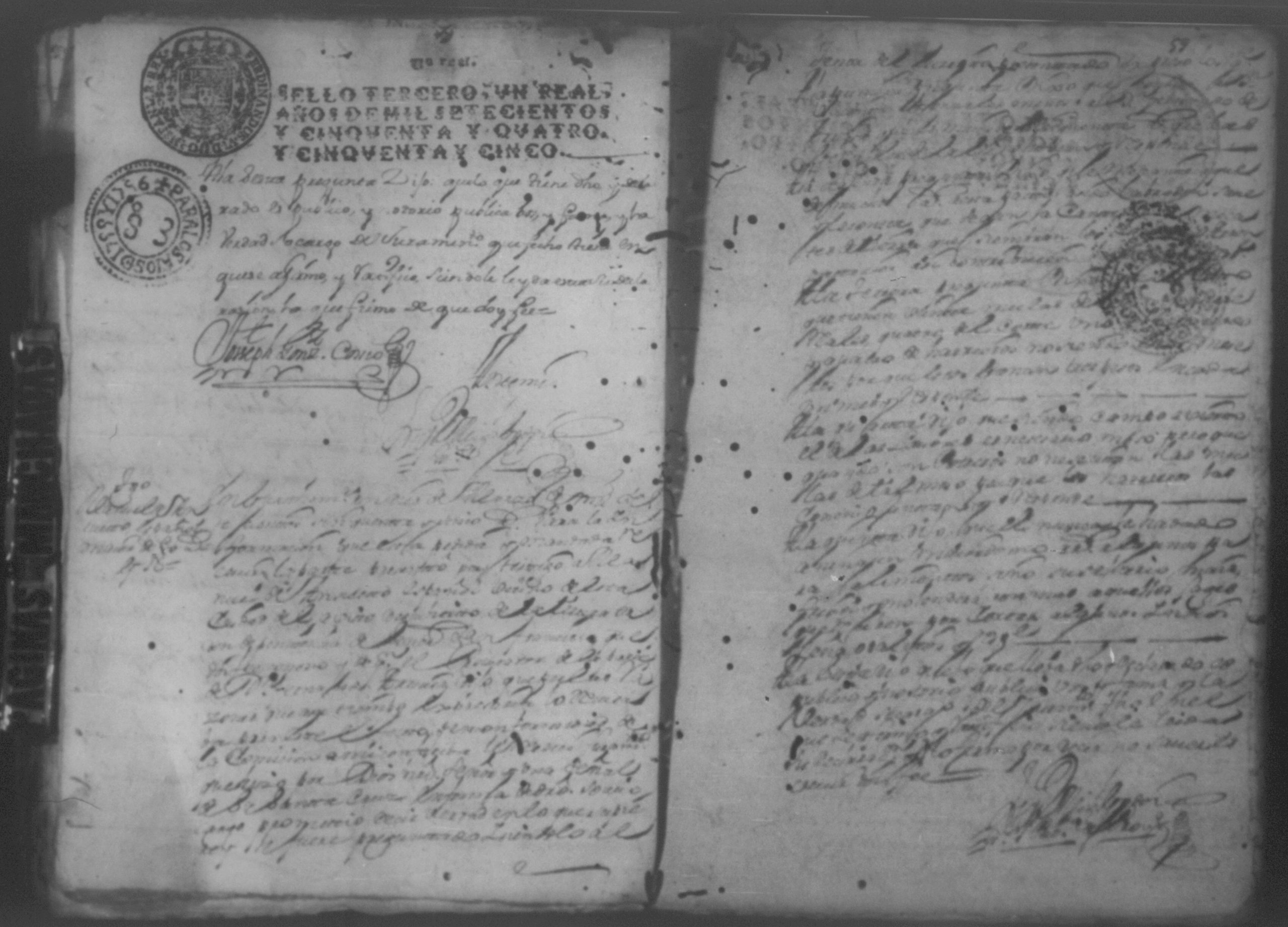 Temática: Año de 1757. Nicaragua. Don Vicente Ignacio Gonzalez reconozca la escriptura que se menciona por lo que toca a su muger Doña Maria Gertrudis Dardon se comette respecto de que de mancomun la otorgaron y firmaron y fecho […].