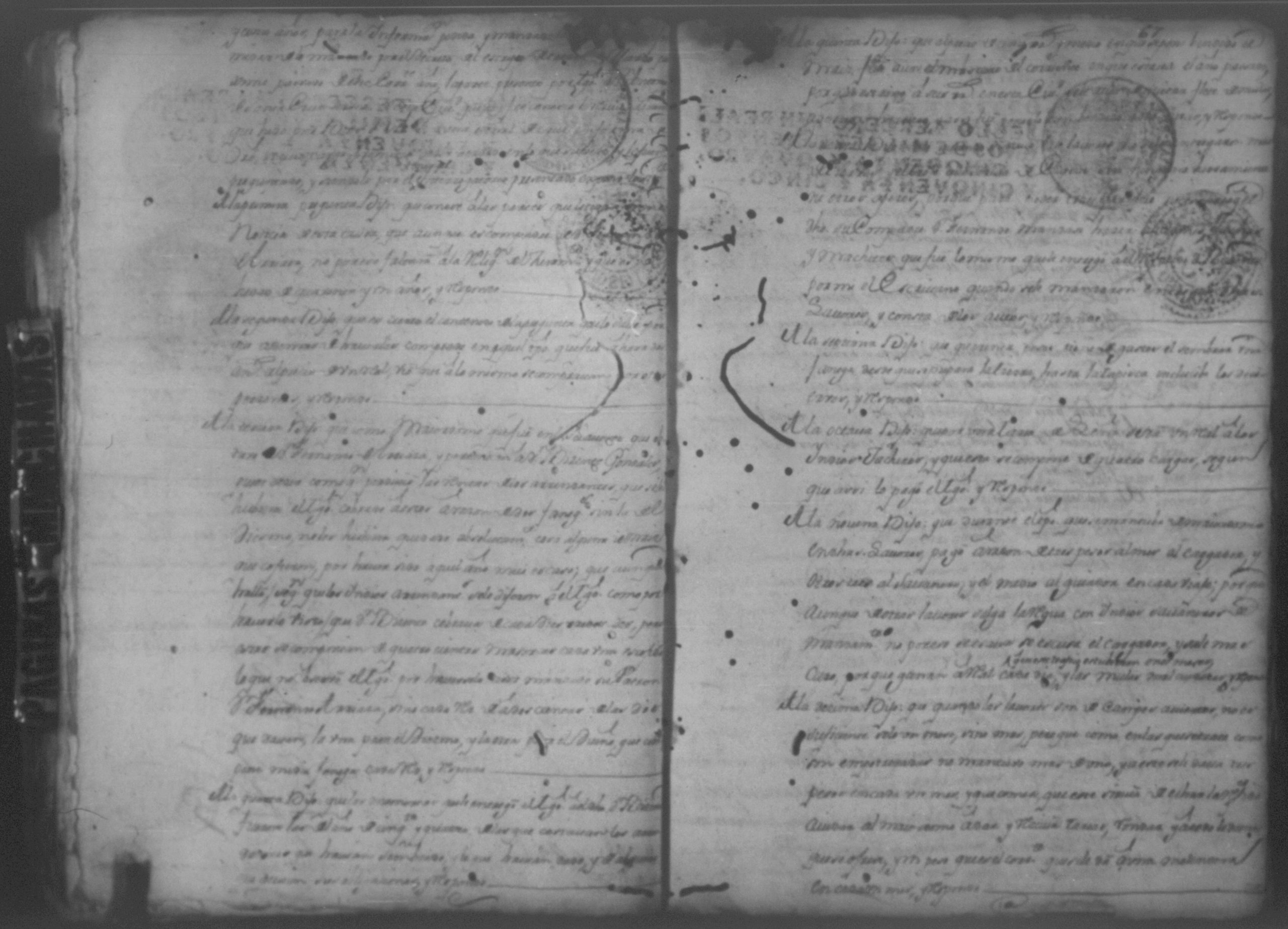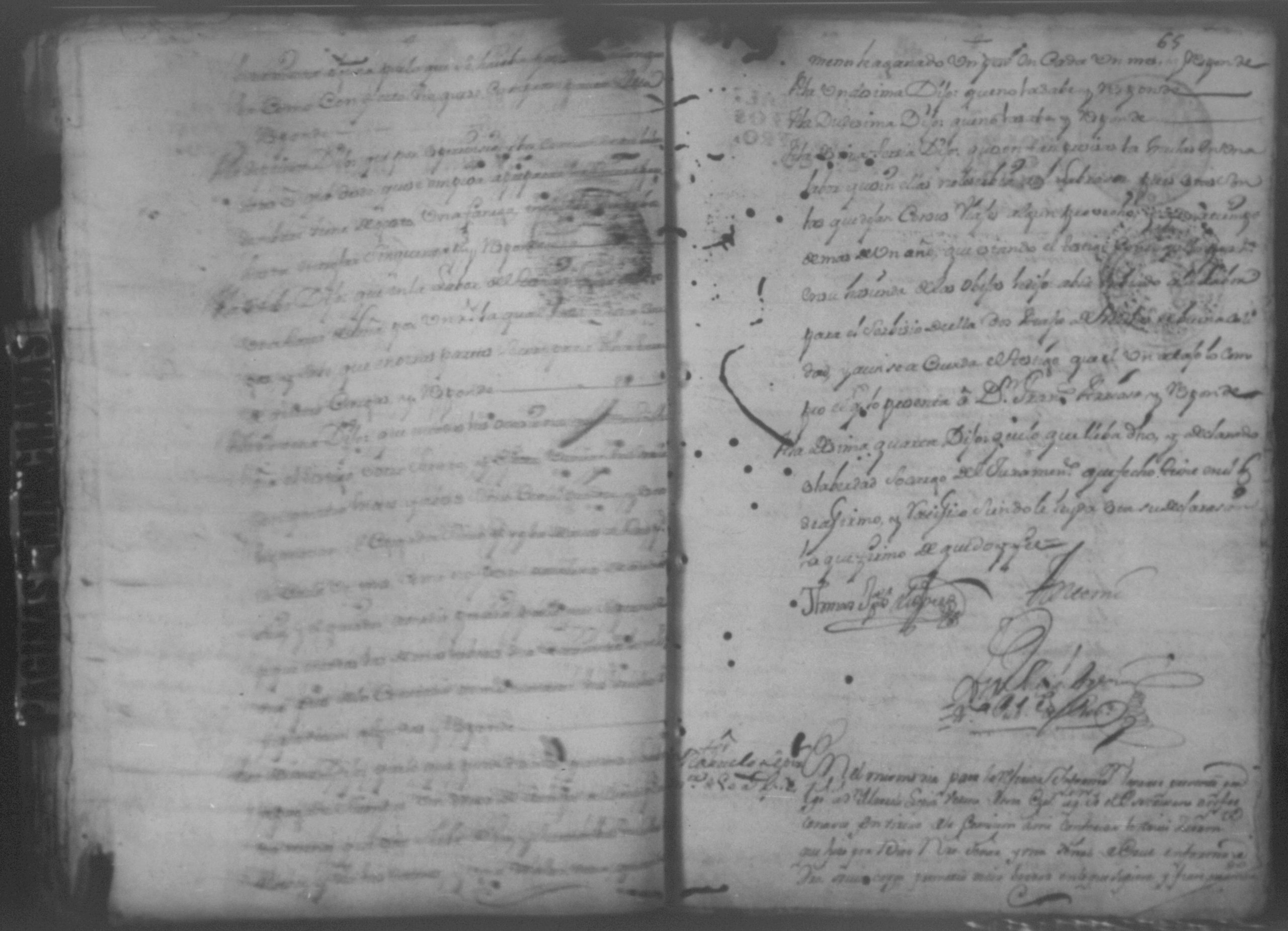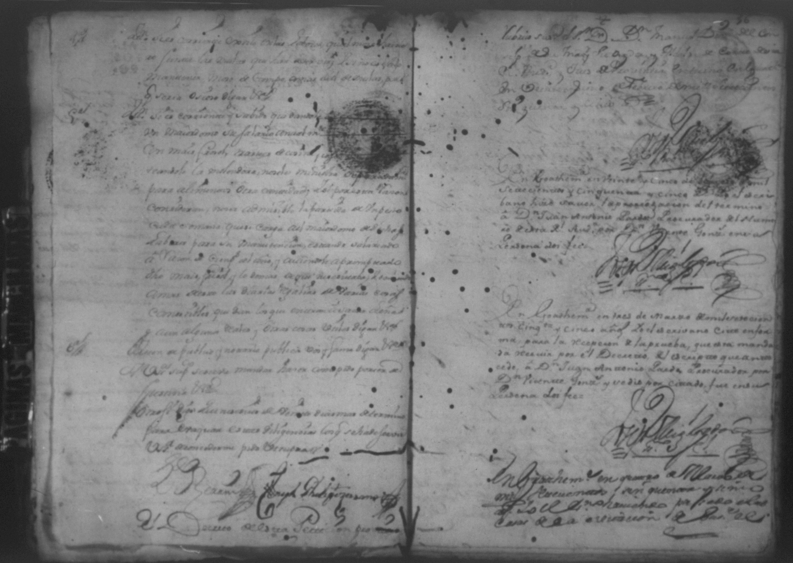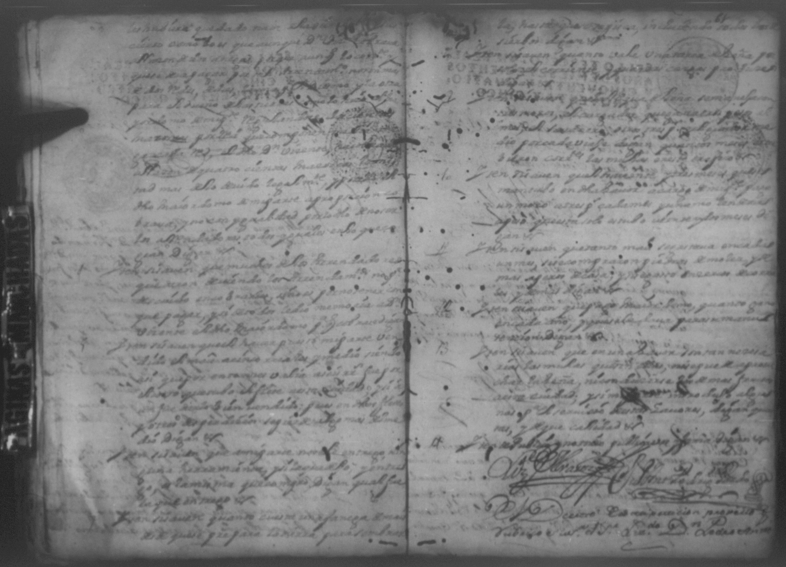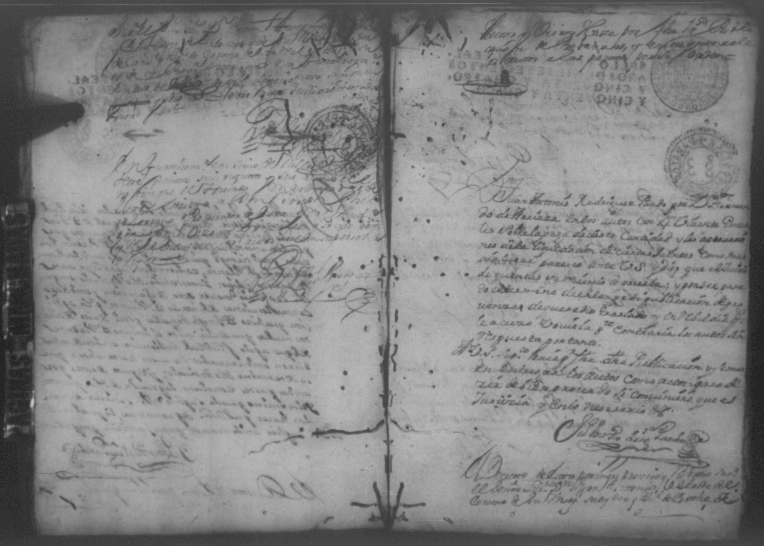 Temática: Año de 1757. Nicaragua. Don Vicente Ignacio Gonzalez reconozca la escriptura que se menciona por lo que toca a su muger Doña Maria Gertrudis Dardon se comette respecto de que de mancomun la otorgaron y firmaron y fecho […].