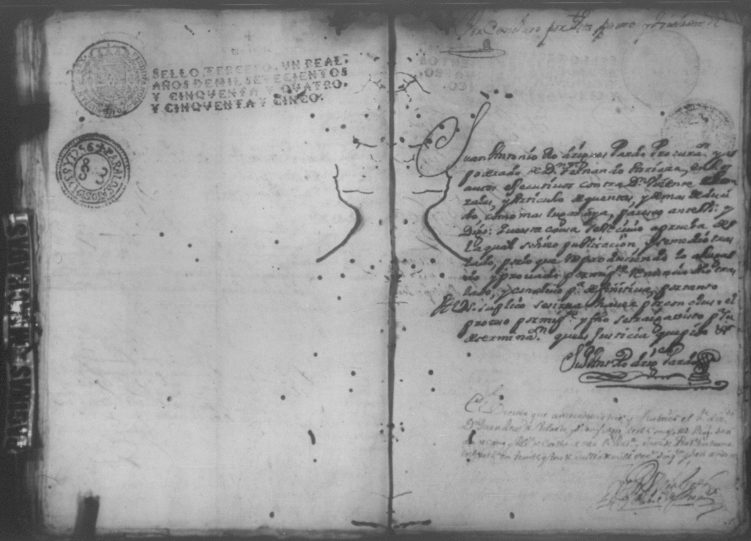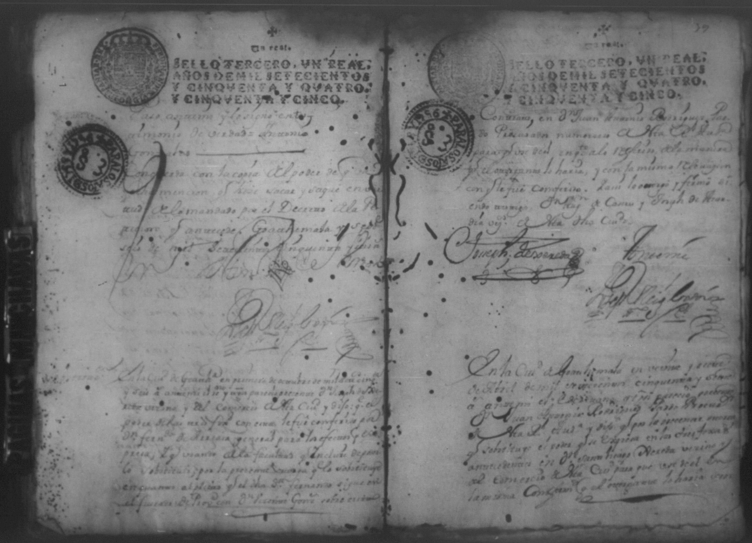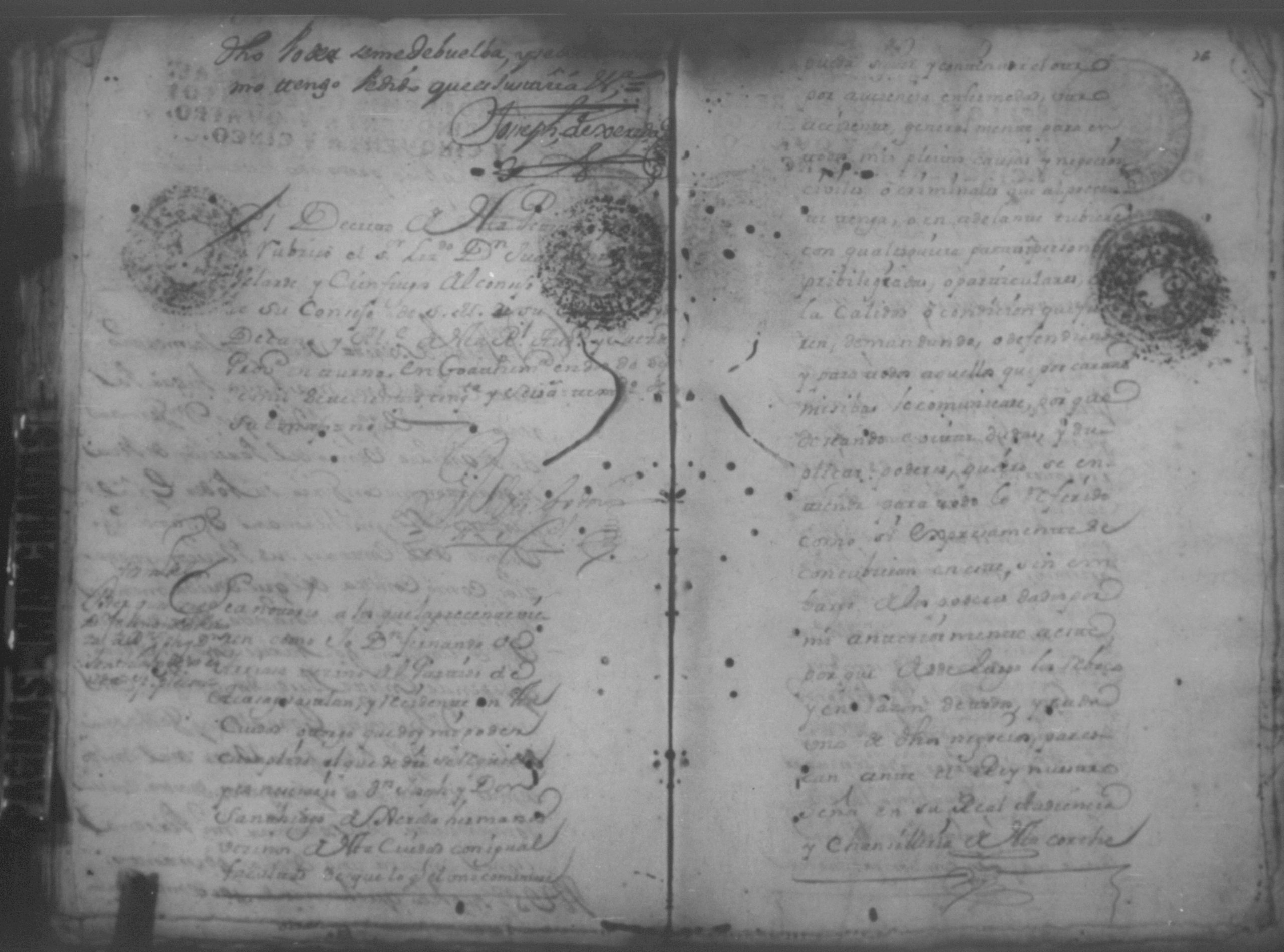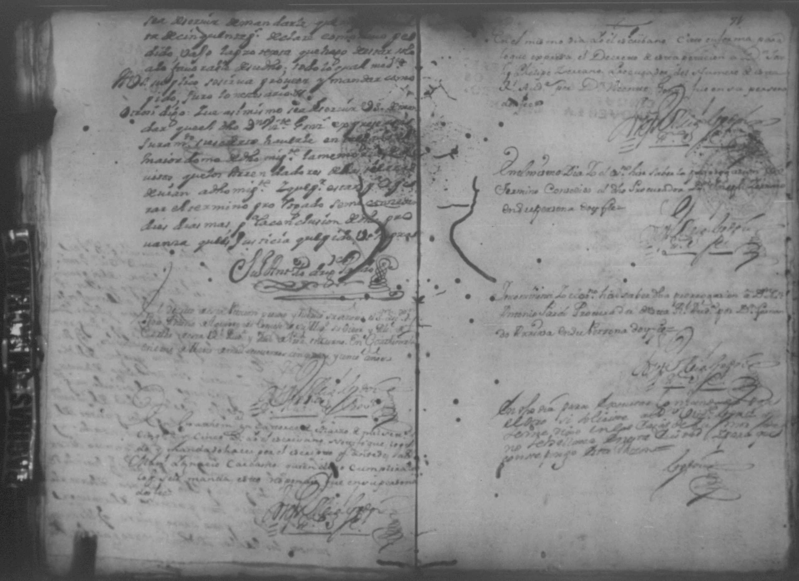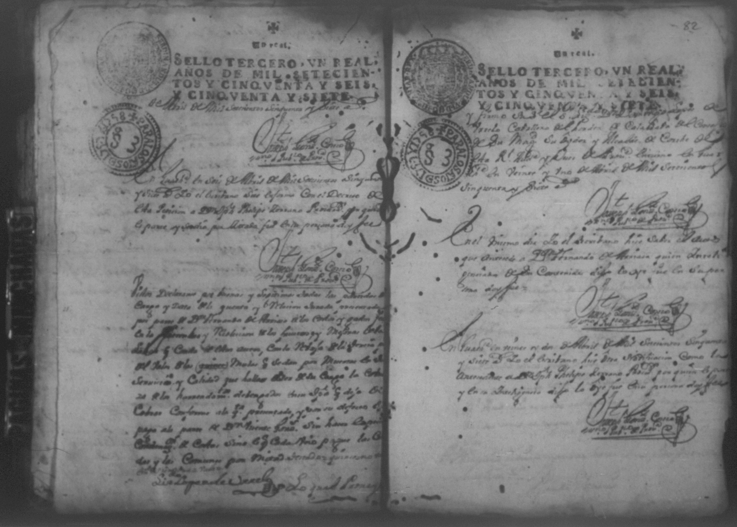 Temática: Año de 1757. Nicaragua. Don Vicente Ignacio Gonzalez reconozca la escriptura que se menciona por lo que toca a su muger Doña Maria Gertrudis Dardon se comette respecto de que de mancomun la otorgaron y firmaron y fecho […].