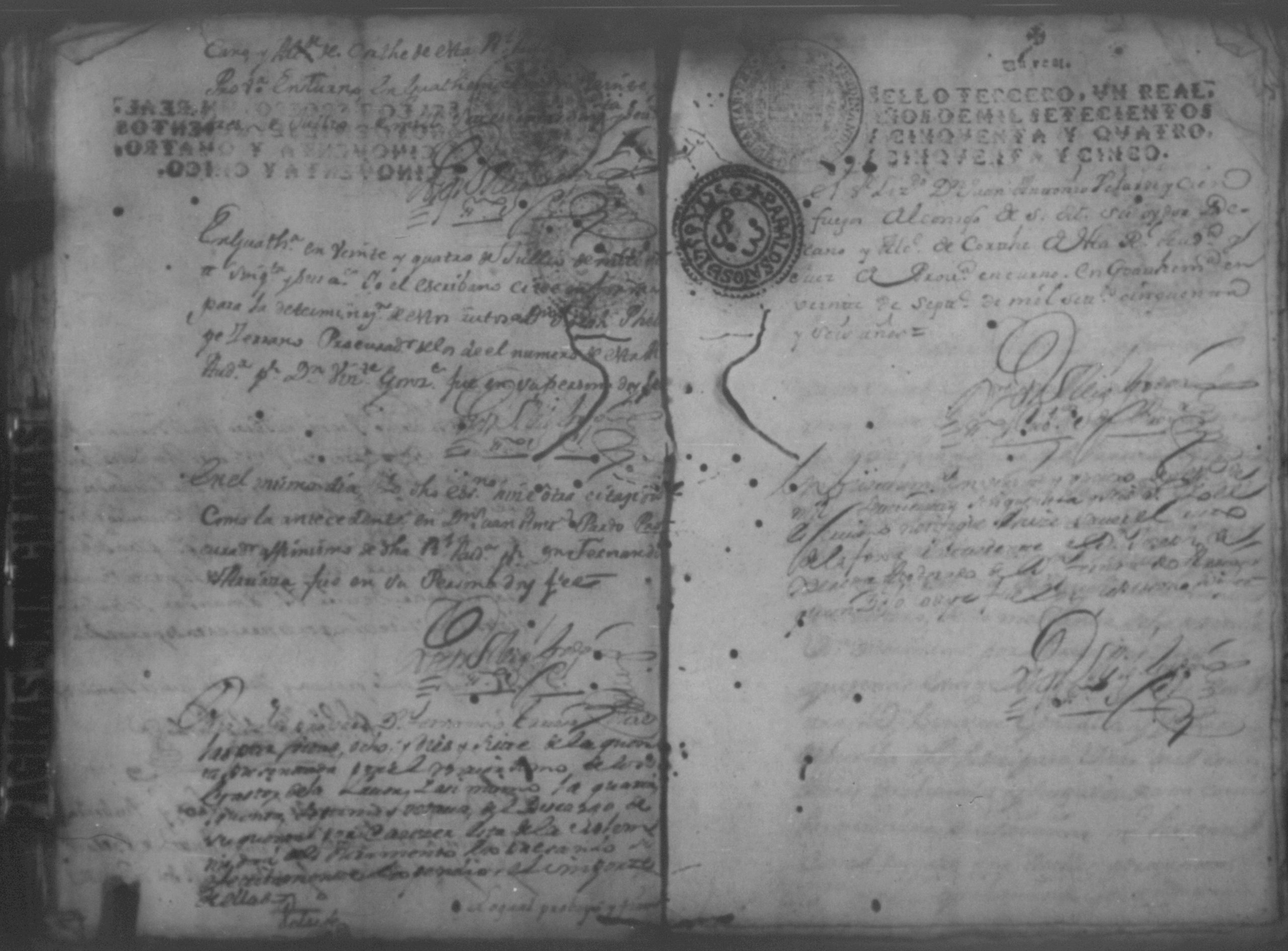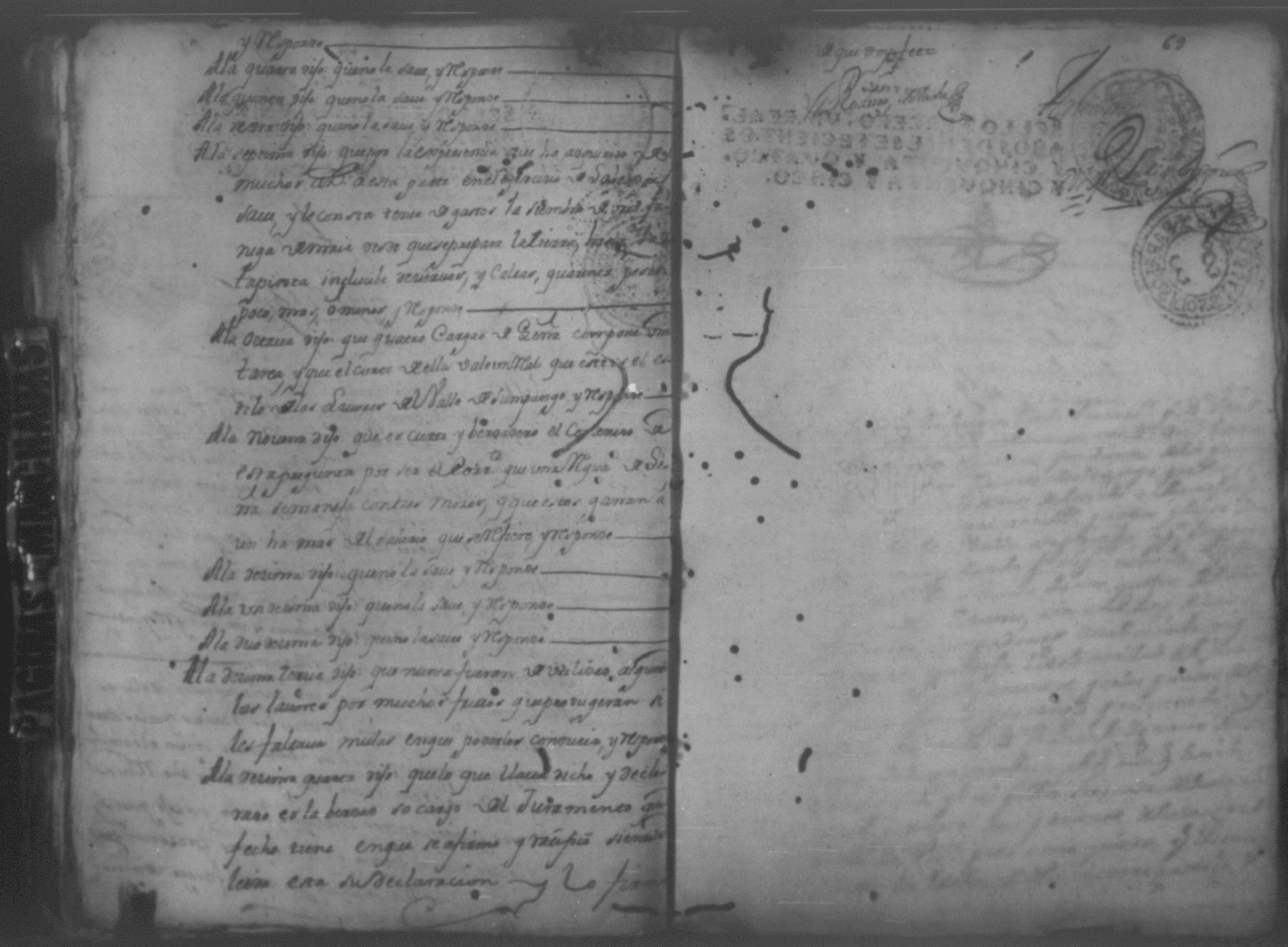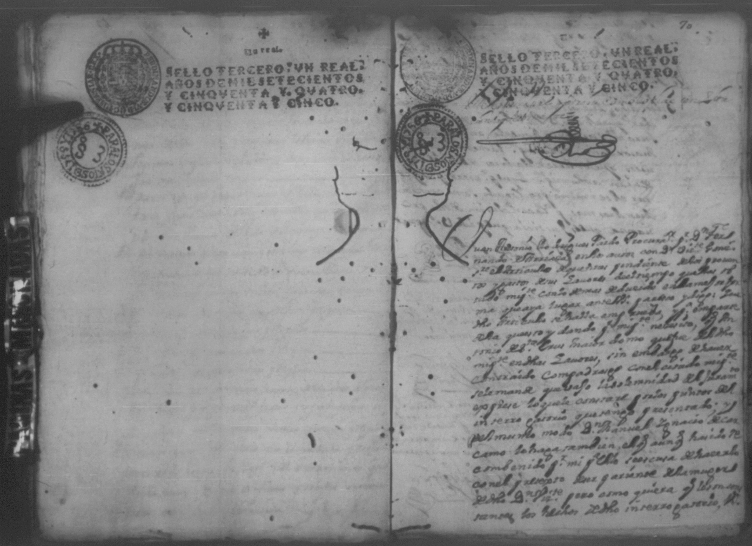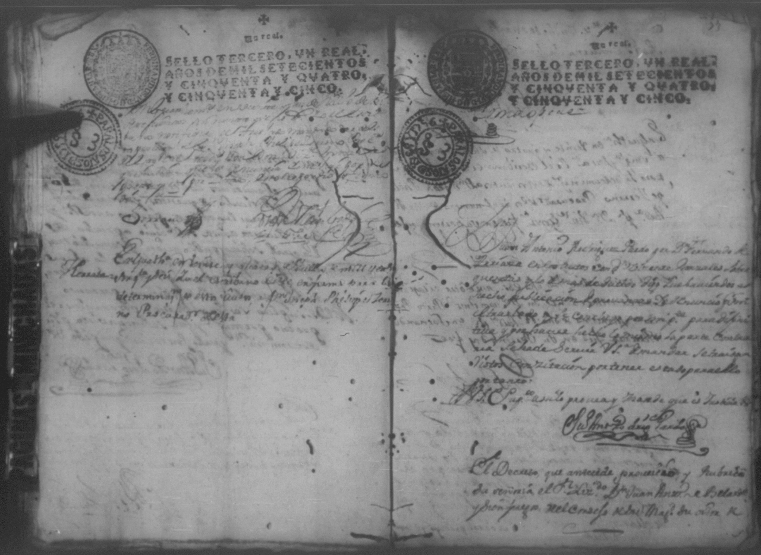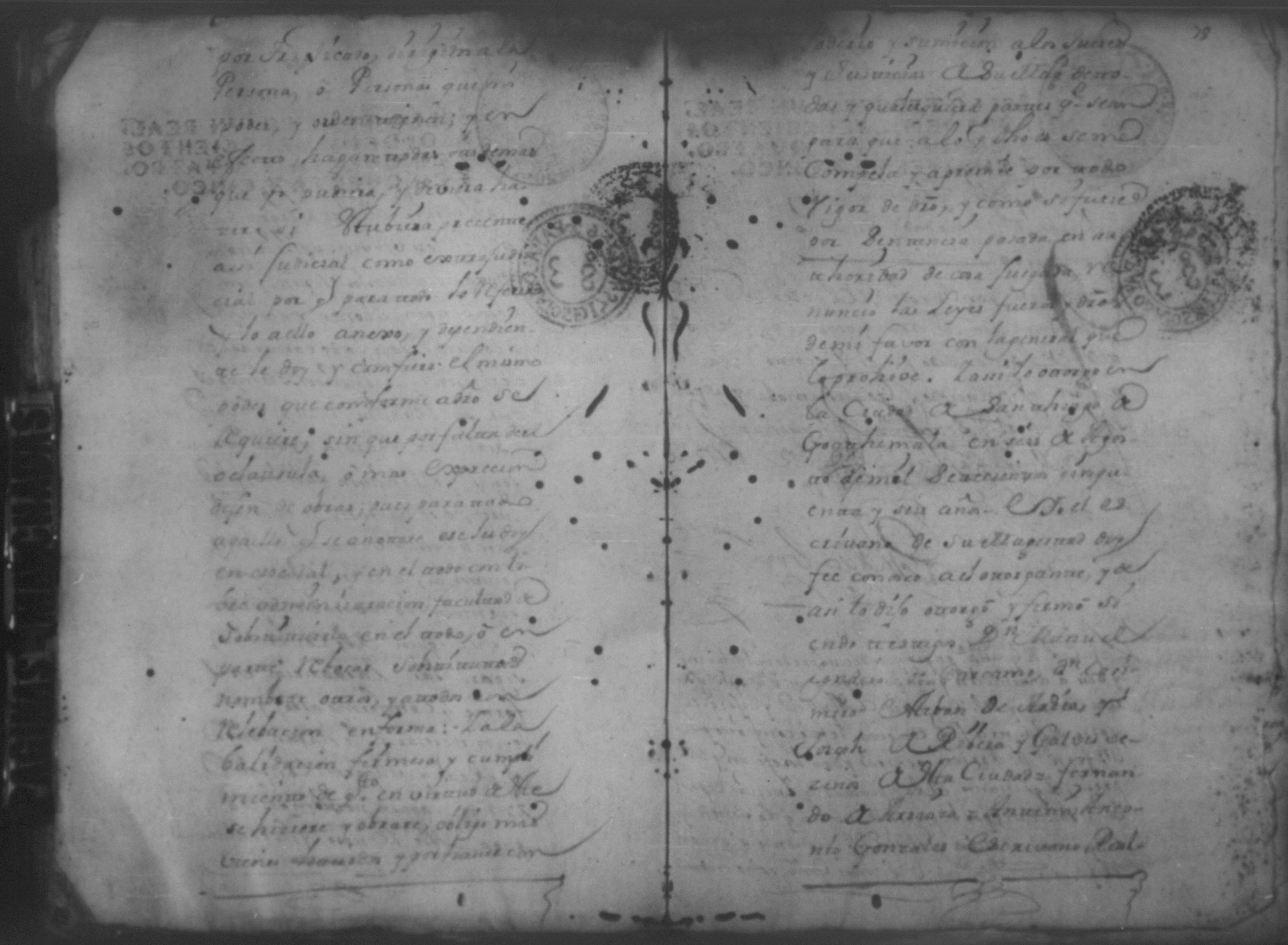 Temática: Año de 1757. Nicaragua. Don Vicente Ignacio Gonzalez reconozca la escriptura que se menciona por lo que toca a su muger Doña Maria Gertrudis Dardon se comette respecto de que de mancomun la otorgaron y firmaron y fecho […].