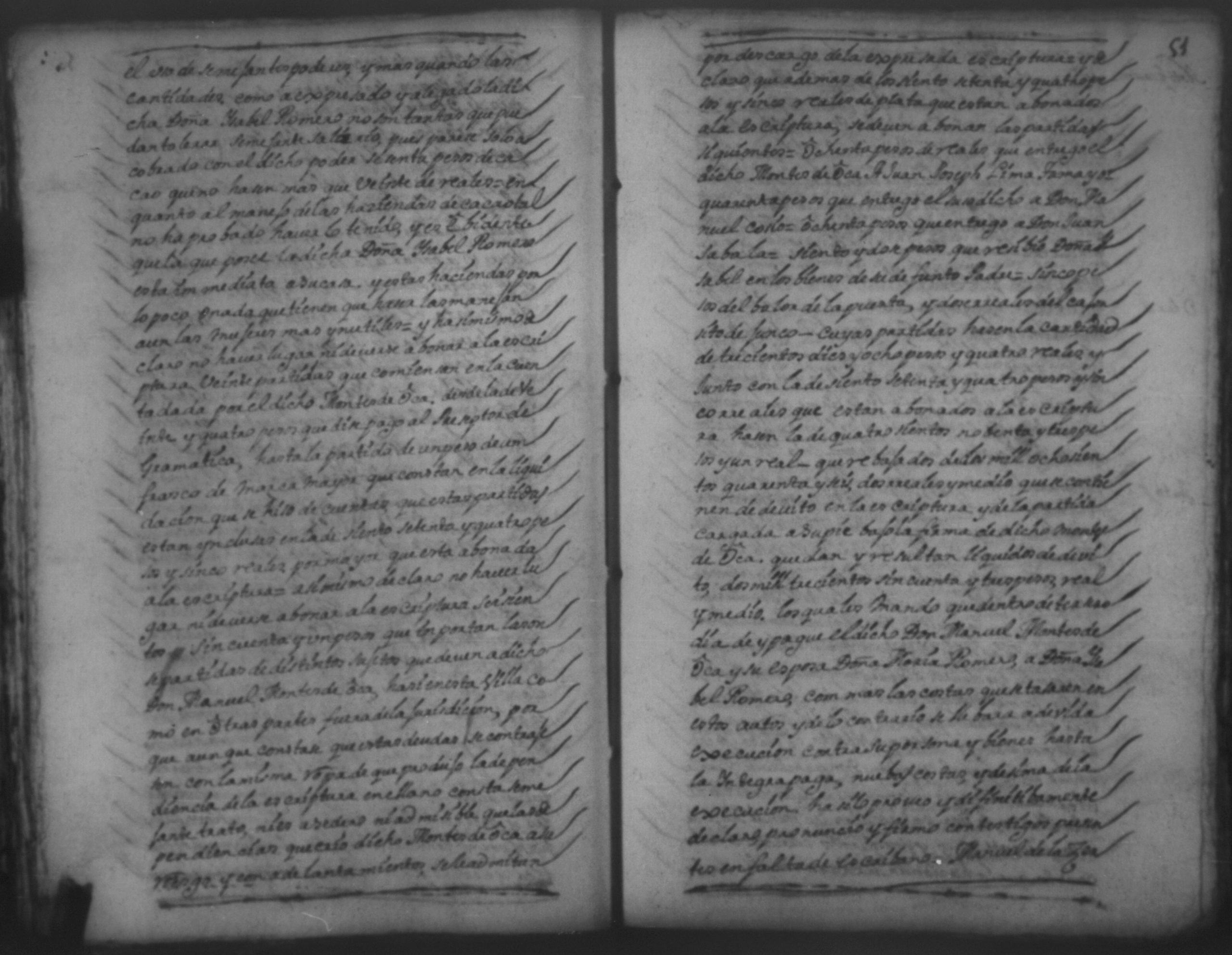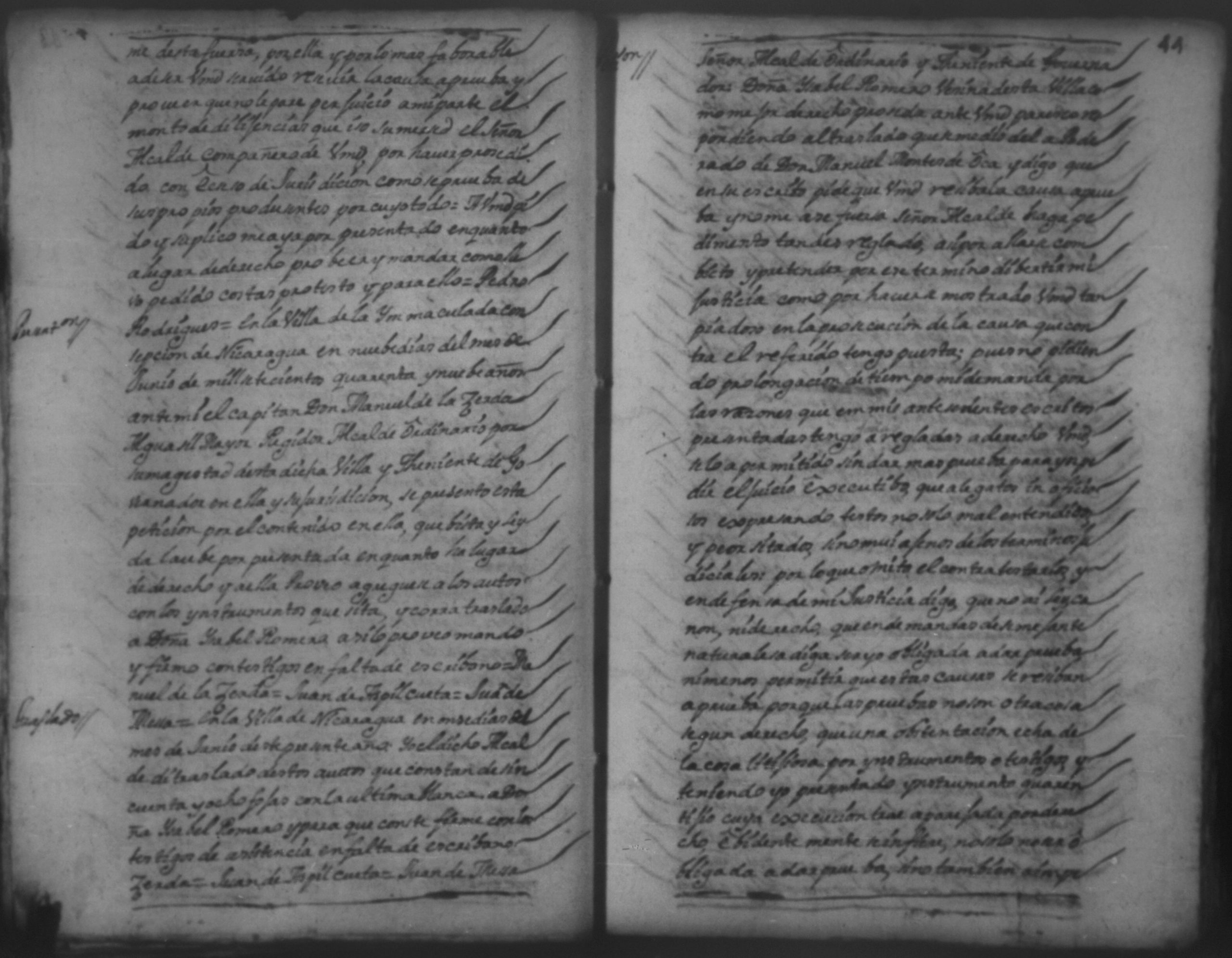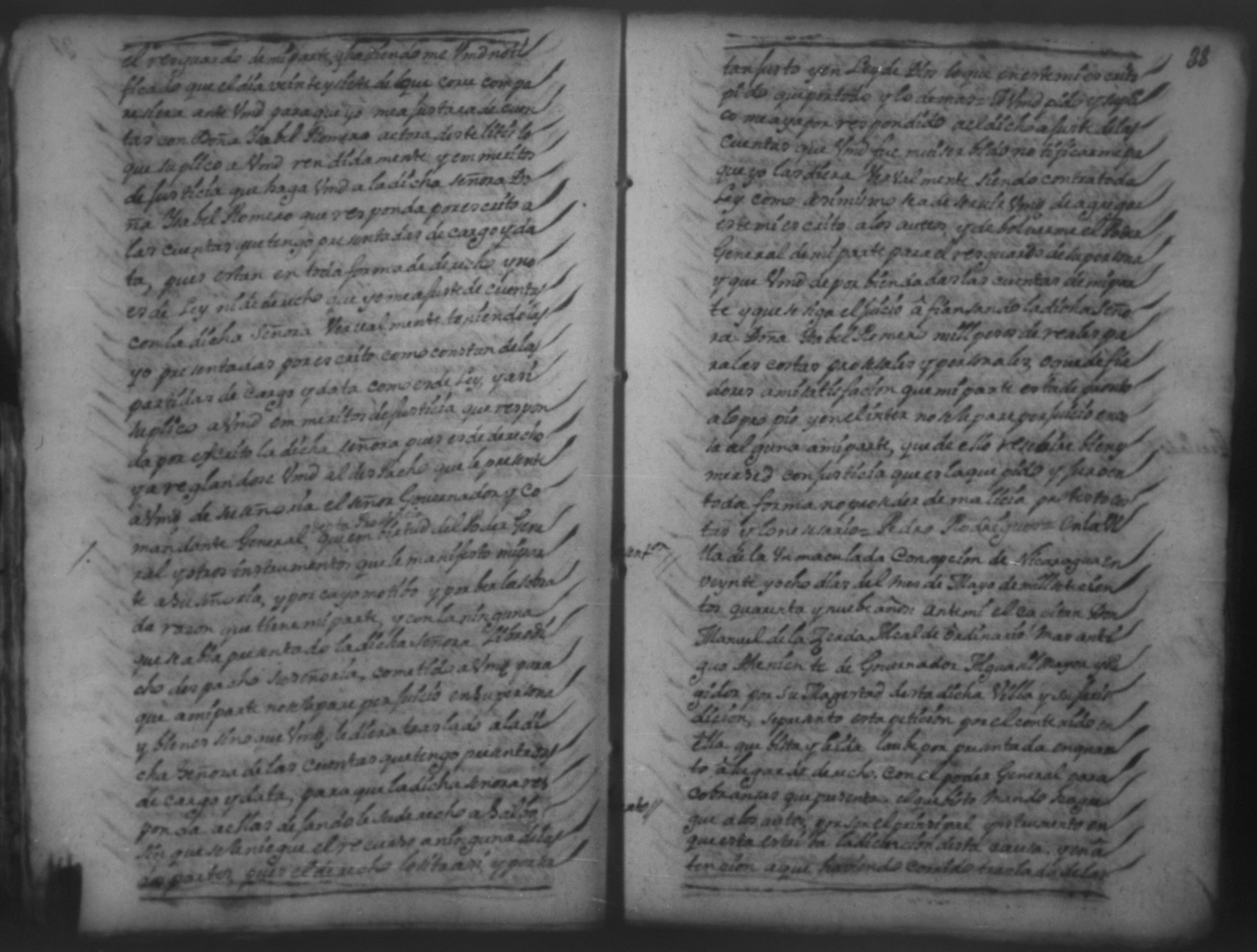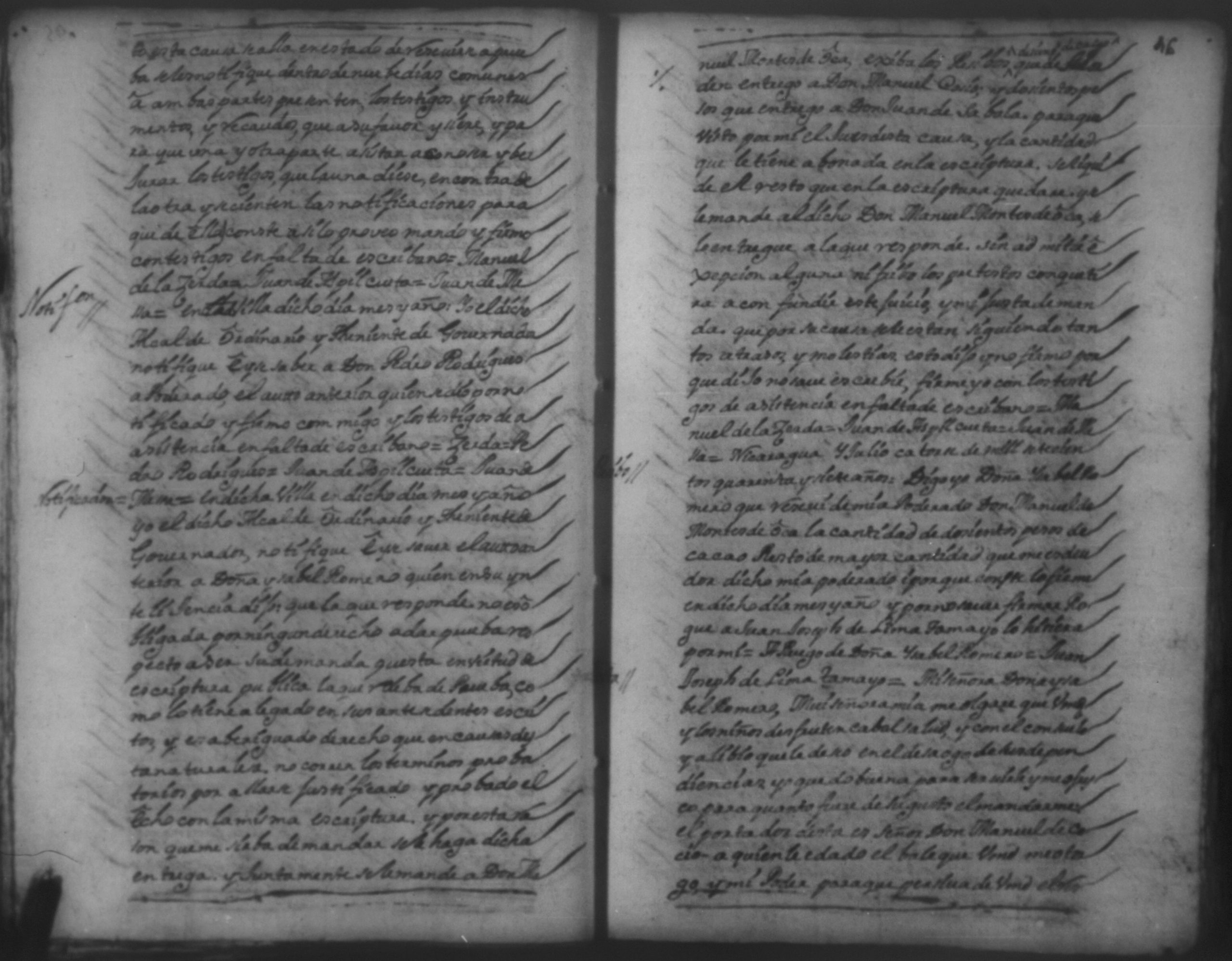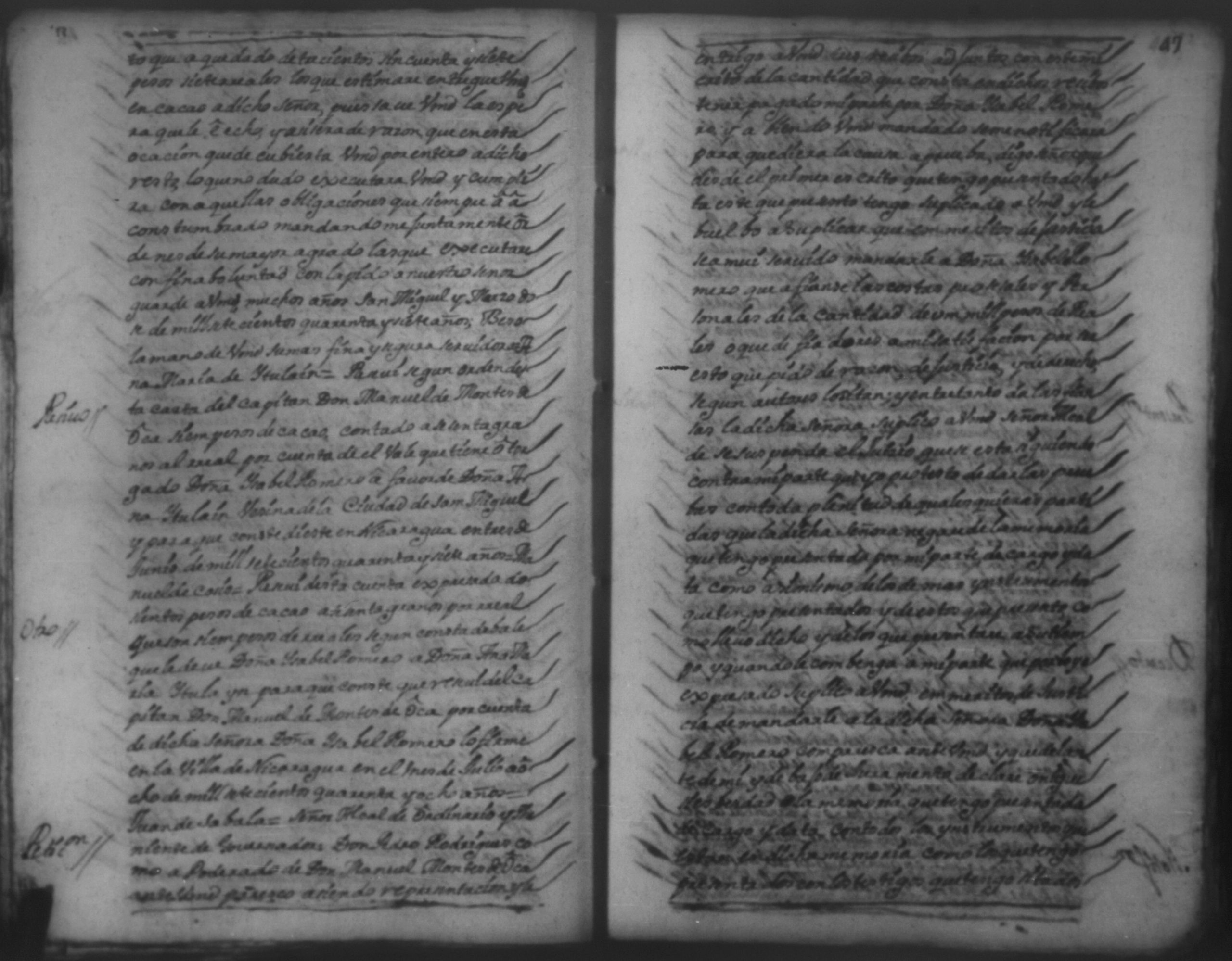 Temática: 1751.Nicaragua. Doña Isabel Romero viuda vecina de esta dicha Villa, a saber la cantidad de dos mill sete y cientos sesenta y ocho pesos y medio real de plata por pedidos de una memoria de ropa que la susodicha me a bendido a mi el otorgante.