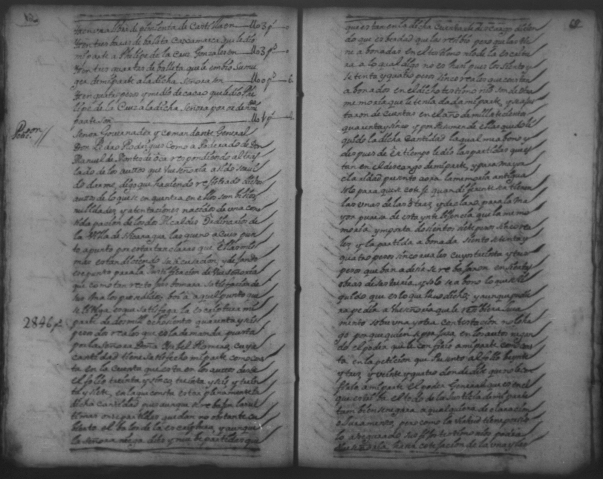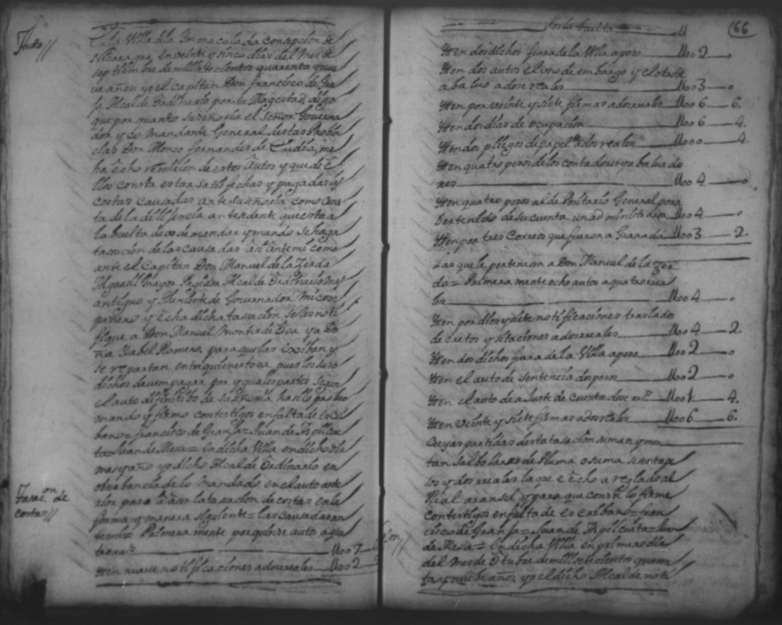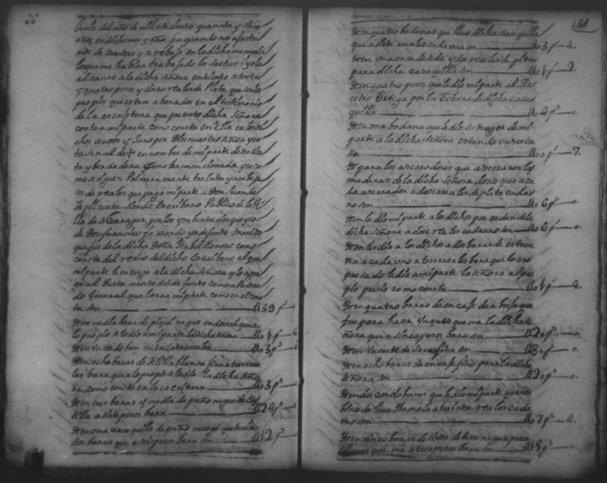 Temática: 1751.Nicaragua. Doña Isabel Romero viuda vecina de esta dicha Villa, a saber la cantidad de dos mill sete y cientos sesenta y ocho pesos y medio real de plata por pedidos de una memoria de ropa que la susodicha me a bendido a mi el otorgante.