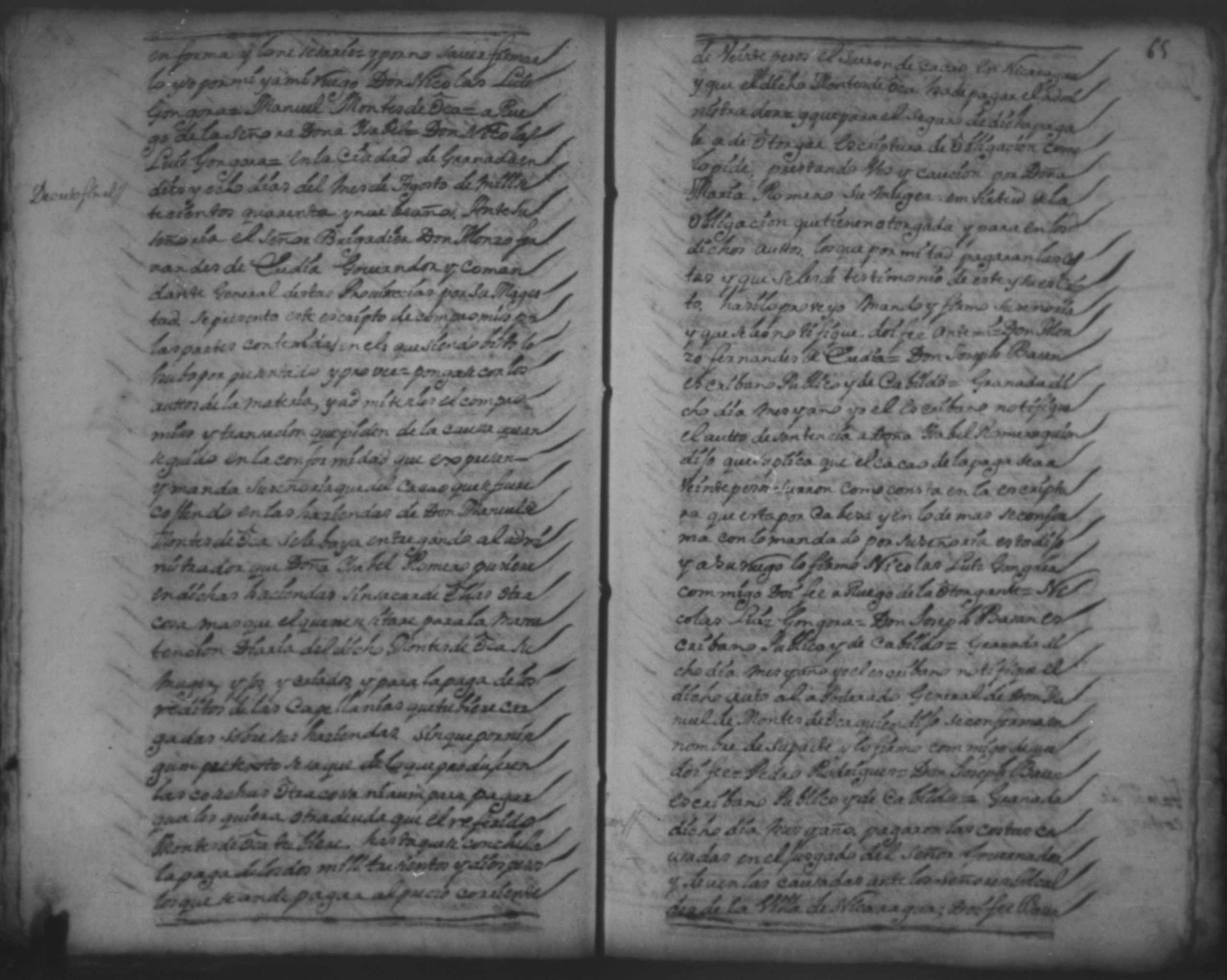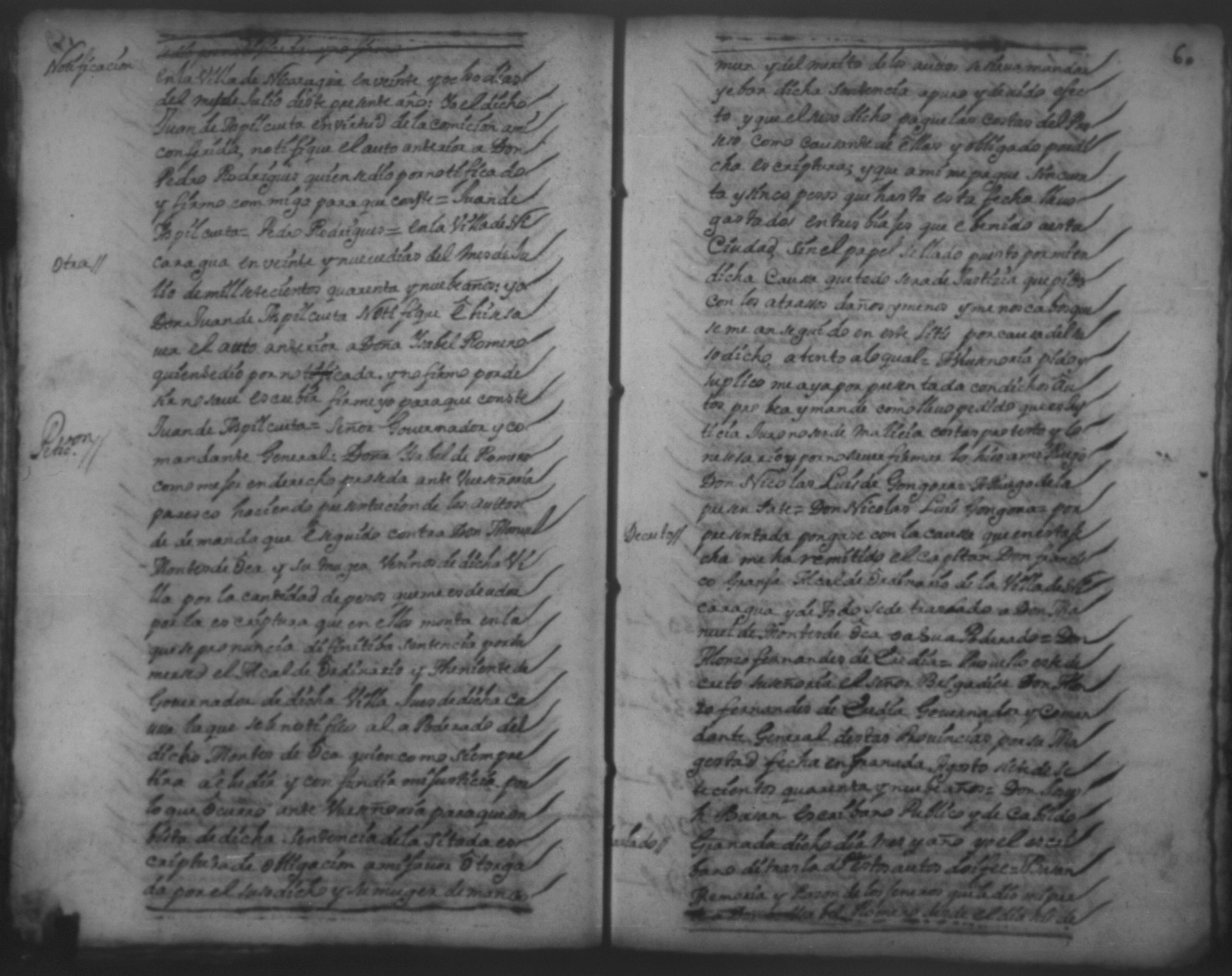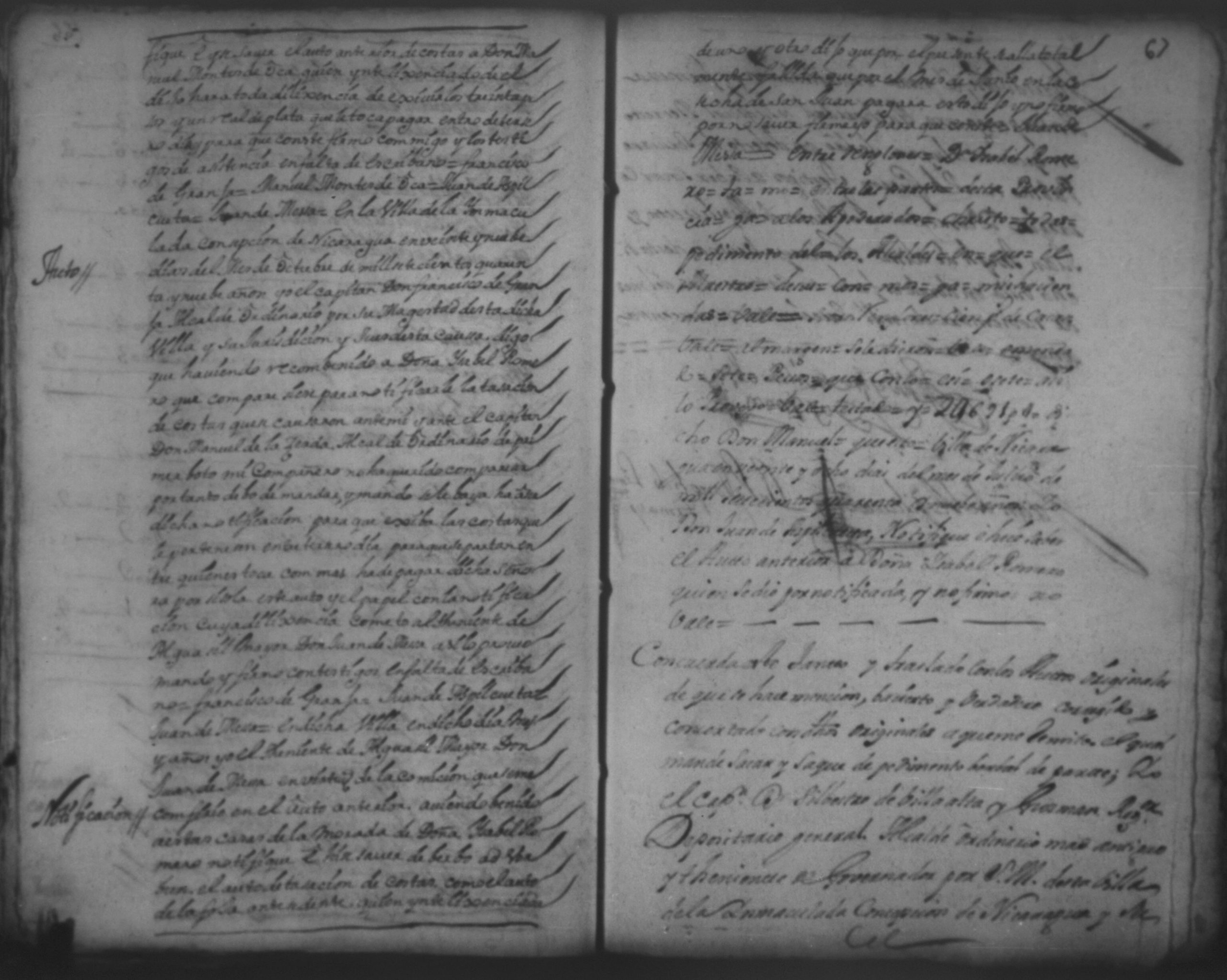 Temática: 1751.Nicaragua. Doña Isabel Romero viuda vecina de esta dicha Villa, a saber la cantidad de dos mill sete y cientos sesenta y ocho pesos y medio real de plata por pedidos de una memoria de ropa que la susodicha me a bendido a mi el otorgante.