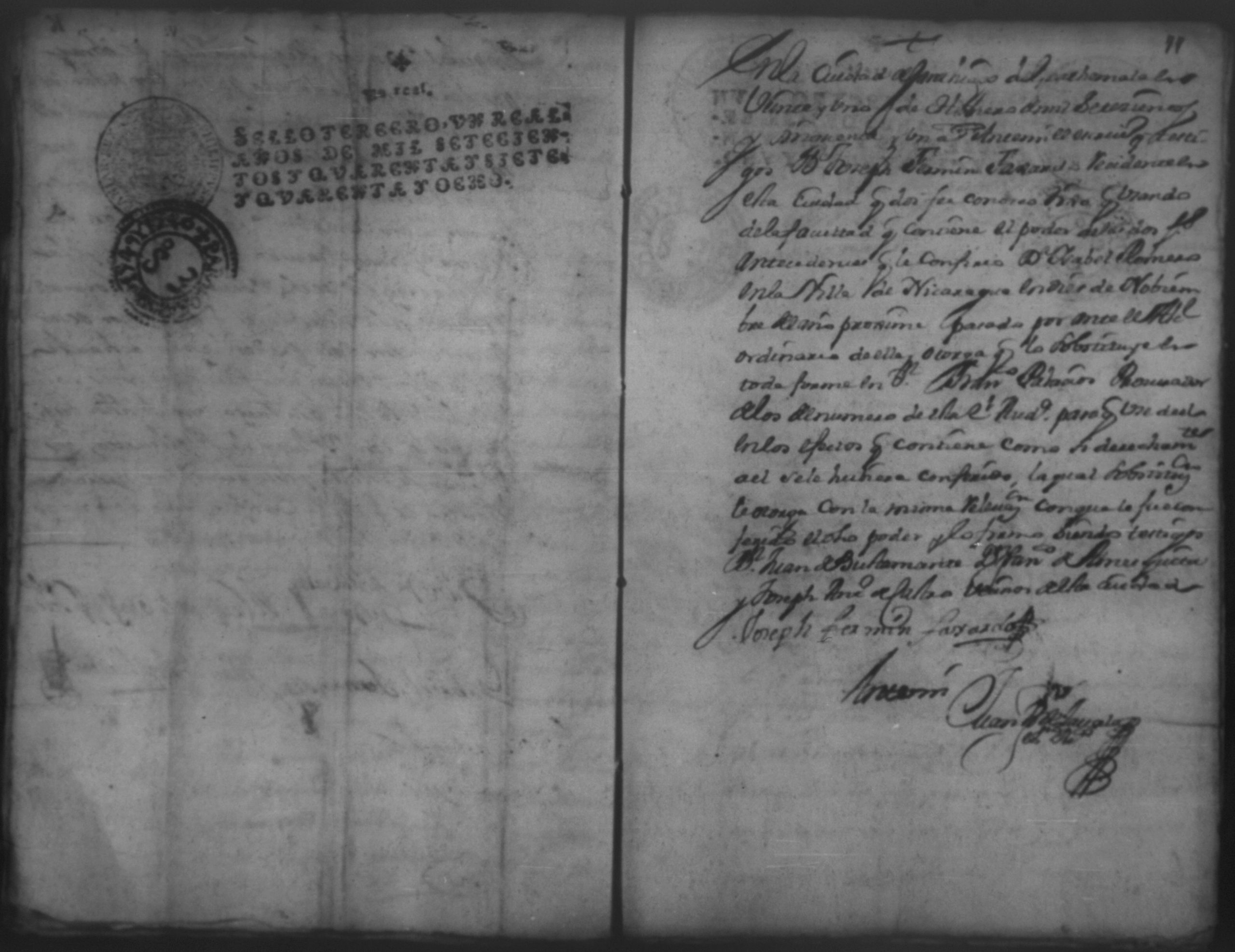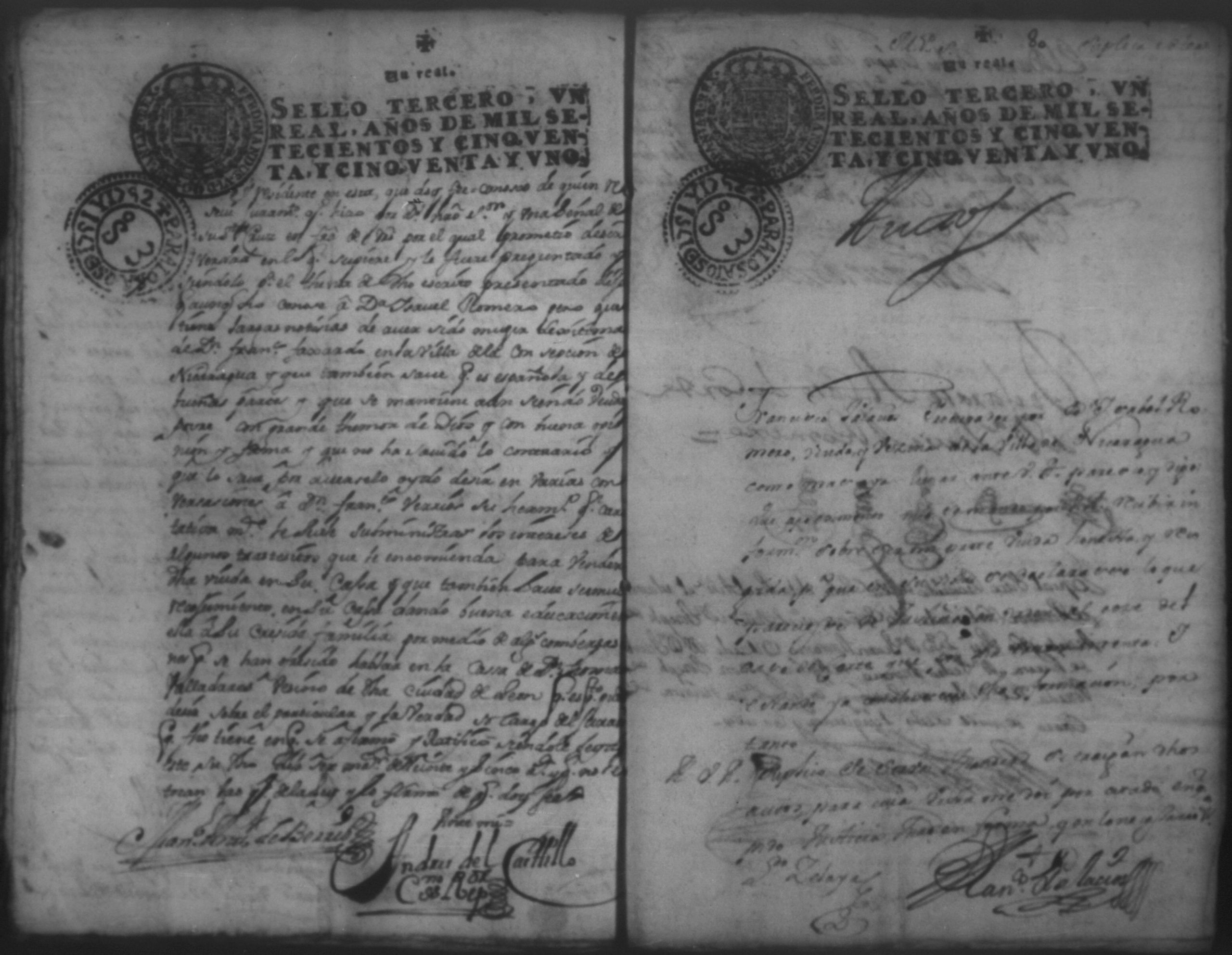 Temática: 1751.Nicaragua. Doña Isabel Romero viuda vecina de esta dicha Villa, a saber la cantidad de dos mill sete y cientos sesenta y ocho pesos y medio real de plata por pedidos de una memoria de ropa que la susodicha me a bendido a mi el otorgante.