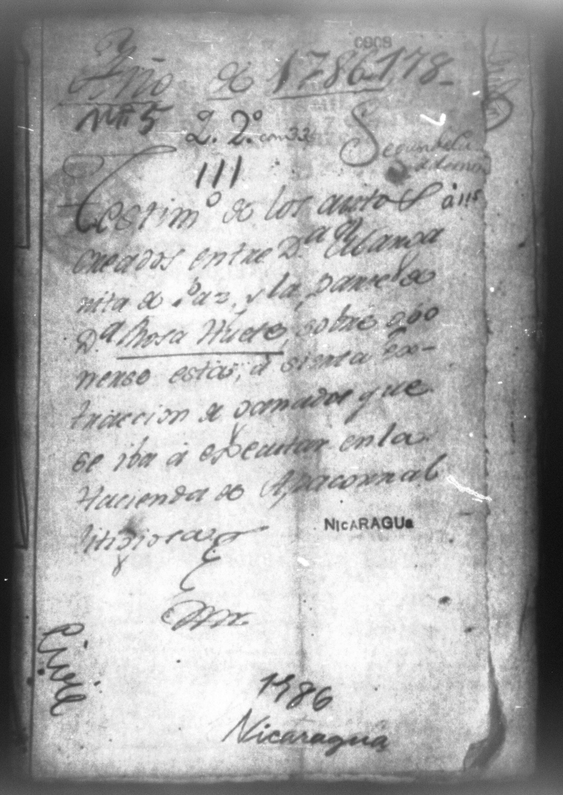 Temática: Nicaragua, 1786. Testimonio de los autos creados entre doña Margarita de Paz y doña Rosa Huete, sobre oponerse esta última a la extracción de ganados que se iba a ejecutar en la Hacienda de Apacorral, la cual se encontraba en litigio entre ambas partes.