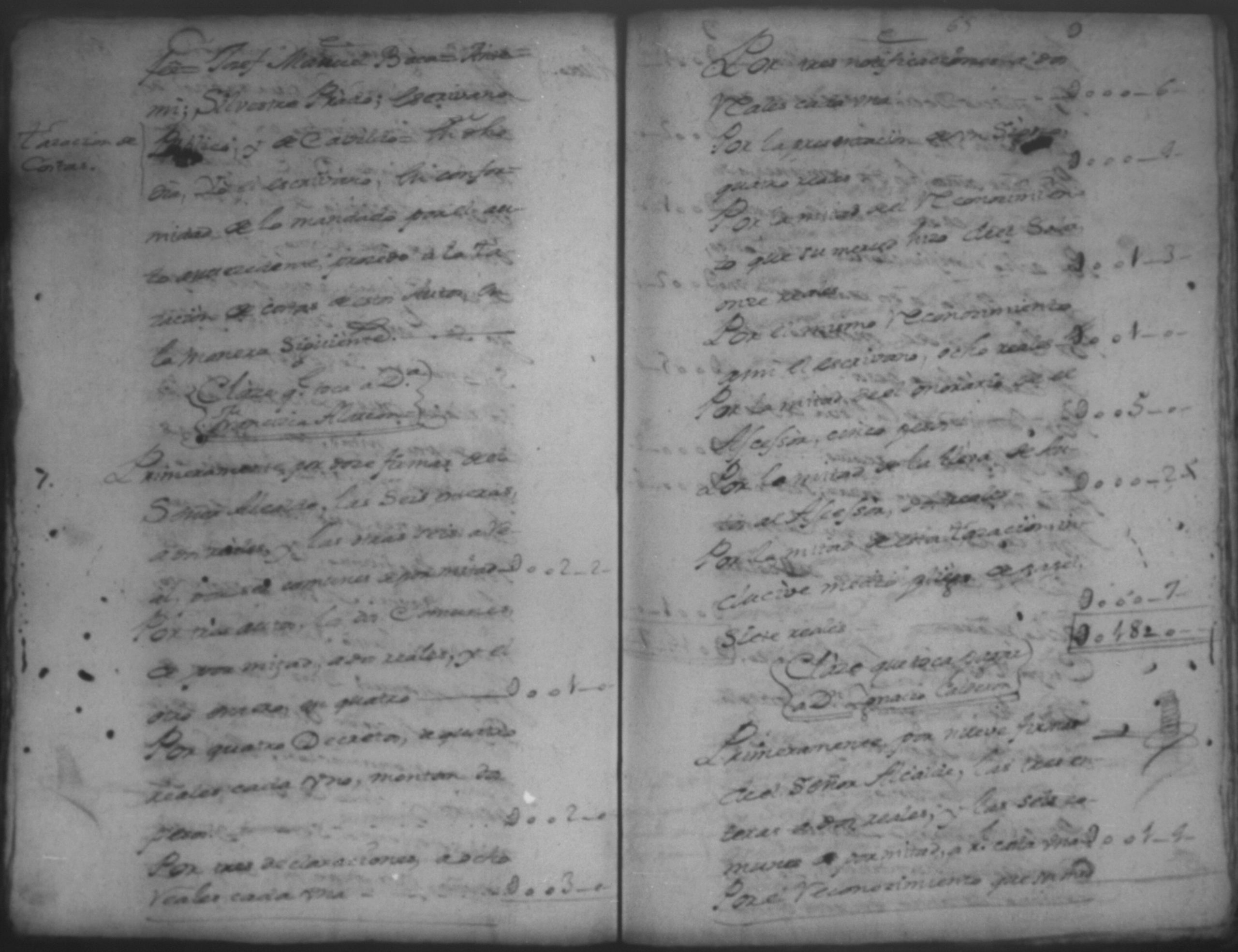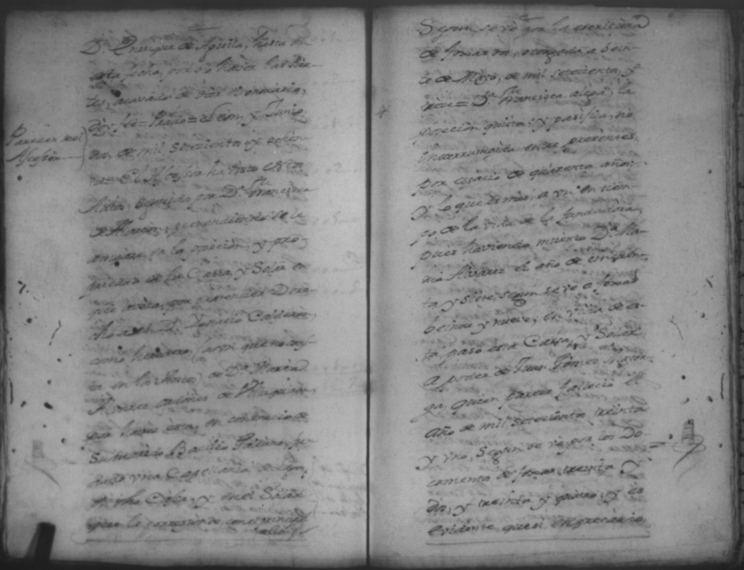 Temática: Leon, año de 1780. Testimonio de los autos seguidos por Doña Maria Alarcon contra Don Ignacio Calderon alegando derecho a una casa y solar. Oficio Prado.