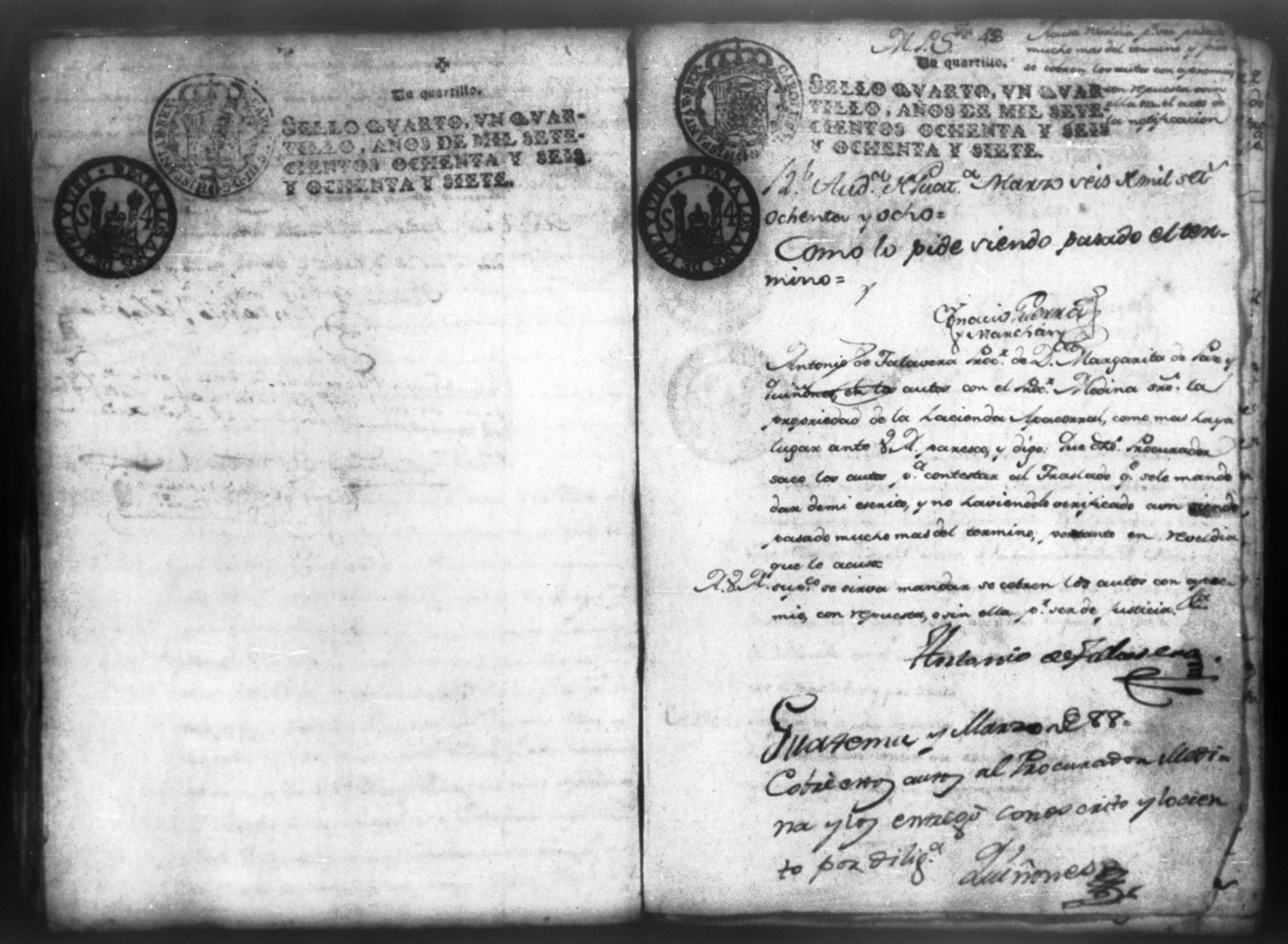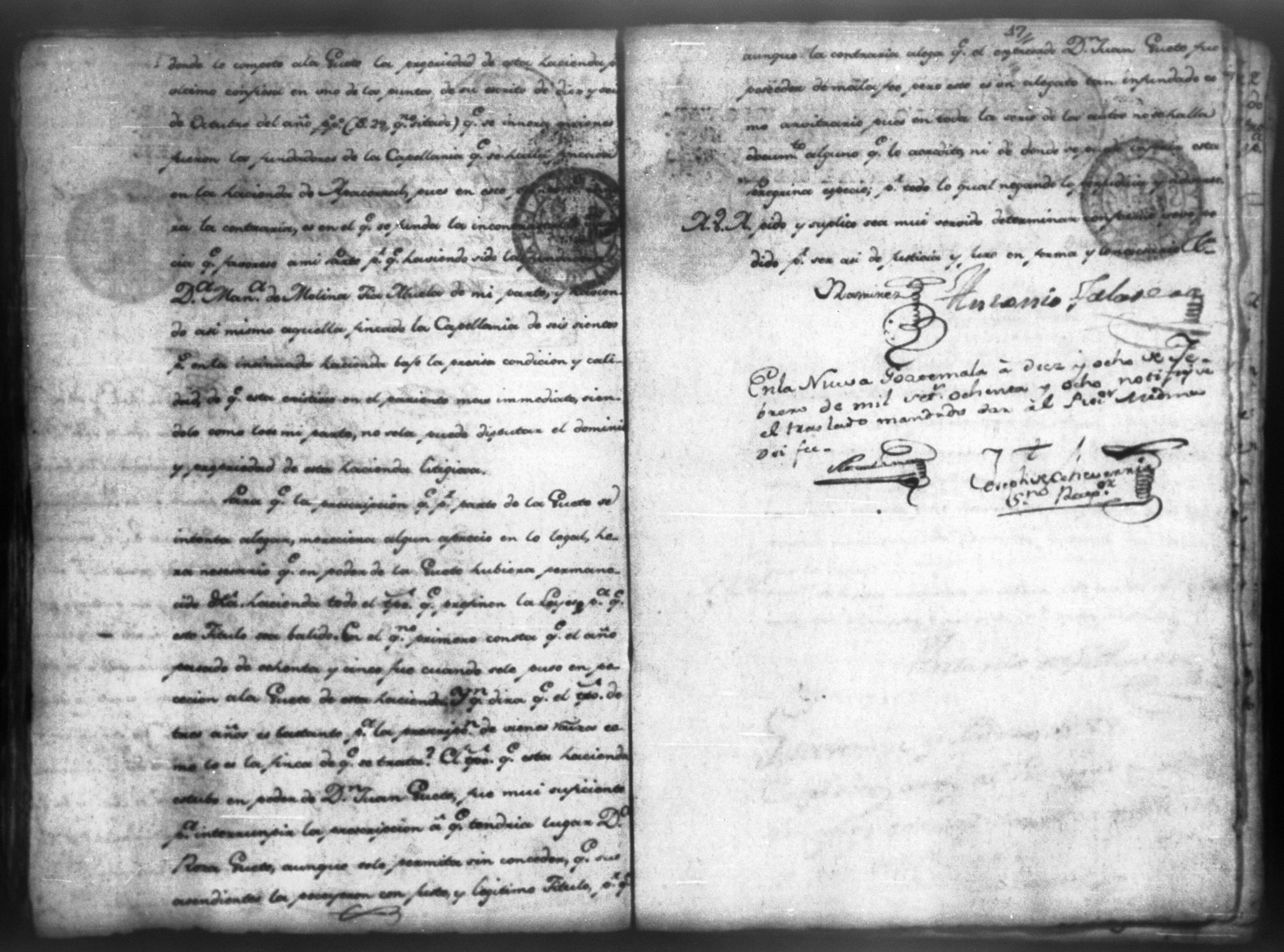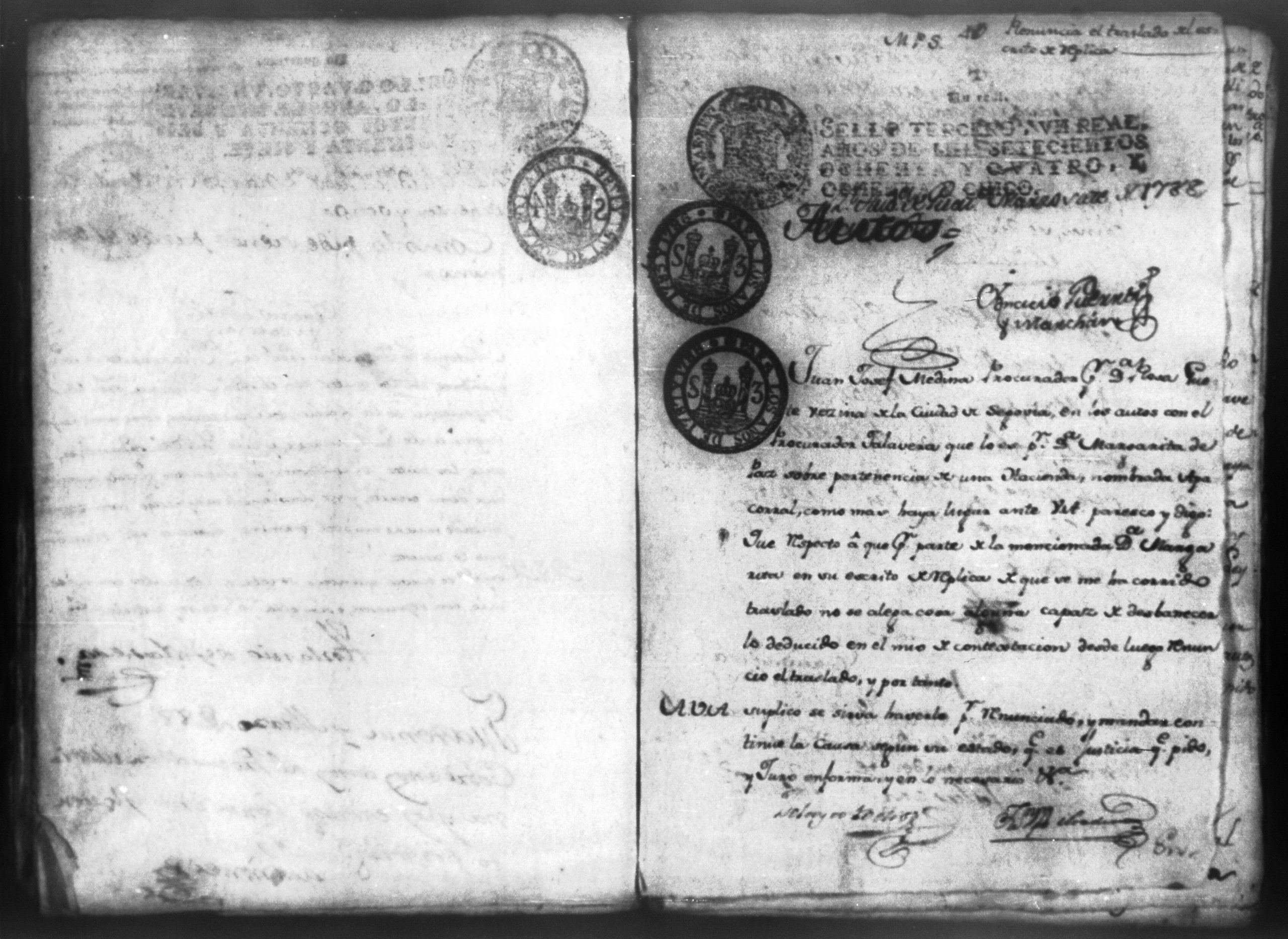 Doña Rosa Huete y Doña Margarita de Paz sobre entrega de la hacienda Apacorral, León 1787