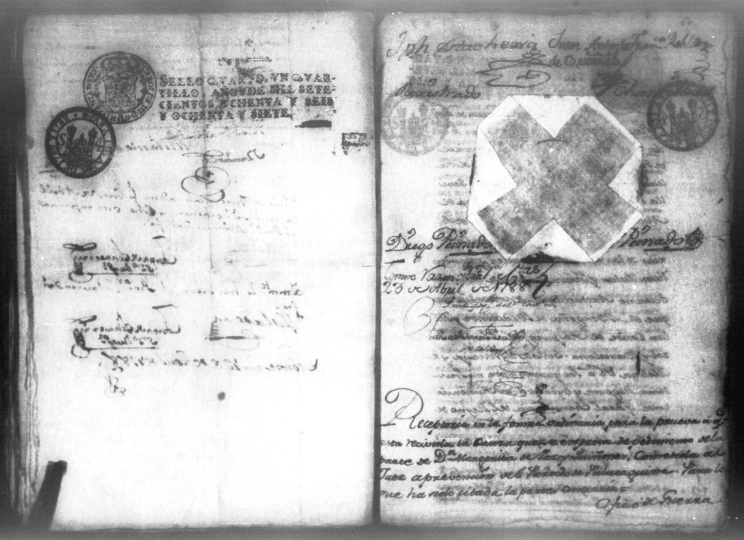 Doña Rosa Huete y Doña Margarita de Paz sobre entrega de la hacienda Apacorral, León 1787