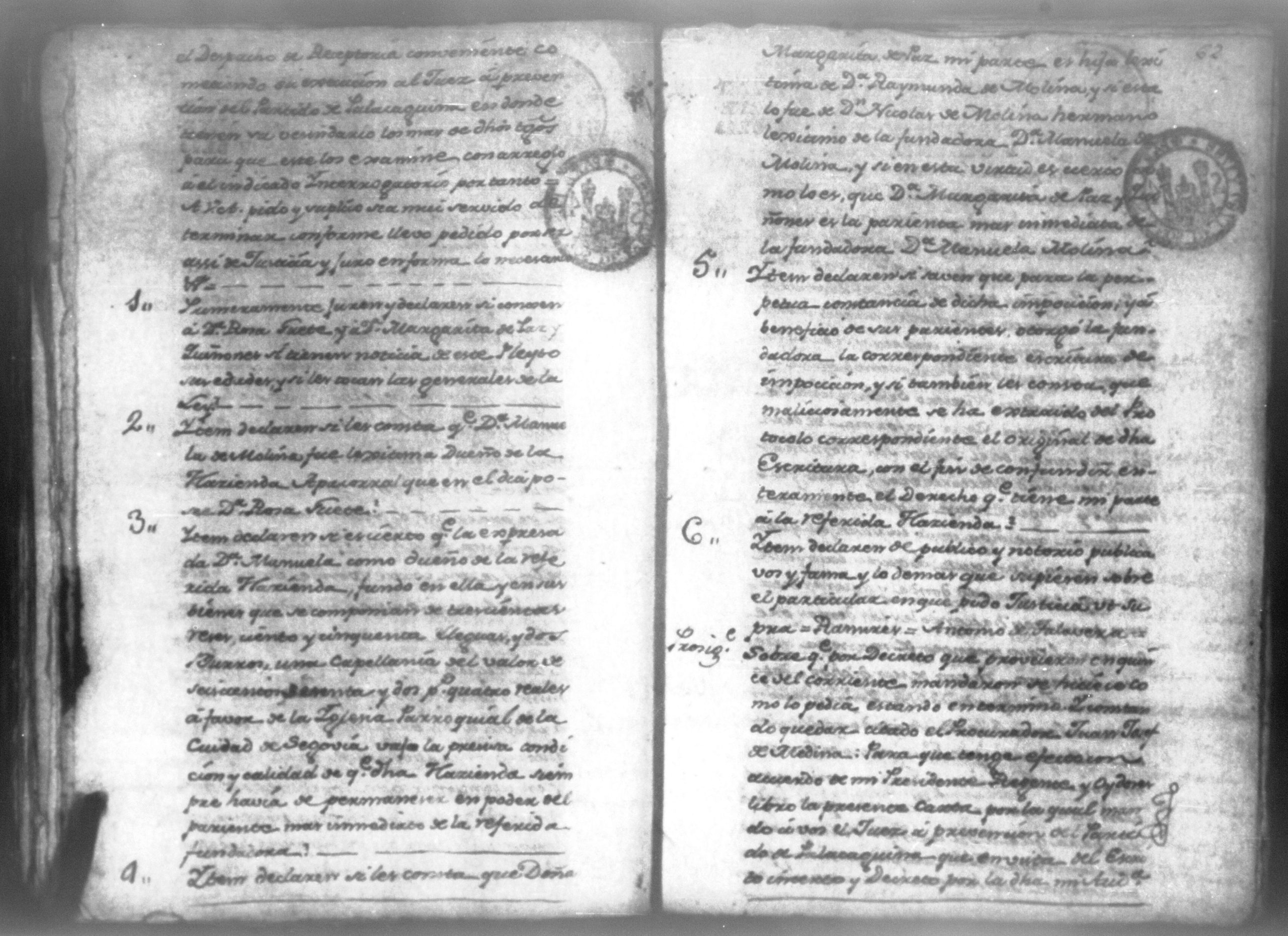 Temática: Audiencia Leon, 1787. Autos en apelación entre doña Margarita de Paz y doña Rosa Huete sobre entrega de la hacienda Apacorral.