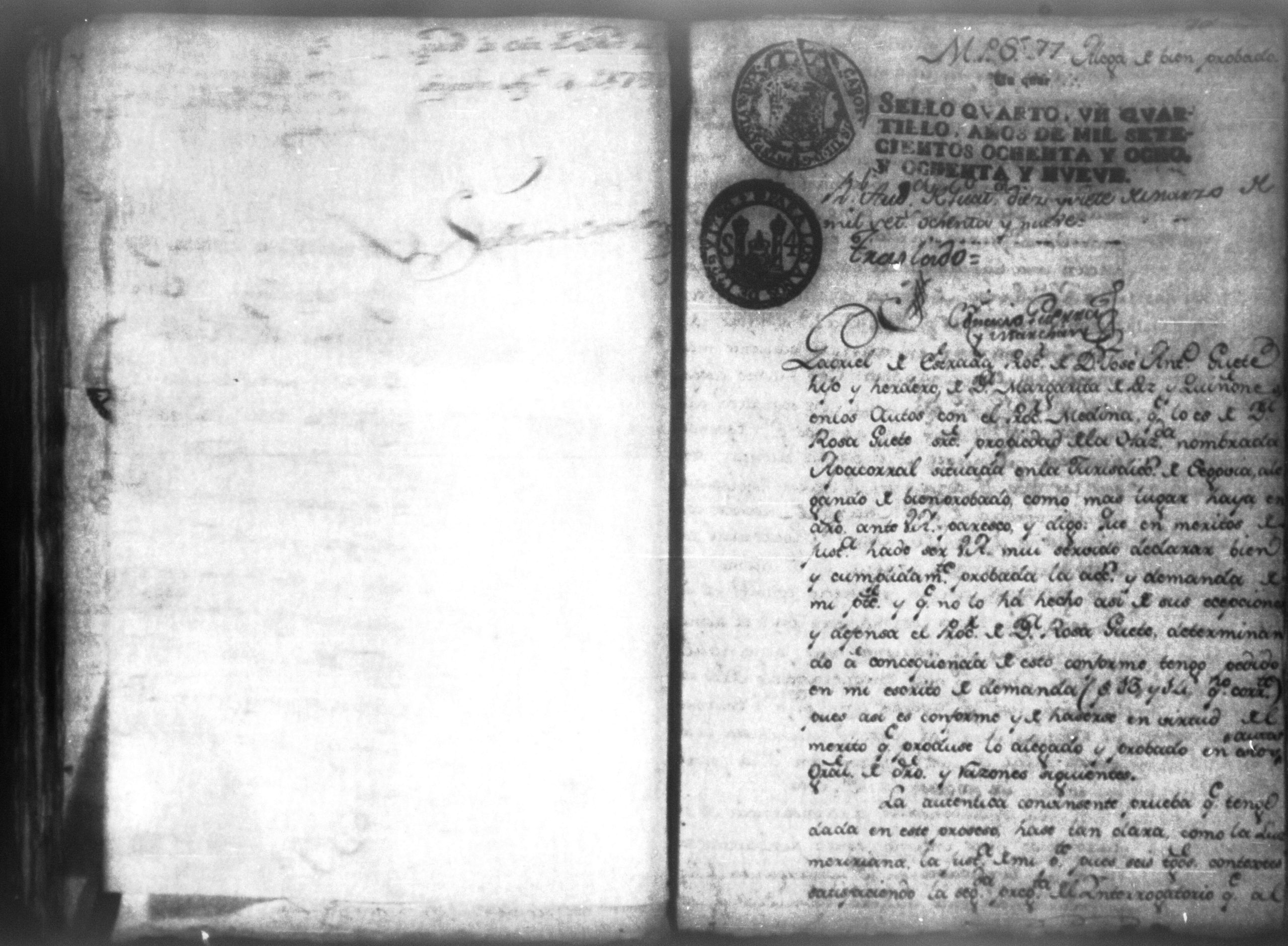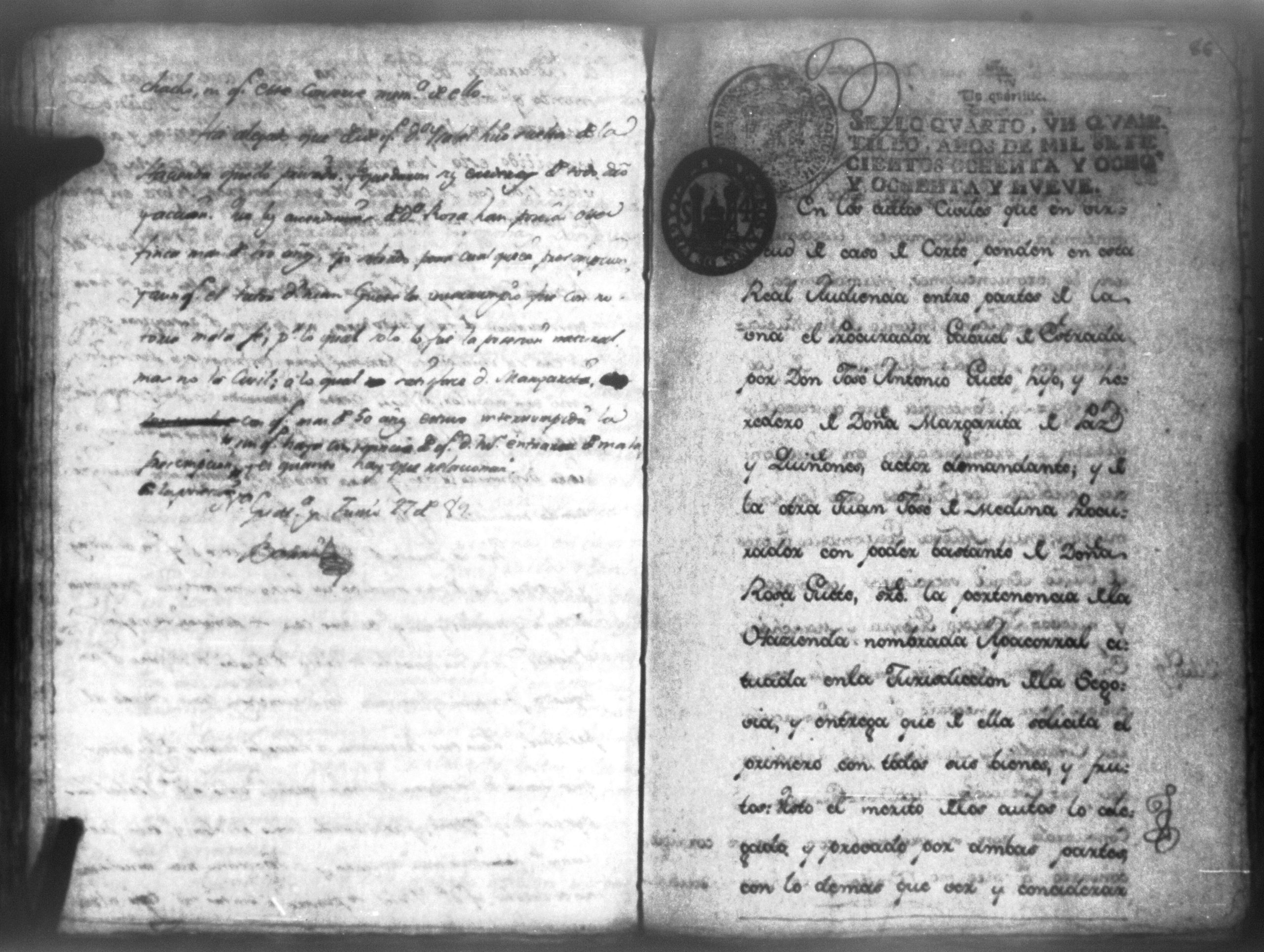 Temática: Audiencia Leon, 1787. Autos en apelación entre doña Margarita de Paz y doña Rosa Huete sobre entrega de la hacienda Apacorral.