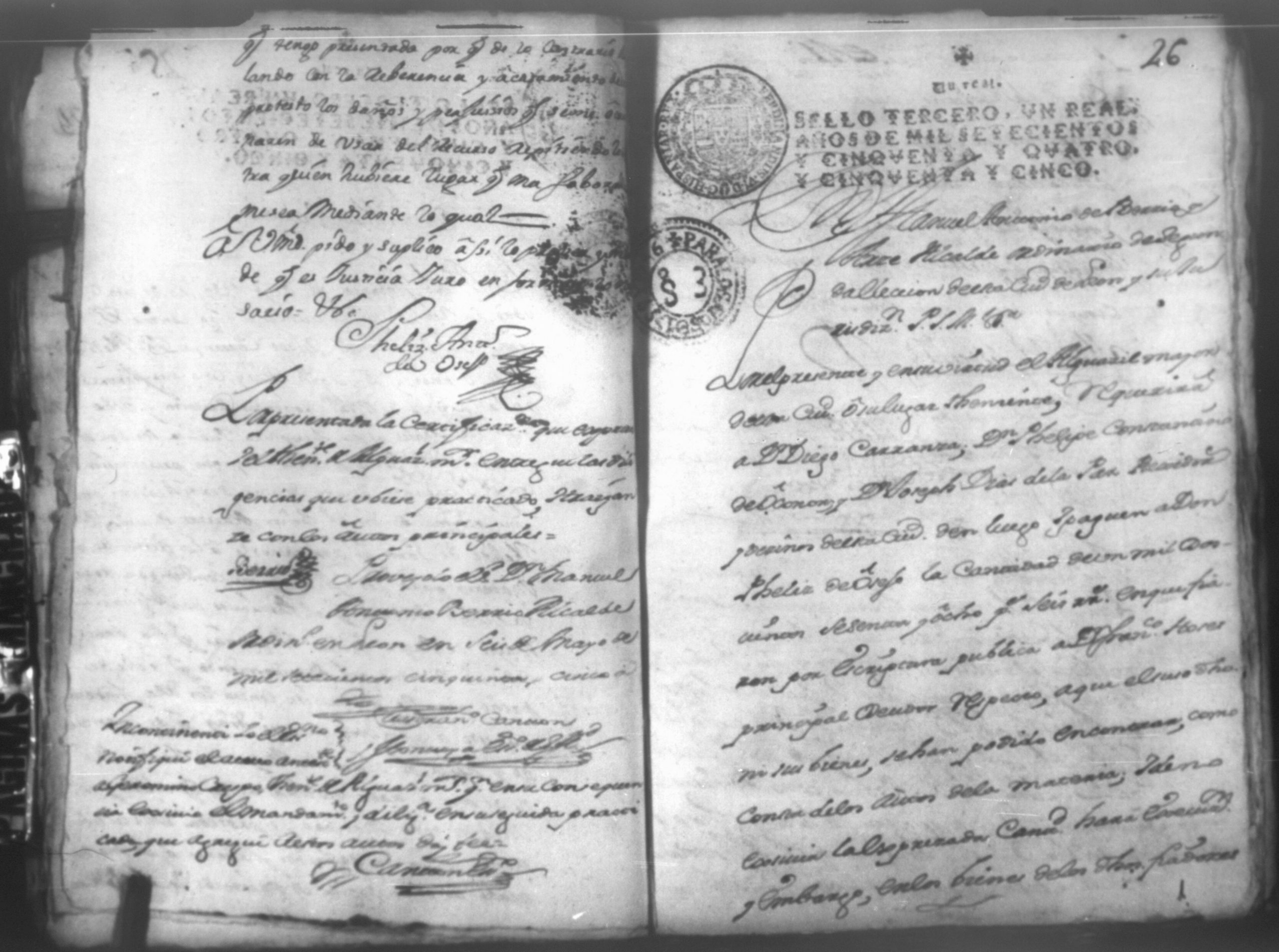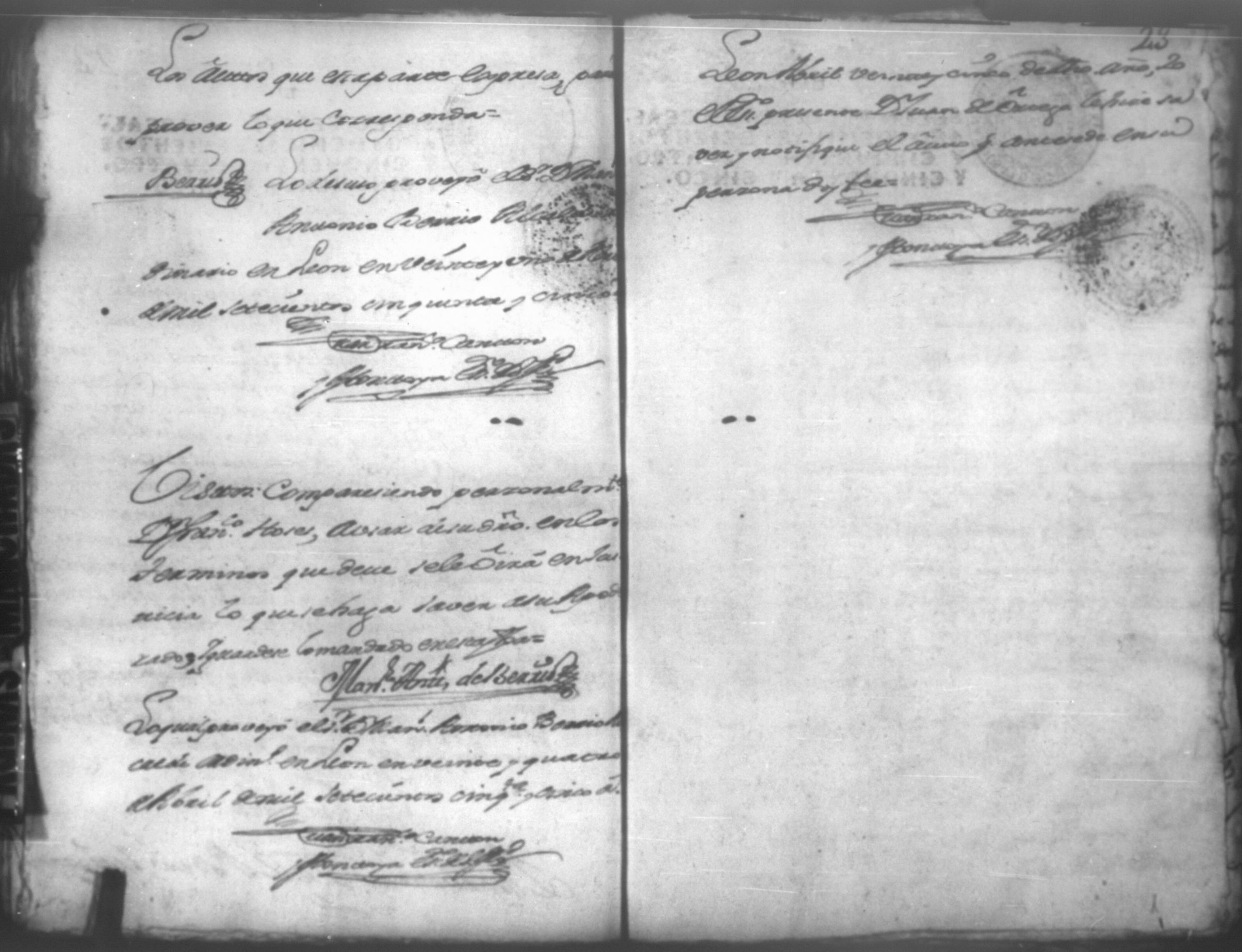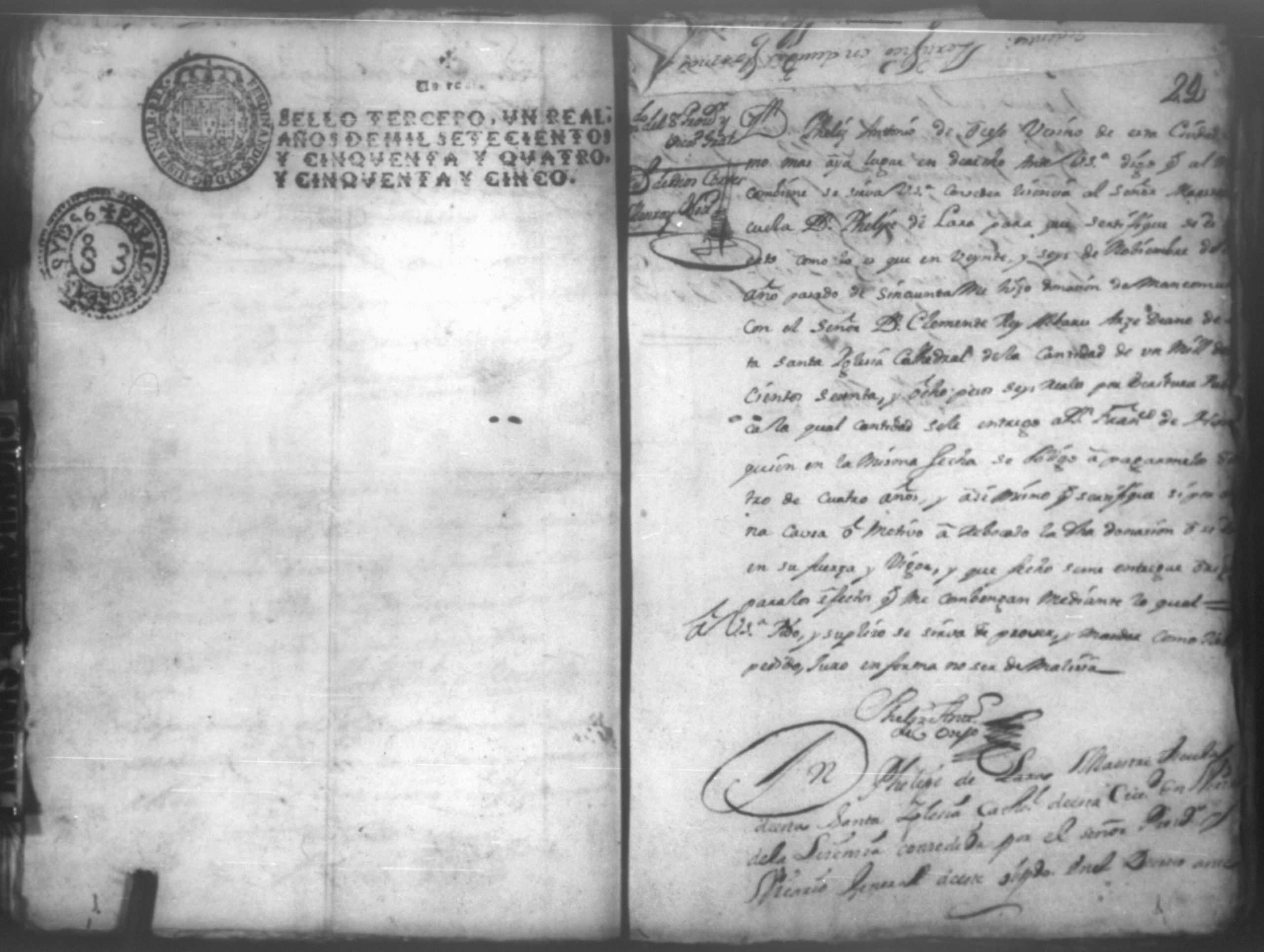 Temática: Leon, 1756. Se entregaron los autos al relator en 18 de septiembre de 1756. Señor Alcalde ordinario Don Phelix Antonio de [Osejo] vecino de dicha ciudad. El Capitan Francisco de Orses pide prestamo de un mil dosientos setenta y ocho peso y seis reales al comisario Don Clemente Rey Alvarez y Don Phelipe de Lara maestre de la Santa Yglesia Cathedral.