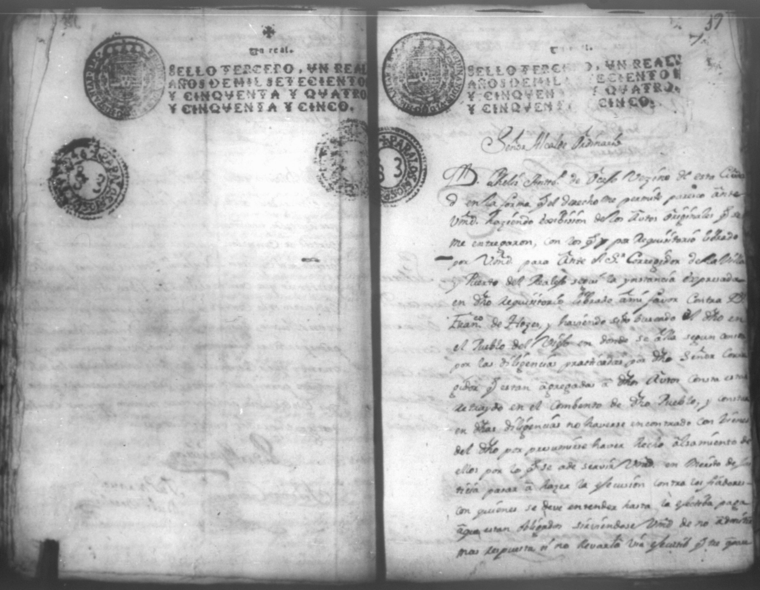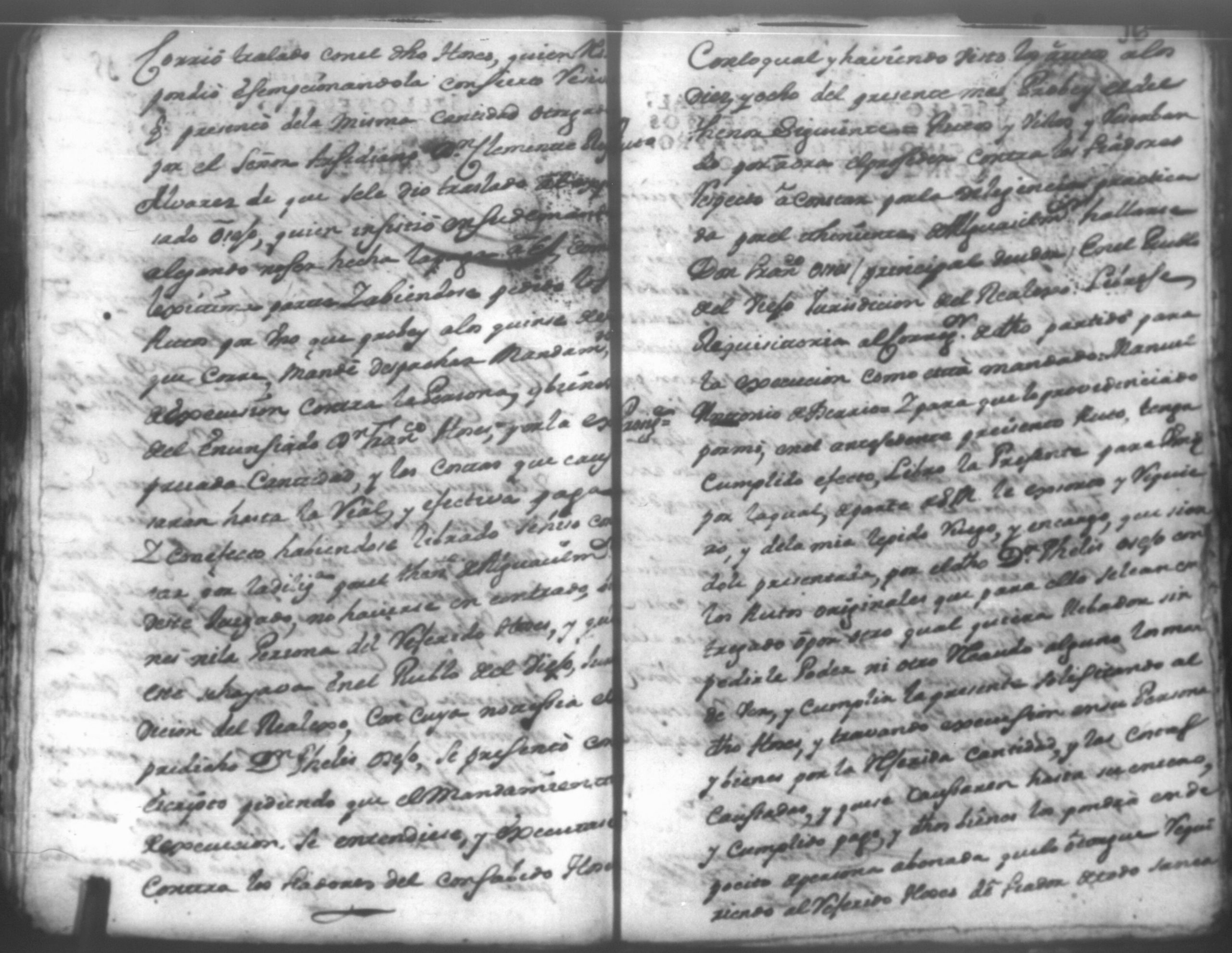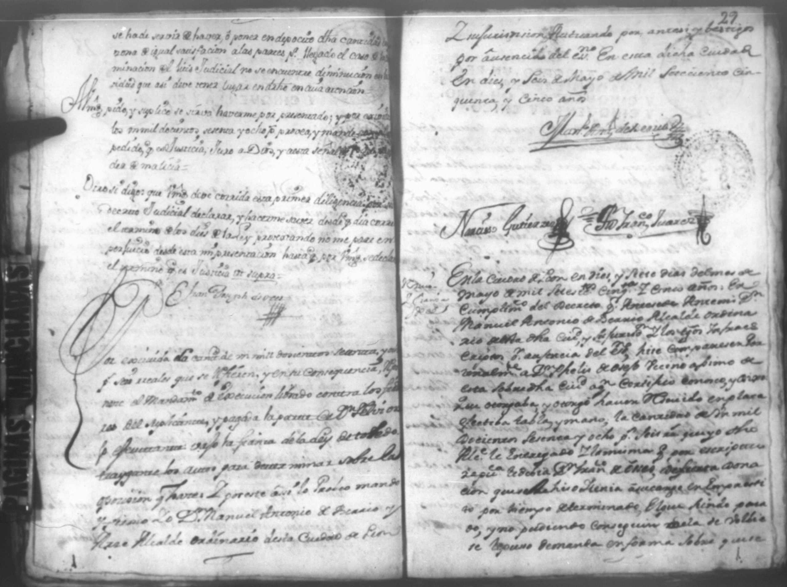 Temática: Leon, 1756. Se entregaron los autos al relator en 18 de septiembre de 1756. Señor Alcalde ordinario Don Phelix Antonio de [Osejo] vecino de dicha ciudad. El Capitan Francisco de Orses pide prestamo de un mil dosientos setenta y ocho peso y seis reales al comisario Don Clemente Rey Alvarez y Don Phelipe de Lara maestre de la Santa Yglesia Cathedral.