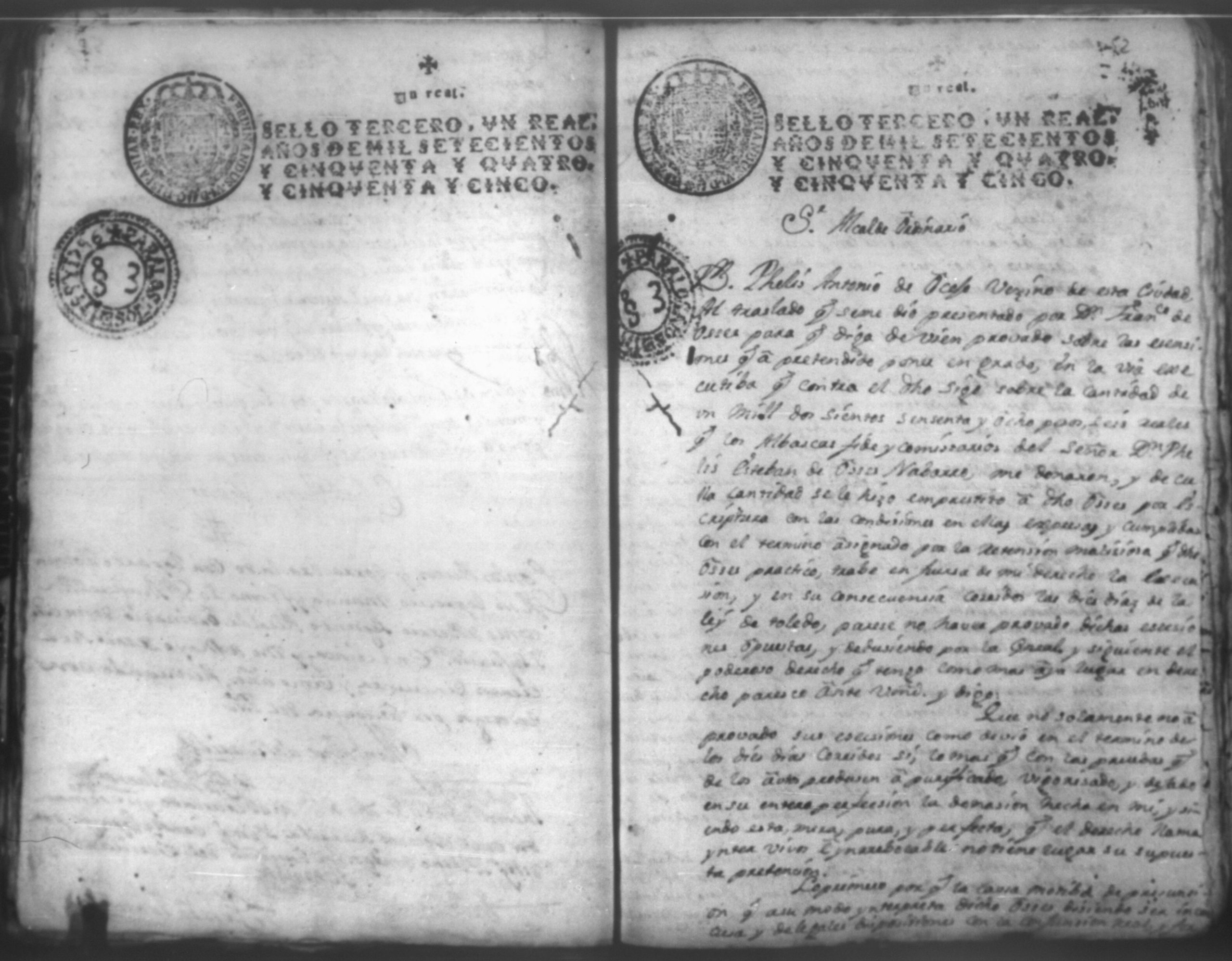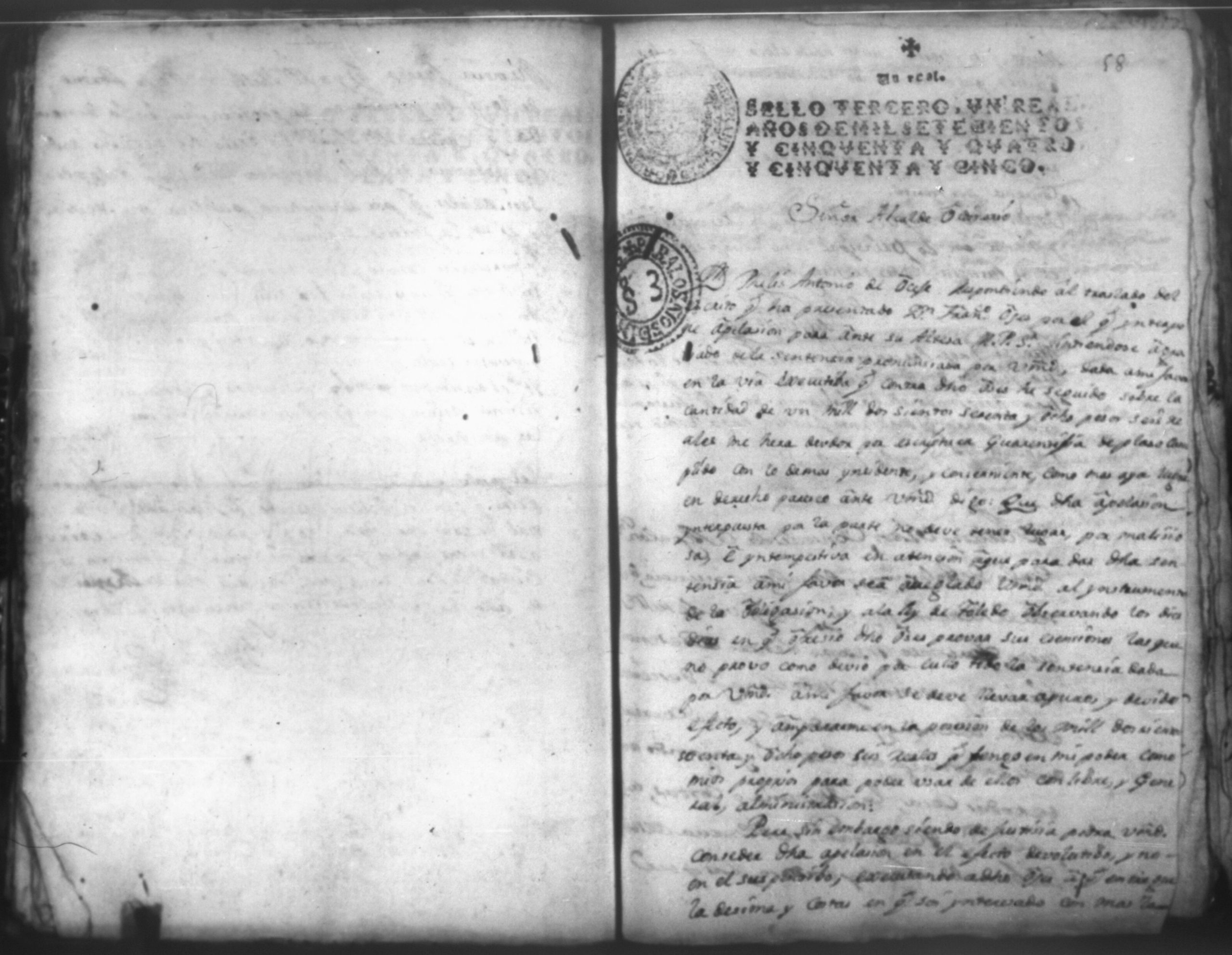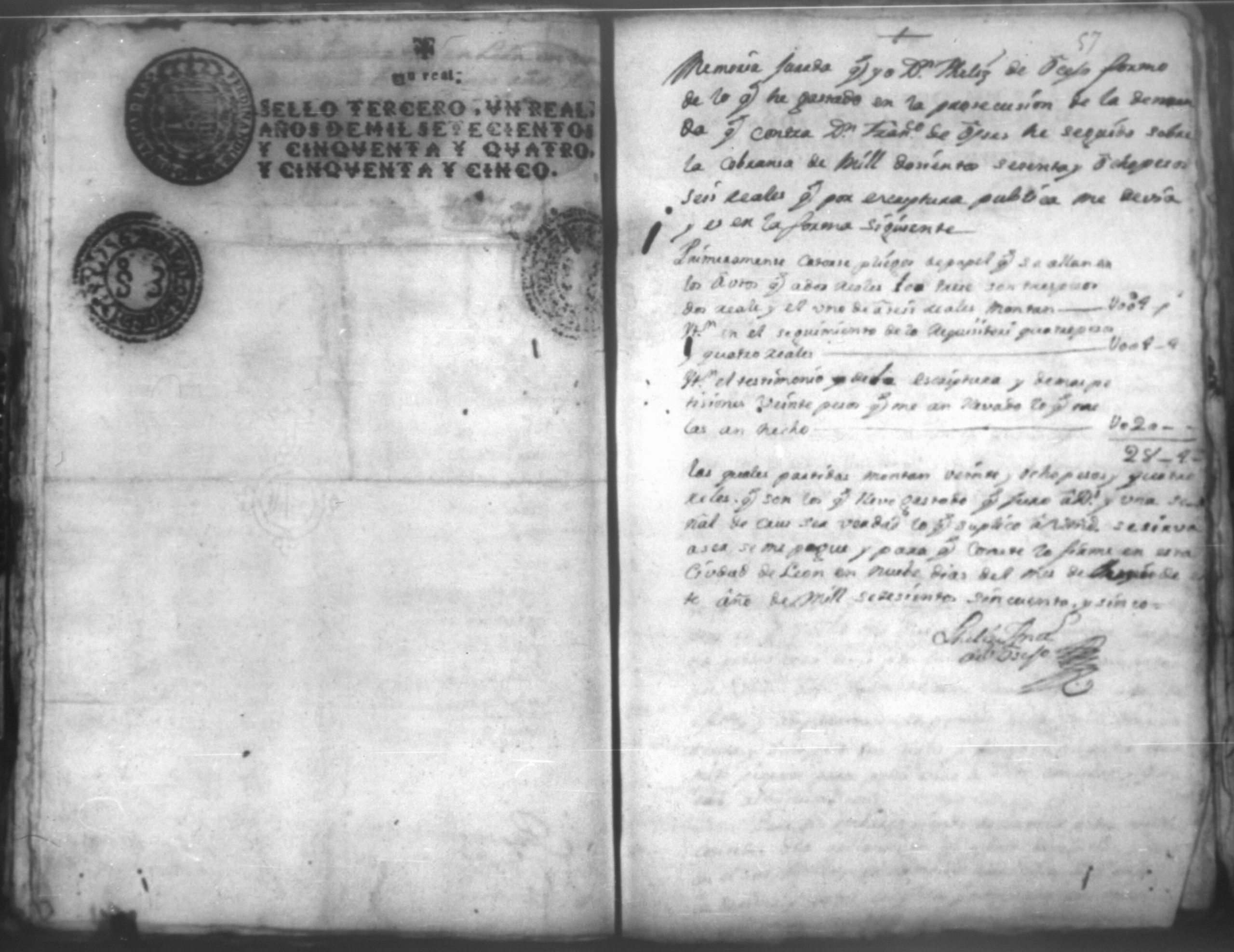 Temática: Leon, 1756. Se entregaron los autos al relator en 18 de septiembre de 1756. Señor Alcalde ordinario Don Phelix Antonio de [Osejo] vecino de dicha ciudad. El Capitan Francisco de Orses pide prestamo de un mil dosientos setenta y ocho peso y seis reales al comisario Don Clemente Rey Alvarez y Don Phelipe de Lara maestre de la Santa Yglesia Cathedral.