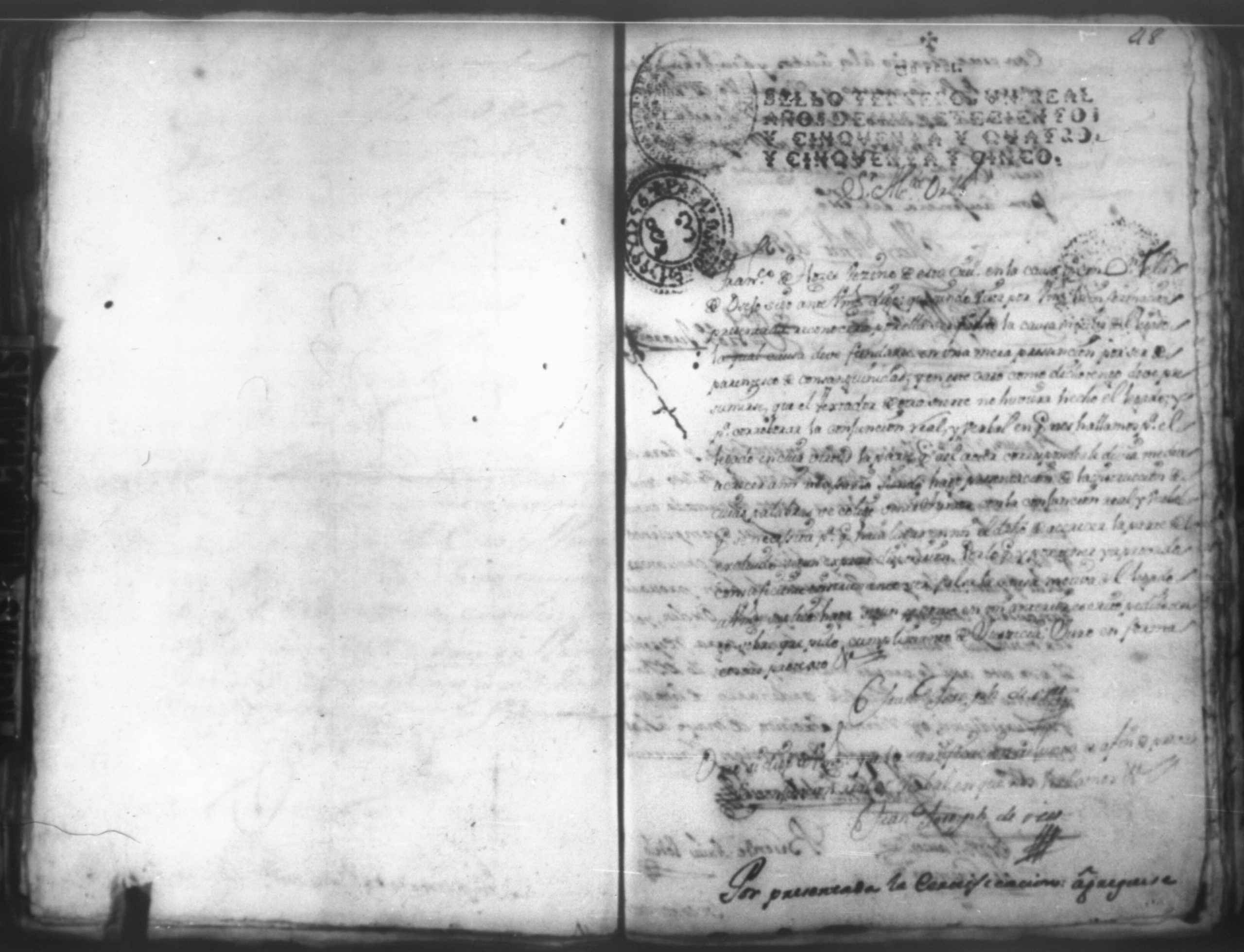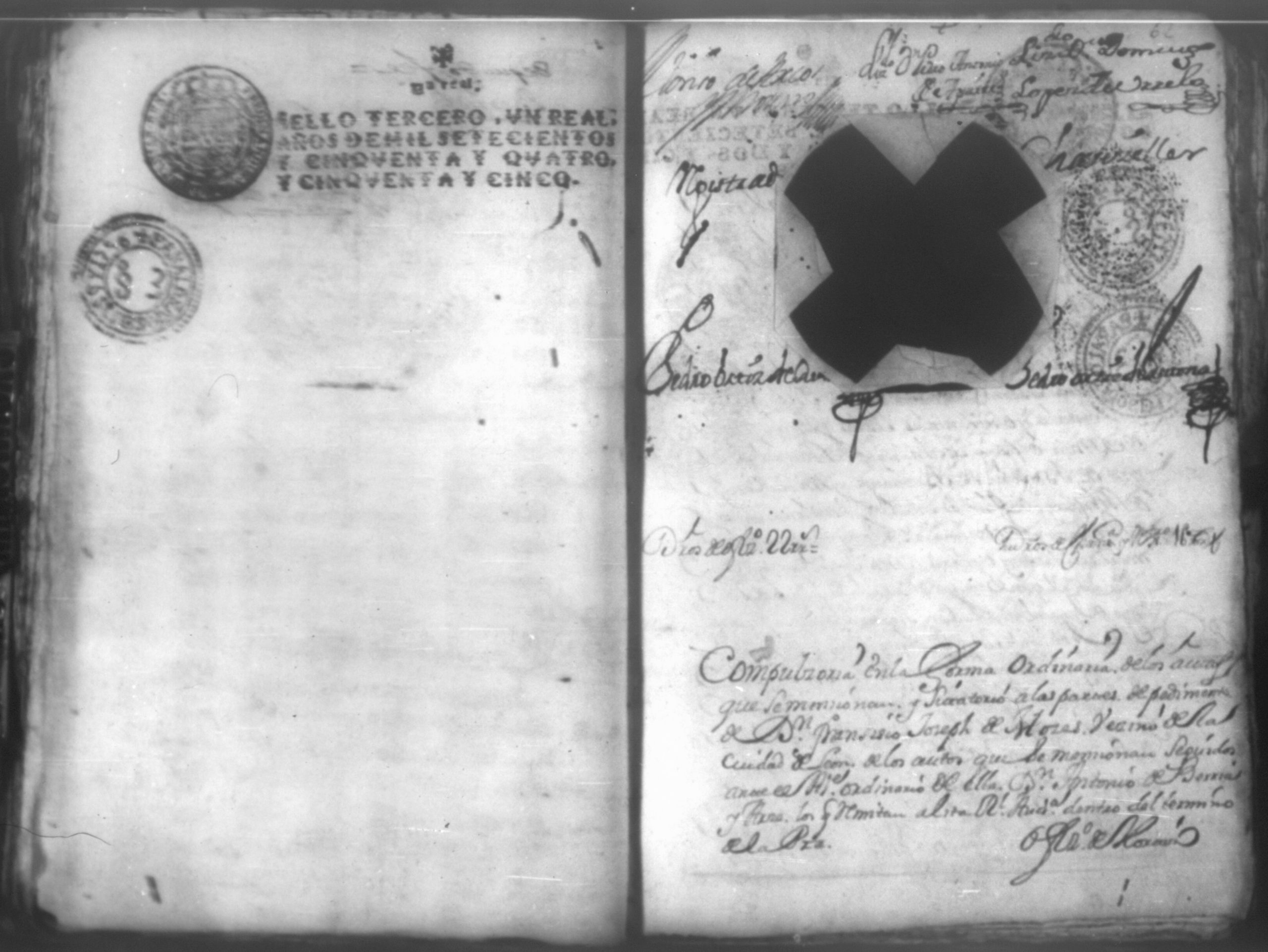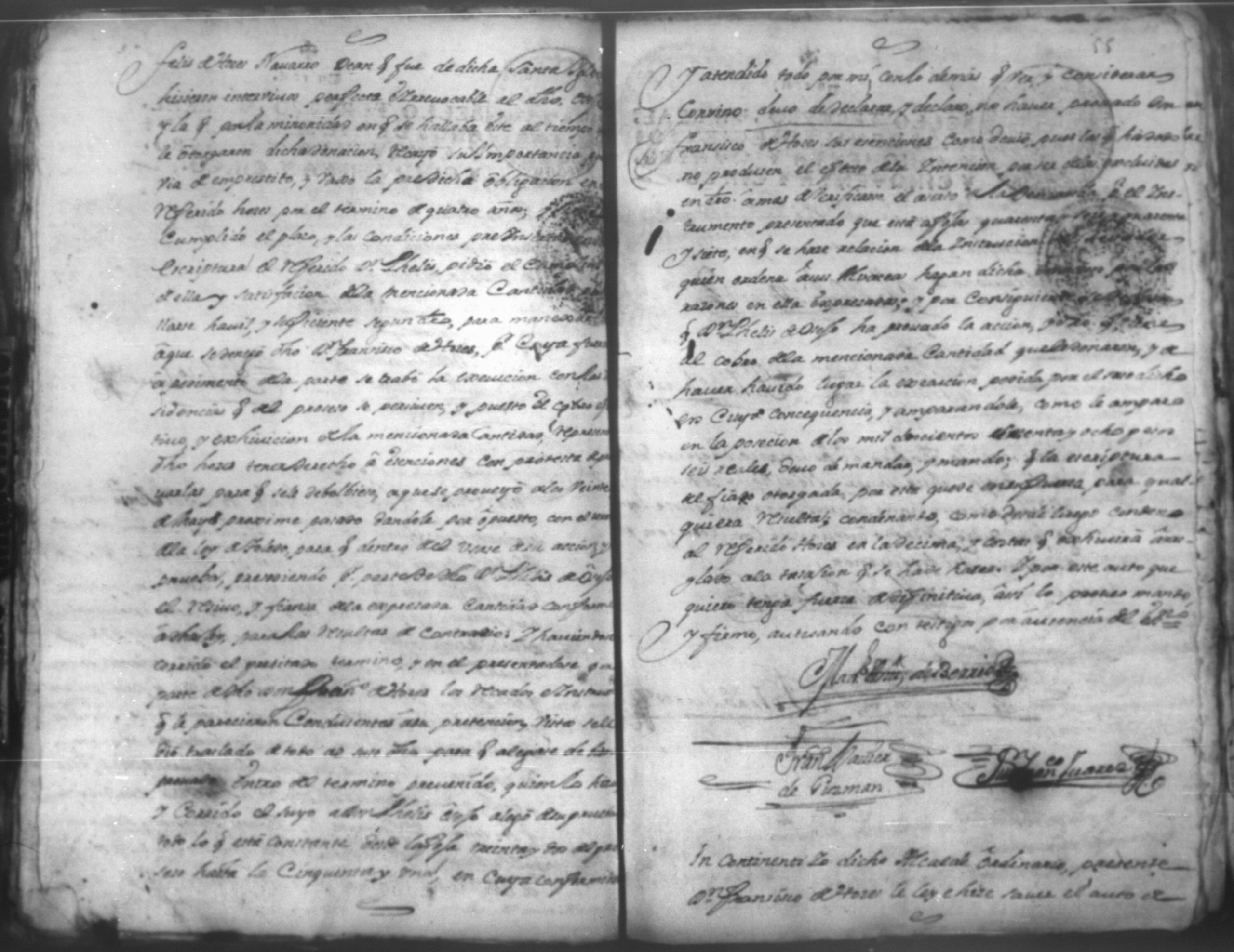 Temática: Leon, 1756. Se entregaron los autos al relator en 18 de septiembre de 1756. Señor Alcalde ordinario Don Phelix Antonio de [Osejo] vecino de dicha ciudad. El Capitan Francisco de Orses pide prestamo de un mil dosientos setenta y ocho peso y seis reales al comisario Don Clemente Rey Alvarez y Don Phelipe de Lara maestre de la Santa Yglesia Cathedral.