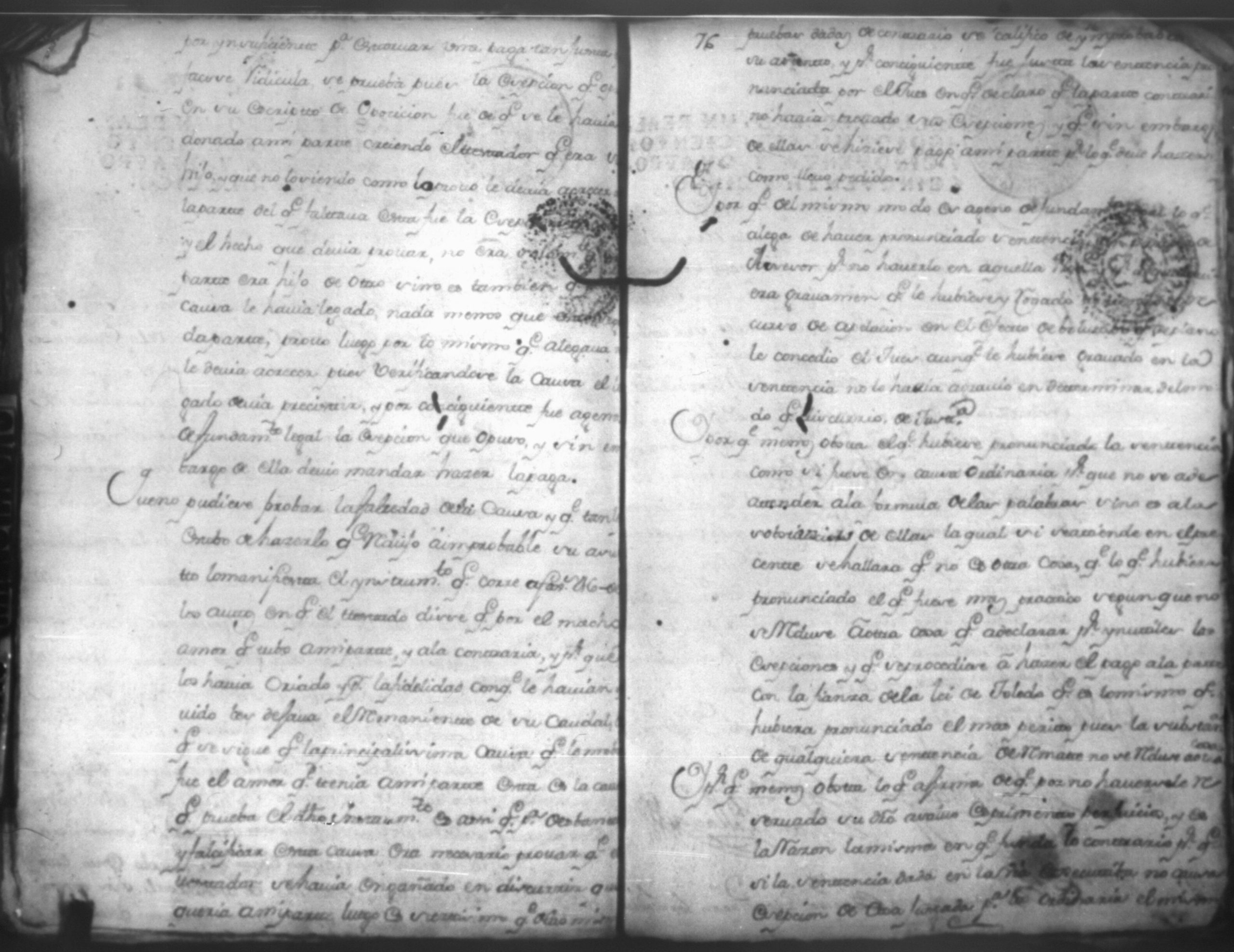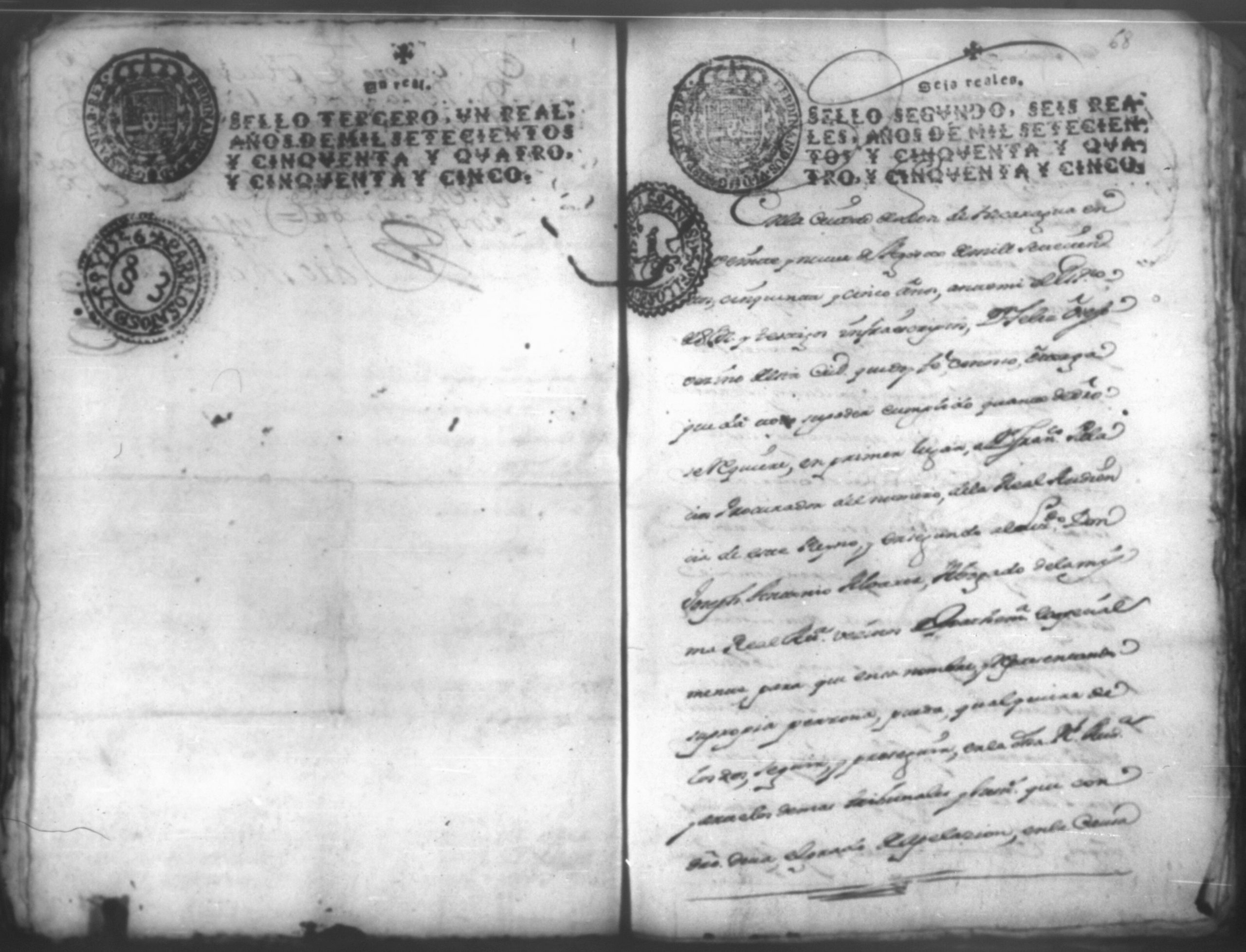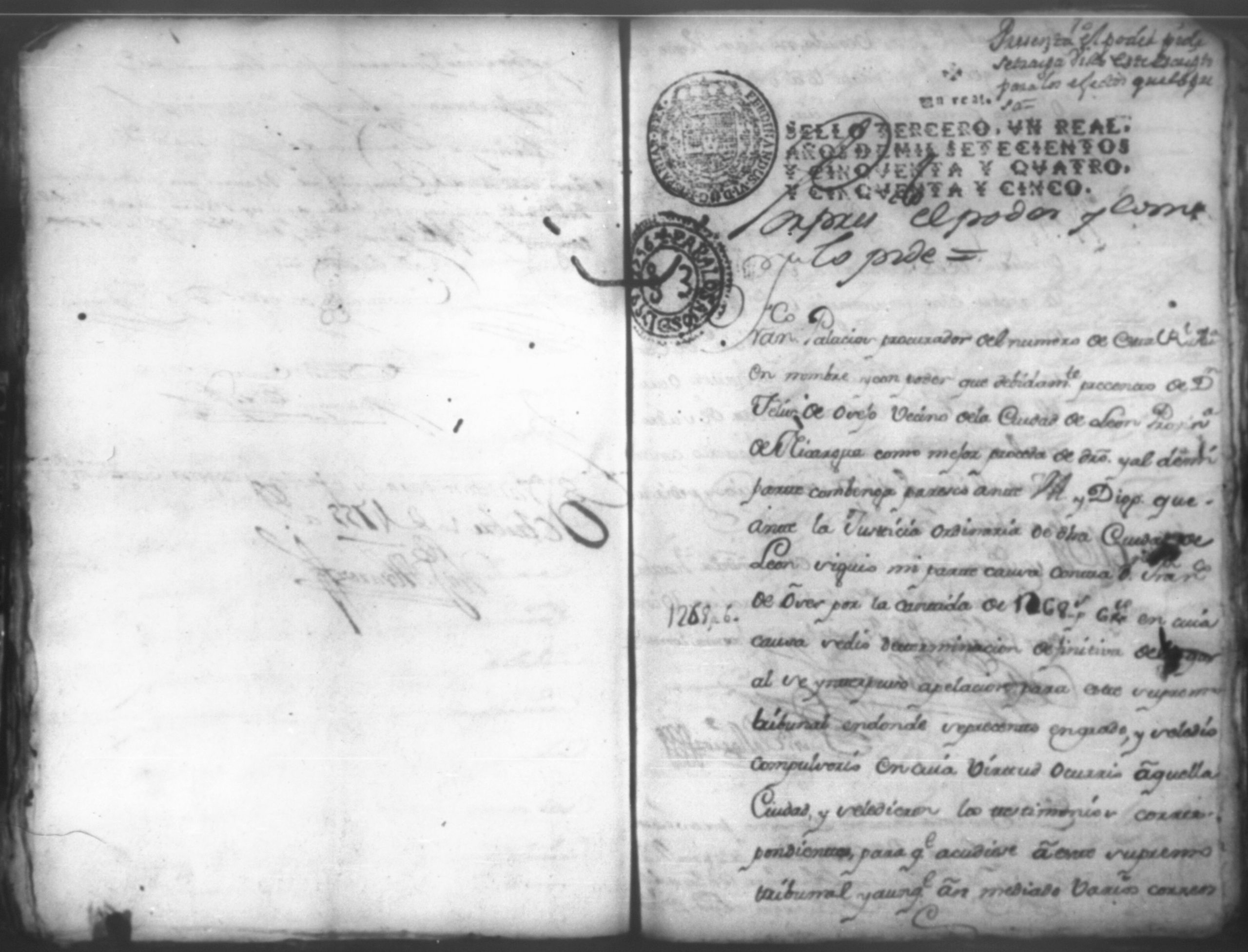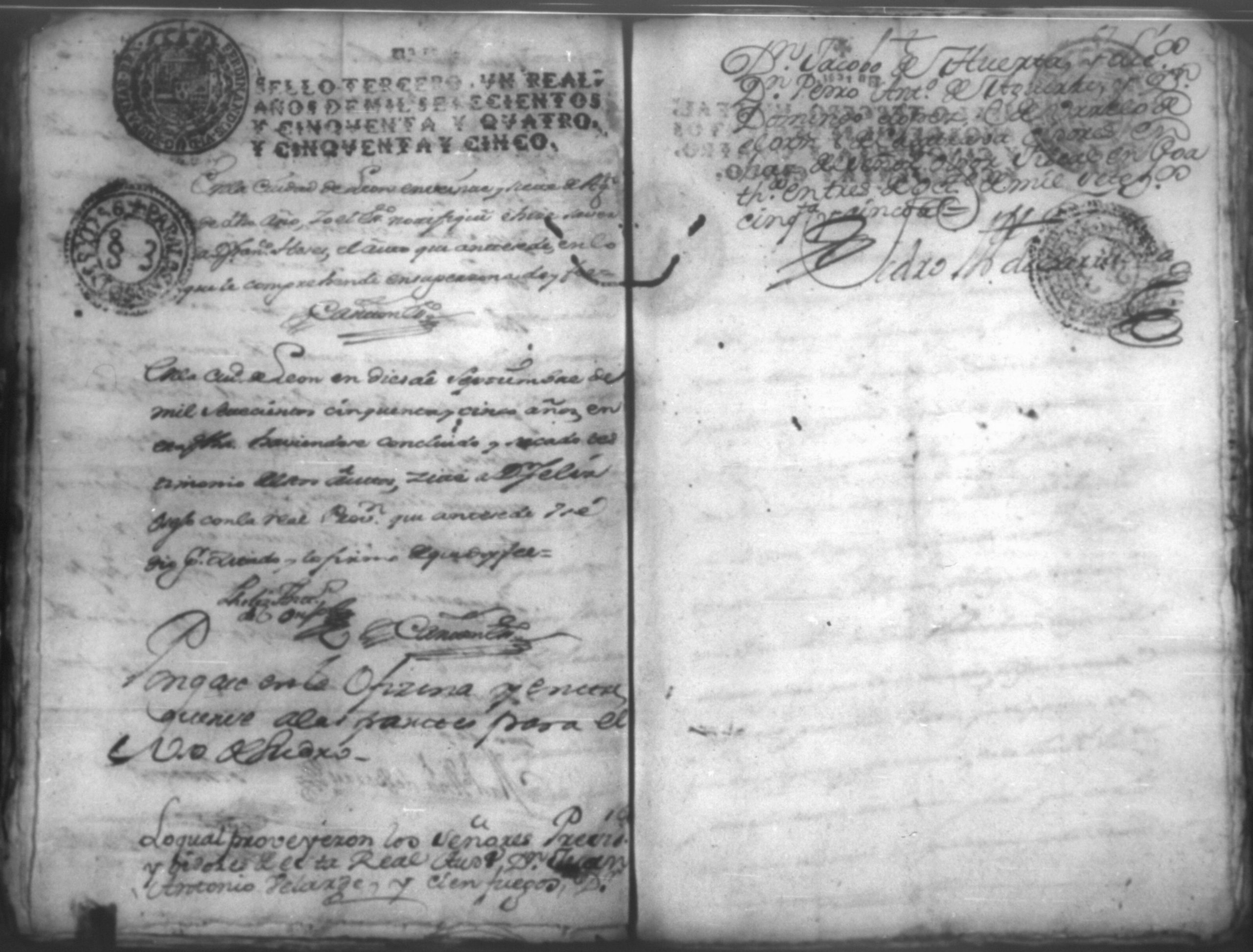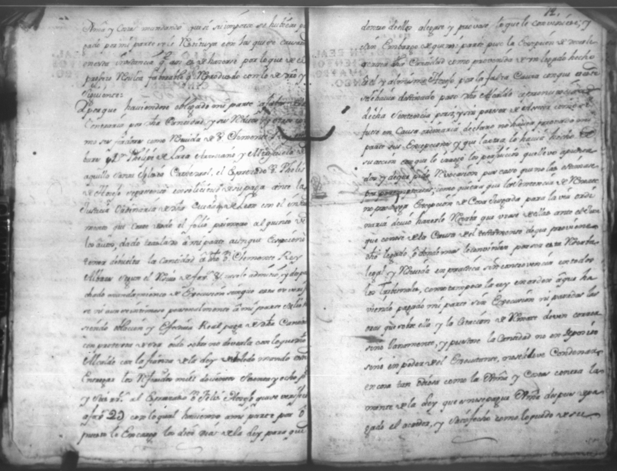 Temática: Leon, 1756. Se entregaron los autos al relator en 18 de septiembre de 1756. Señor Alcalde ordinario Don Phelix Antonio de [Osejo] vecino de dicha ciudad. El Capitan Francisco de Orses pide prestamo de un mil dosientos setenta y ocho peso y seis reales al comisario Don Clemente Rey Alvarez y Don Phelipe de Lara maestre de la Santa Yglesia Cathedral.