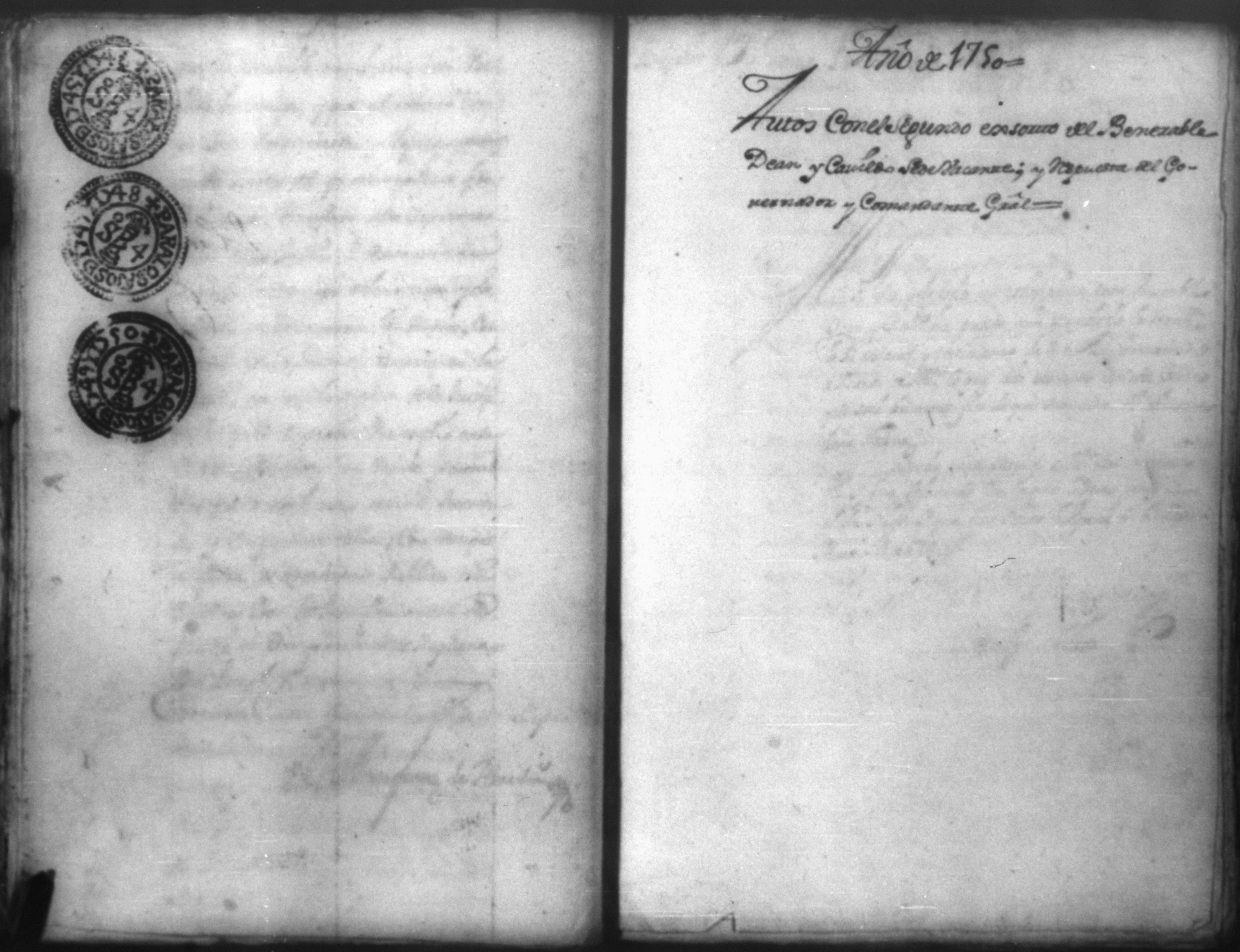 Temática: Autos con dos cuadernos con los escritos del Venerable Señor Dean y Cavildo Sede Vacante de este Obispado de Nicaragua, al Gobernador y Comante General pidiendo auxilio contra los indios de pueblos de Managua. En el interior registra autos con fecha unicamente de los años 1749 y 1750.