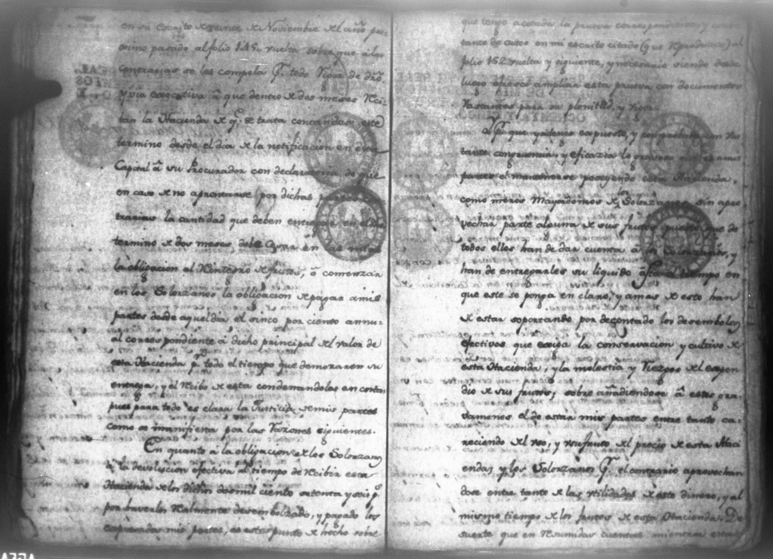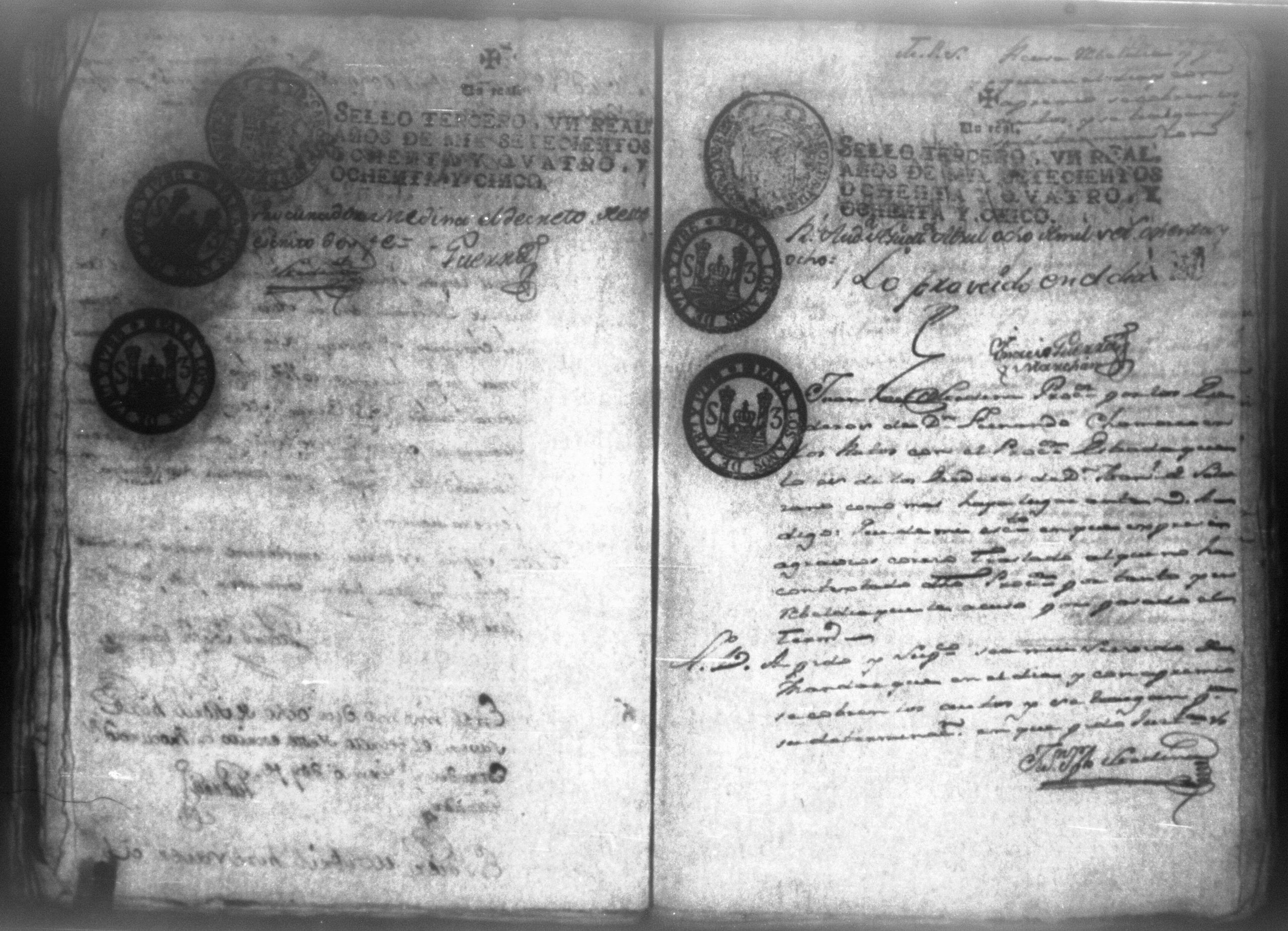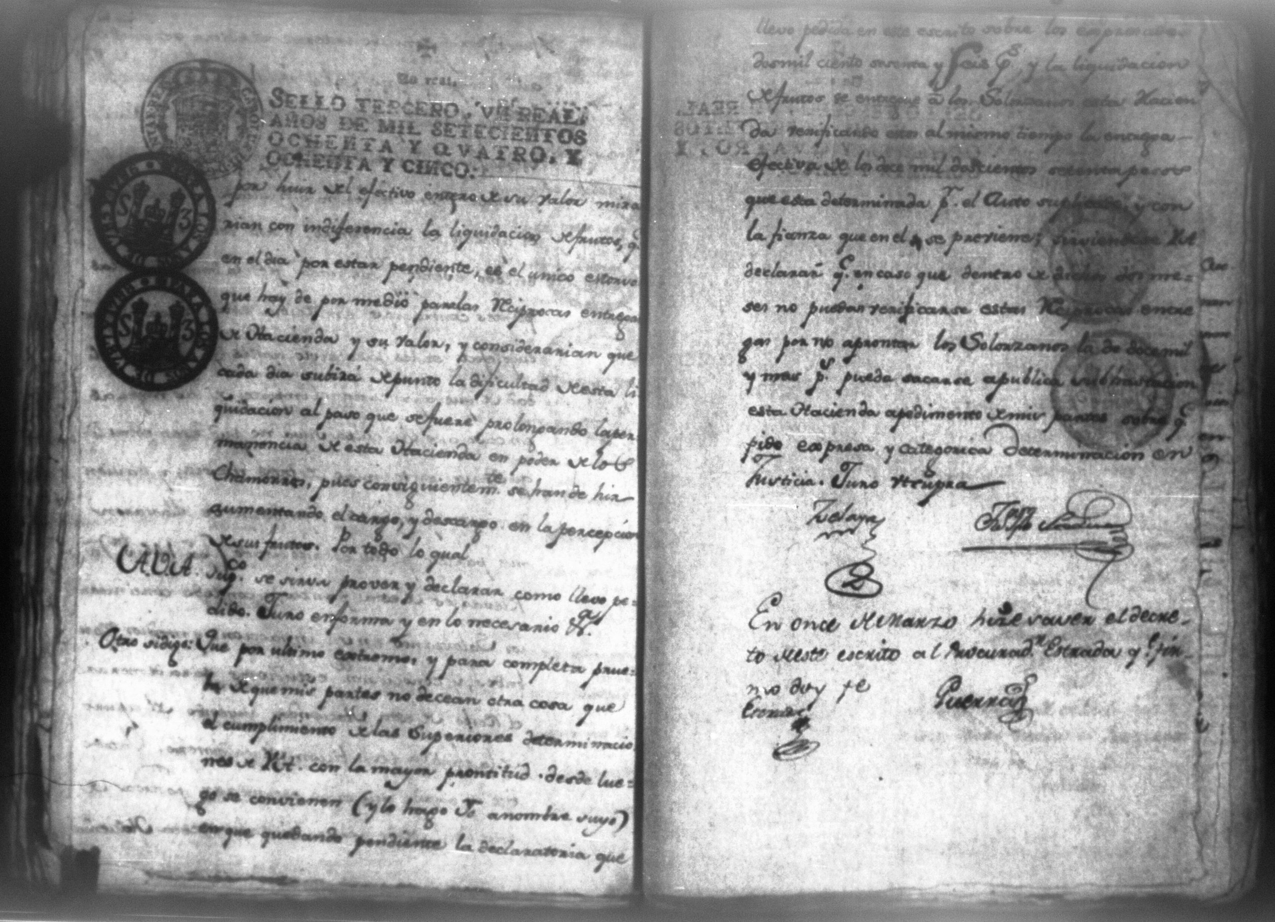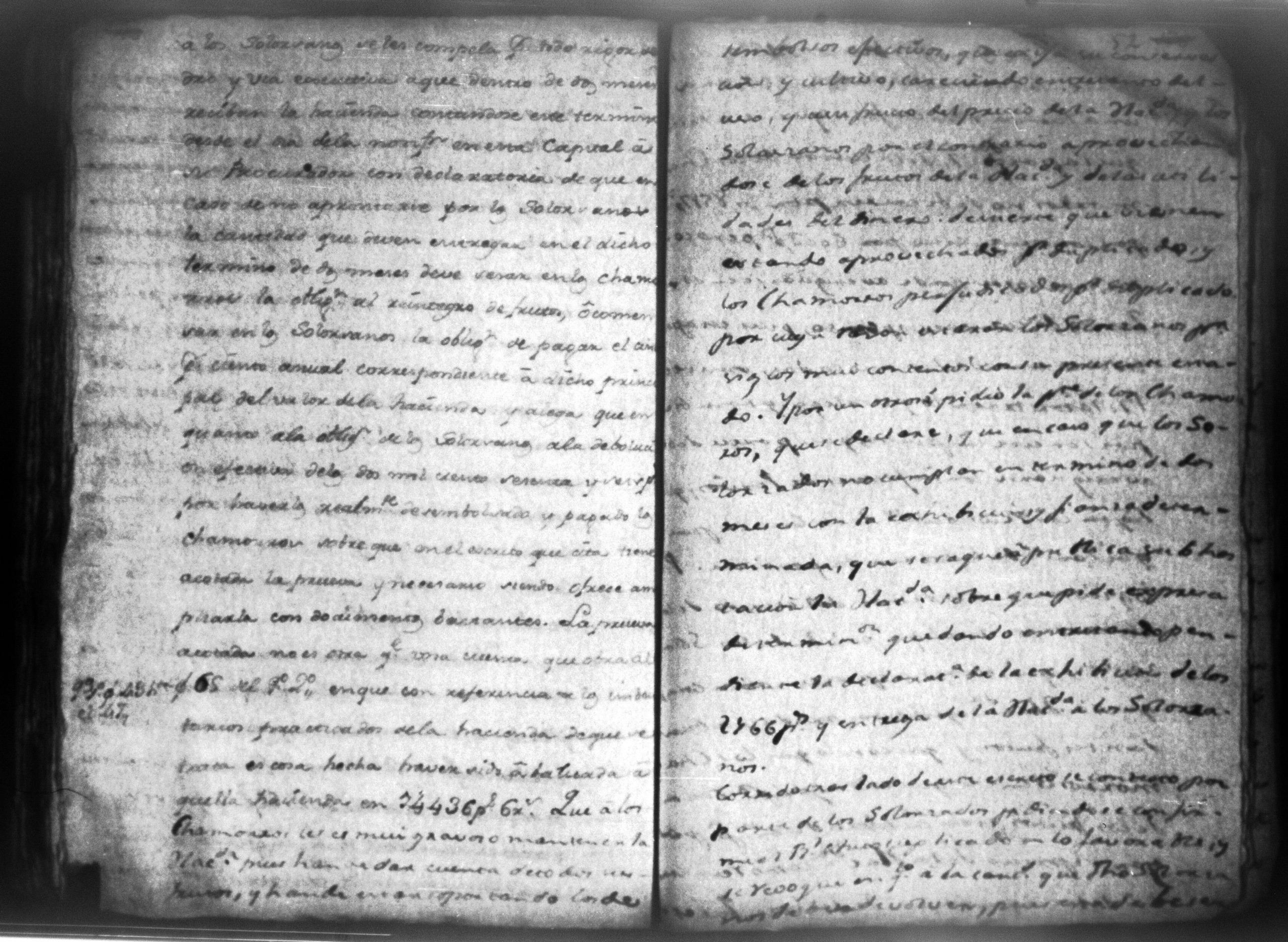 Temática: Audiencia, León 1788. Lo actuado con la executoria del Pleito que siguieron los Solorzanos contra los Chamorros sobre nulidad del remate de la Hazienda del Trapiche. Gabriel de Estada Procurador de los del numero de esta Real Audiencia y de Don Joseph Juachin de Solorzano Alferez Real del Noble Ayuntamiento de la ciudad de Granada, de más hermanas, hijos y herederos del finado Don Manuel de Navas de Solorzano como lugar haya en derecho, ante v.a. parezco y digo: que en los autos seguidos en este Supremo Tribunal en virtud del caso por coste que en las [...] a mi partes conta el Procurador Juan Joseph Medina que lo [...] Don Fernando Chamorro sobre nulidad de la venta de la Hacienda de Cacao nombrada El Trapiche...