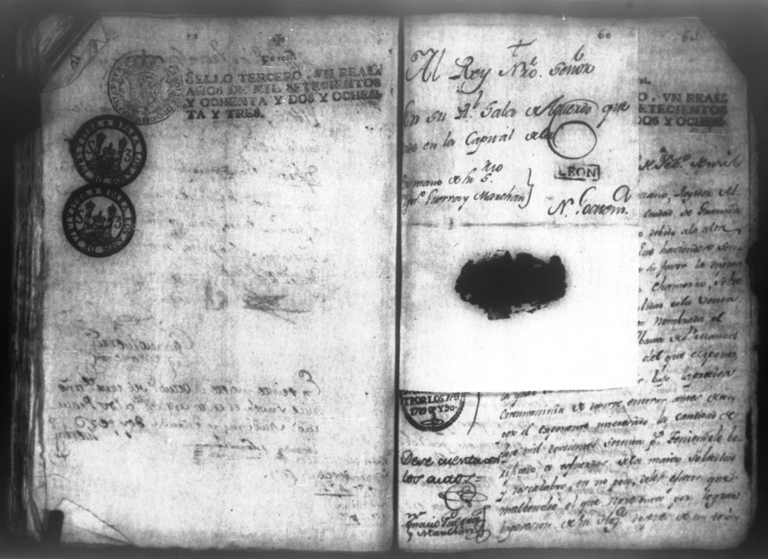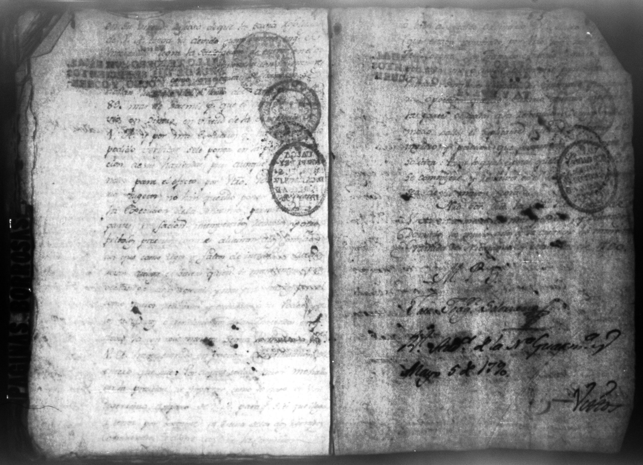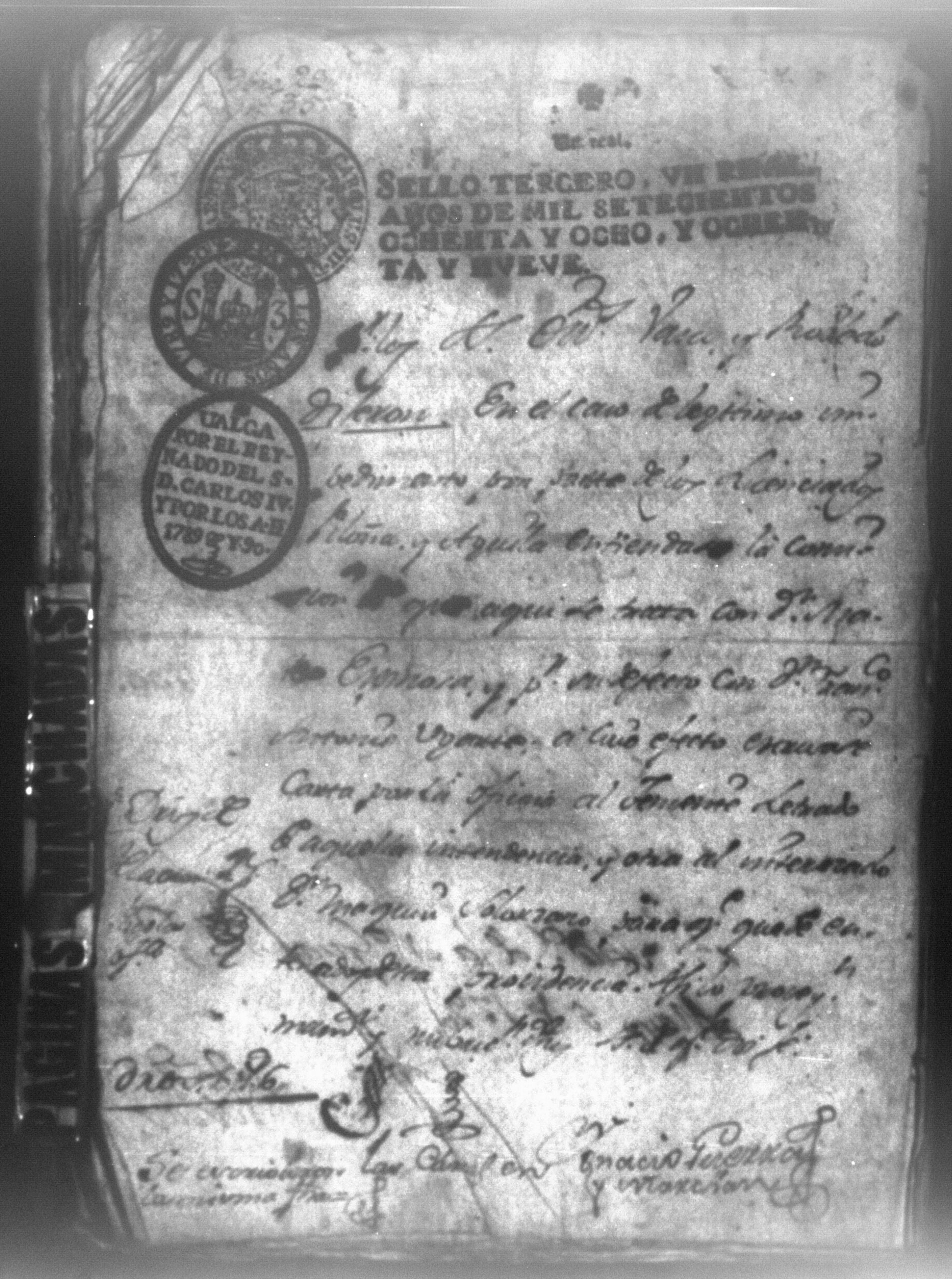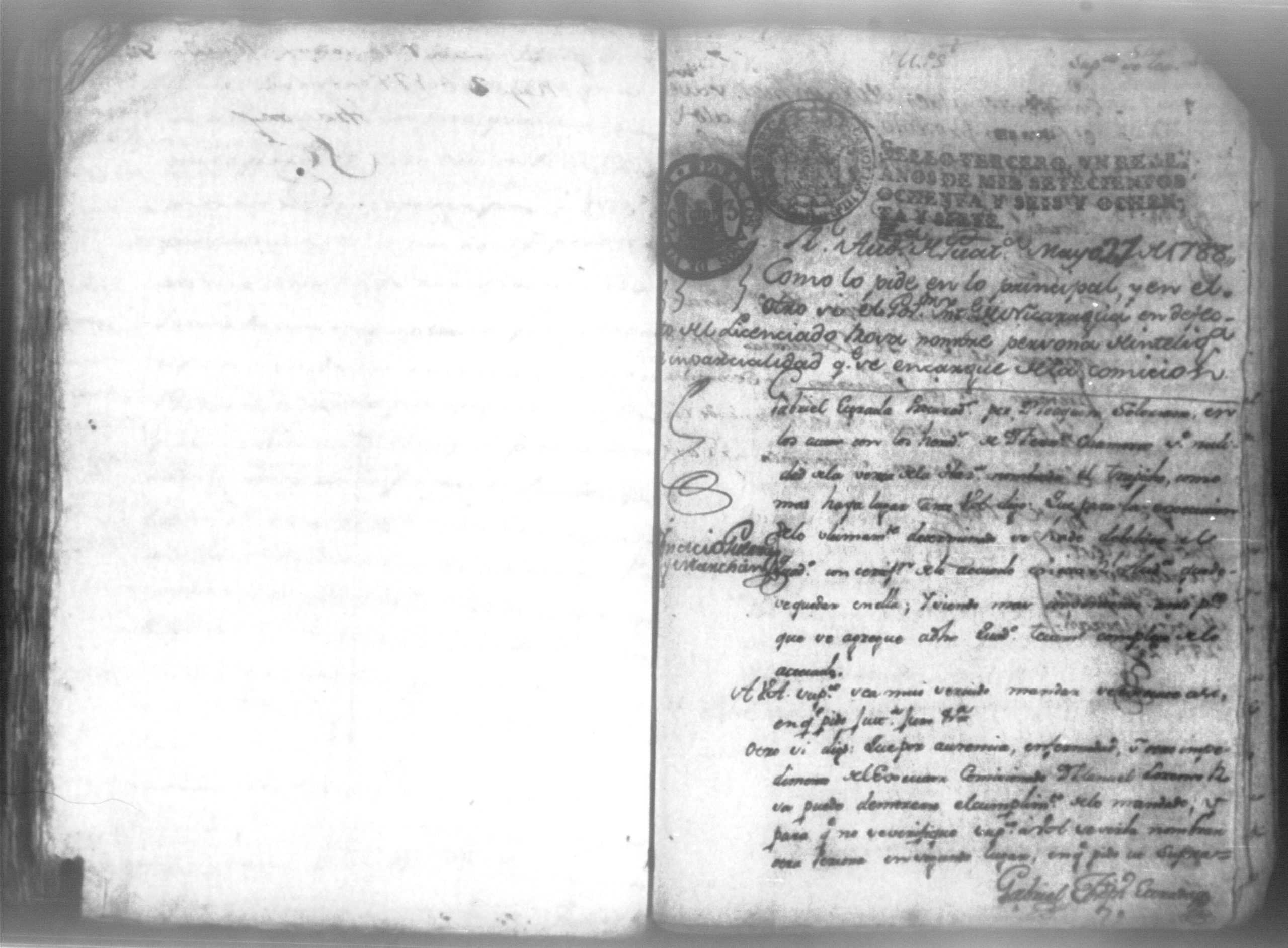 Temática: Audiencia, León 1788. Lo actuado con la executoria del Pleito que siguieron los Solorzanos contra los Chamorros sobre nulidad del remate de la Hazienda del Trapiche. Gabriel de Estada Procurador de los del numero de esta Real Audiencia y de Don Joseph Juachin de Solorzano Alferez Real del Noble Ayuntamiento de la ciudad de Granada, de más hermanas, hijos y herederos del finado Don Manuel de Navas de Solorzano como lugar haya en derecho, ante v.a. parezco y digo: que en los autos seguidos en este Supremo Tribunal en virtud del caso por coste que en las [...] a mi partes conta el Procurador Juan Joseph Medina que lo [...] Don Fernando Chamorro sobre nulidad de la venta de la Hacienda de Cacao nombrada El Trapiche...