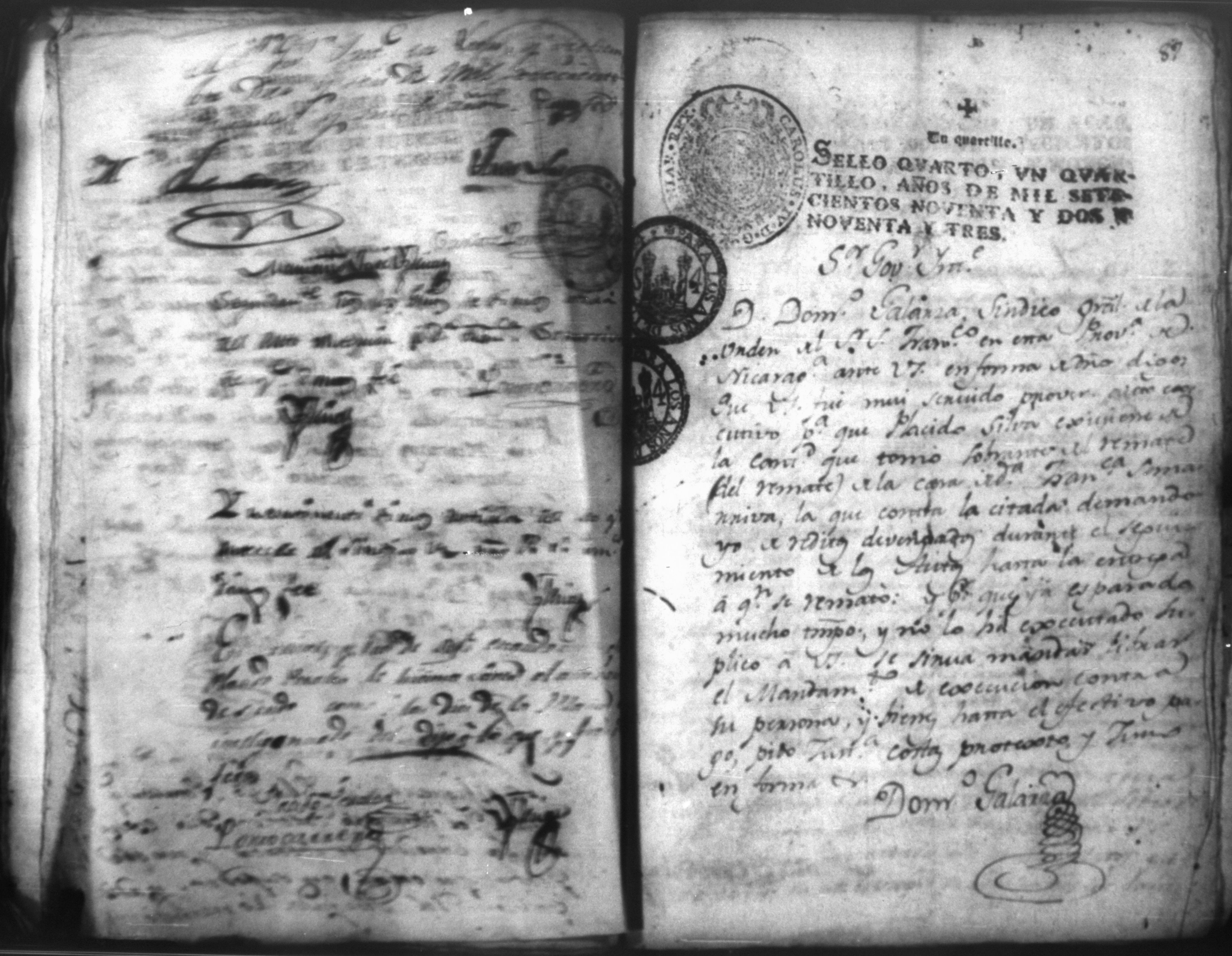 Temática: Audiencia León 1801. Causa executiva seguida por el síndico general del convento de San Francisco de esta ciudad contra doña Francisca Somarriba (sic) por reditos de cierto principal. Oficial Hurtado