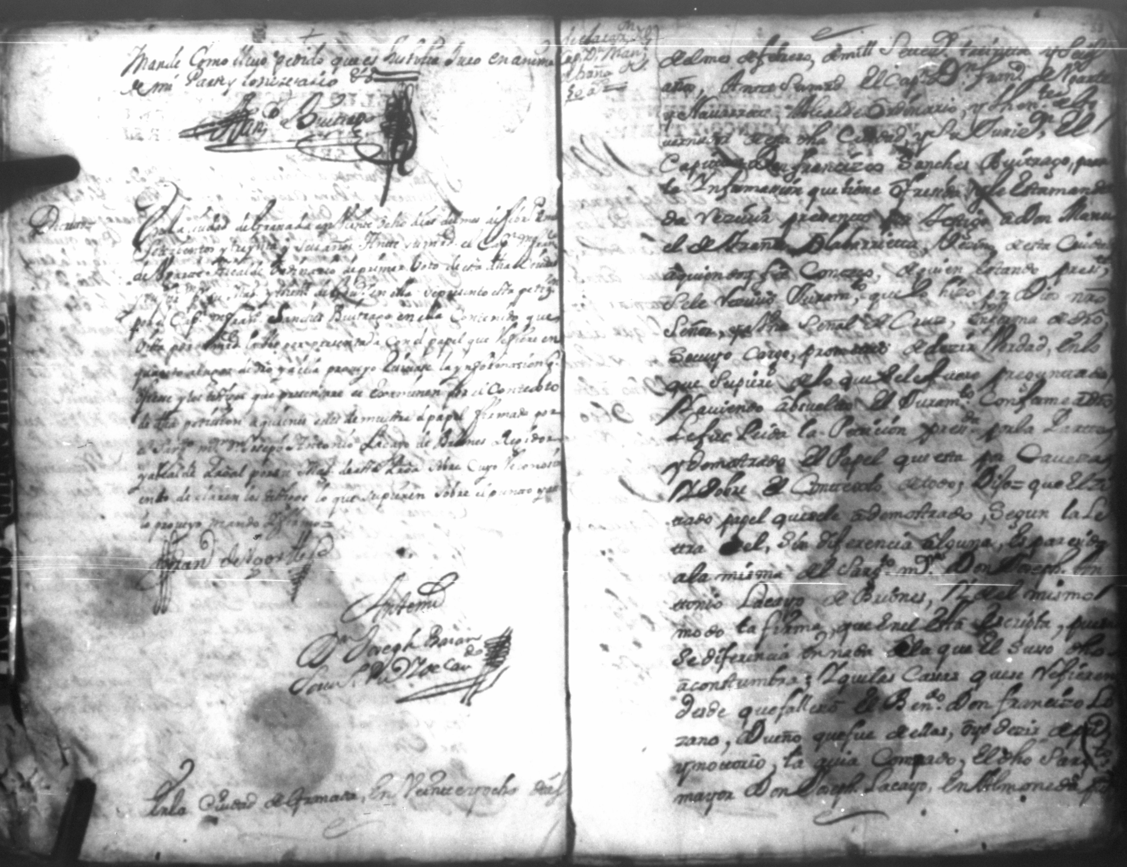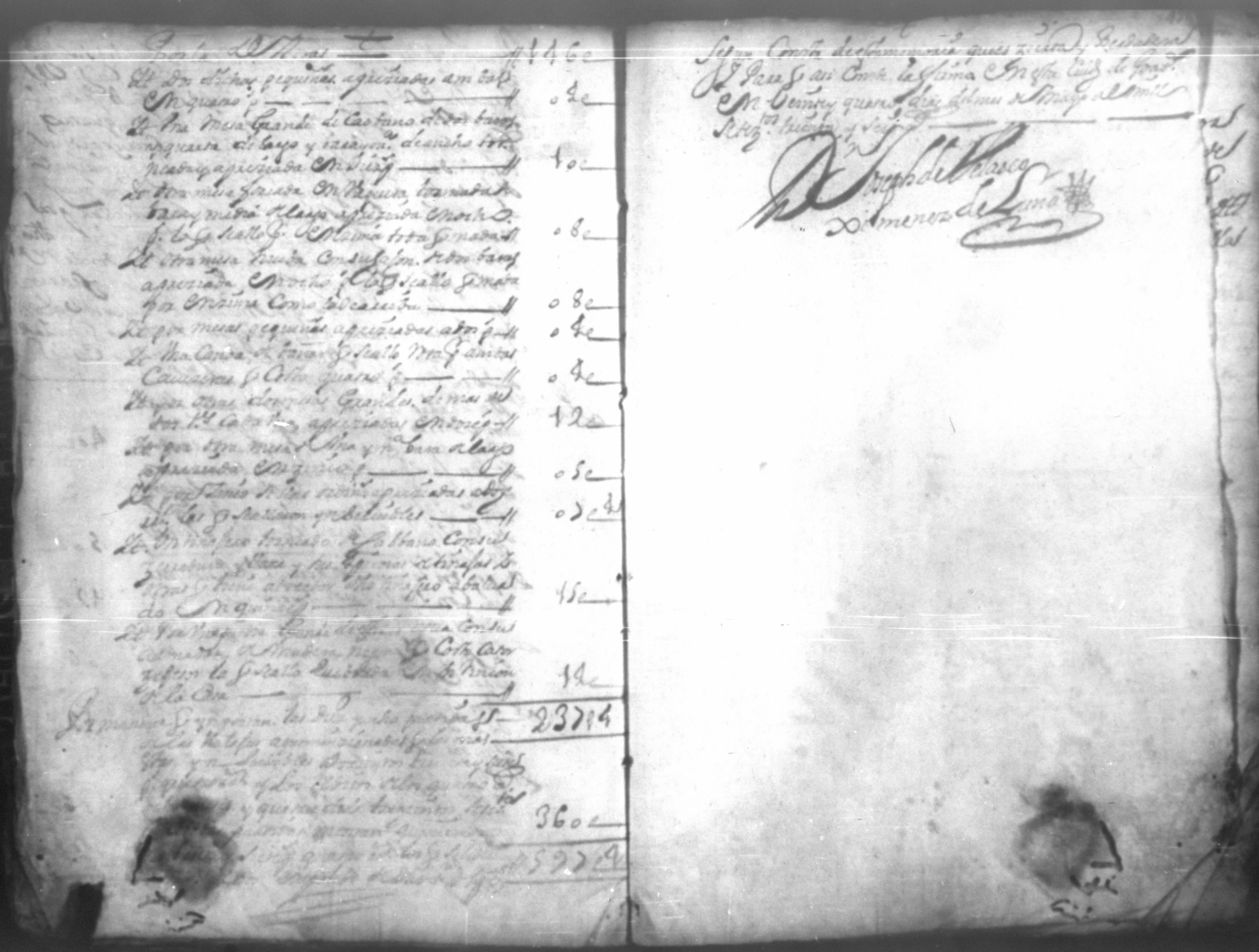 Temática: Don Joseph Antonio Lacayo de Briones, digo; que en las almonedas de los bienes del beneficiado don Francisco Lozano difunto, compro las casas y función de almoneda en dos mil pesos de censos