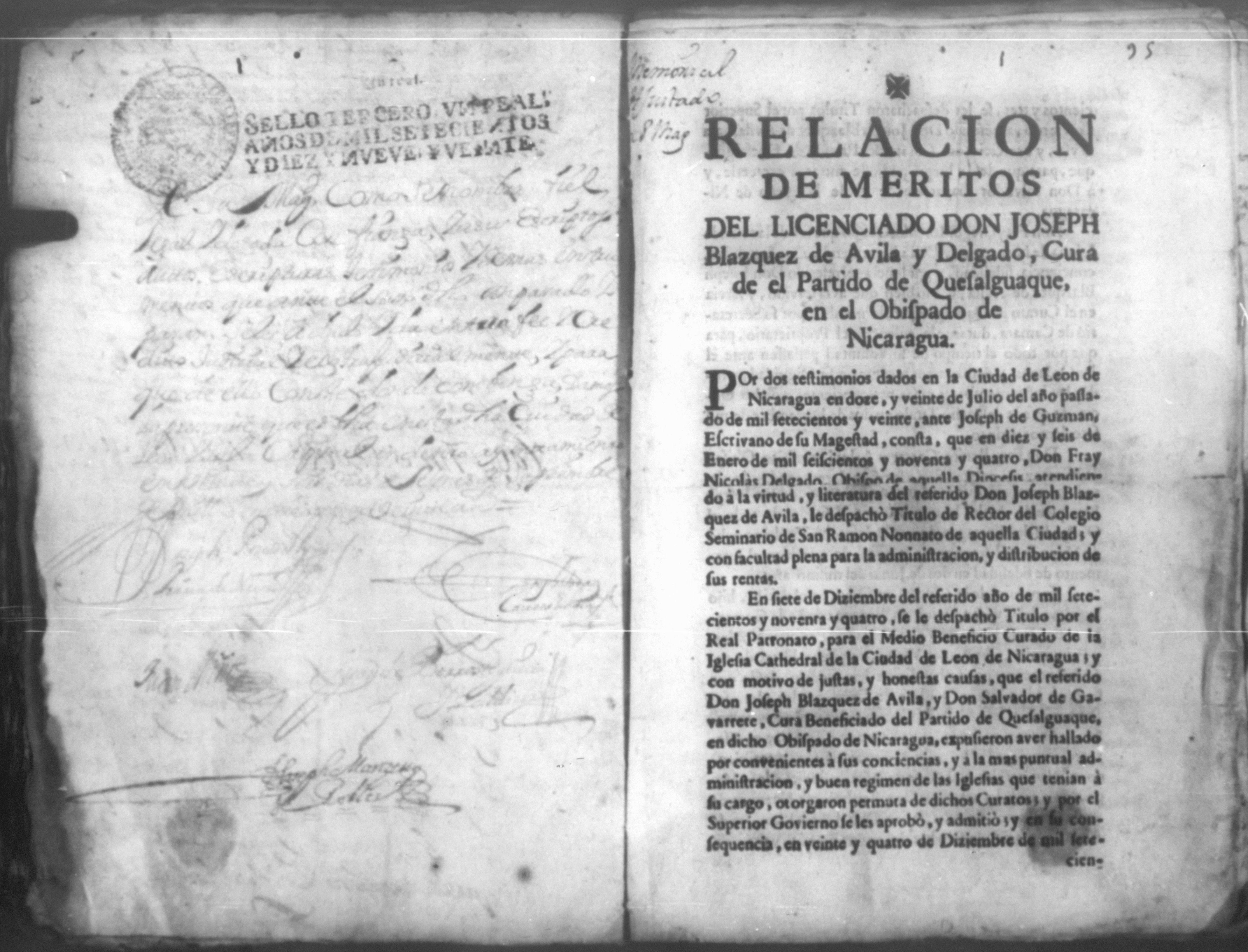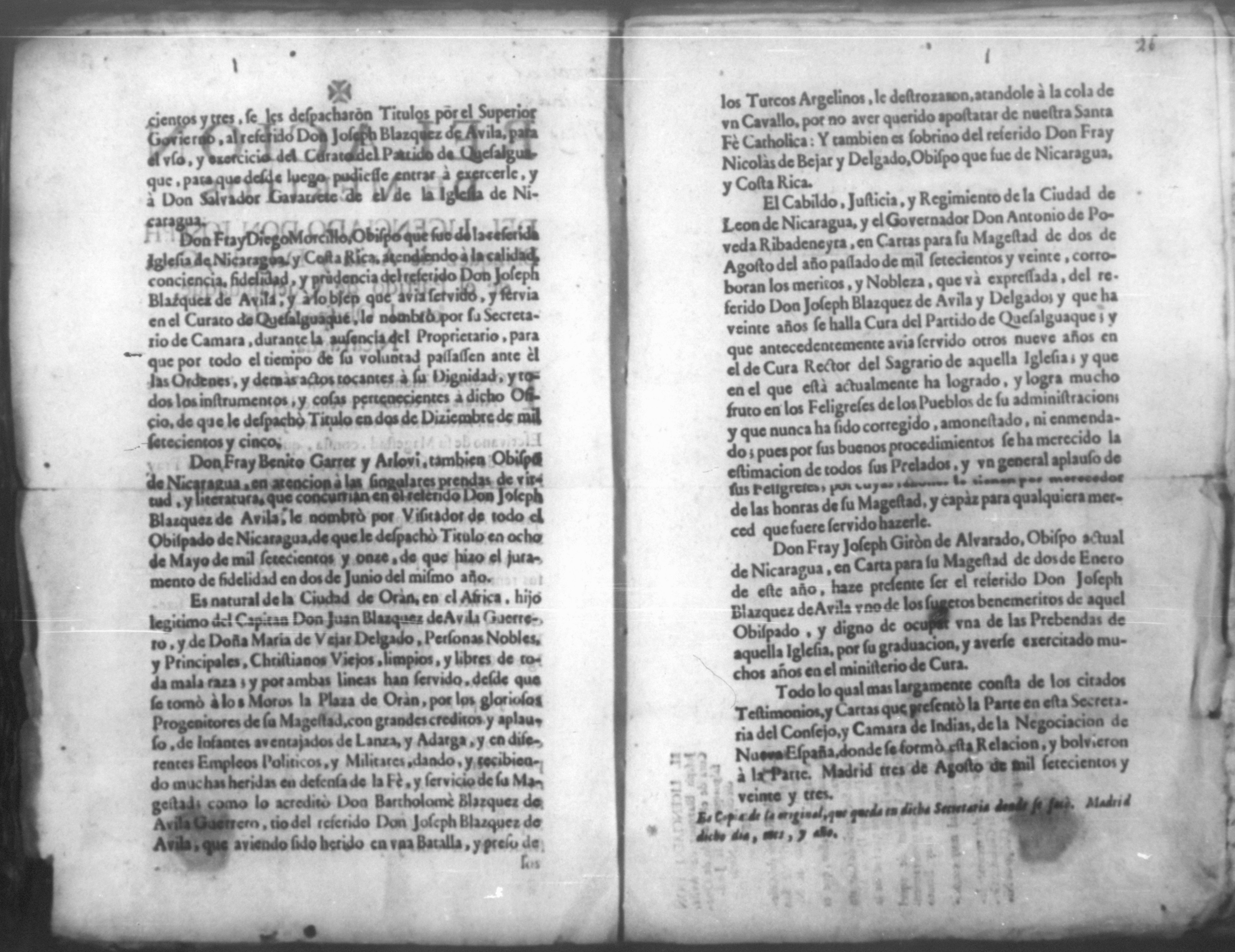 Expolio de Francisco Dionisio Villavicencio, Nicaragua 1736