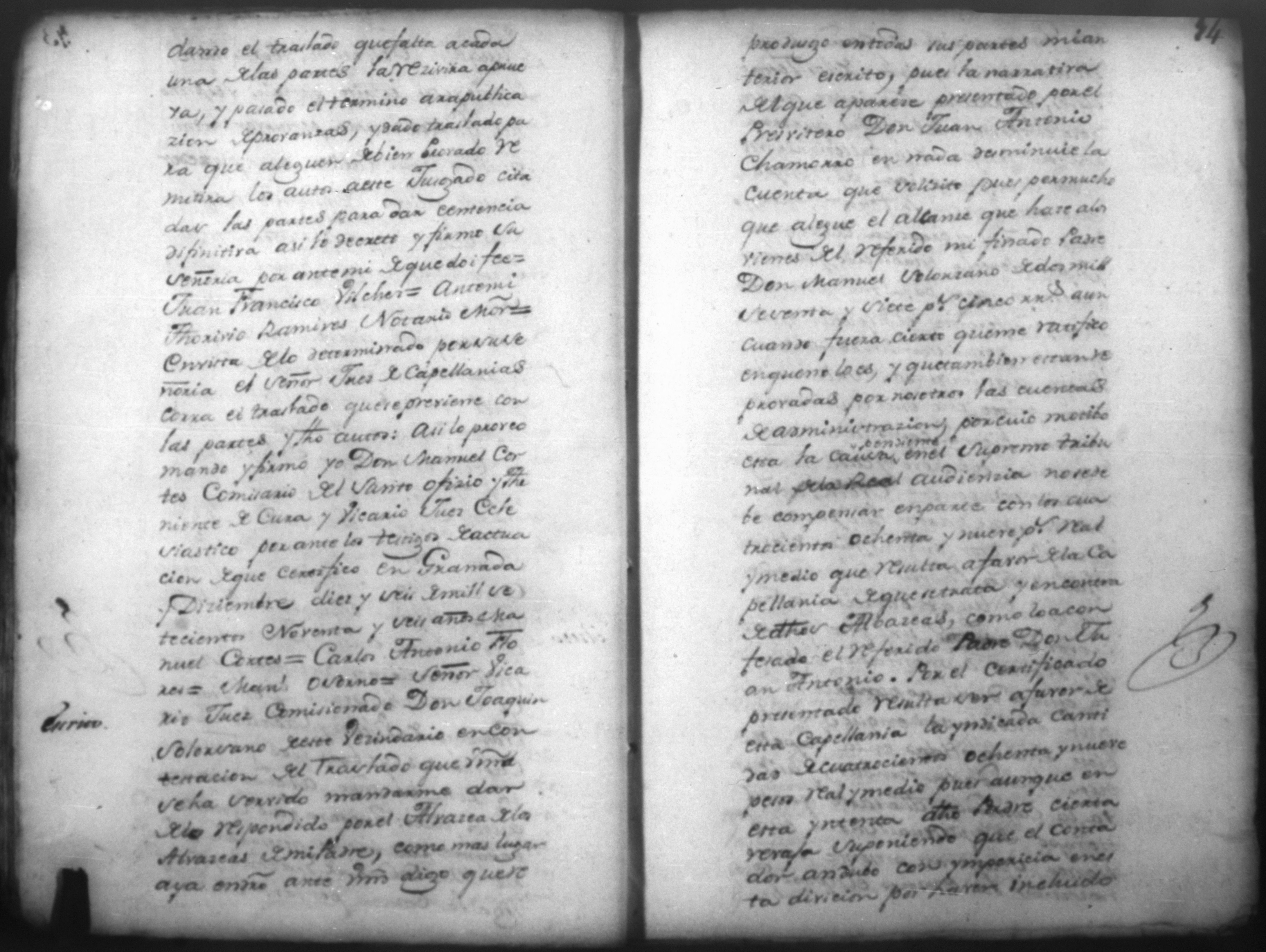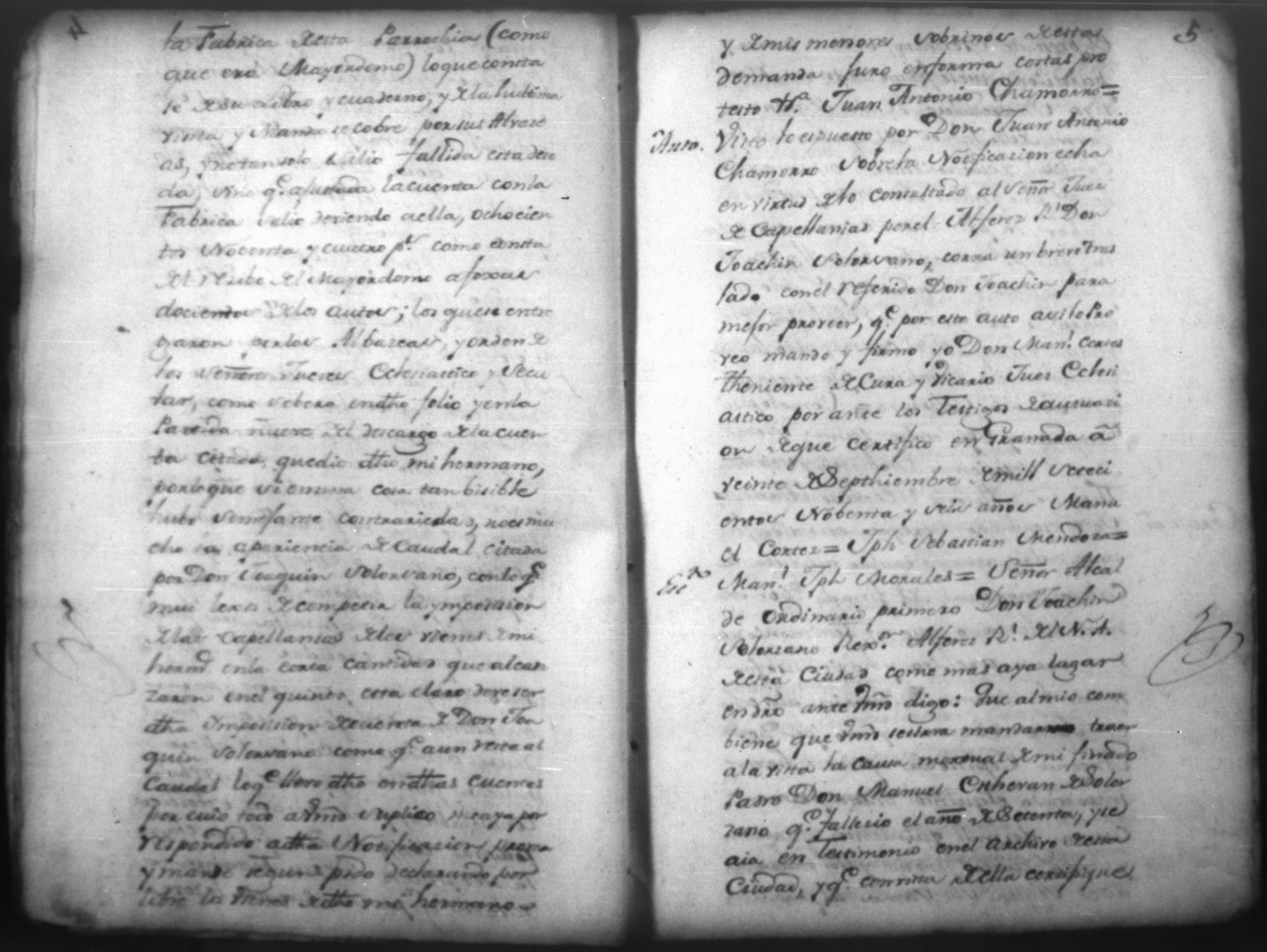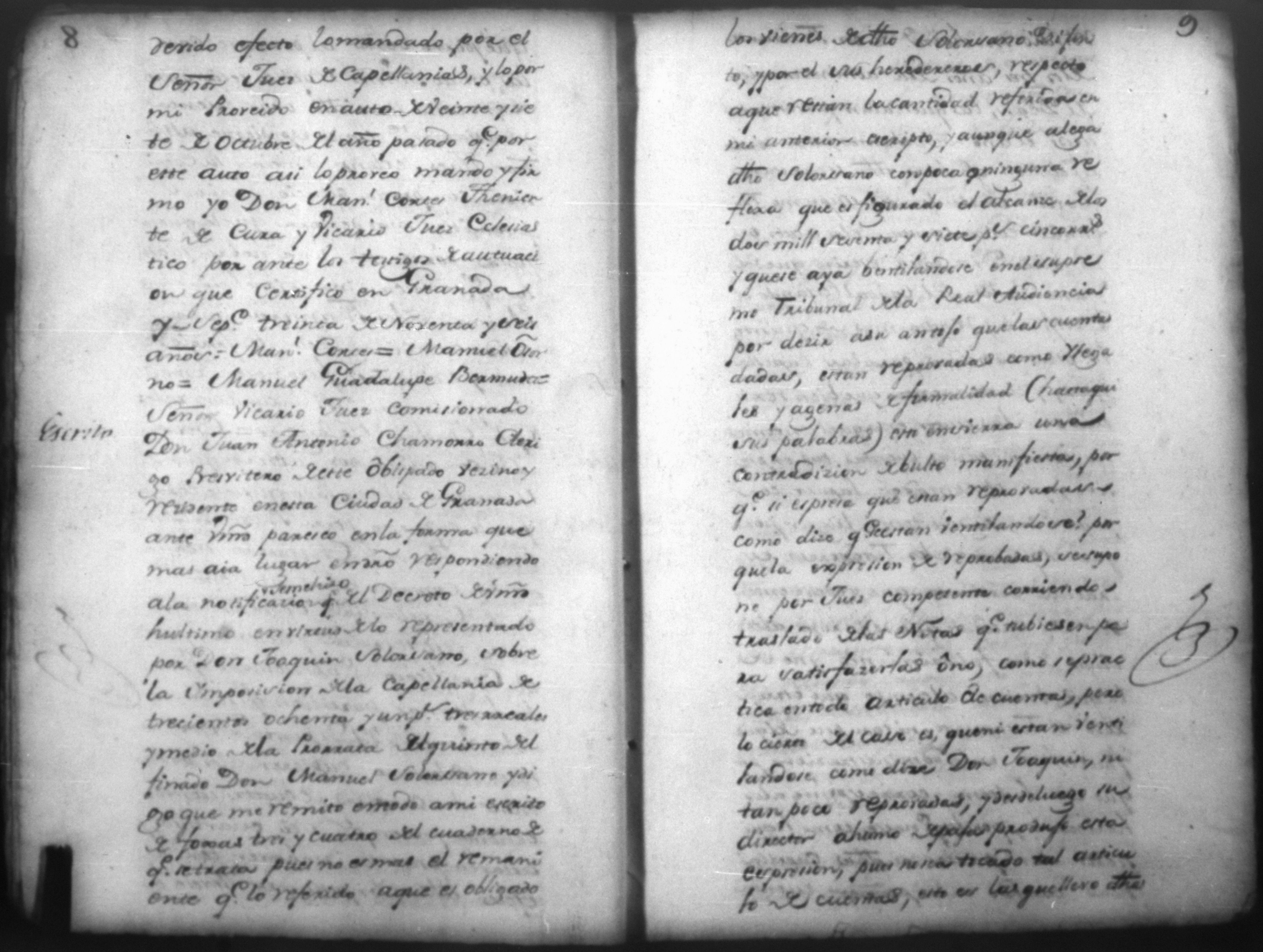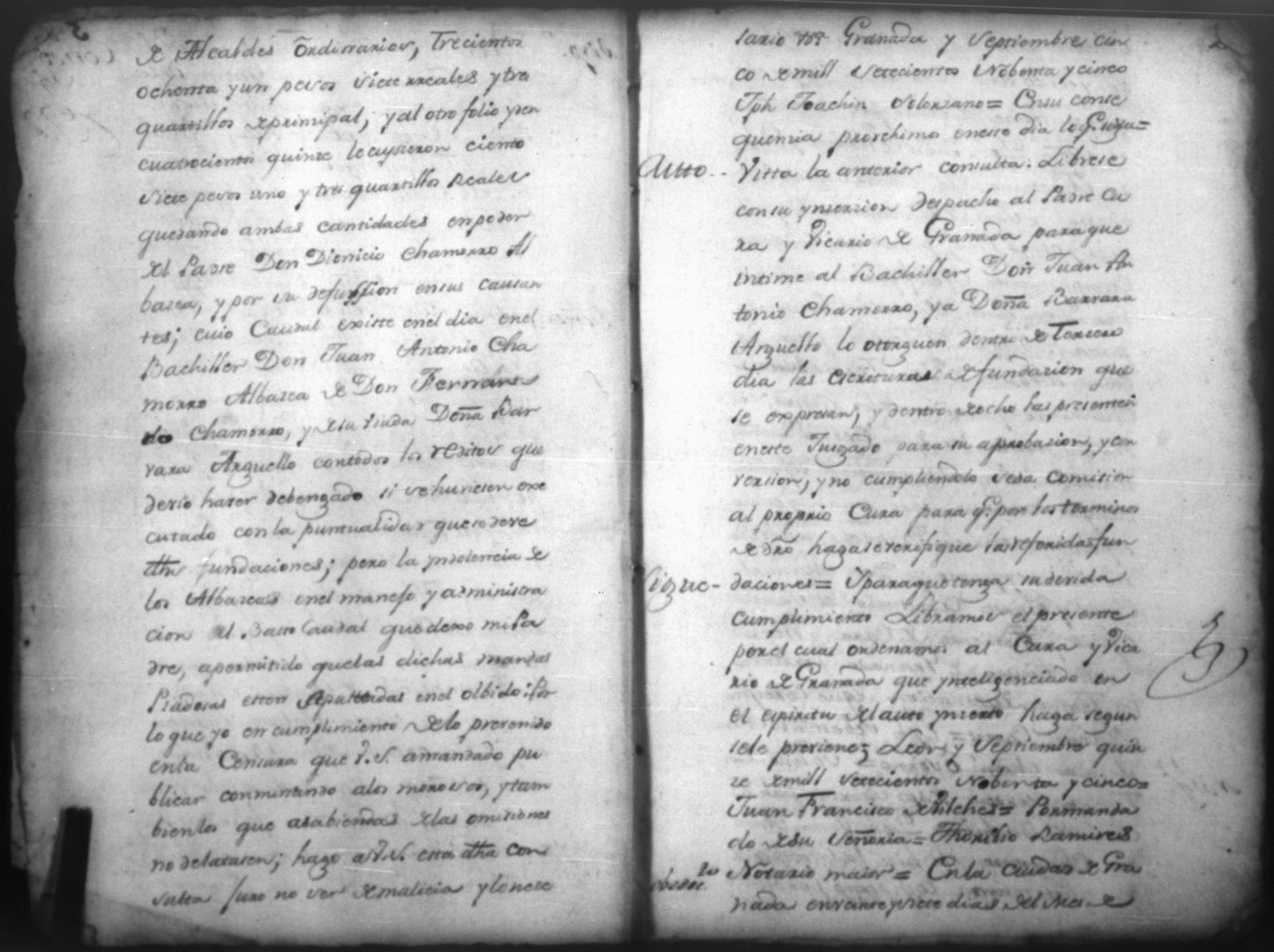 Temática: Audiencia, León 1803. El Presbítero Don Juan Antonio Chamorro, con Don Joaquin Solorzano, sobre fundación de dos ramos de capellanías. Relator Rodriguez
