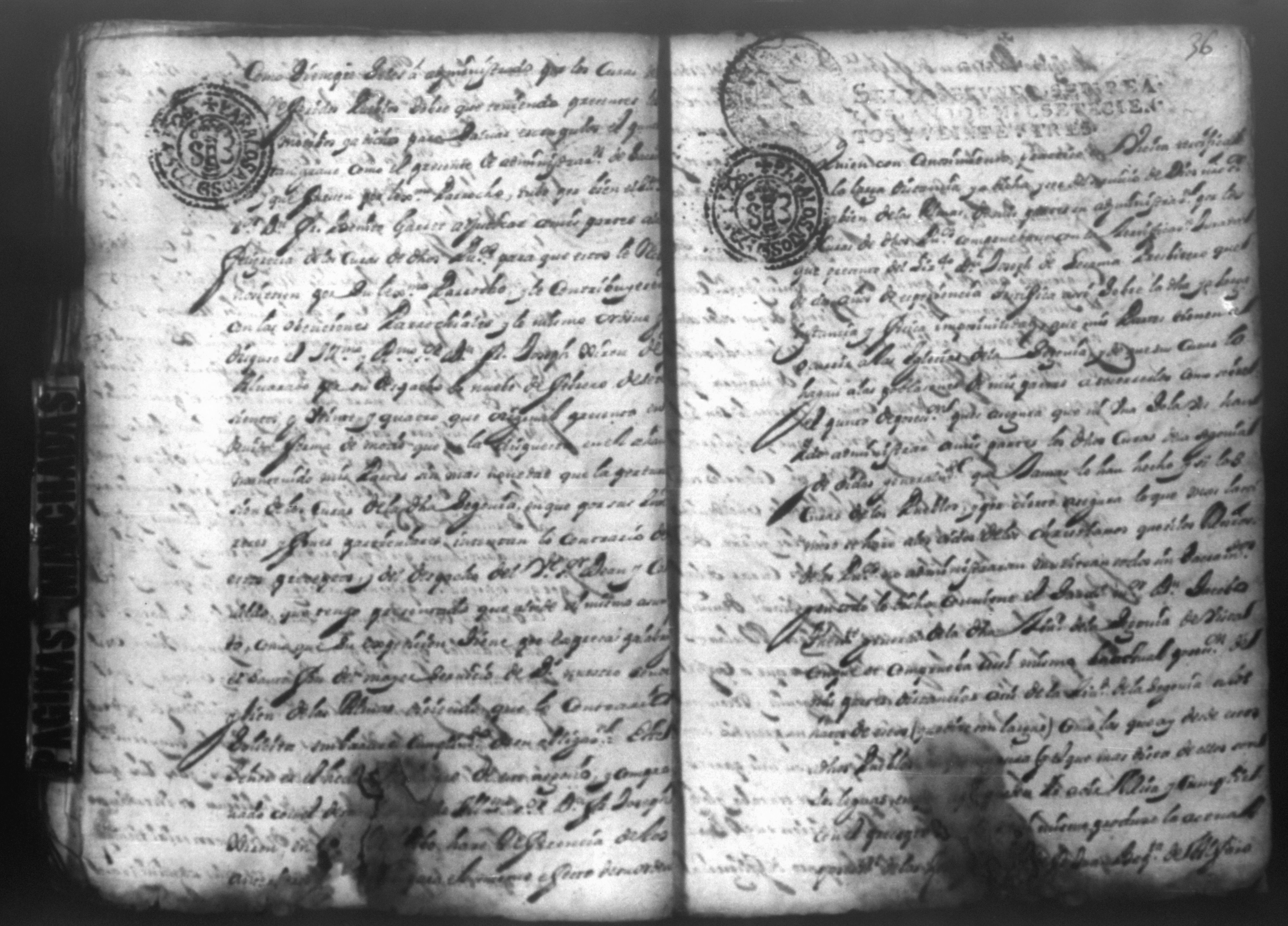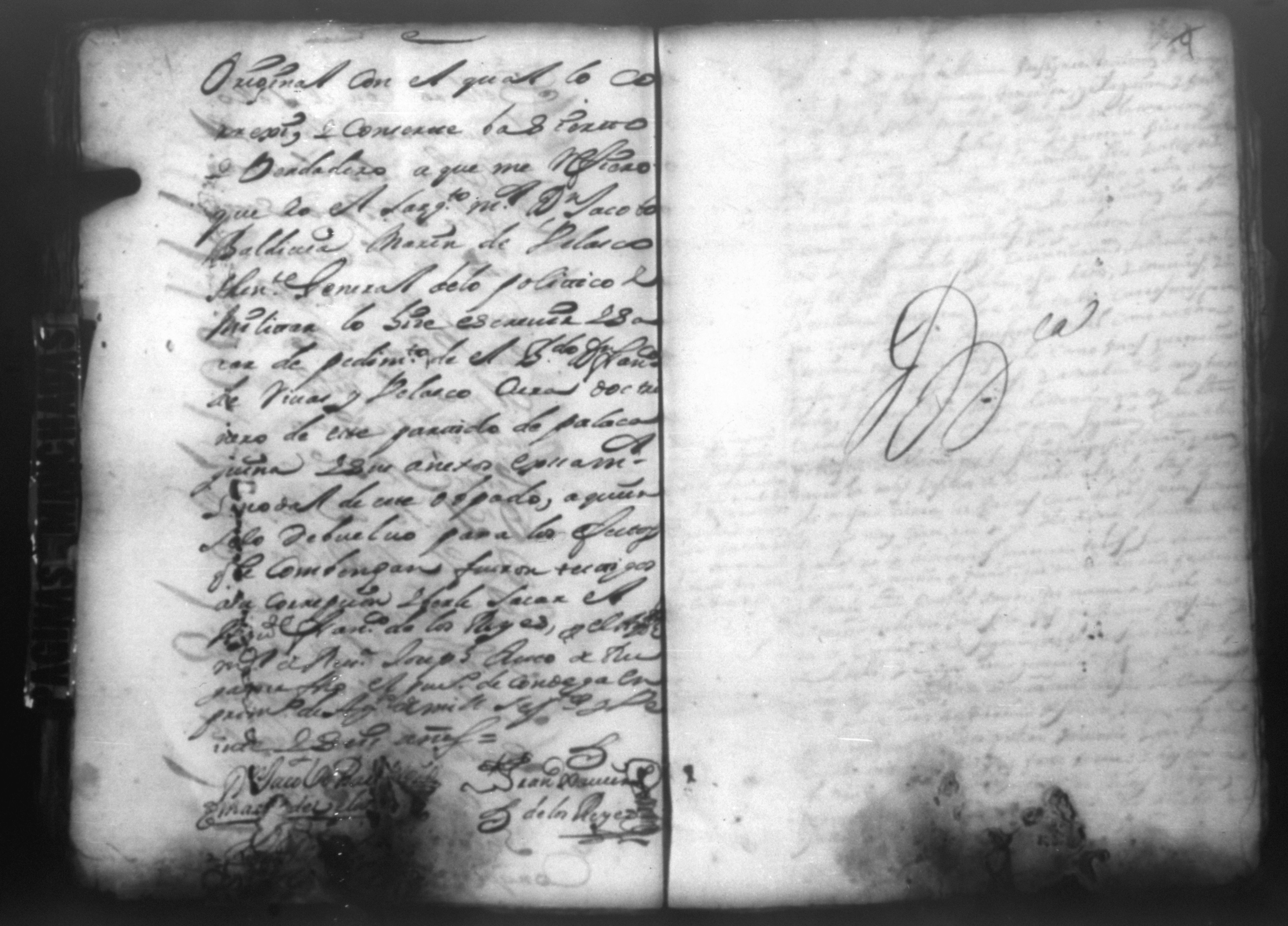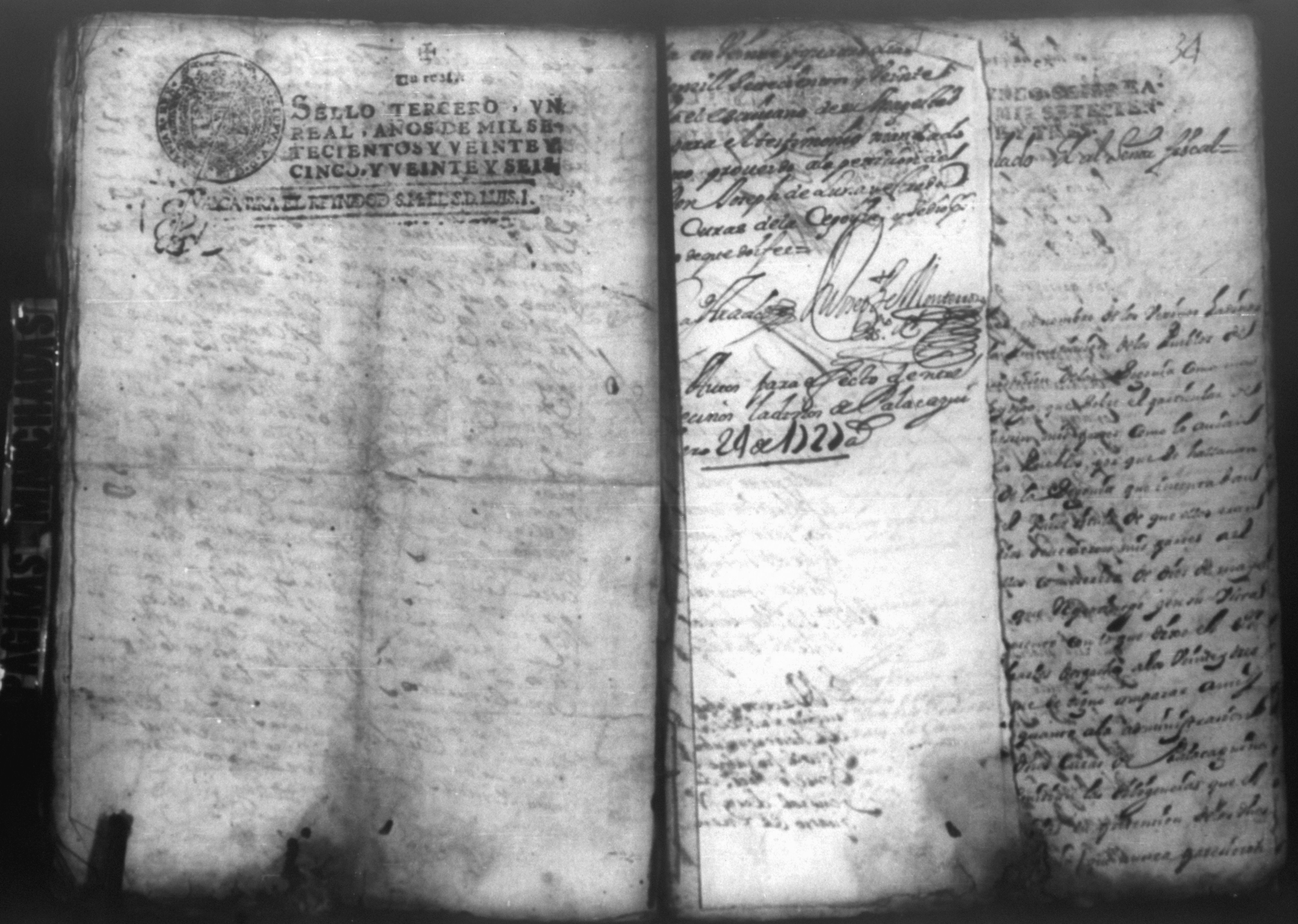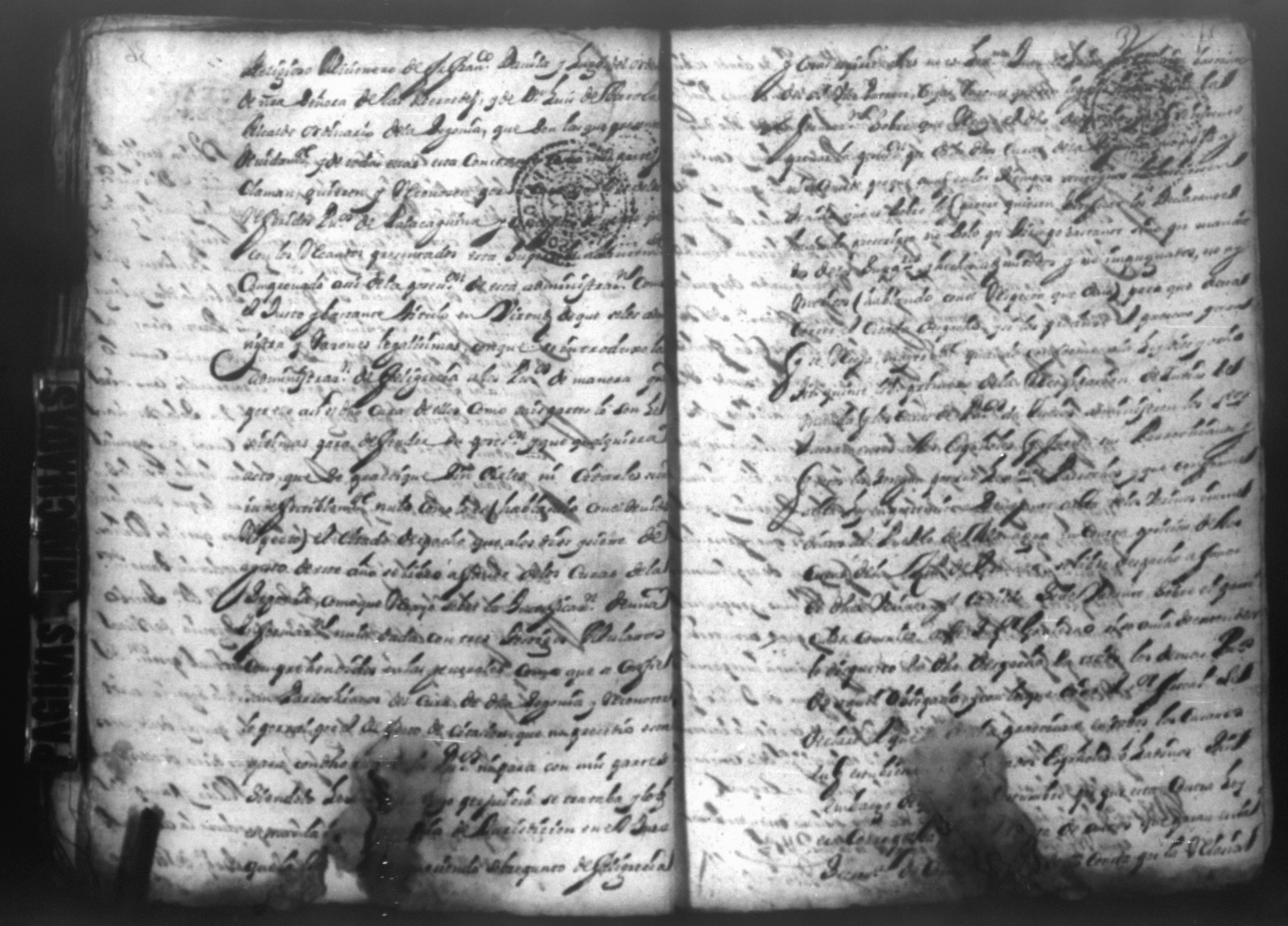 Temática: PÁGINAS MANCHADAS. Nueva Segovia Provincia de Nicaragua. Palacio y Abril 18 de 1725. Al Señor fiscal con los auttos […] El fiscal con vista de este ynforme y escrito presentado por los […] vesinos de la Ciudad de Segovia…