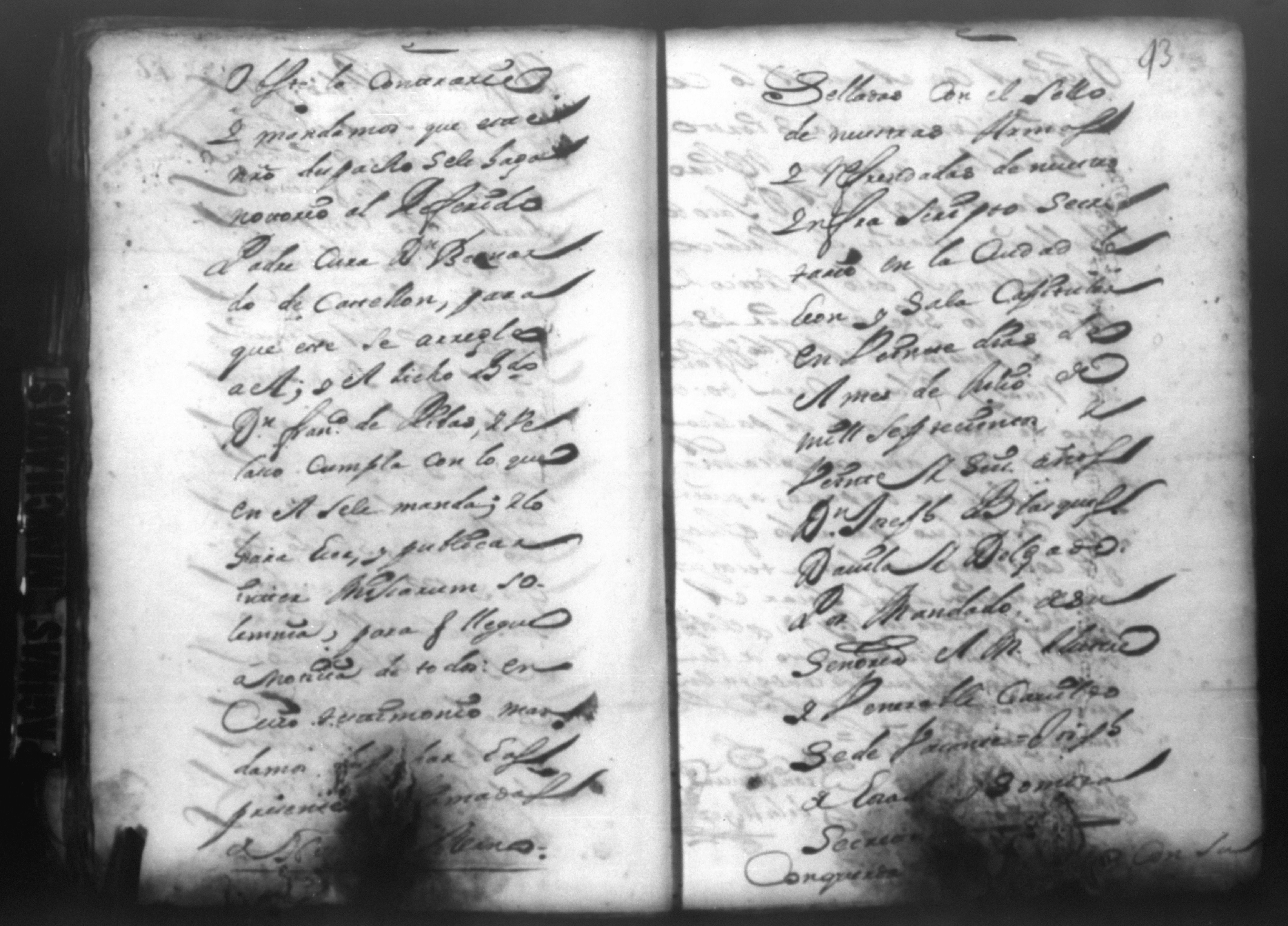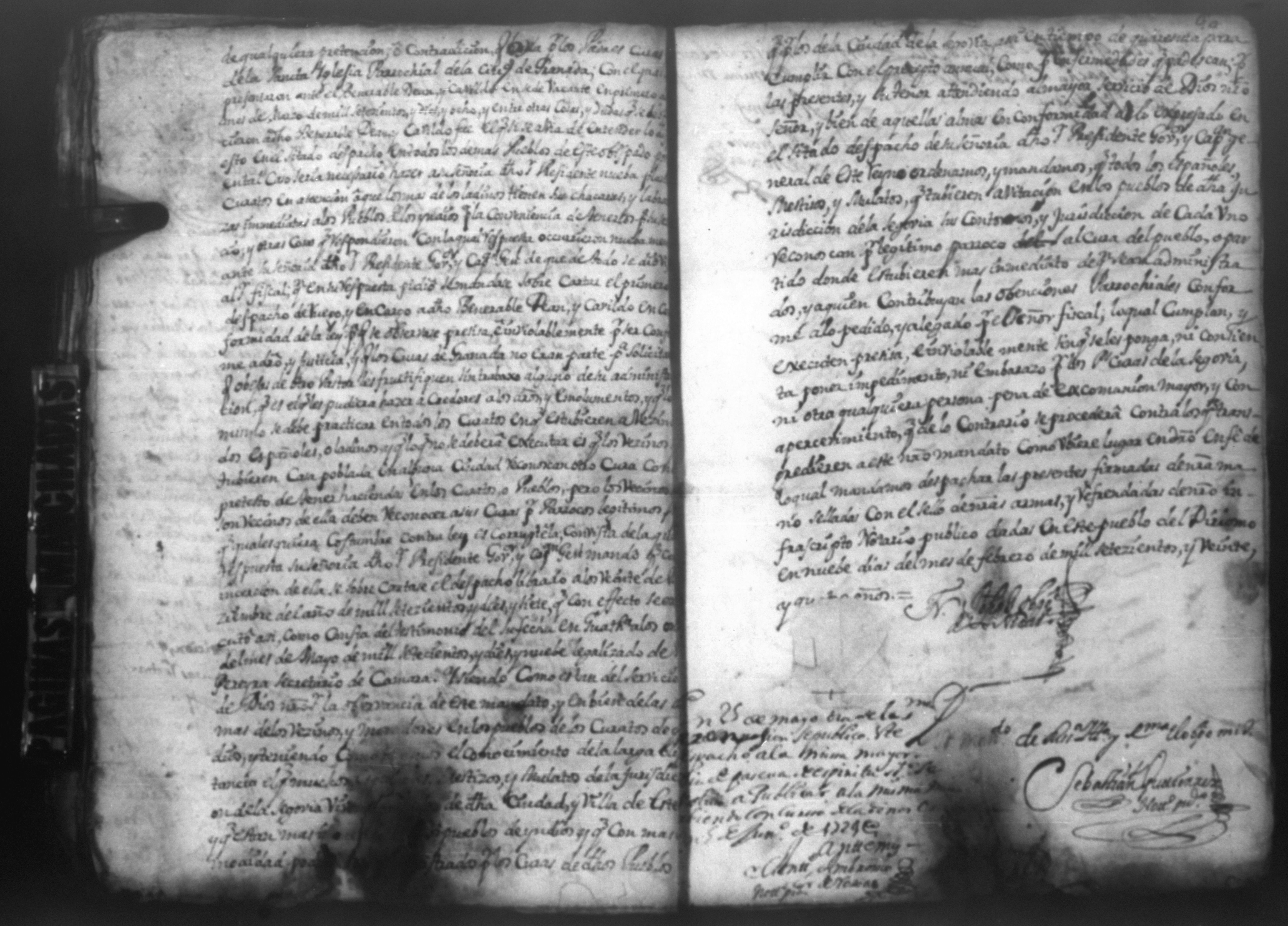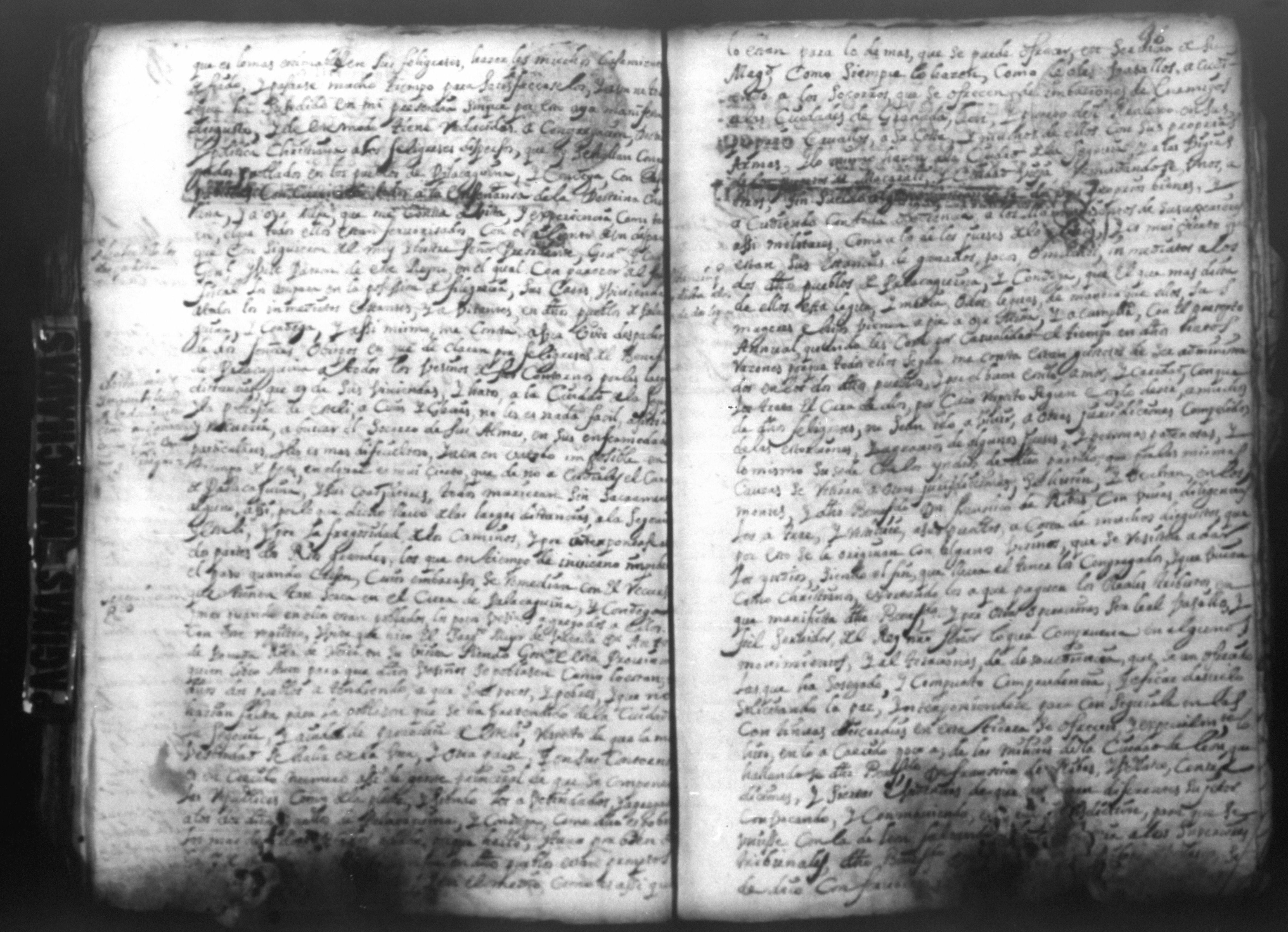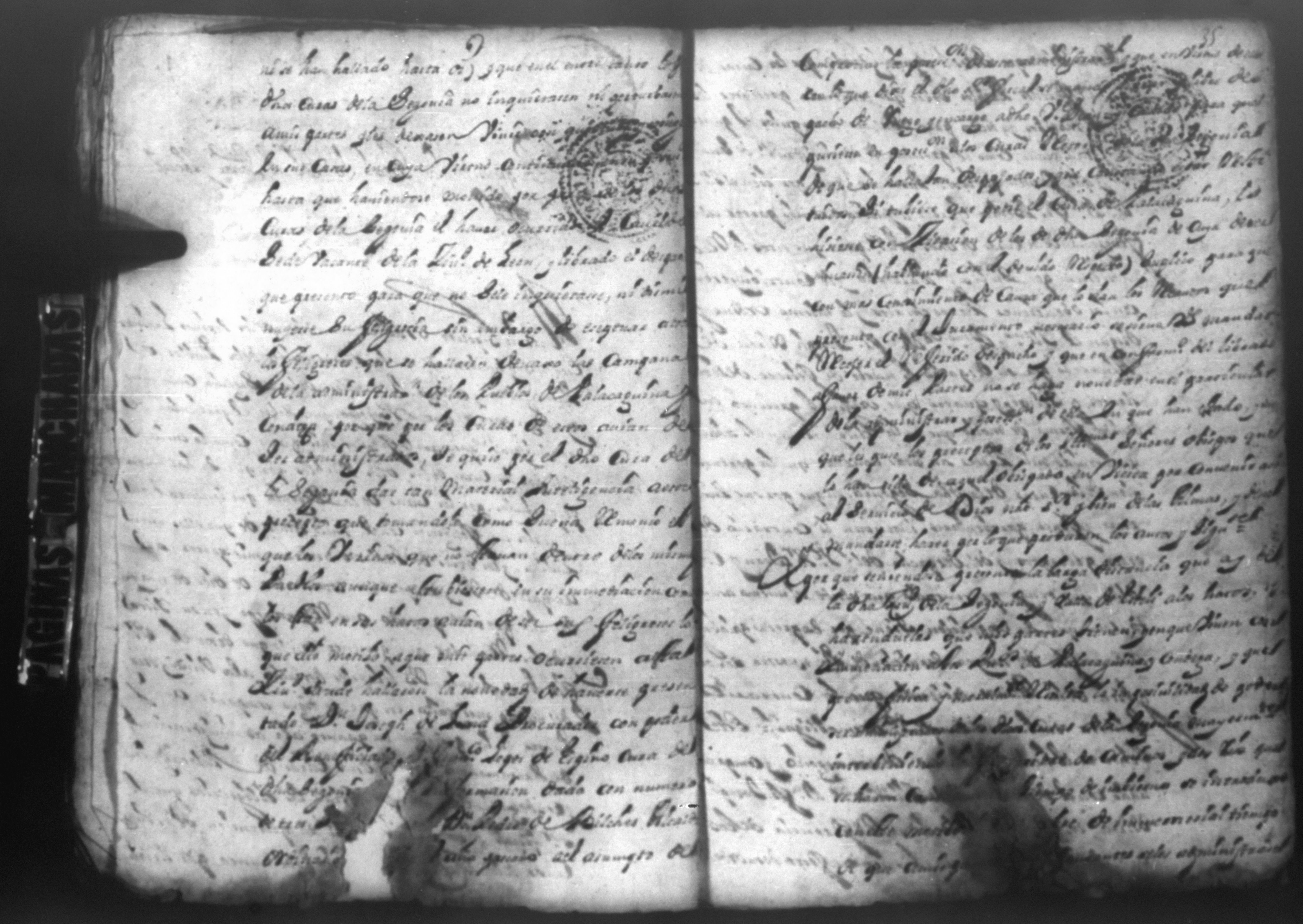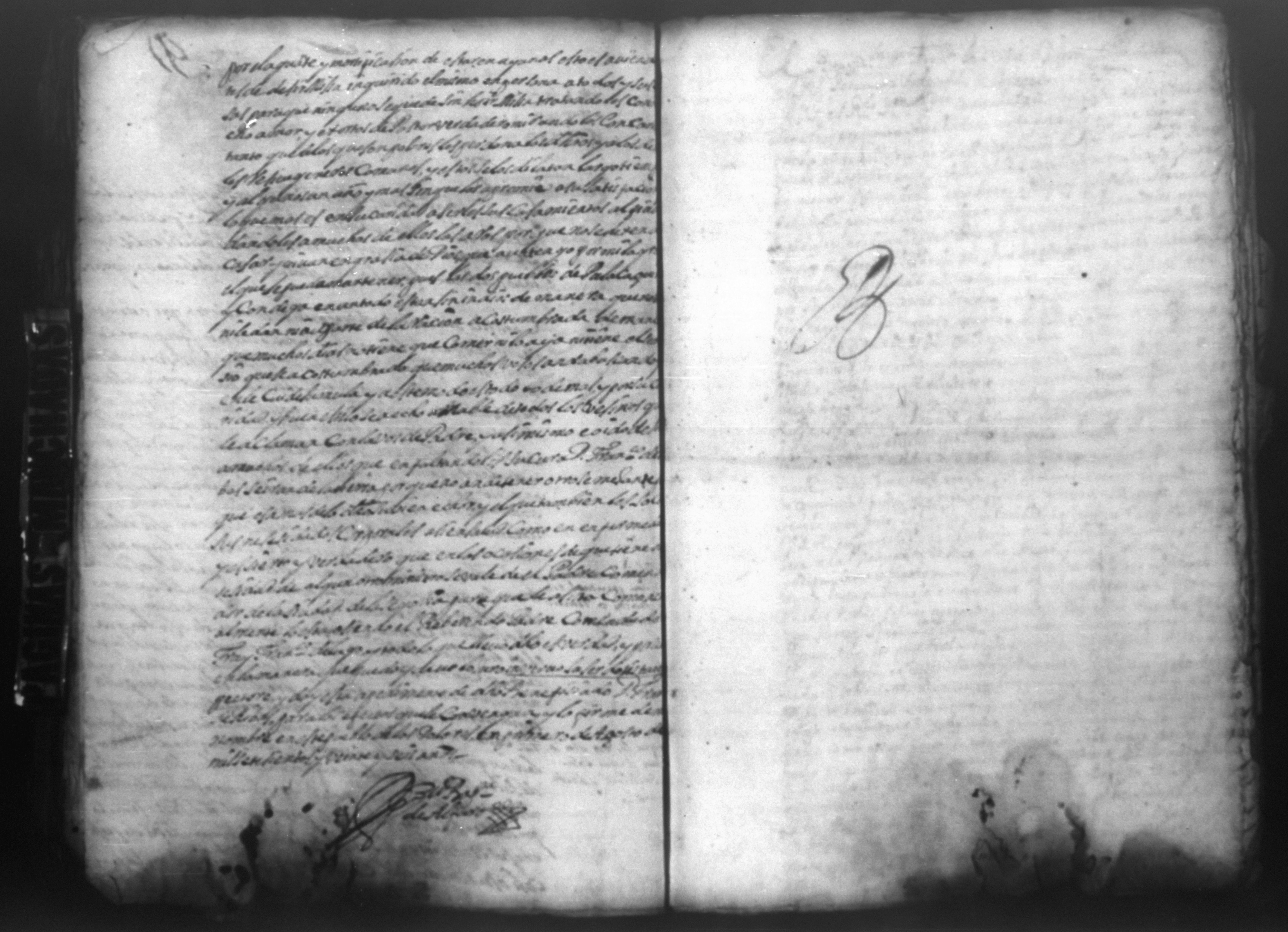 Temática: PÁGINAS MANCHADAS. Nueva Segovia Provincia de Nicaragua. Palacio y Abril 18 de 1725. Al Señor fiscal con los auttos […] El fiscal con vista de este ynforme y escrito presentado por los […] vesinos de la Ciudad de Segovia…