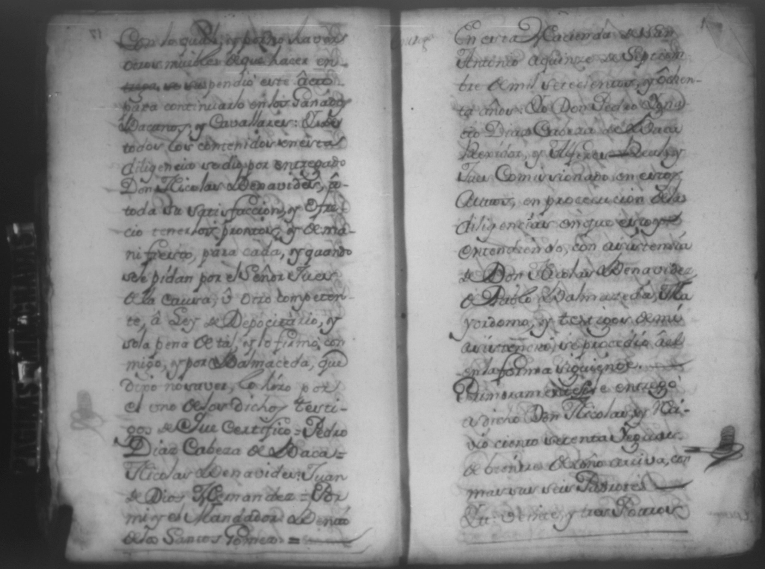 Temática: Año de 1780. Audiencia Leon. Testimonio de las diligencias practicadas a instancia de Don Nicolas de Venavides sobre que le entregasen en deposito las haciendas de San Francisco y San Antonio y las demas instruidas hasta su efectiva entrega.