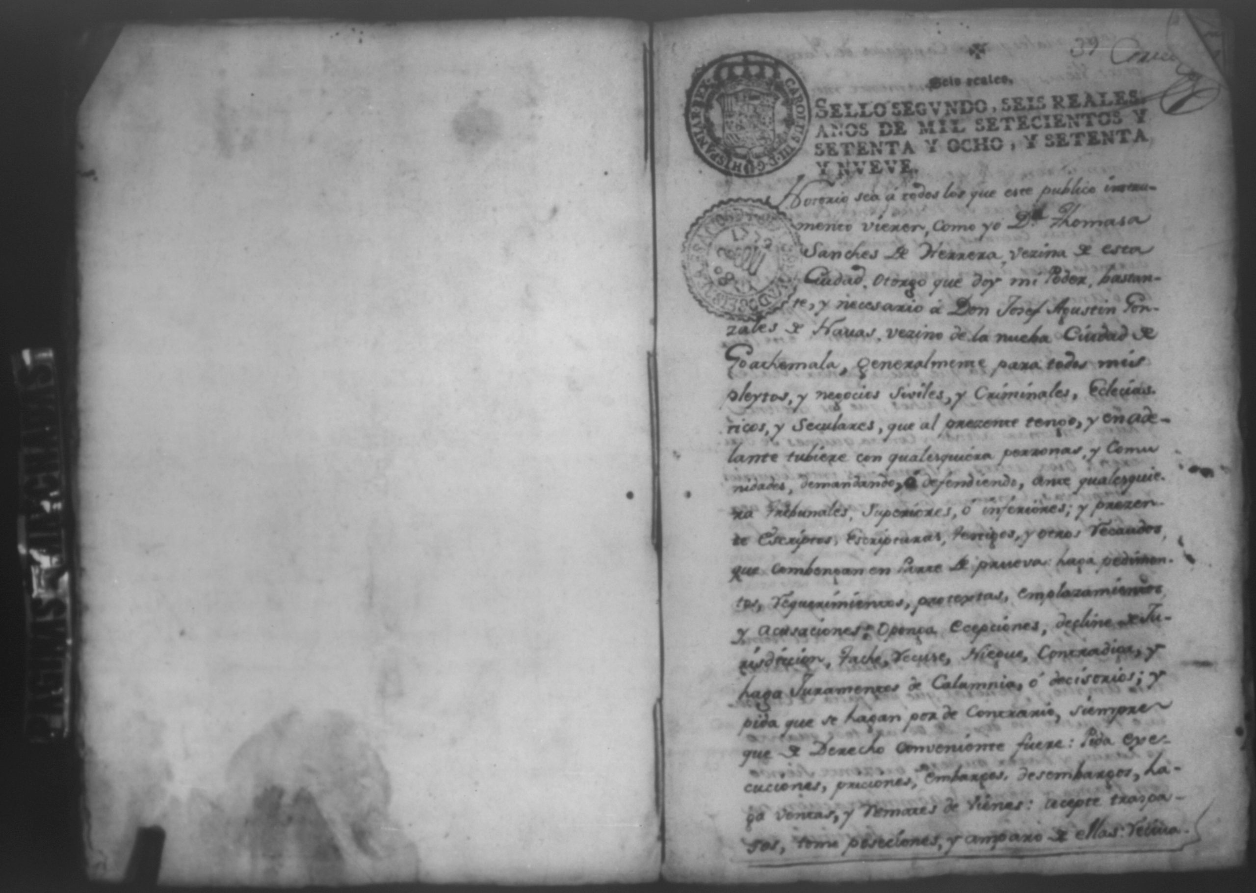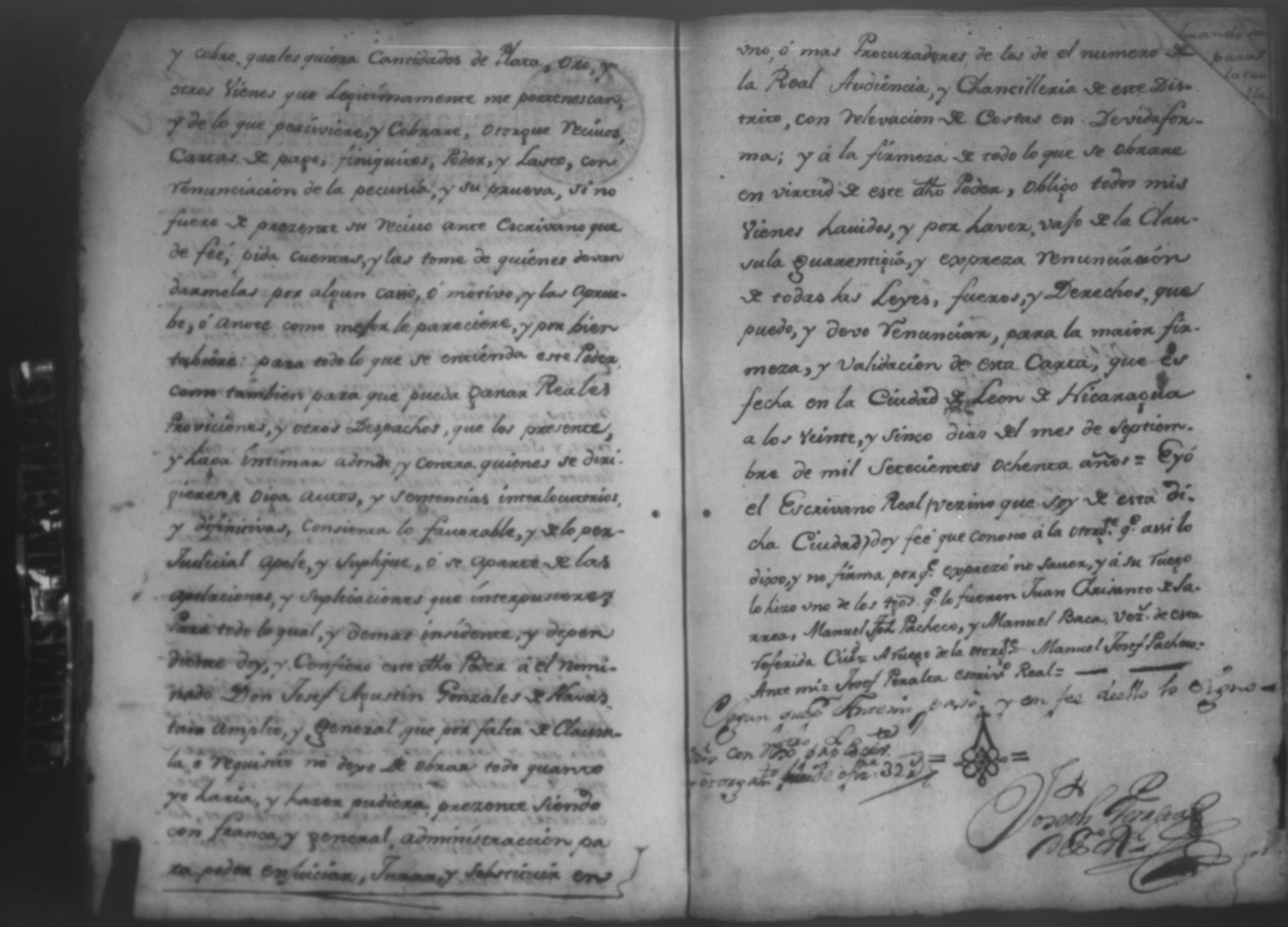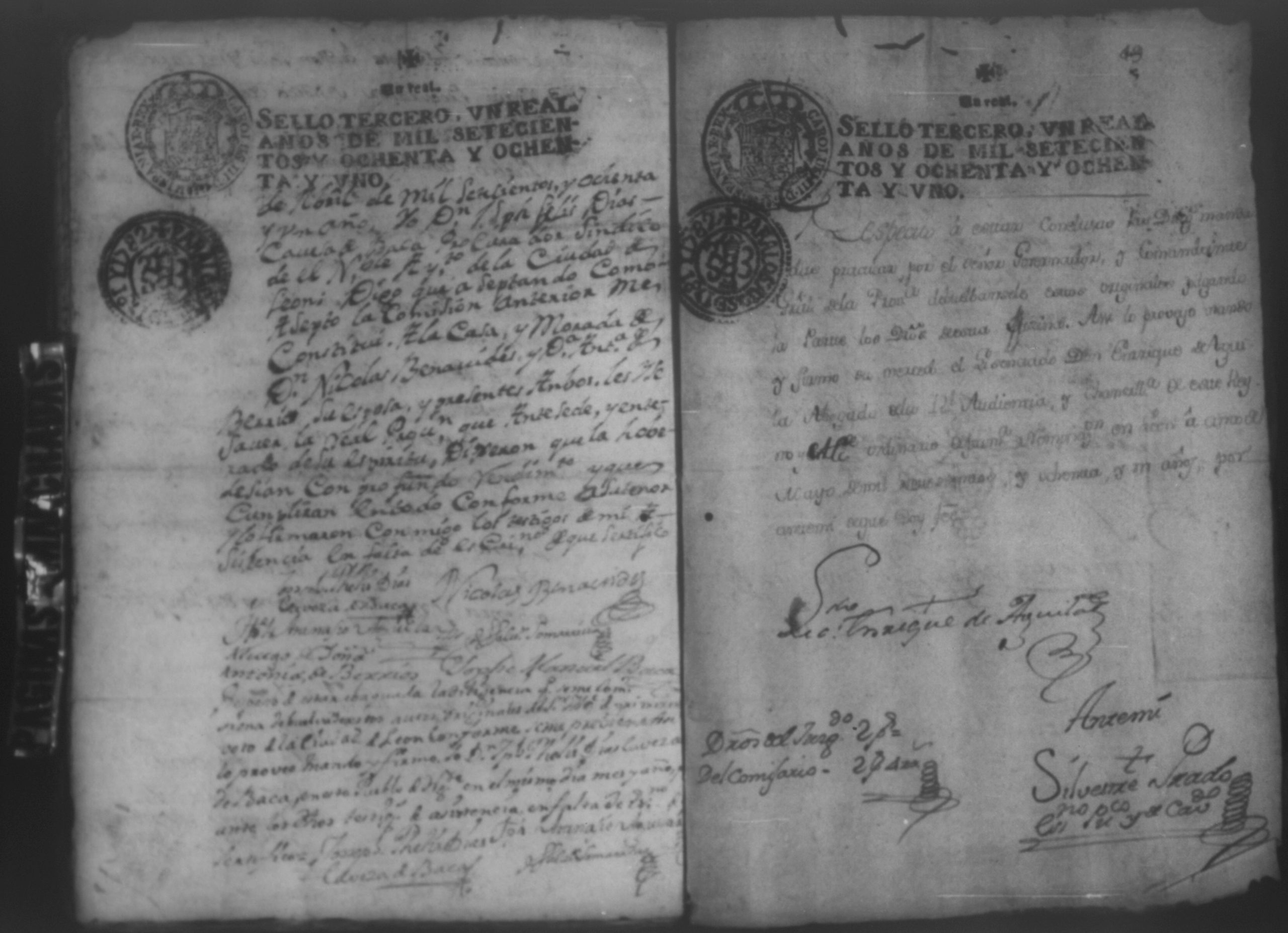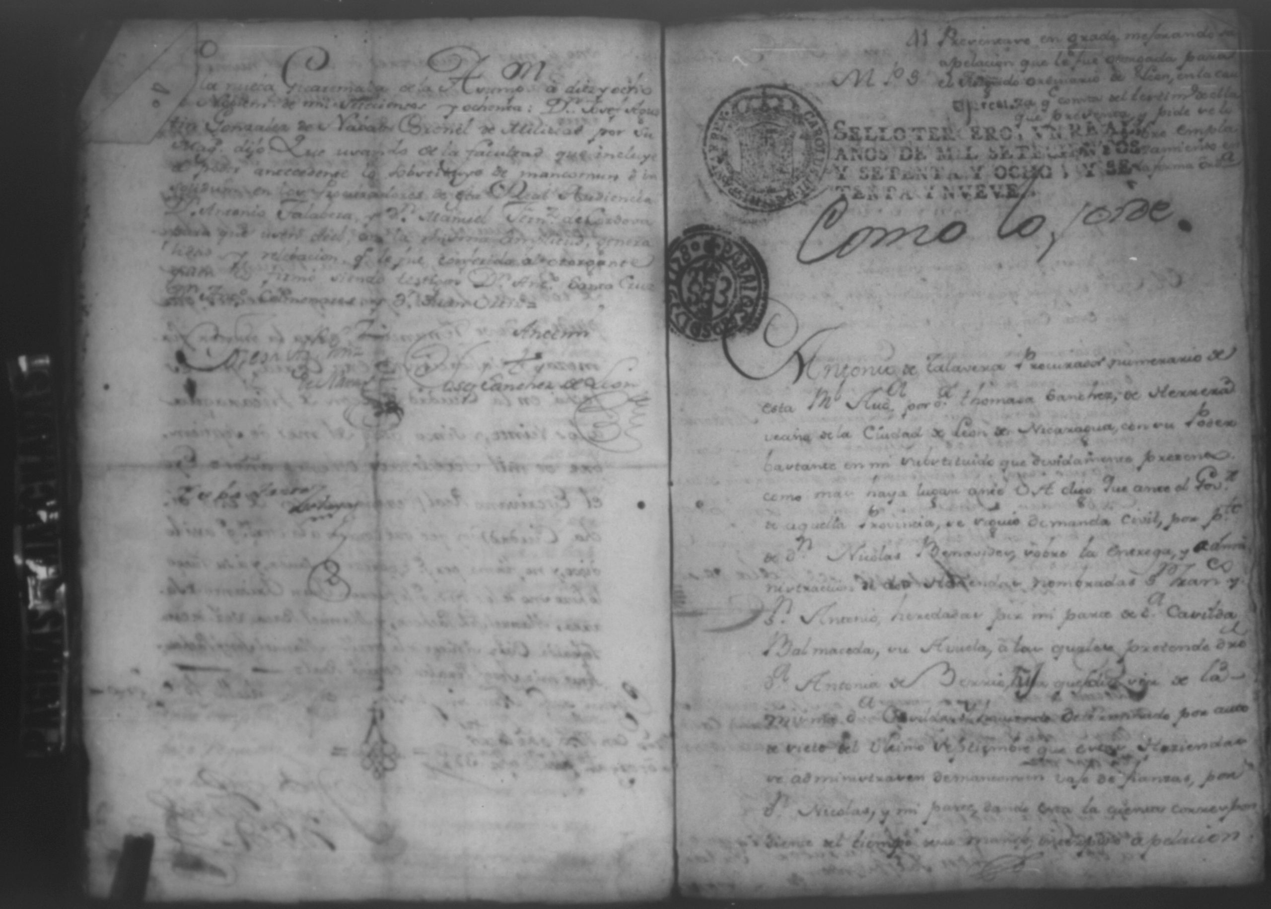 Temática: Año de 1780. Audiencia Leon. Testimonio de las diligencias practicadas a instancia de Don Nicolas de Venavides sobre que le entregasen en deposito las haciendas de San Francisco y San Antonio y las demas instruidas hasta su efectiva entrega.