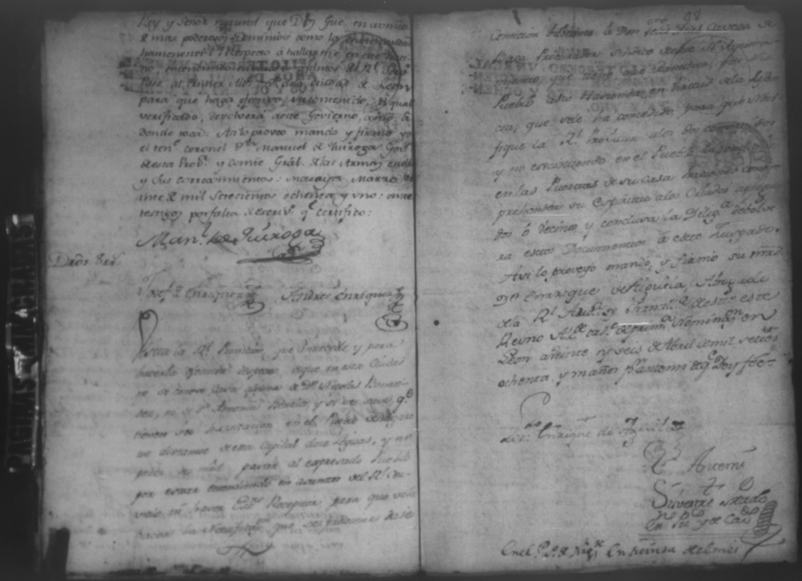 Instancia de Don Nicolas de Venavides sobre que le entreguen en deposito las haciendas, Leon 1780
