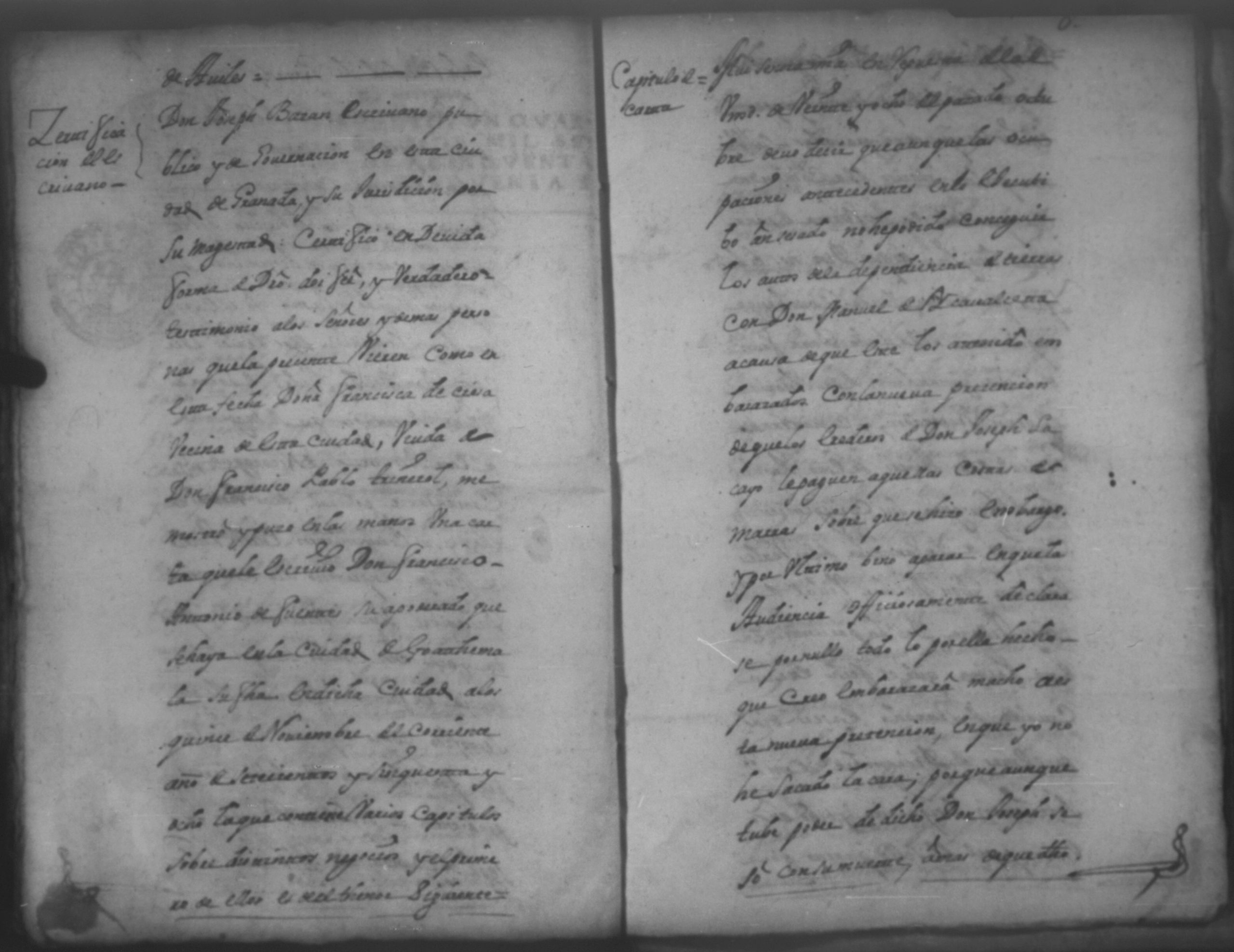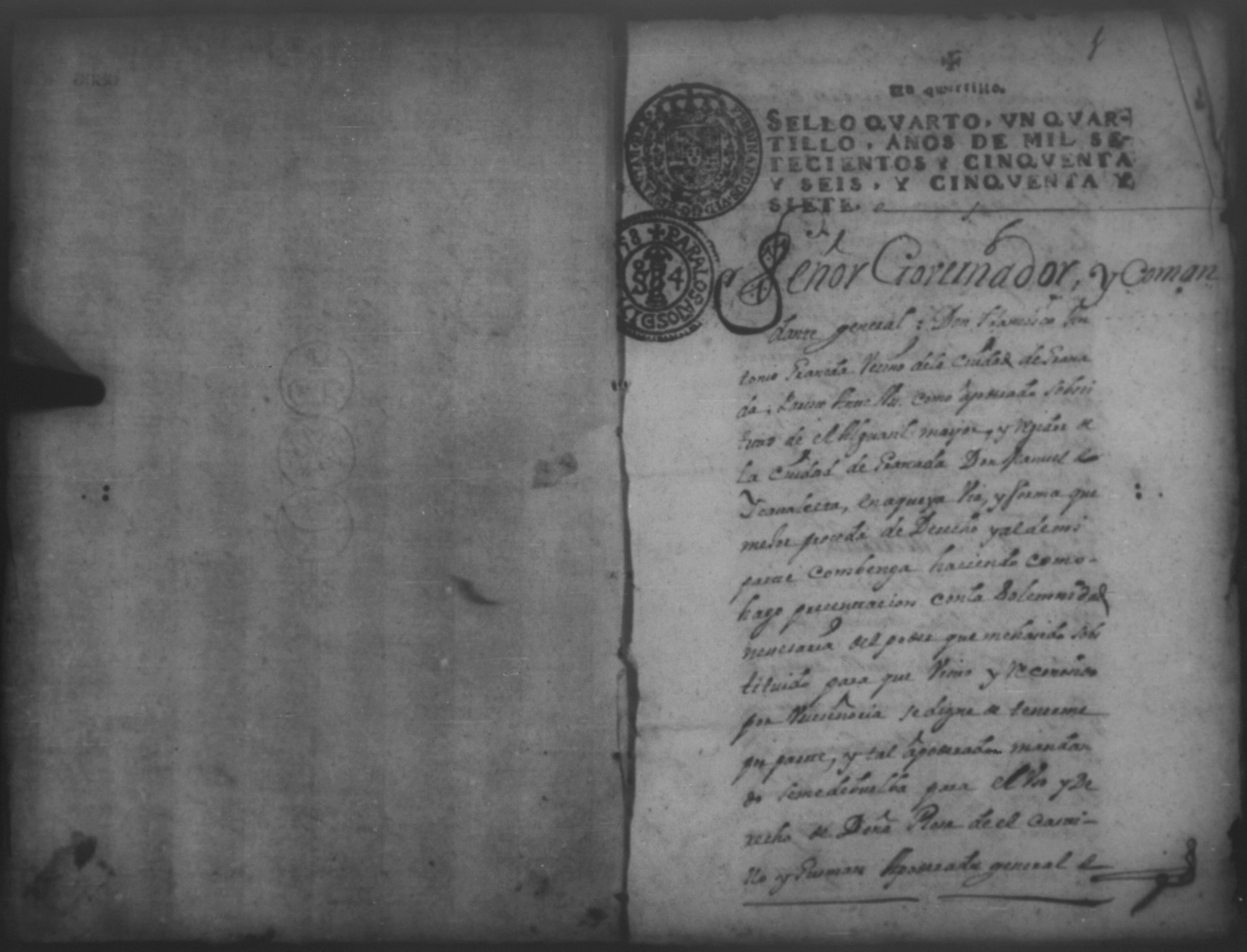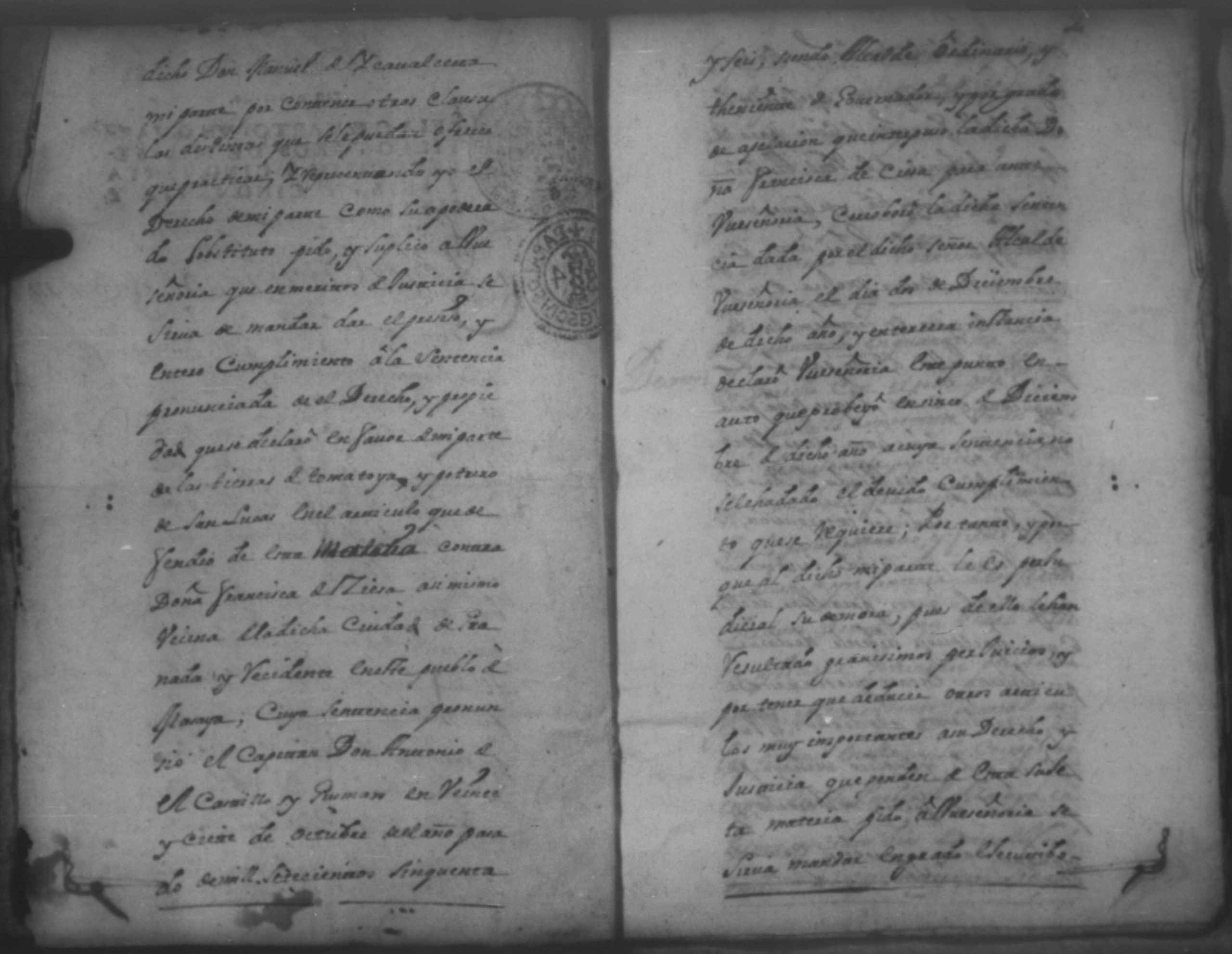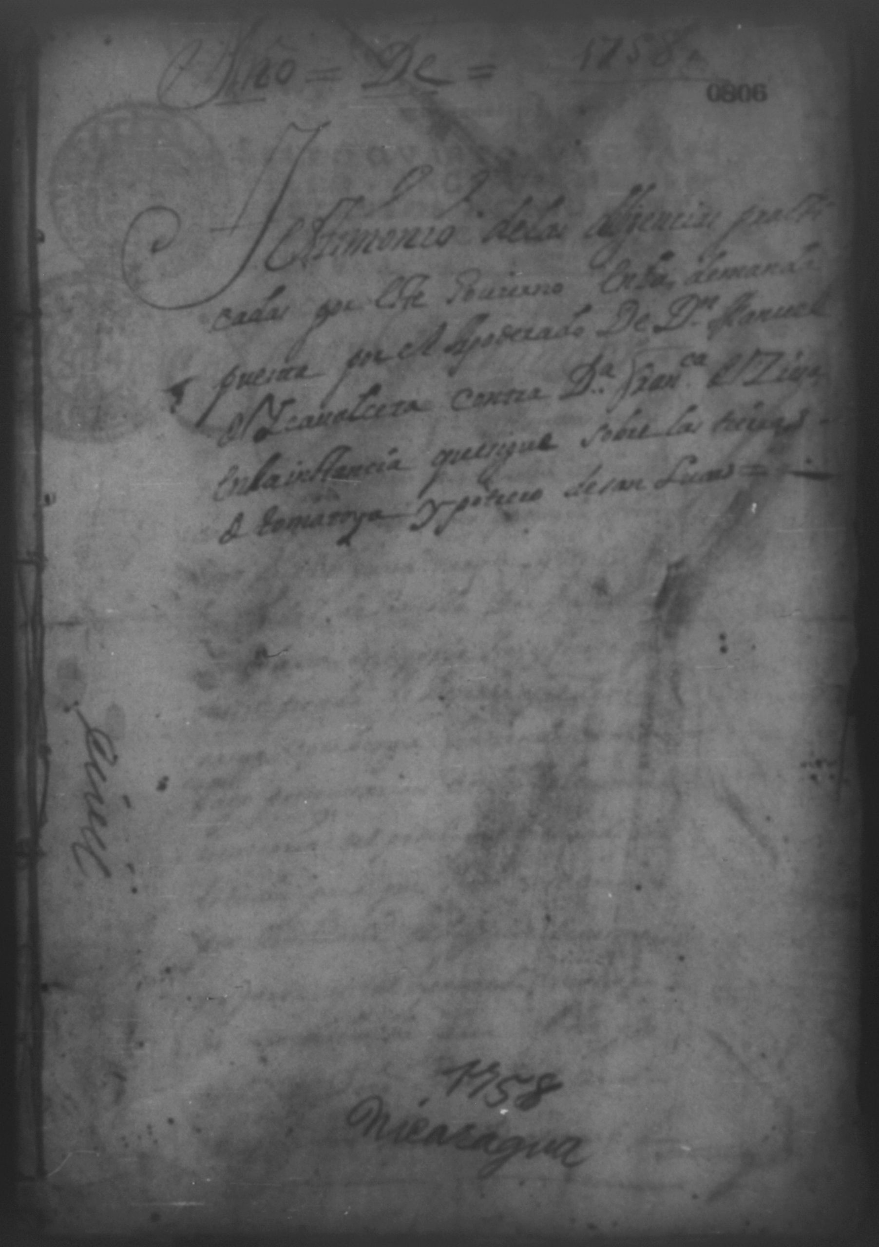 Temática: Año de 1758. Testimonio de las diligencias practicada por este gobierno en la demanda puesta por el apoderado de Don Manuel de Ycabalzeta contra Doña Francisca [Ziesa] en la instancia que sigue sobre las tierras de [Tomatoya] y potrero de San Lucas