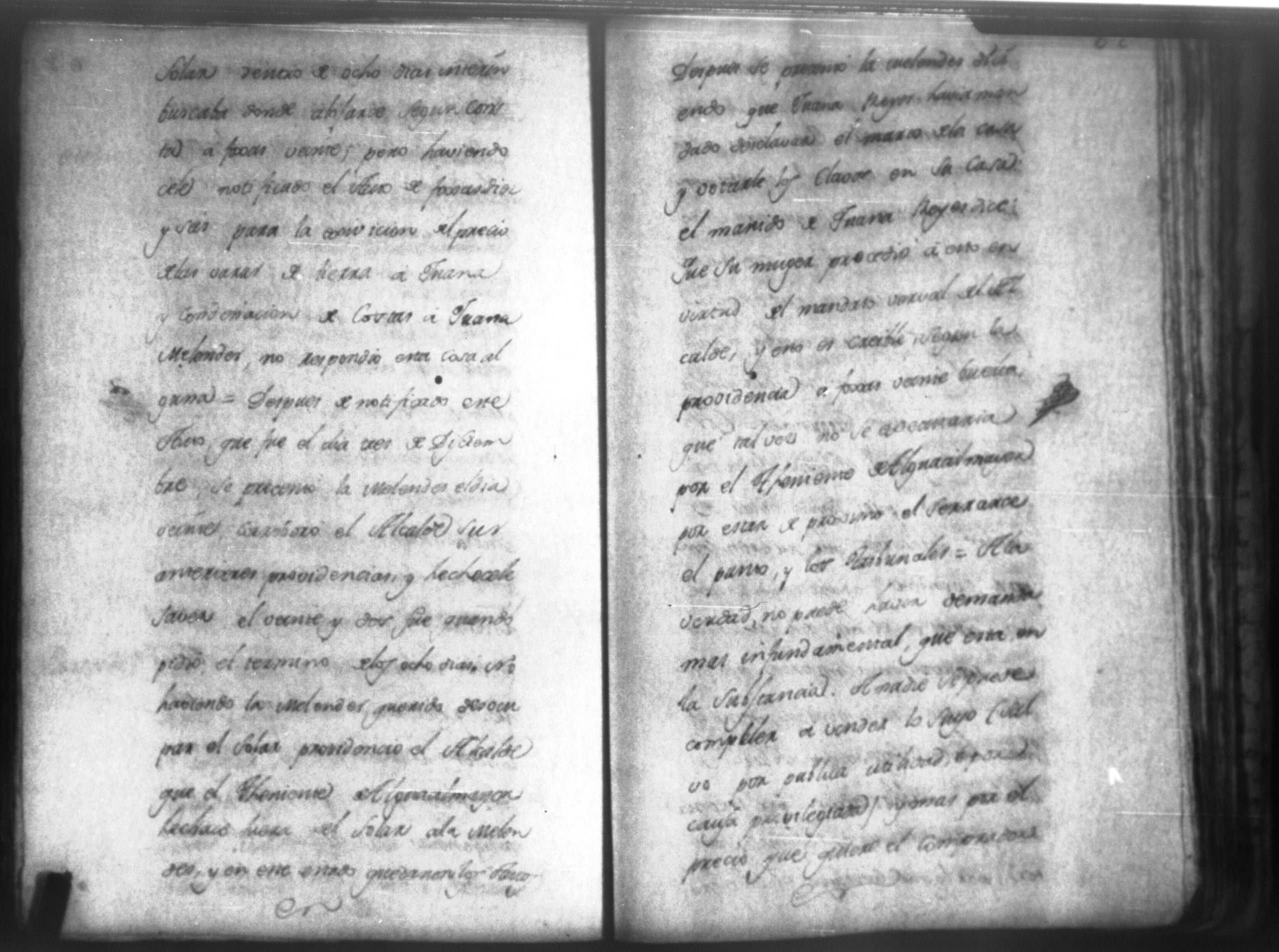 Temática: Audiencia León, 1794. Testimonio de Juana María Melendes por el litigio de un solar contra Juana de los Reyes. "Autos y vistos, y en Locucion a lo respondido por estas partes, llevece a puro, y devido efecto el Auto de fecha de dos del que corre, y en su conseguencia hagacele saver a Juana de los Reyes ... en este Juzgado los (diez) y siete pesos seis rreales que importan las ocho onzas siete octavos de Solar que le pertenece a Juana Melendez y cumplido que sea se le otorgará la escriptura de venta correspondiente que satisfará la consavida Reyes [...]" (Extracto de los folios 19v. y 20, imagen 35)