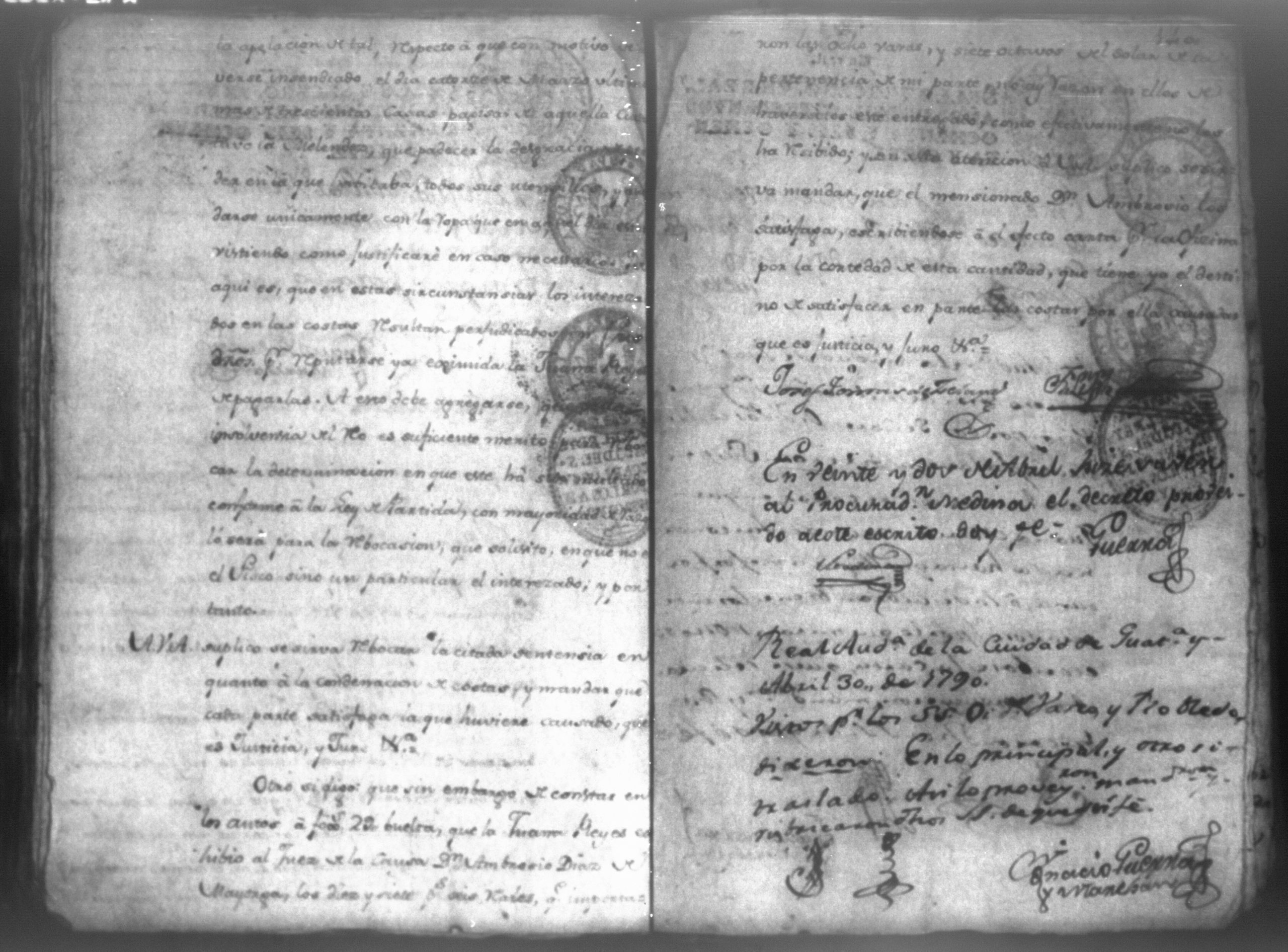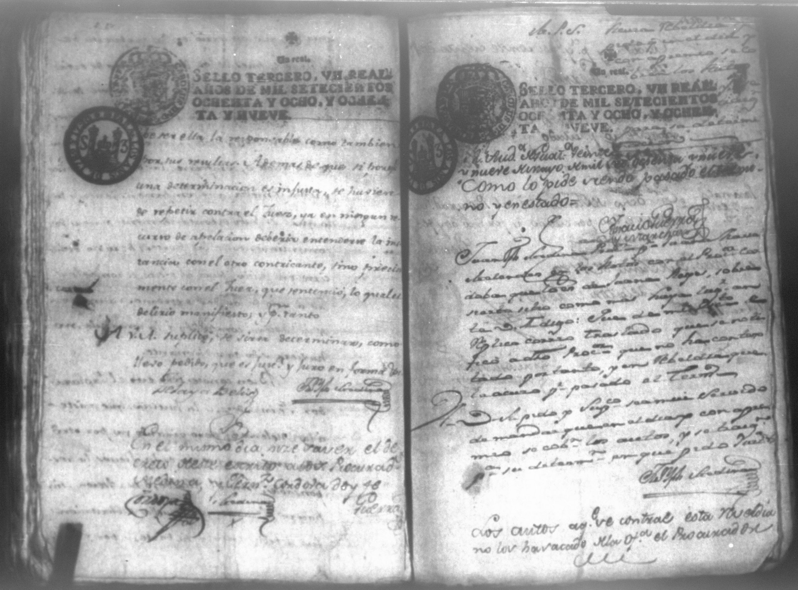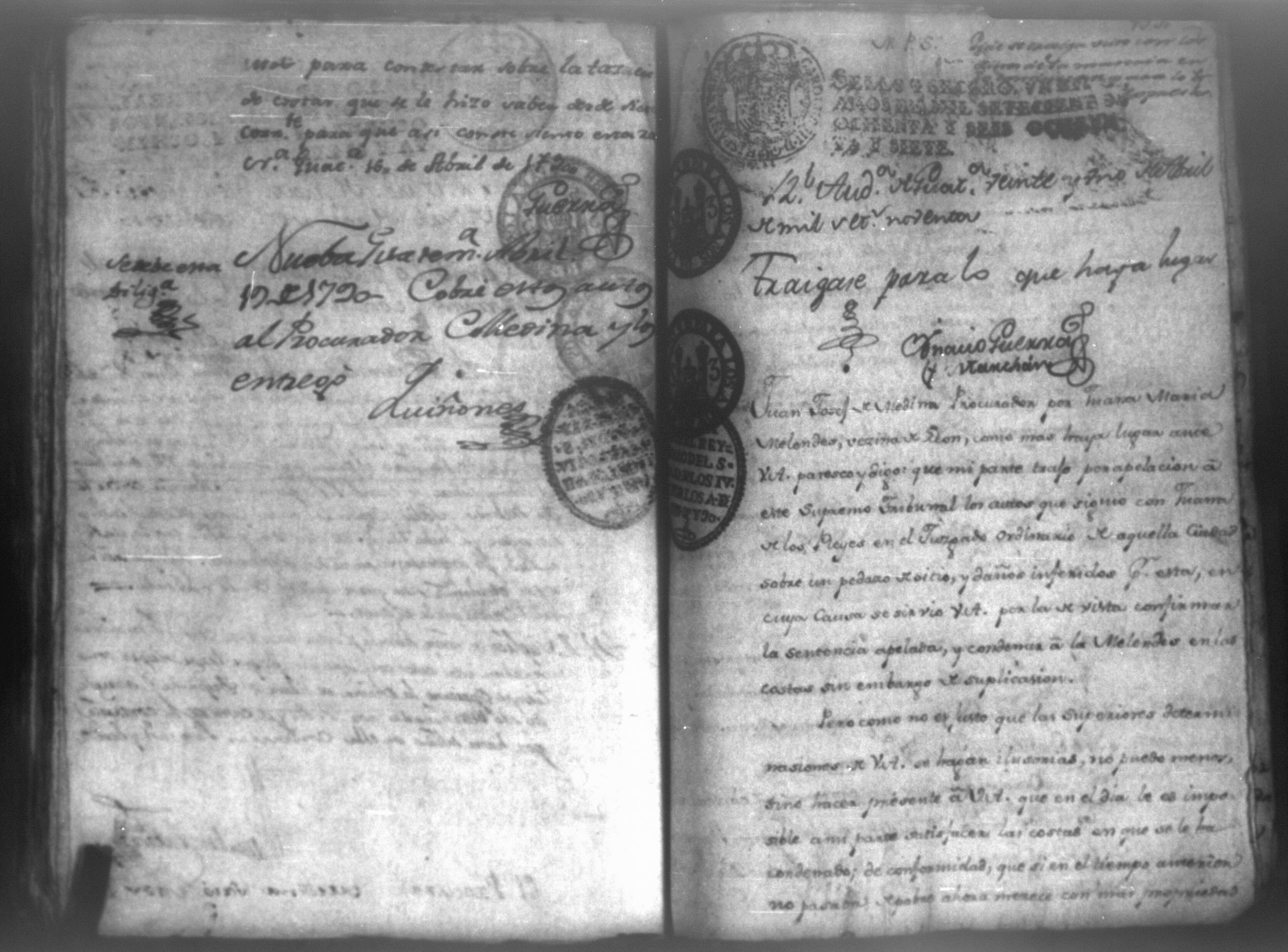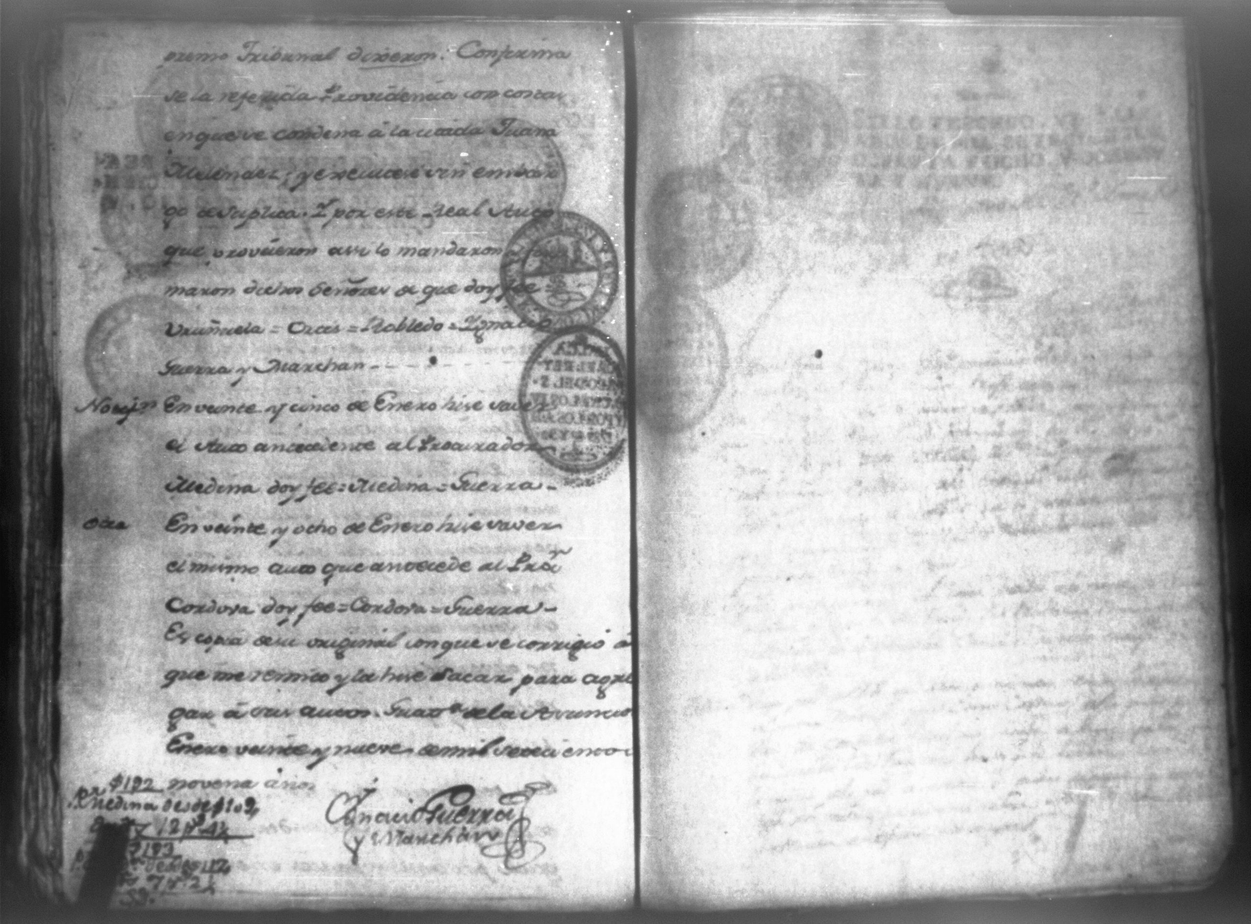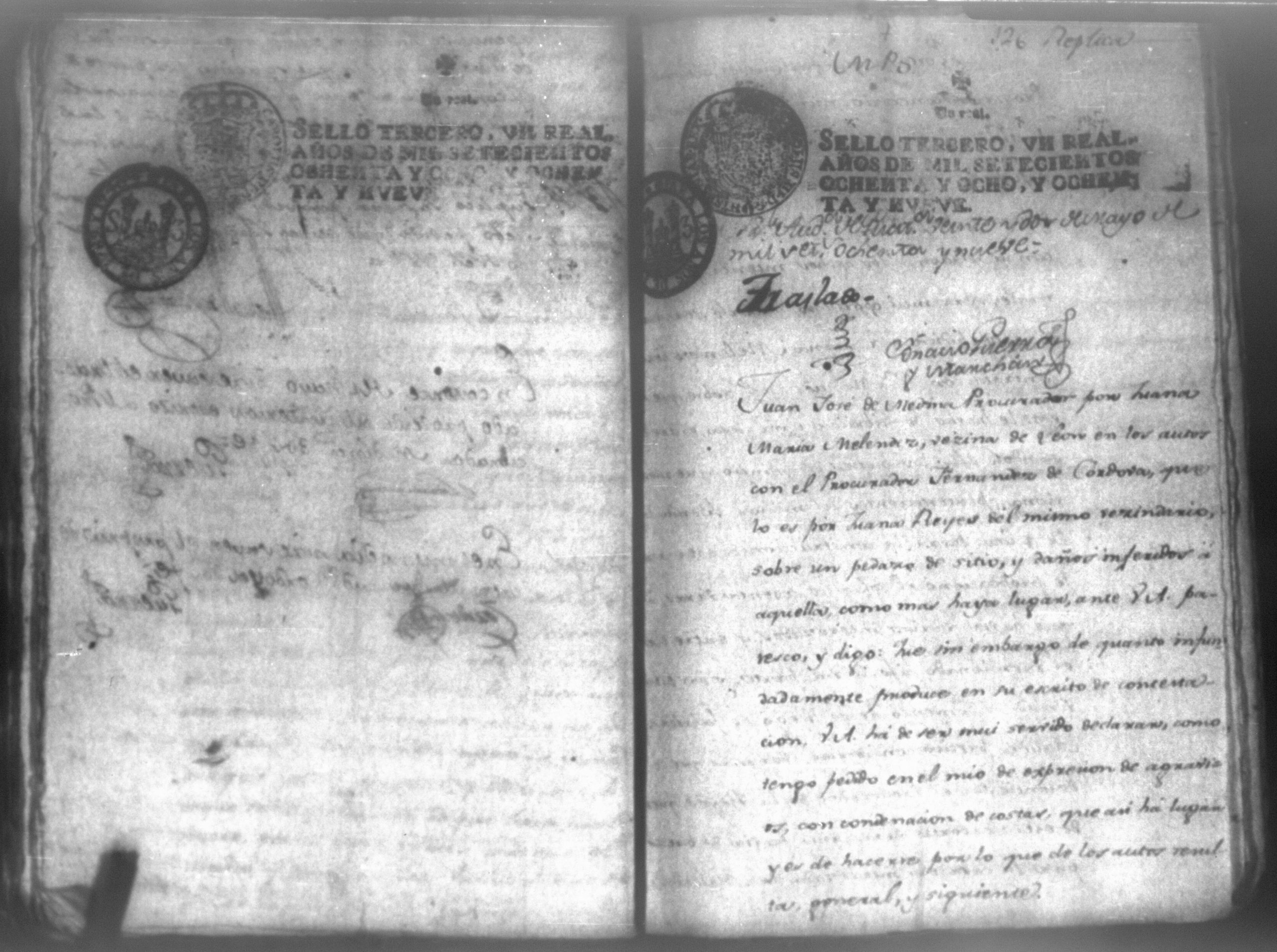 Temática: Audiencia León, 1794. Testimonio de Juana María Melendes por el litigio de un solar contra Juana de los Reyes. "Autos y vistos, y en Locucion a lo respondido por estas partes, llevece a puro, y devido efecto el Auto de fecha de dos del que corre, y en su conseguencia hagacele saver a Juana de los Reyes ... en este Juzgado los (diez) y siete pesos seis rreales que importan las ocho onzas siete octavos de Solar que le pertenece a Juana Melendez y cumplido que sea se le otorgará la escriptura de venta correspondiente que satisfará la consavida Reyes [...]" (Extracto de los folios 19v. y 20, imagen 35)
