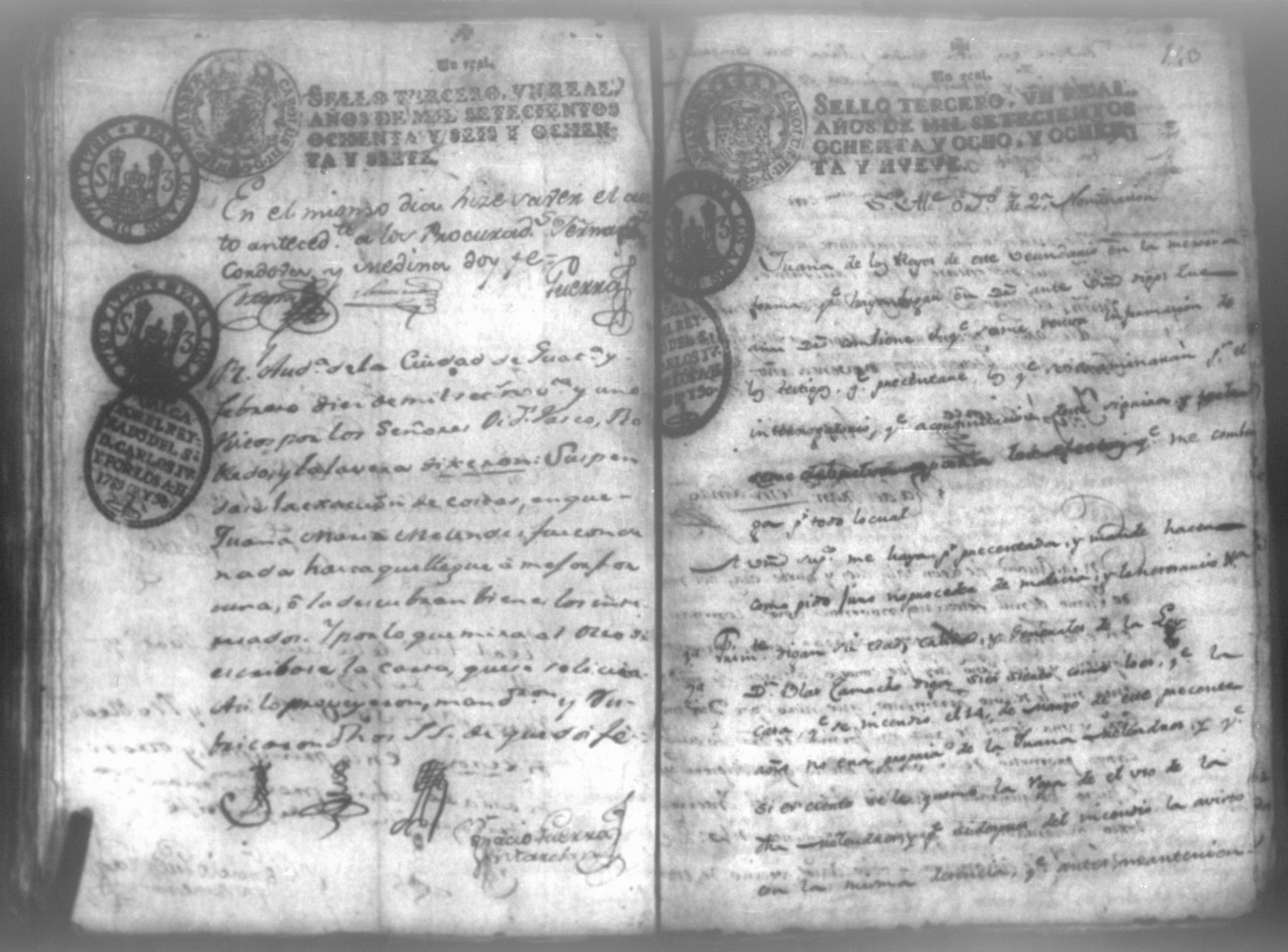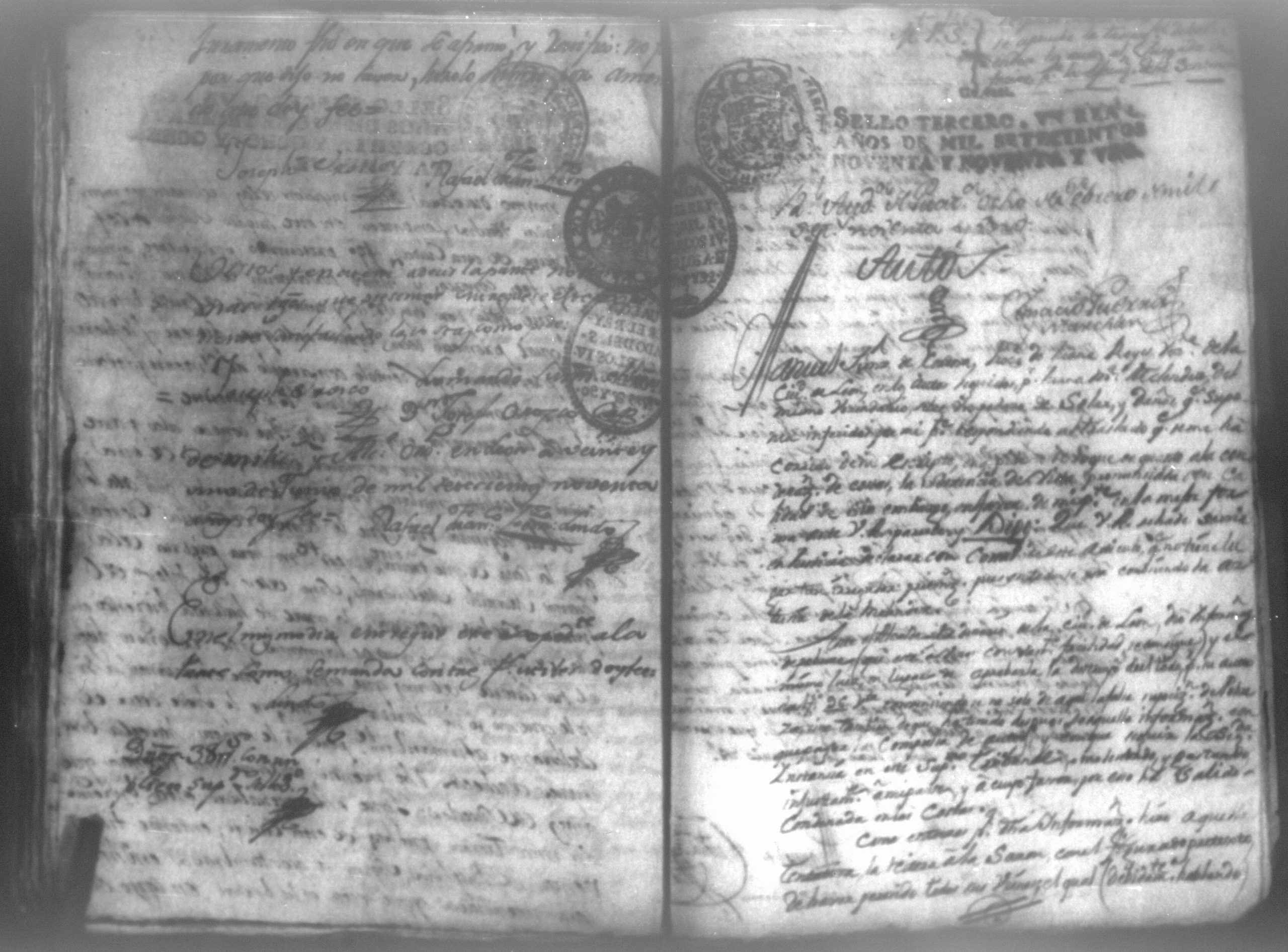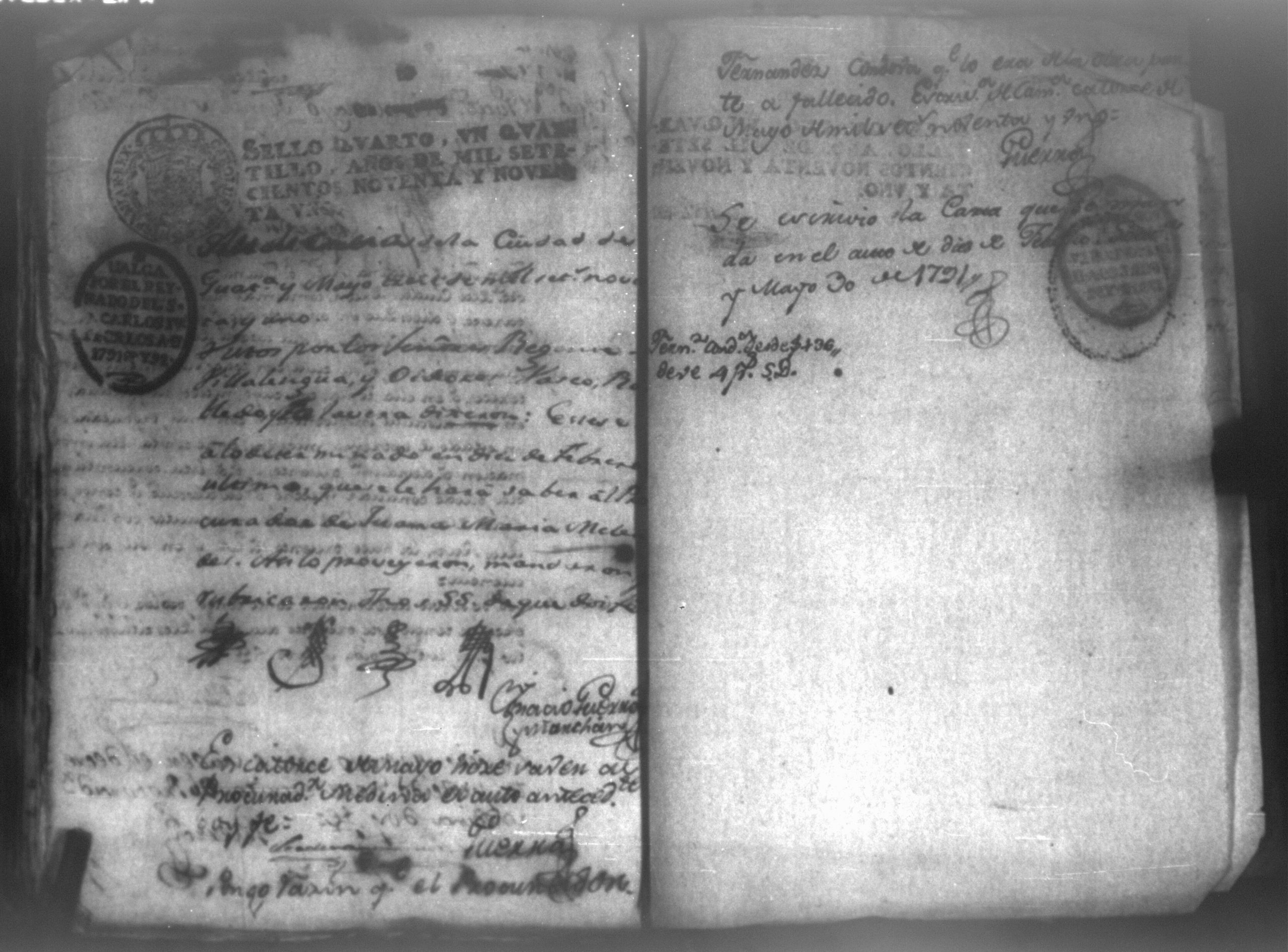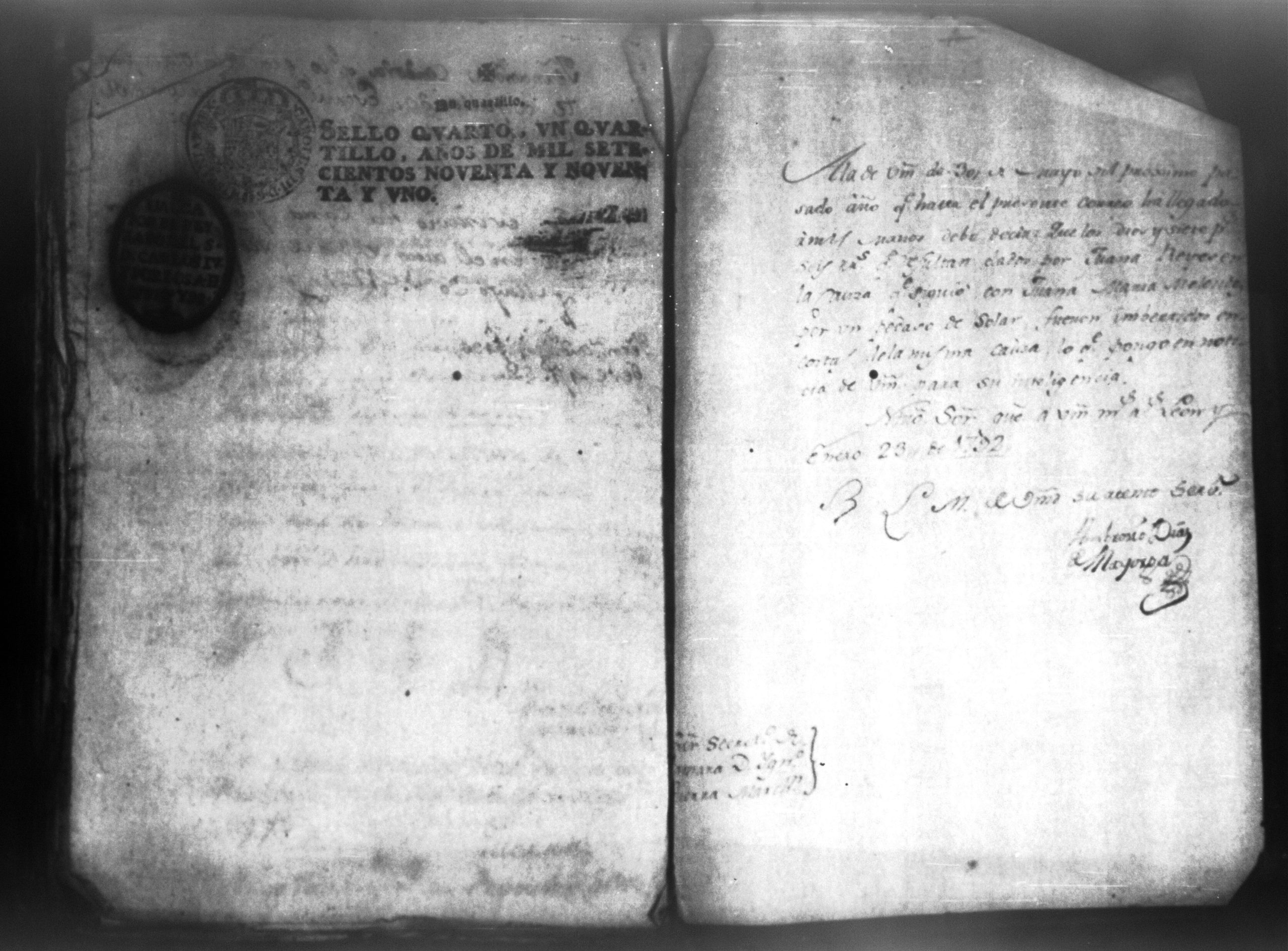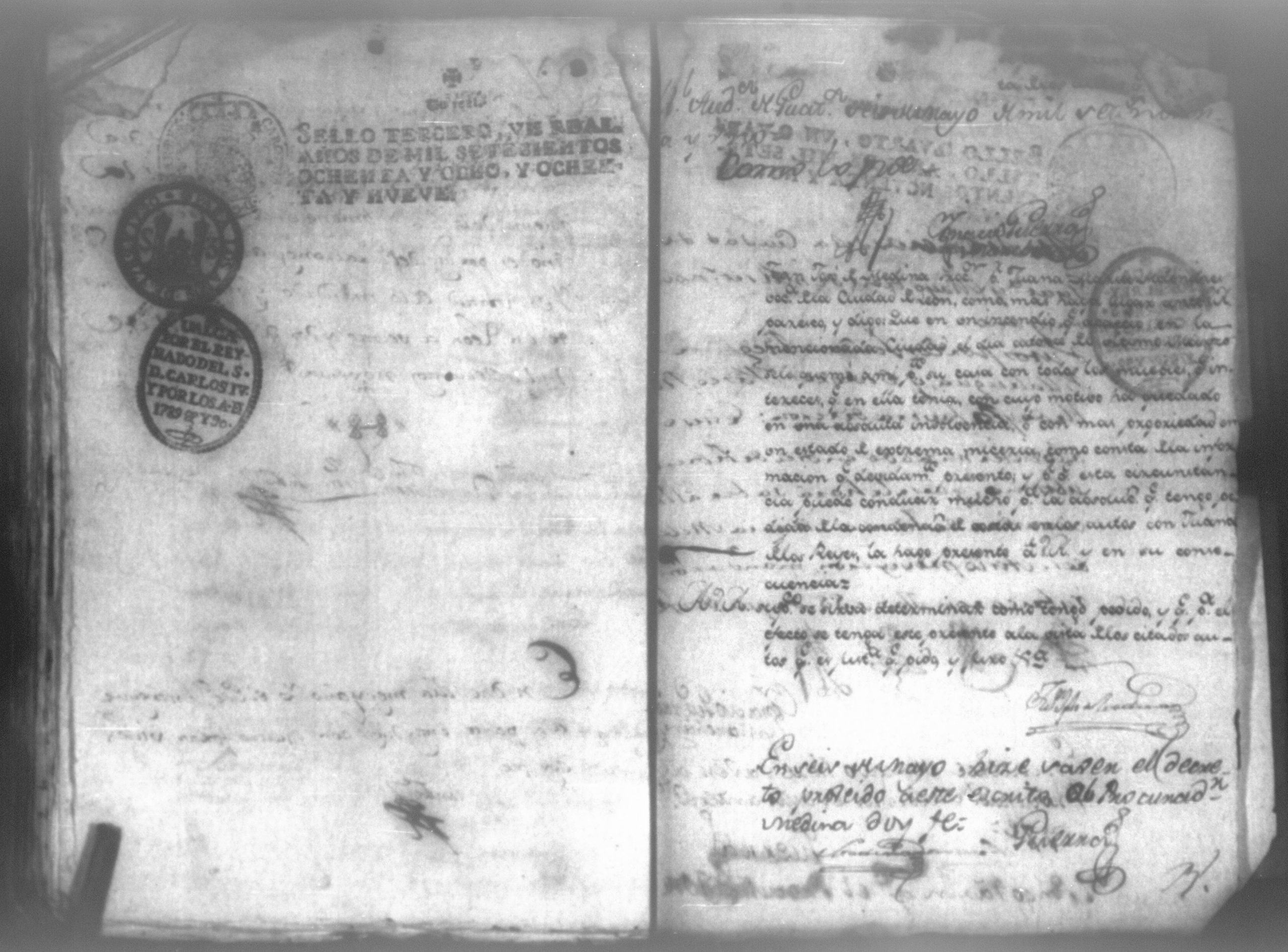 Temática: Audiencia León, 1794. Testimonio de Juana María Melendes por el litigio de un solar contra Juana de los Reyes. "Autos y vistos, y en Locucion a lo respondido por estas partes, llevece a puro, y devido efecto el Auto de fecha de dos del que corre, y en su conseguencia hagacele saver a Juana de los Reyes ... en este Juzgado los (diez) y siete pesos seis rreales que importan las ocho onzas siete octavos de Solar que le pertenece a Juana Melendez y cumplido que sea se le otorgará la escriptura de venta correspondiente que satisfará la consavida Reyes [...]" (Extracto de los folios 19v. y 20, imagen 35)