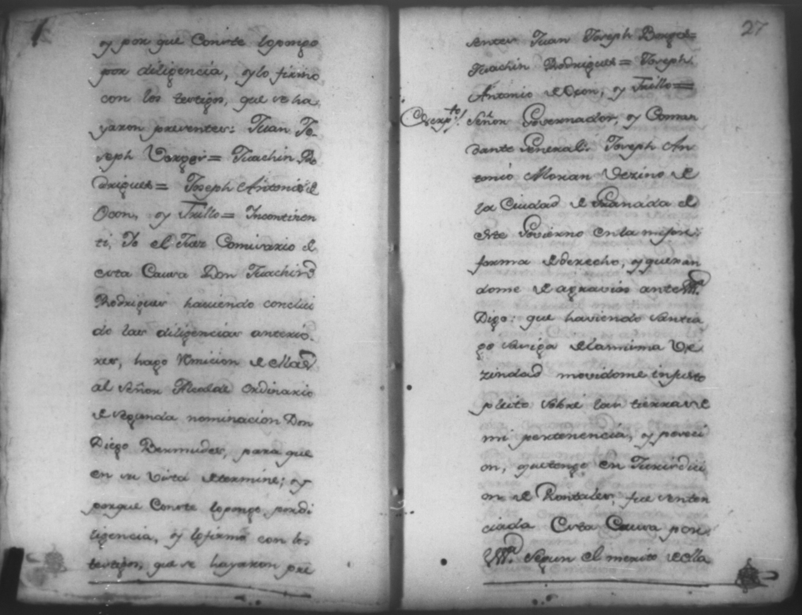 Temática: Año de 1772. Joseph Antonio Moran sobre nulidad de la venta de dos caballerias de tierra ante el Gobernador de Nicaragua.